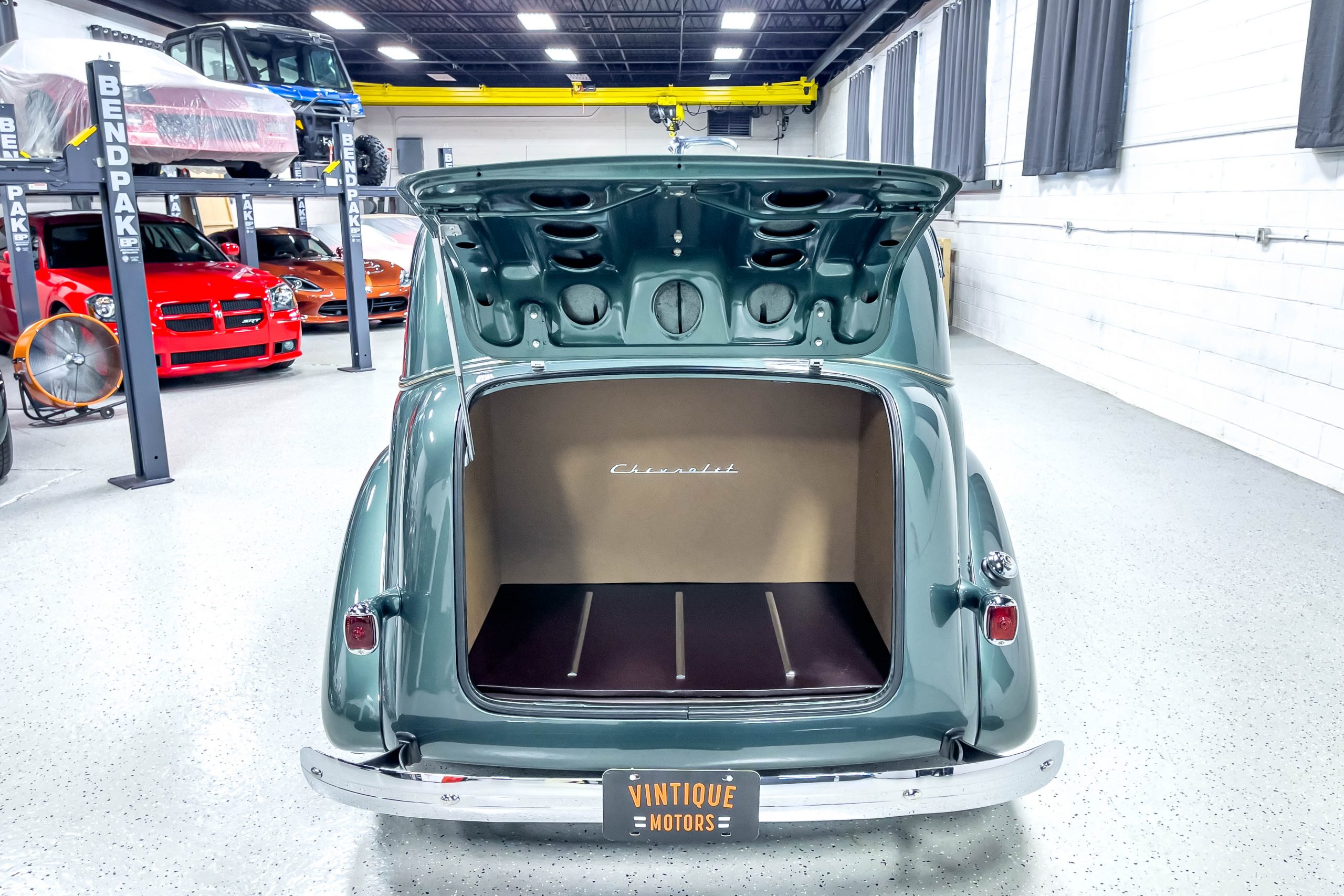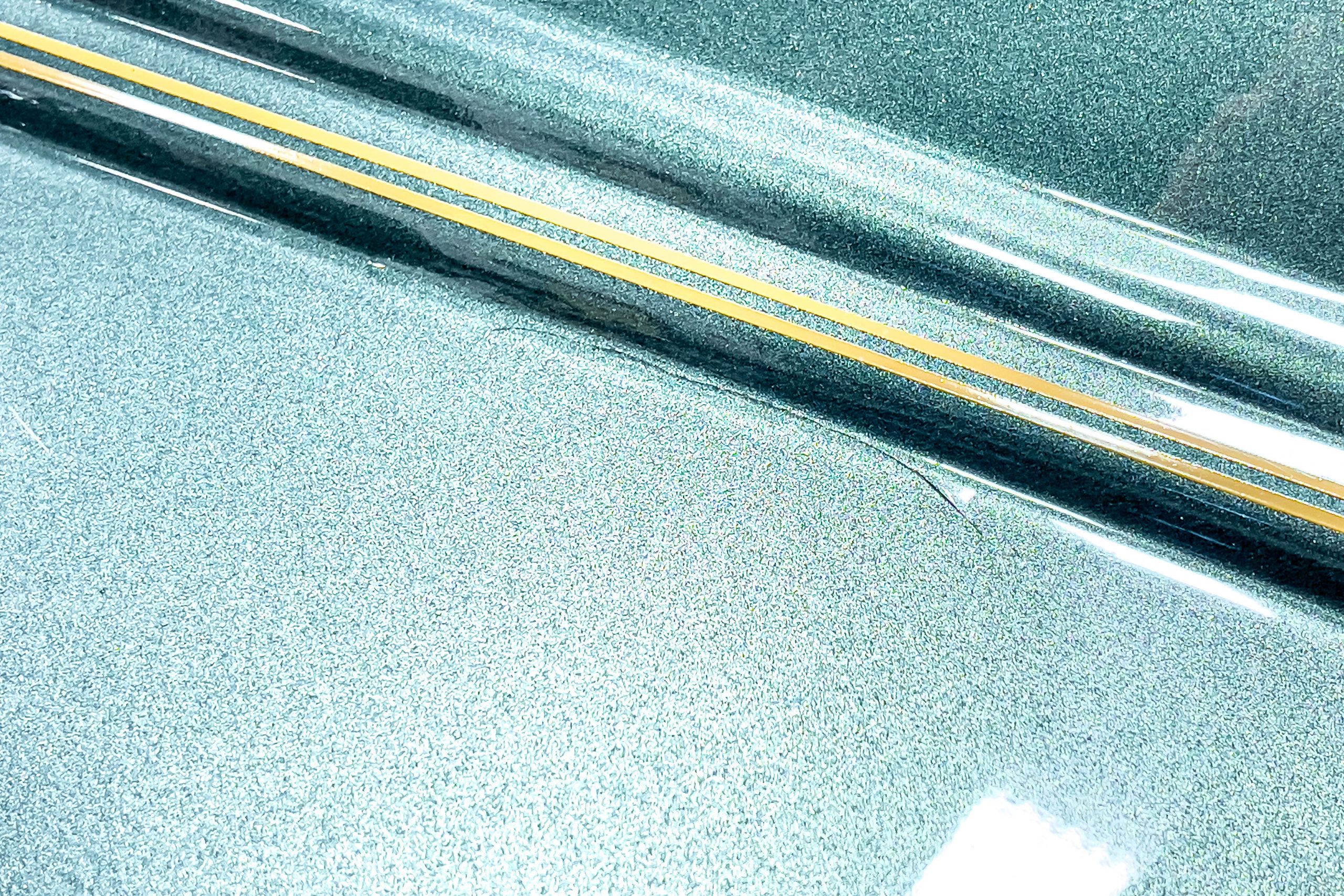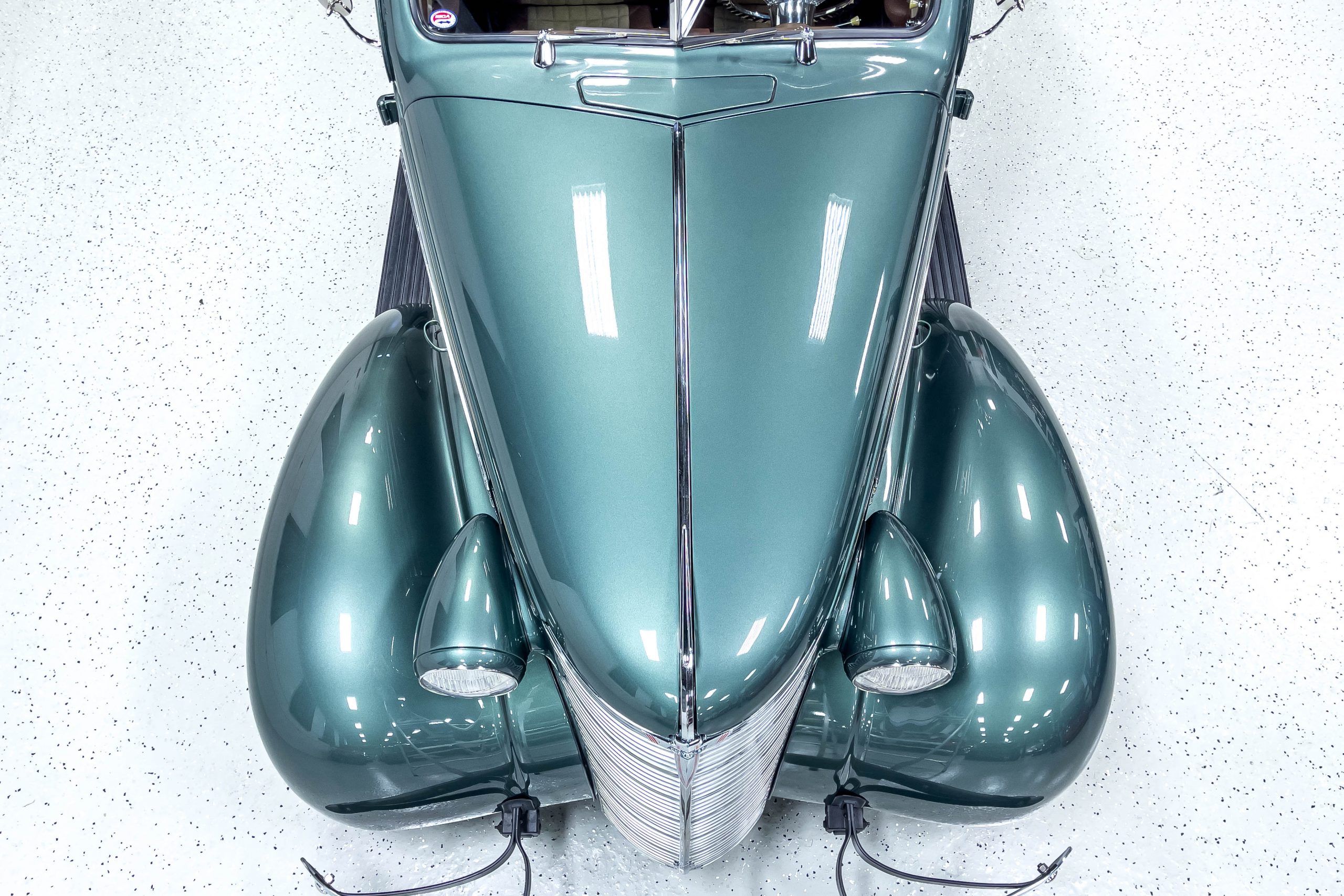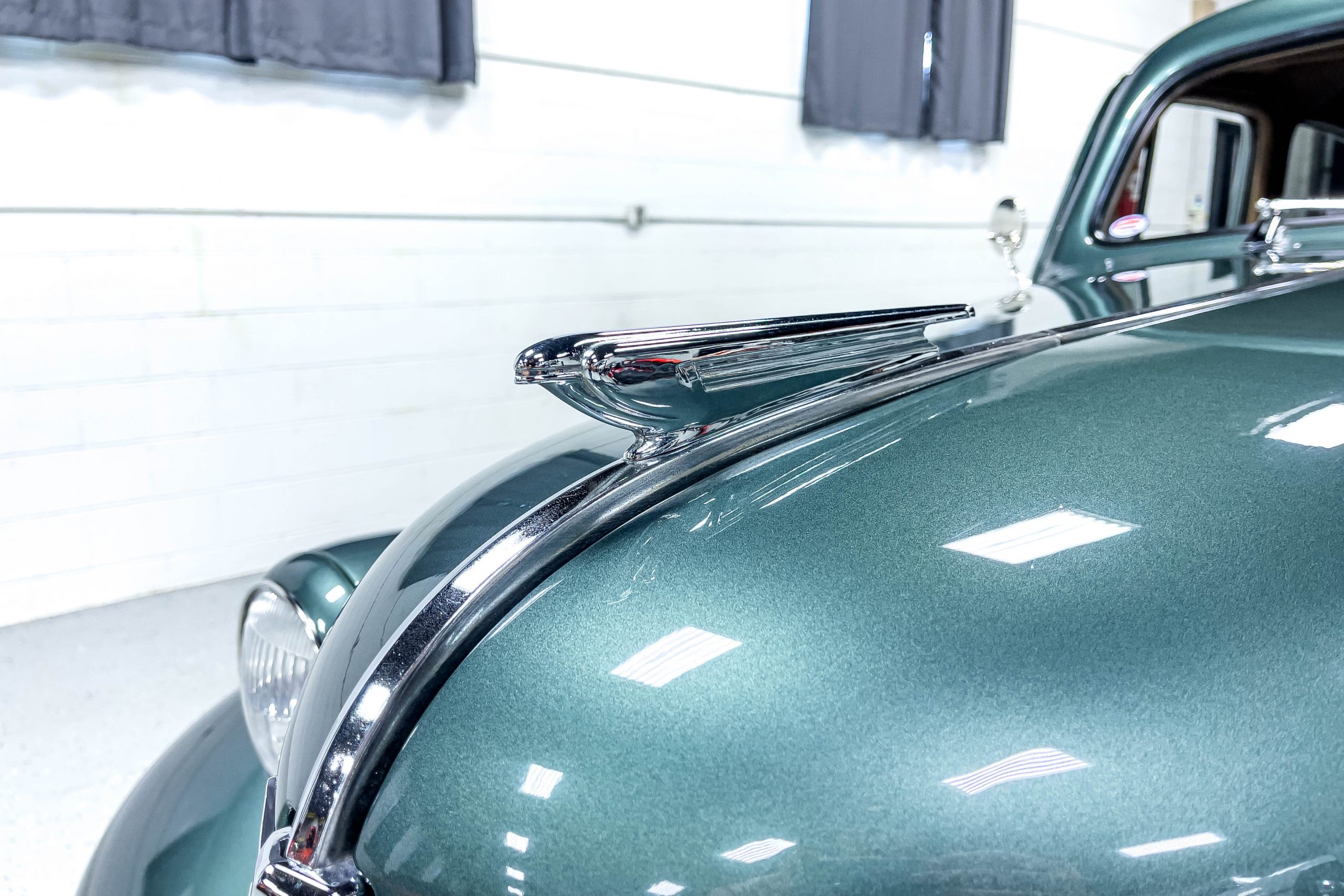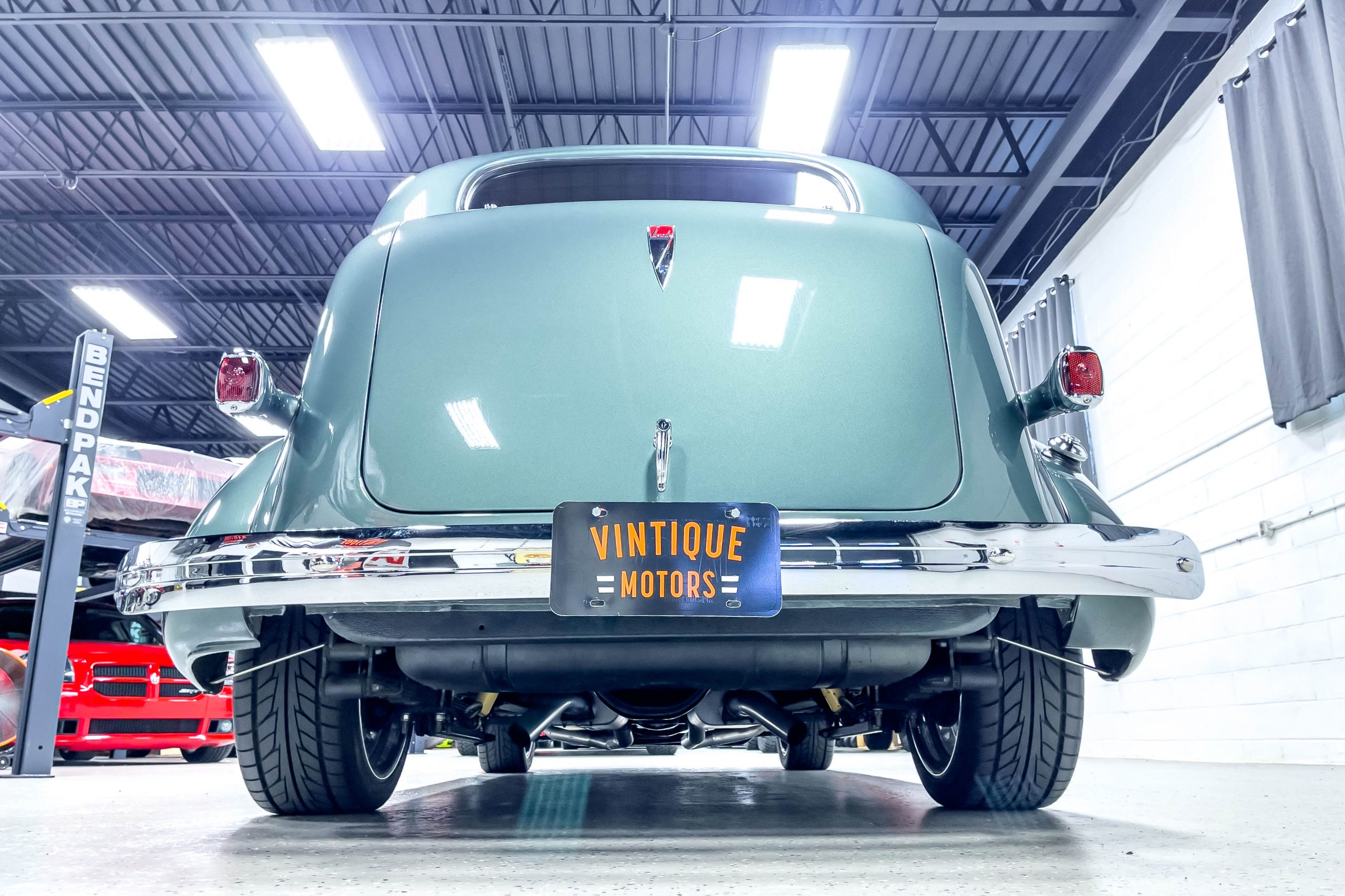 The restoration and hot-rodding process reportedly started in the late 1980s in which it has been preserved and updated as the decades marched on. It is beautifully finished in a custom mix green that was reportedly applied in 1990 by Aman’s in Canton, OH along with a hand applied champaign colored pin stripe and still presents exceptionally well today. The current custom interior appears to have been updated and installed in 2015 as it has a lovely modern presentation in a two-tone tan and chocolate brown color scheme with leather and suede seat material with no visible wear to speak of. The original gauge cluster is not operational and in its place is a beautifully crafted gauge cluster mounted at the bottom of the dash housing VDO gauges for battery voltage, fuel, speedometer, odometer, trip odometer, water temperature, and oil pressure. It also features an Ididit steering column and a chromed Hurst shifter. The current mileage shown is 1,123 miles which is reportedly the mileage accumulated since installation of the new gauges in 2015. We have driven approximately 250 miles in our 3 years of ownership.