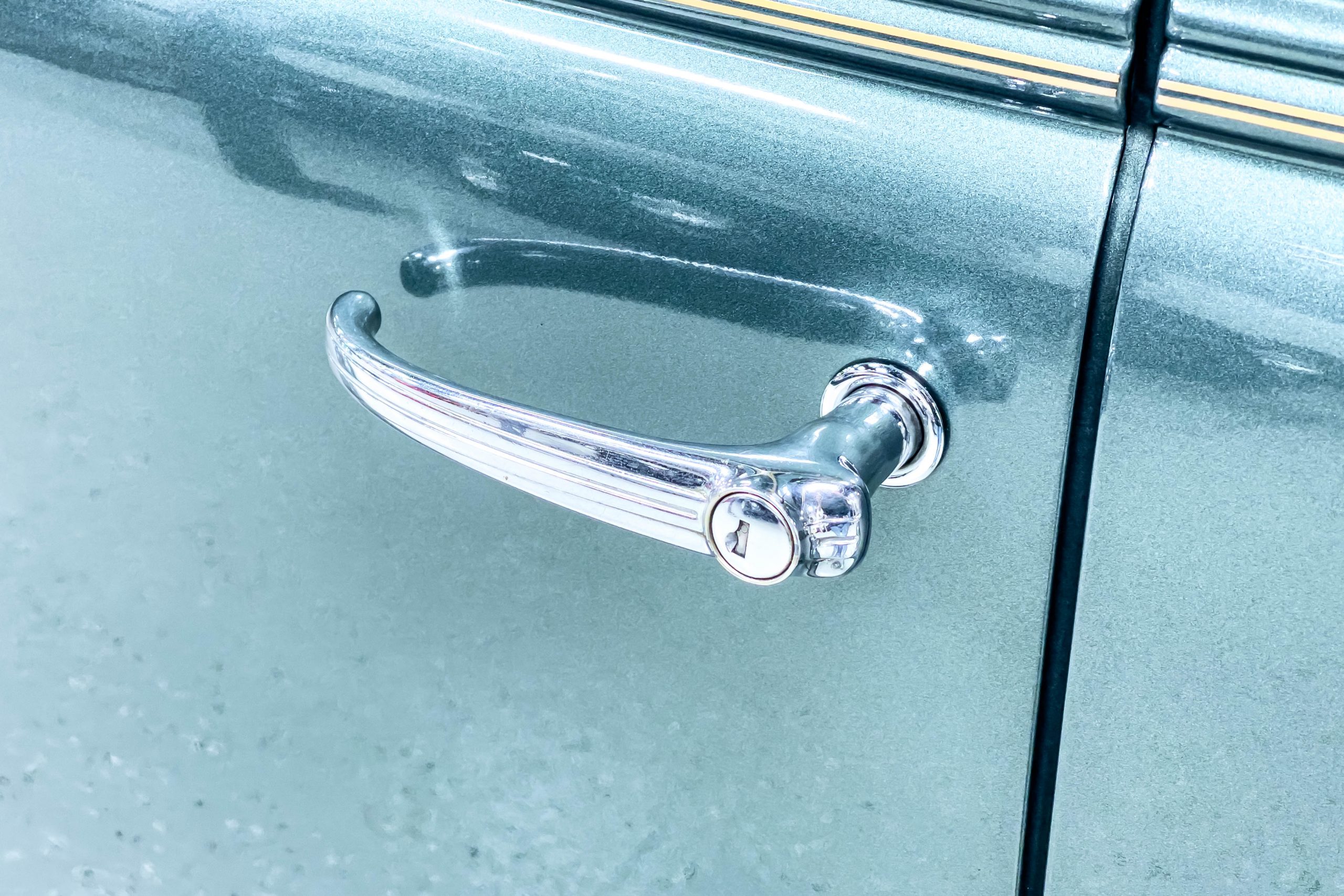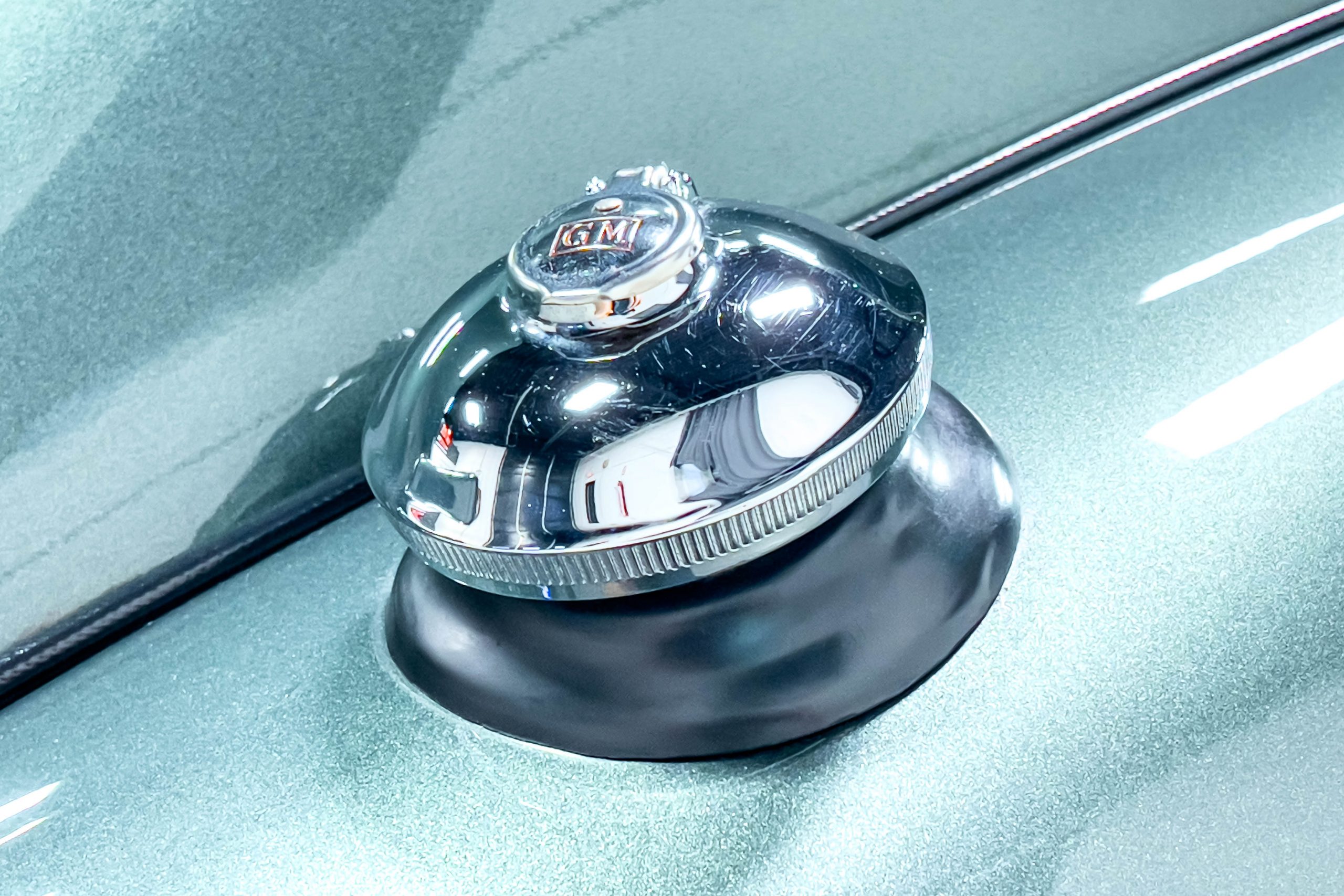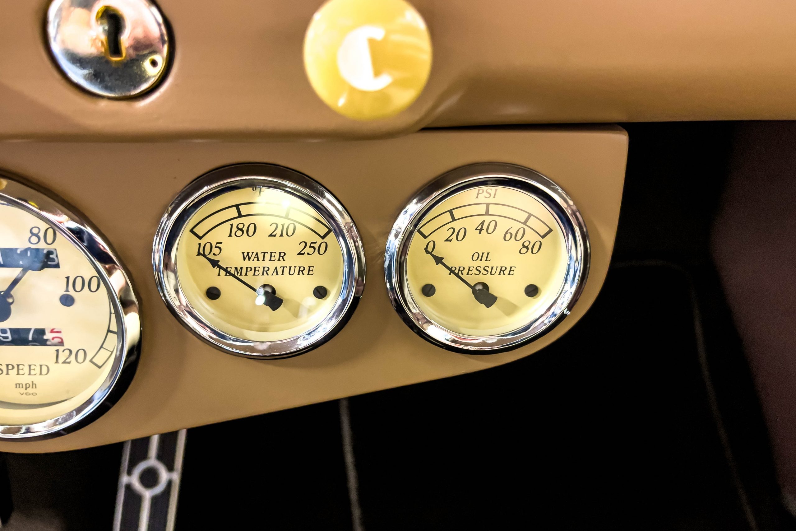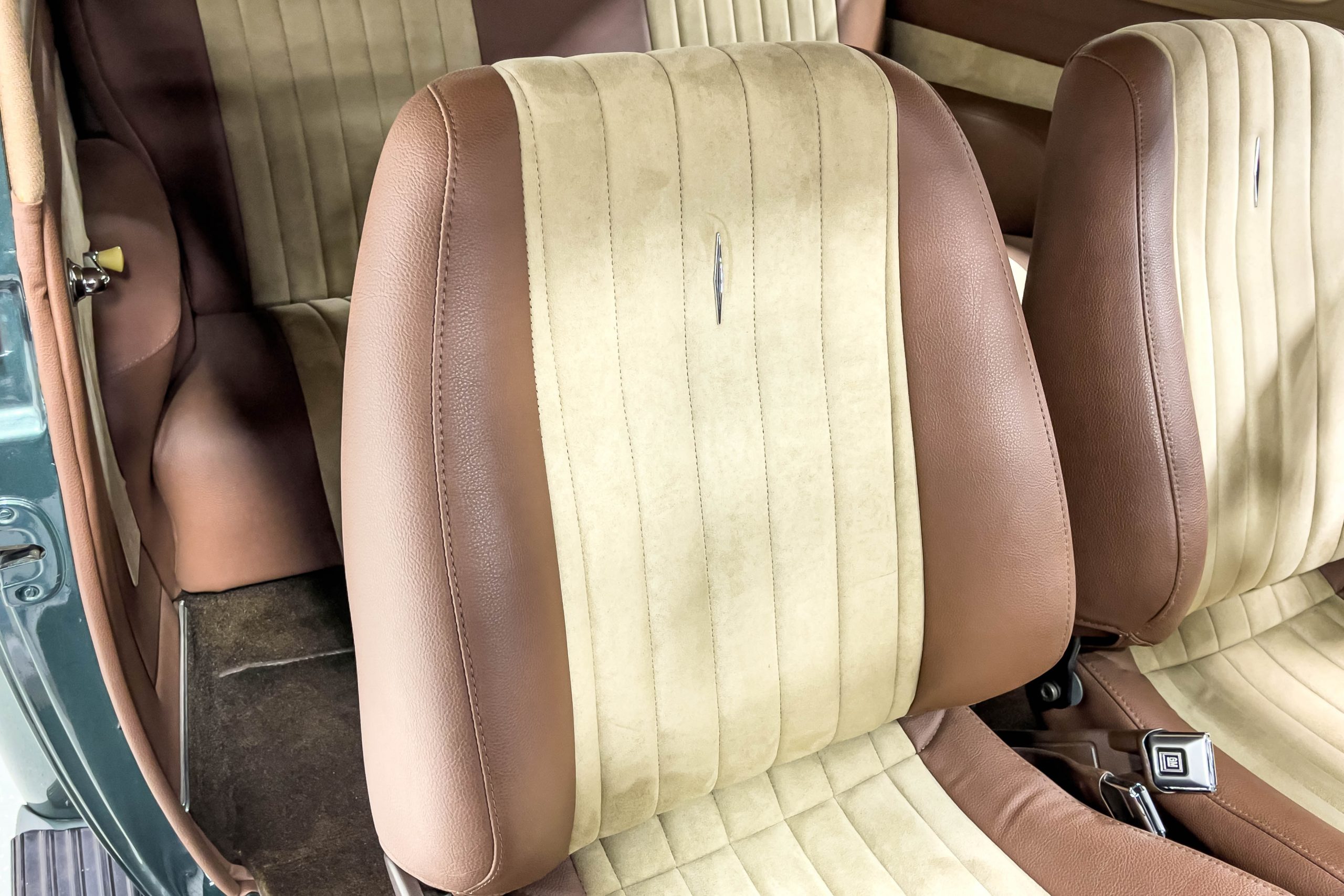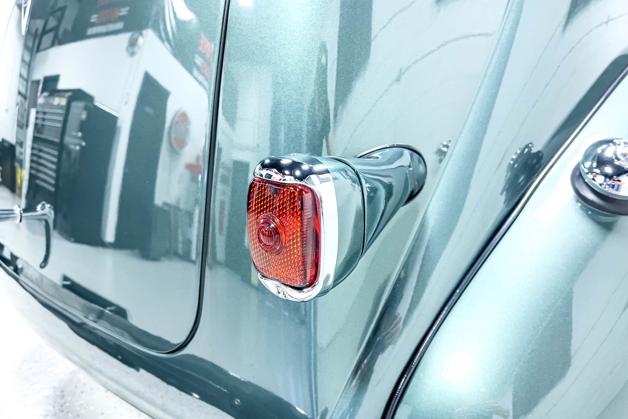 The restoration and hot-rodding process reportedly started in the late 1980s in which it has been preserved and updated as the decades marched on. It is beautifully finished in a custom mix green that was reportedly applied in 1990 by Aman’s in Canton, OH along with a hand applied champaign colored pin stripe and still presents exceptionally well today. The current custom interior appears to have been updated and installed in 2015 as it has a lovely modern presentation in a two-tone tan and chocolate brown color scheme with leather and suede seat material with no visible wear to speak of. The original gauge cluster is not operational and in its place is a beautifully crafted gauge cluster mounted at the bottom of the dash housing VDO gauges for battery voltage, fuel, speedometer, odometer, trip odometer, water temperature, and oil pressure. It also features an Ididit steering column and a chromed Hurst shifter. The current mileage shown is 1,123 miles which is reportedly the mileage accumulated since installation of the new gauges in 2015. We have driven approximately 250 miles in our 3 years of ownership.