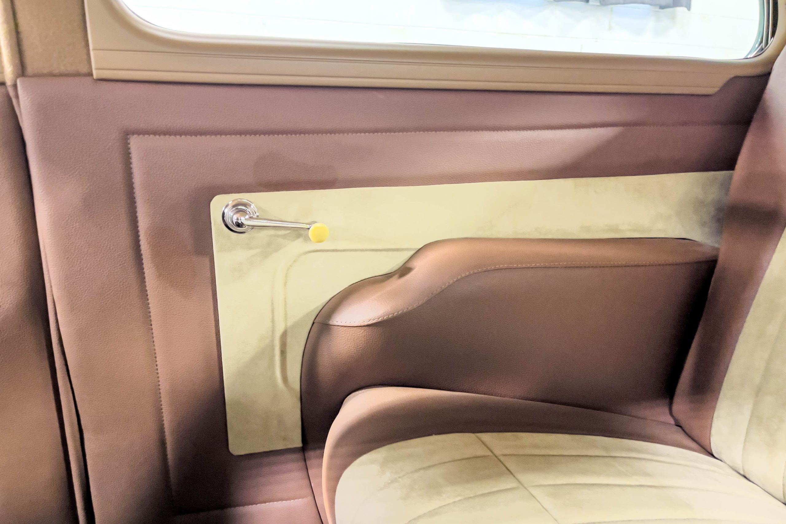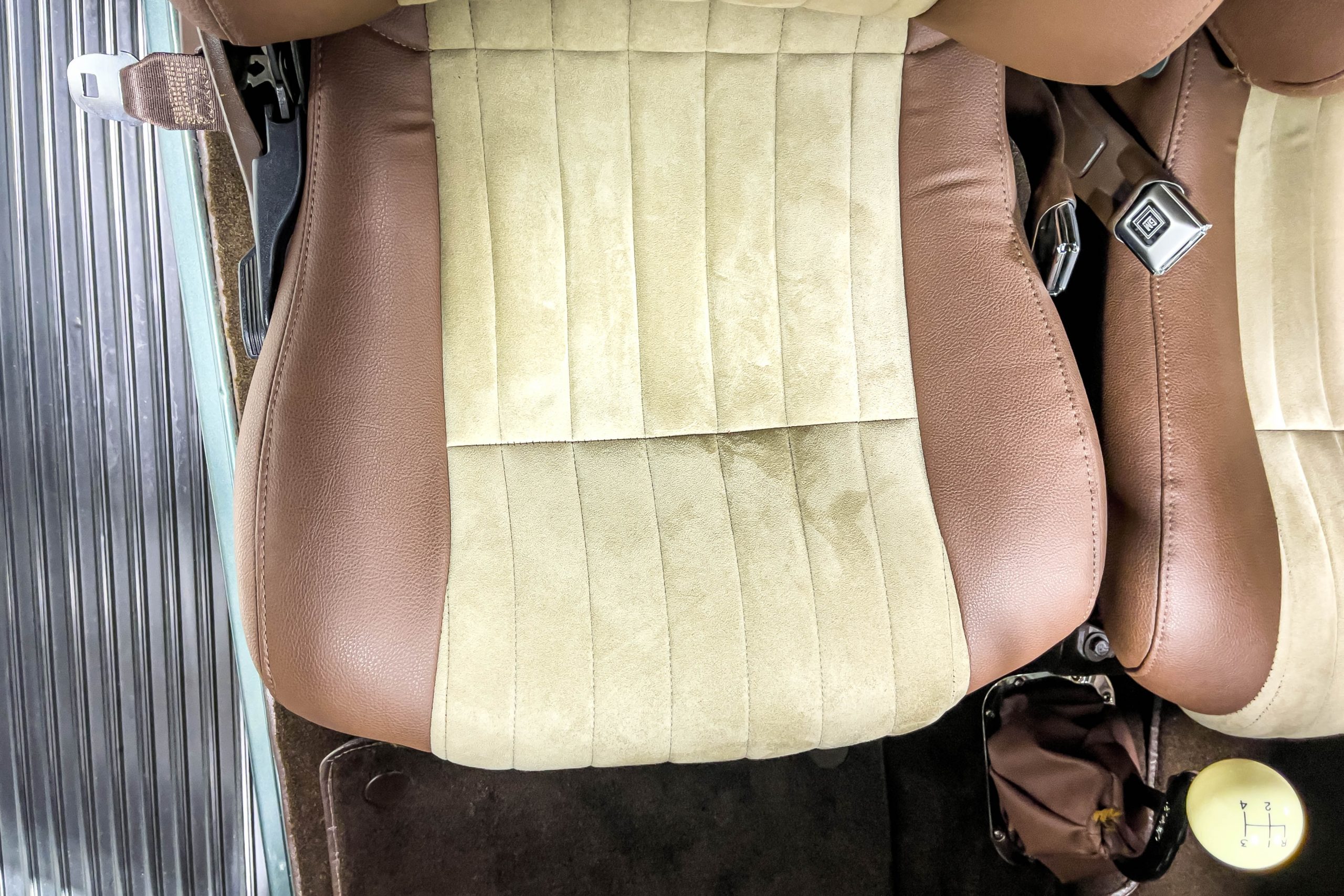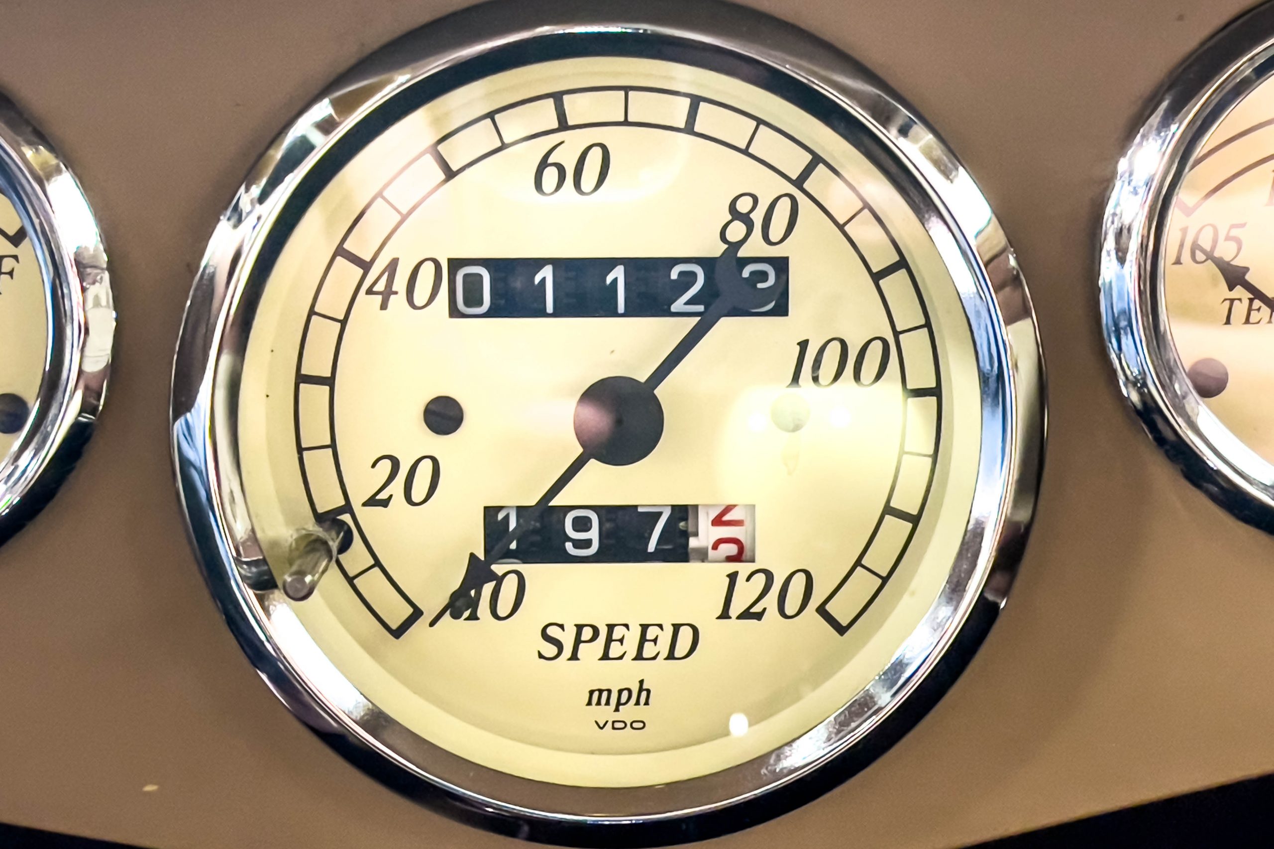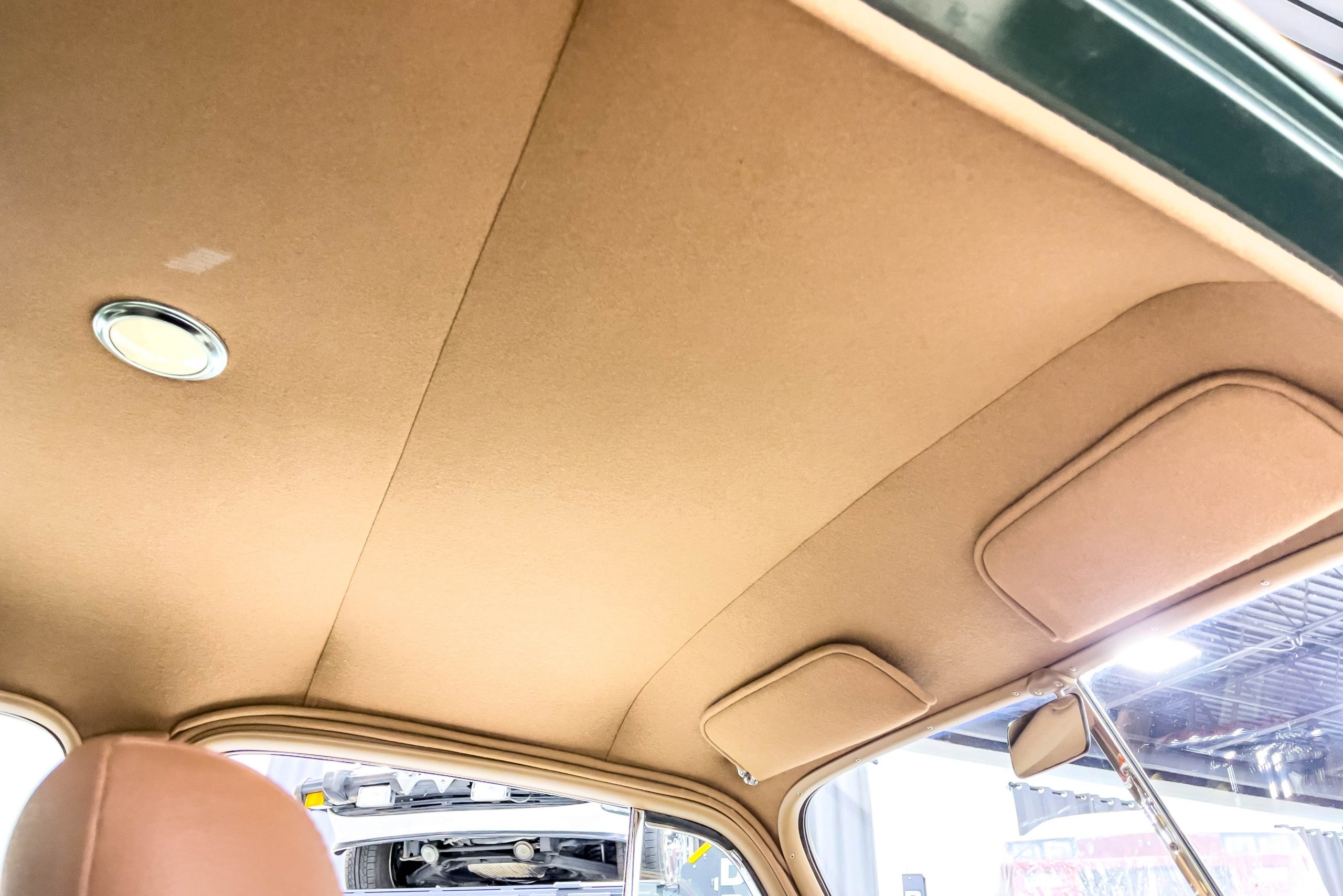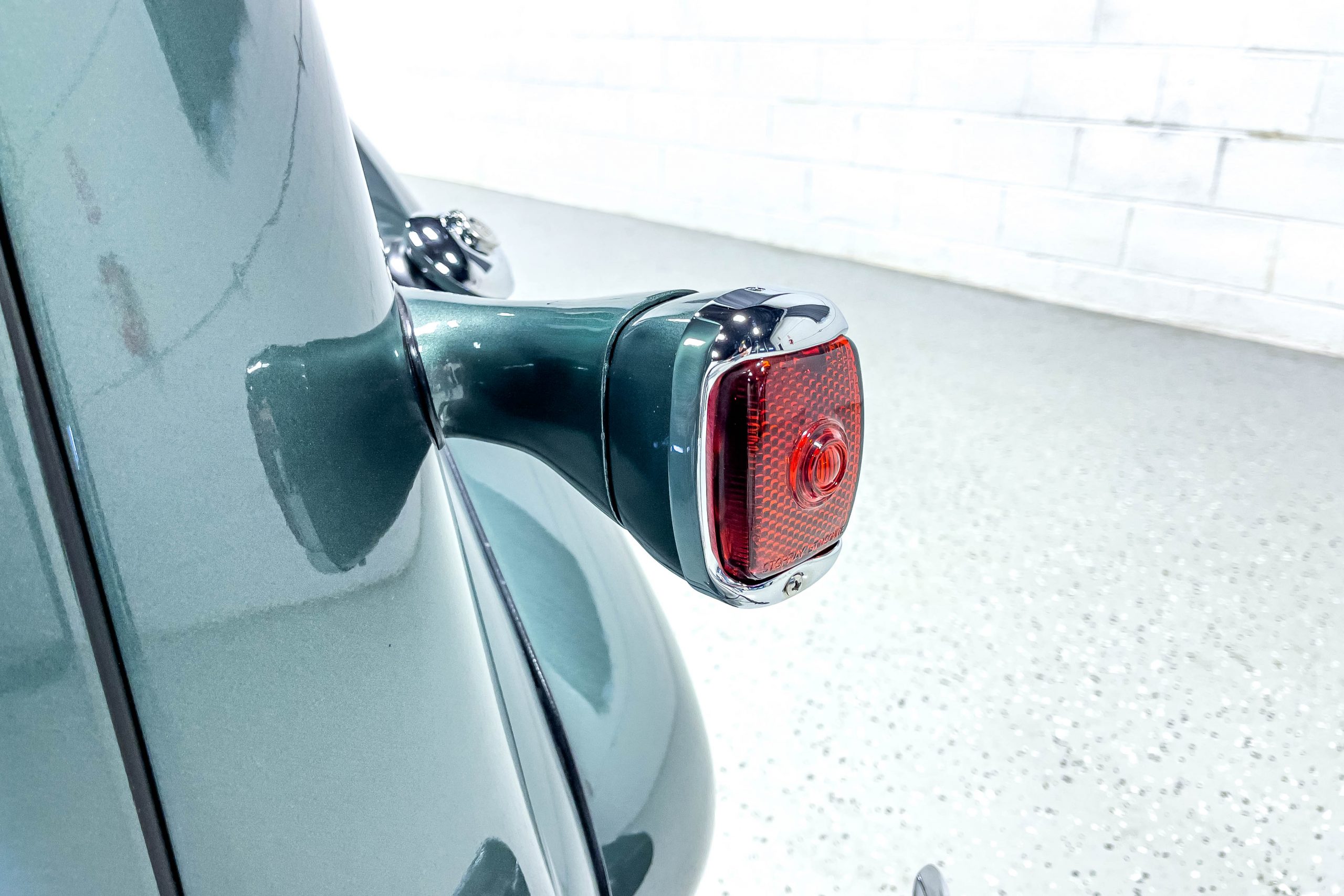 The restoration and hot-rodding process reportedly started in the late 1980s in which it has been preserved and updated as the decades marched on. It is beautifully finished in a custom mix green that was reportedly applied in 1990 by Aman’s in Canton, OH along with a hand applied champaign colored pin stripe and still presents exceptionally well today. The current custom interior appears to have been updated and installed in 2015 as it has a lovely modern presentation in a two-tone tan and chocolate brown color scheme with leather and suede seat material with no visible wear to speak of. The original gauge cluster is not operational and in its place is a beautifully crafted gauge cluster mounted at the bottom of the dash housing VDO gauges for battery voltage, fuel, speedometer, odometer, trip odometer, water temperature, and oil pressure. It also features an Ididit steering column and a chromed Hurst shifter. The current mileage shown is 1,123 miles which is reportedly the mileage accumulated since installation of the new gauges in 2015. We have driven approximately 250 miles in our 3 years of ownership.