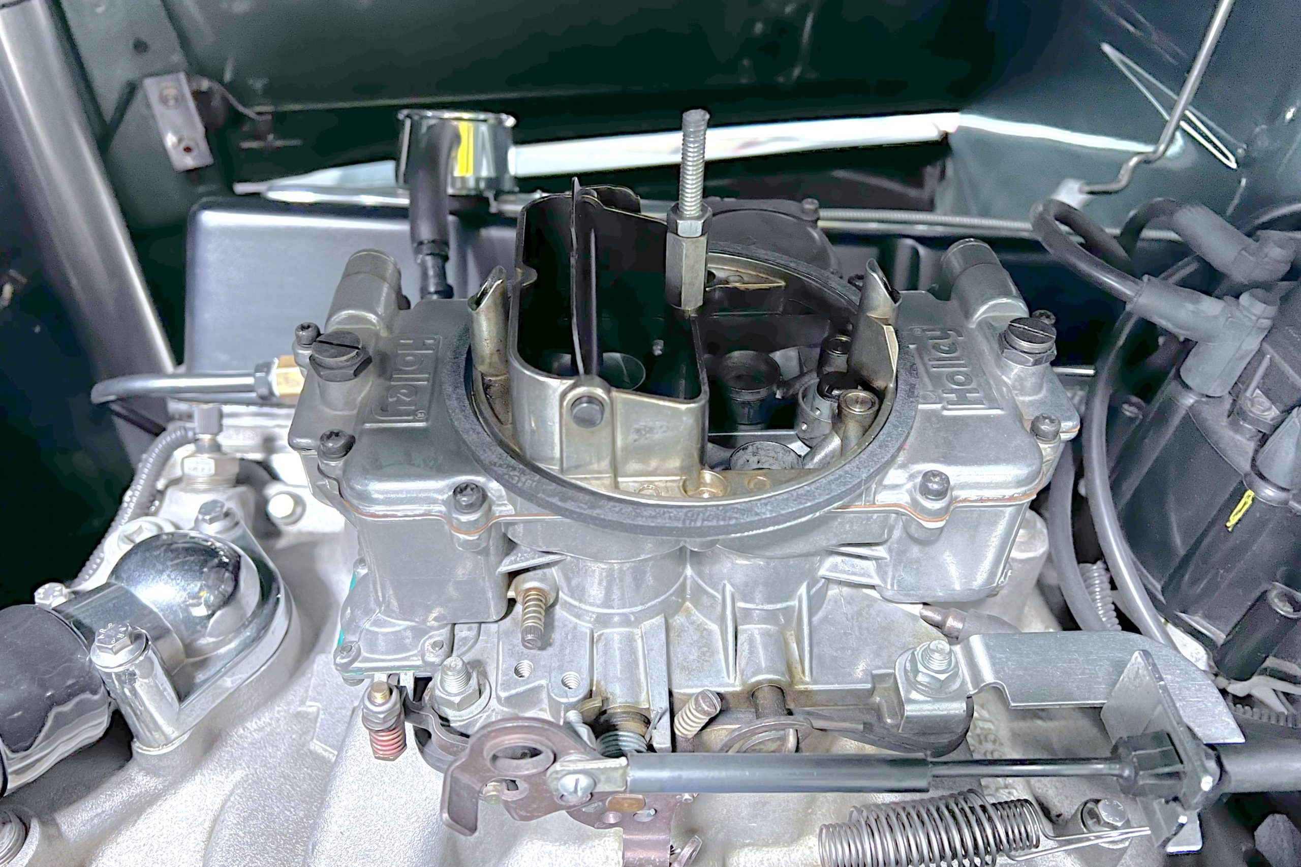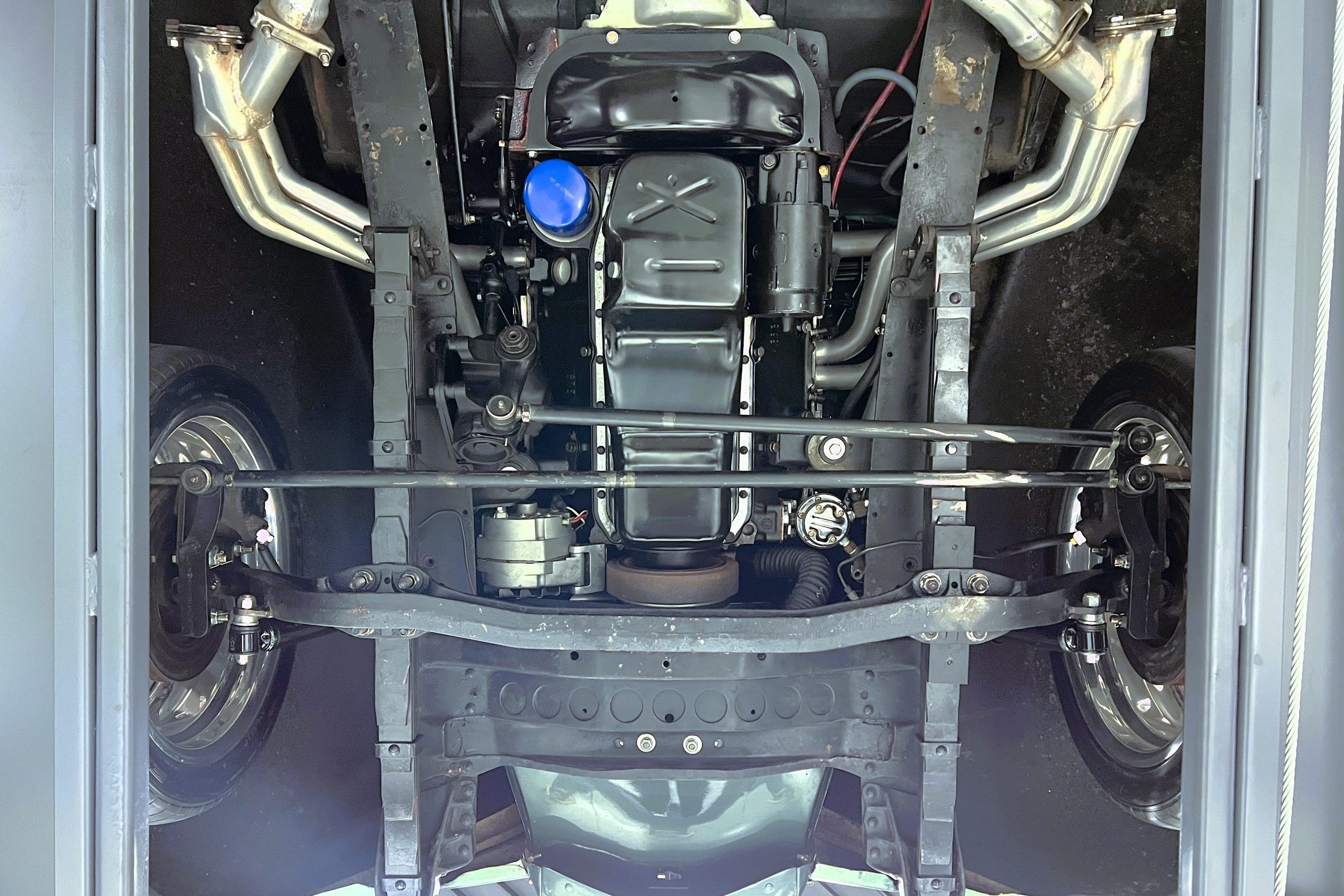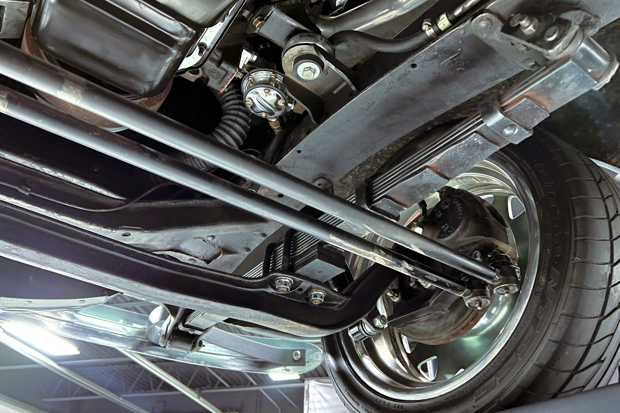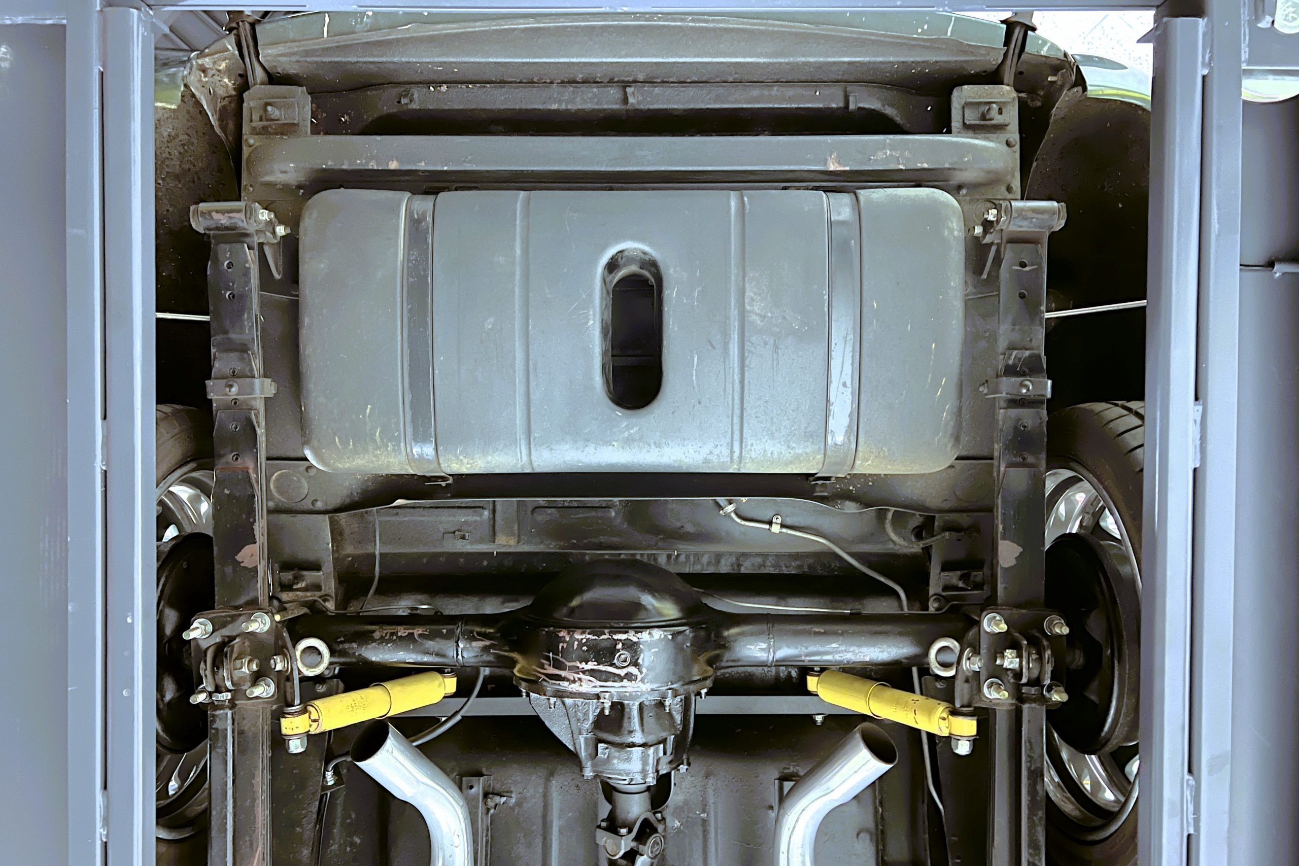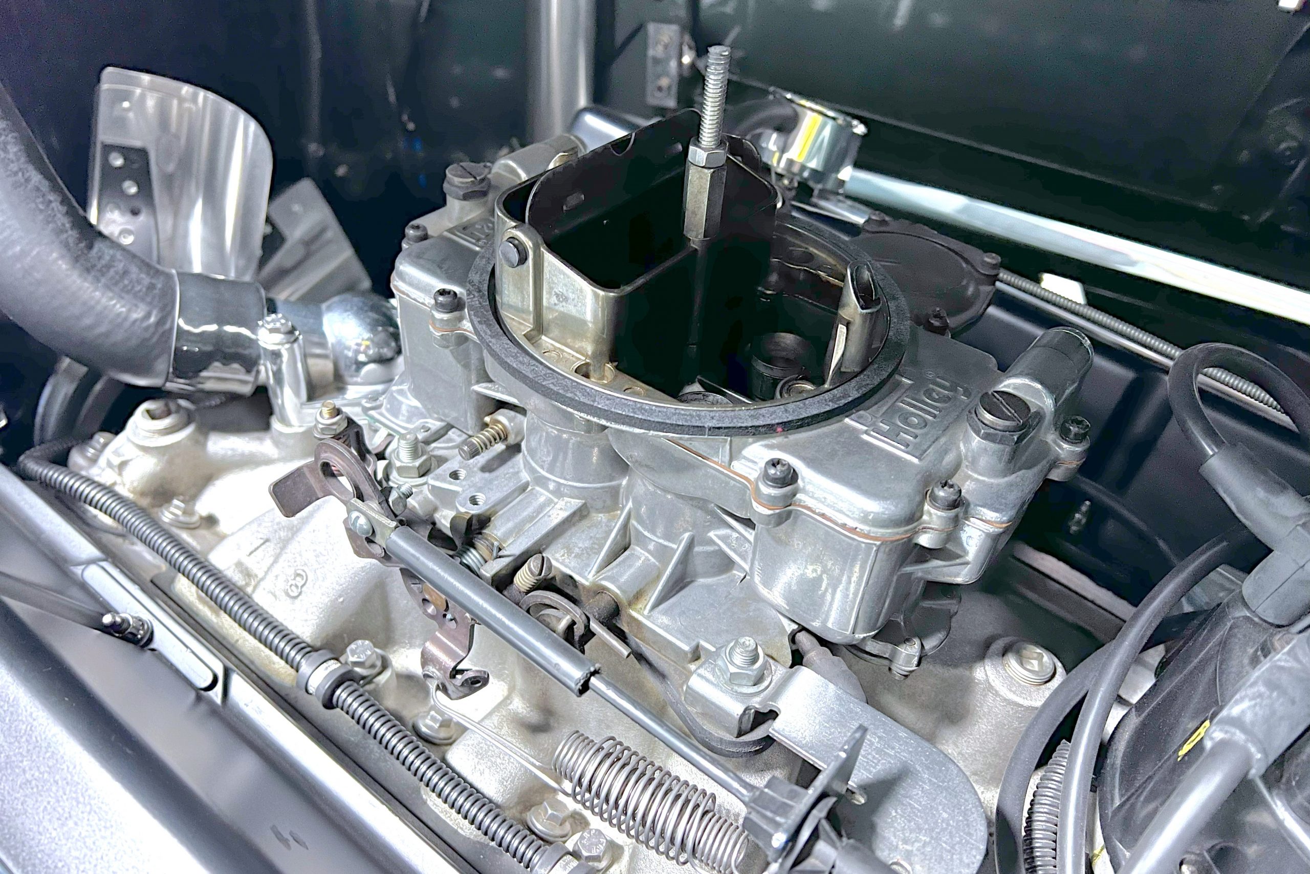 Under the hood sits a GM Performance ZZ3 350ci V8 crate engine which was rated by GM at 345 horsepower at 5,200 RPM and 395 lb.-ft. of torque at 3,500 rpm mated to a 1969 dated Muncie M-20 4-speed manual transmission. Fuel delivery arrives via a Holly 750 CFM 4-barrel carburetor with Delco Remy ignition. The exhaust is comprised of a set of mild headers with manual cutouts running through Flowmaster mufflers. The chassis and suspension are largely stock aside for extra bracing and gas shock absorbers. It has a Ford 9″ rear-end and braking is provided by discs up front and drums in the back and it’s all riding on a set of one-off custom-made color-matched Rushforth artillery style wheels with polished lips sized 18″ up front and 20″ in the back mounted on Nitto NT555 Extreme ZR tires with 2014 date codes.