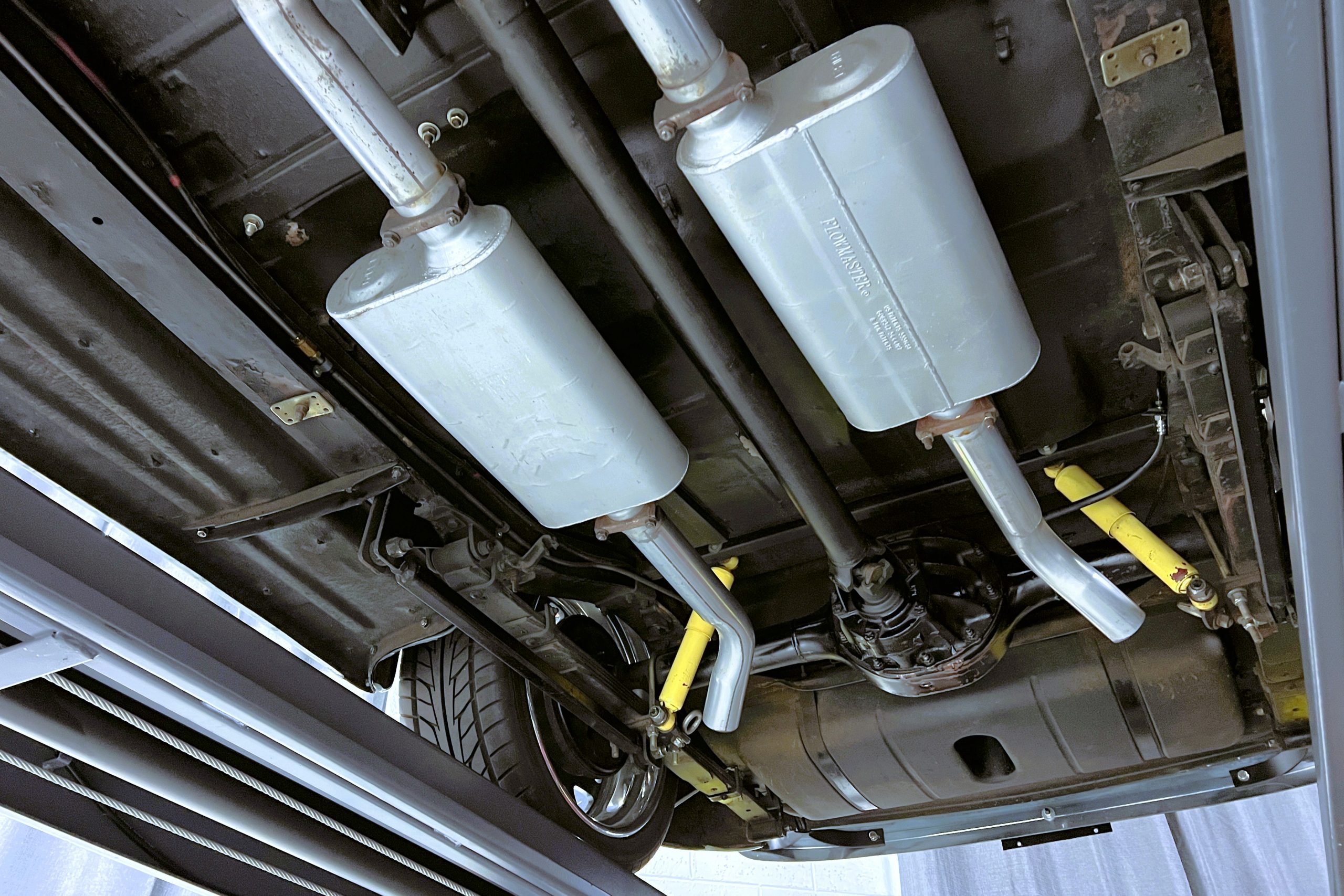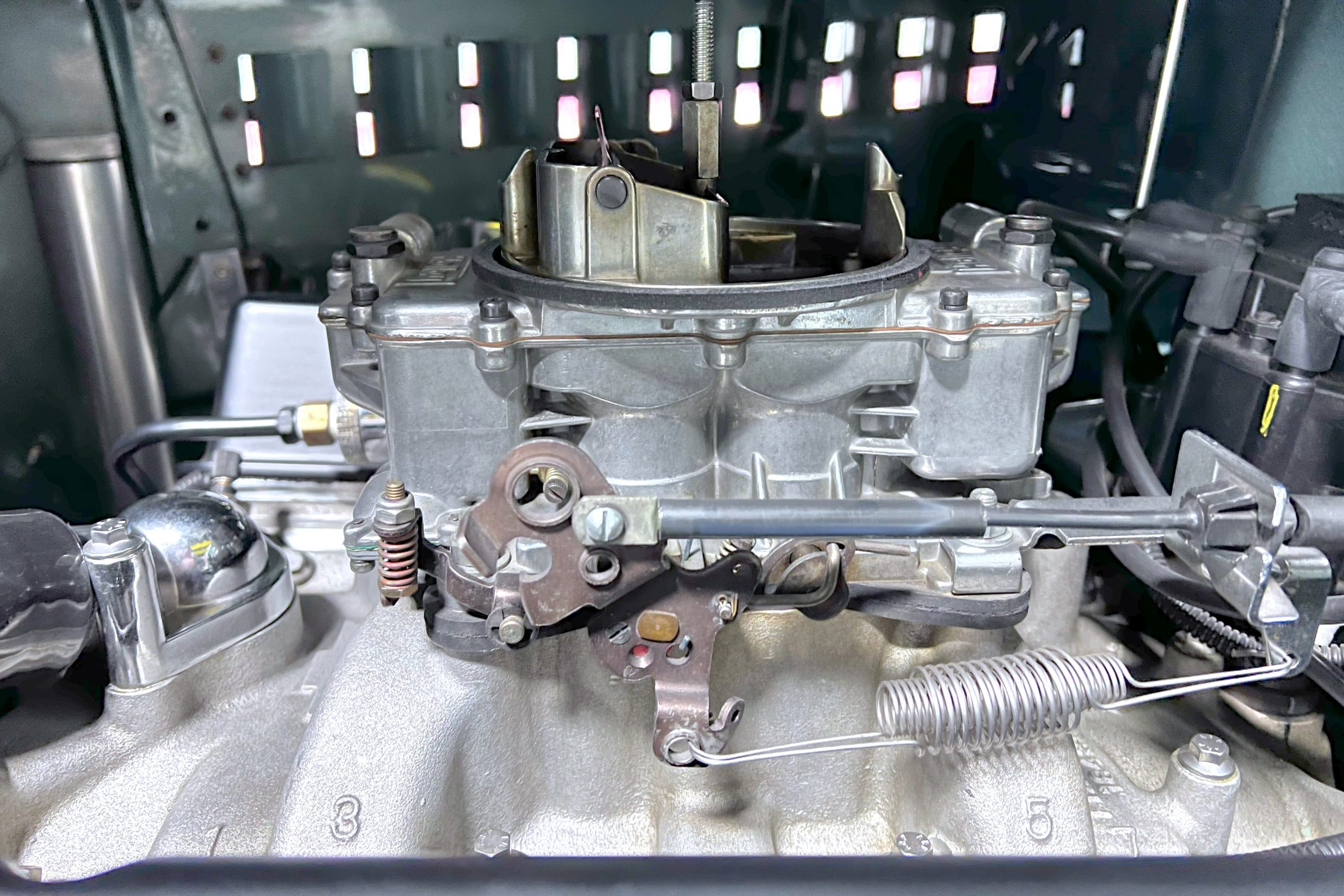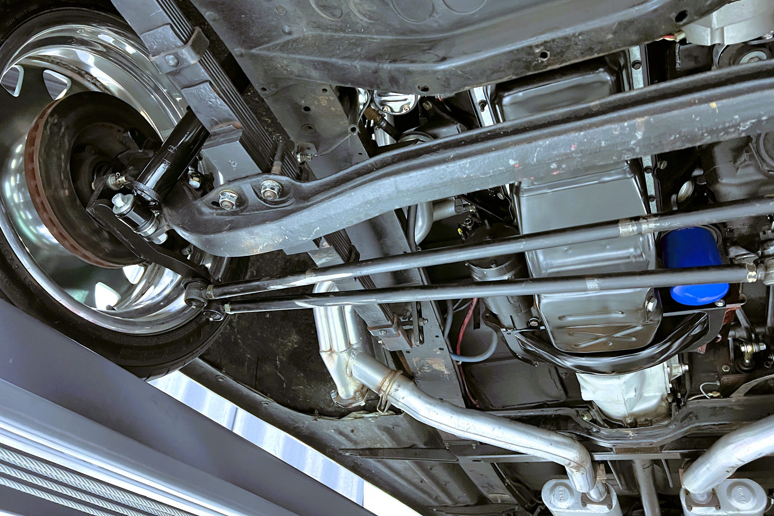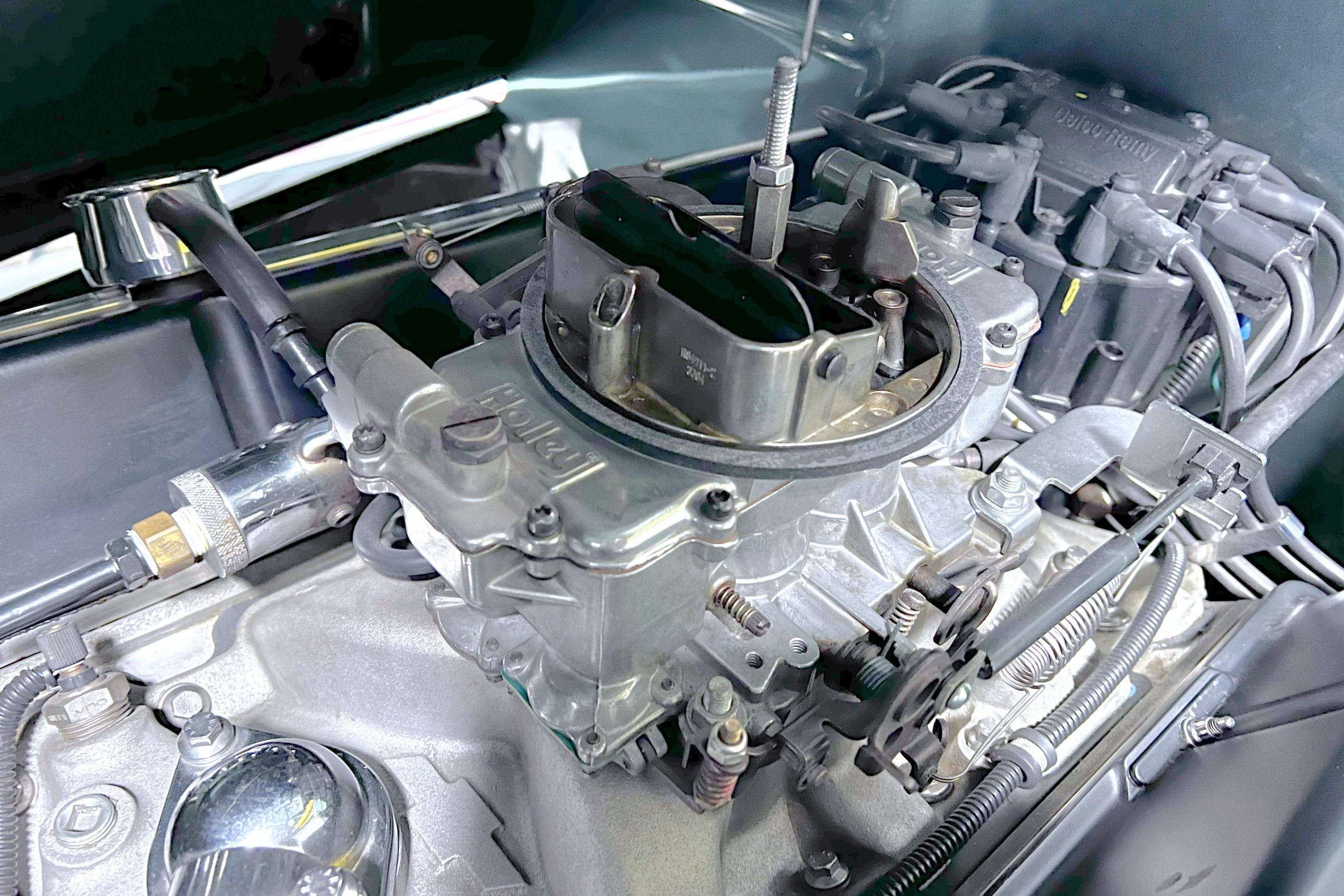 Under the hood sits a GM Performance ZZ3 350ci V8 crate engine which was rated by GM at 345 horsepower at 5,200 RPM and 395 lb.-ft. of torque at 3,500 rpm mated to a 1969 dated Muncie M-20 4-speed manual transmission. Fuel delivery arrives via a Holly 750 CFM 4-barrel carburetor with Delco Remy ignition. The exhaust is comprised of a set of mild headers with manual cutouts running through Flowmaster mufflers. The chassis and suspension are largely stock aside for extra bracing and gas shock absorbers. It has a Ford 9″ rear-end and braking is provided by discs up front and drums in the back and it’s all riding on a set of one-off custom-made color-matched Rushforth artillery style wheels with polished lips sized 18″ up front and 20″ in the back mounted on Nitto NT555 Extreme ZR tires with 2014 date codes.