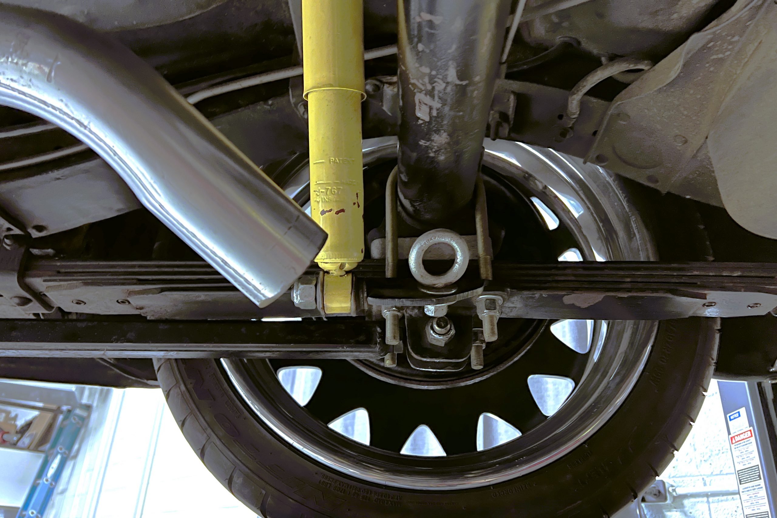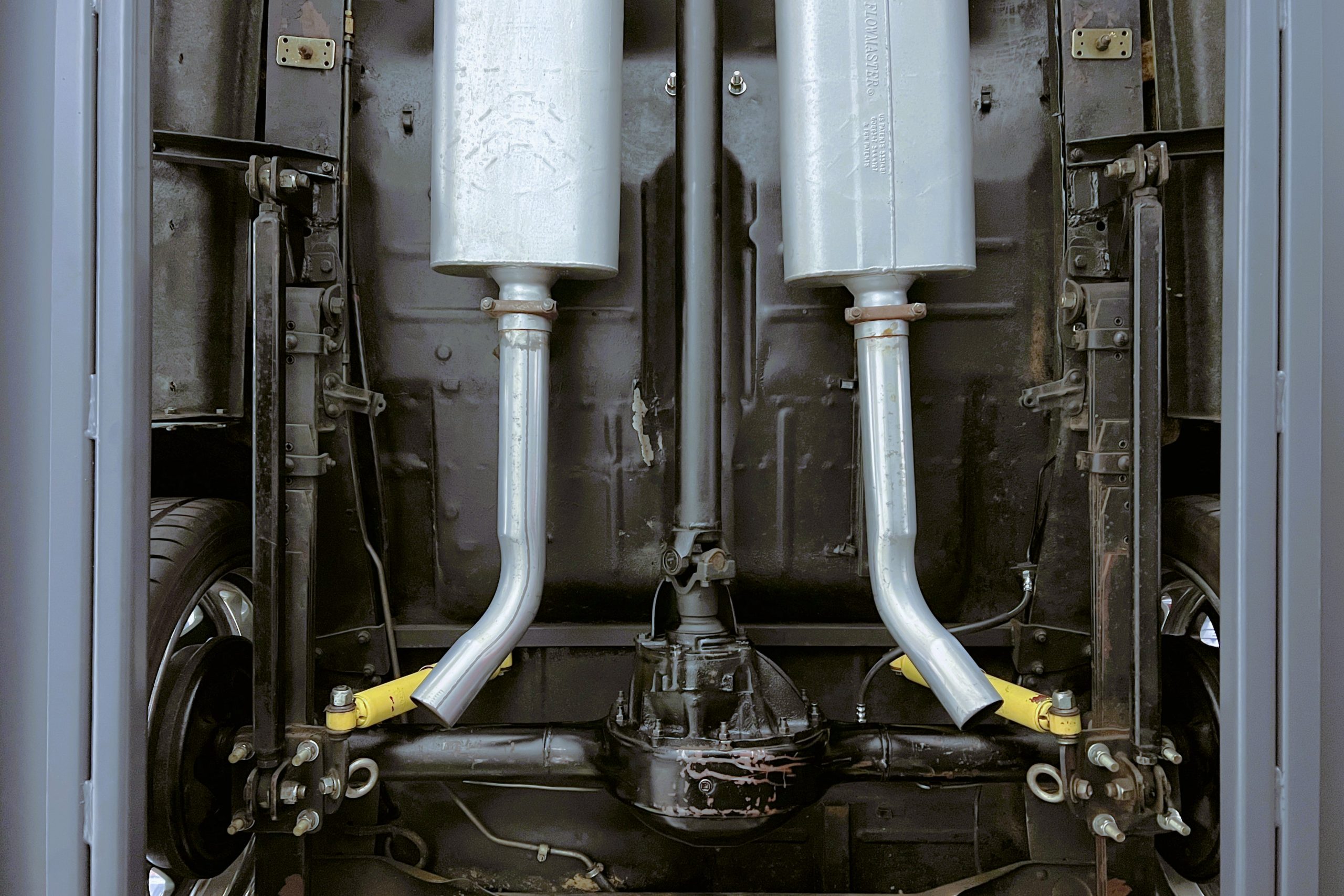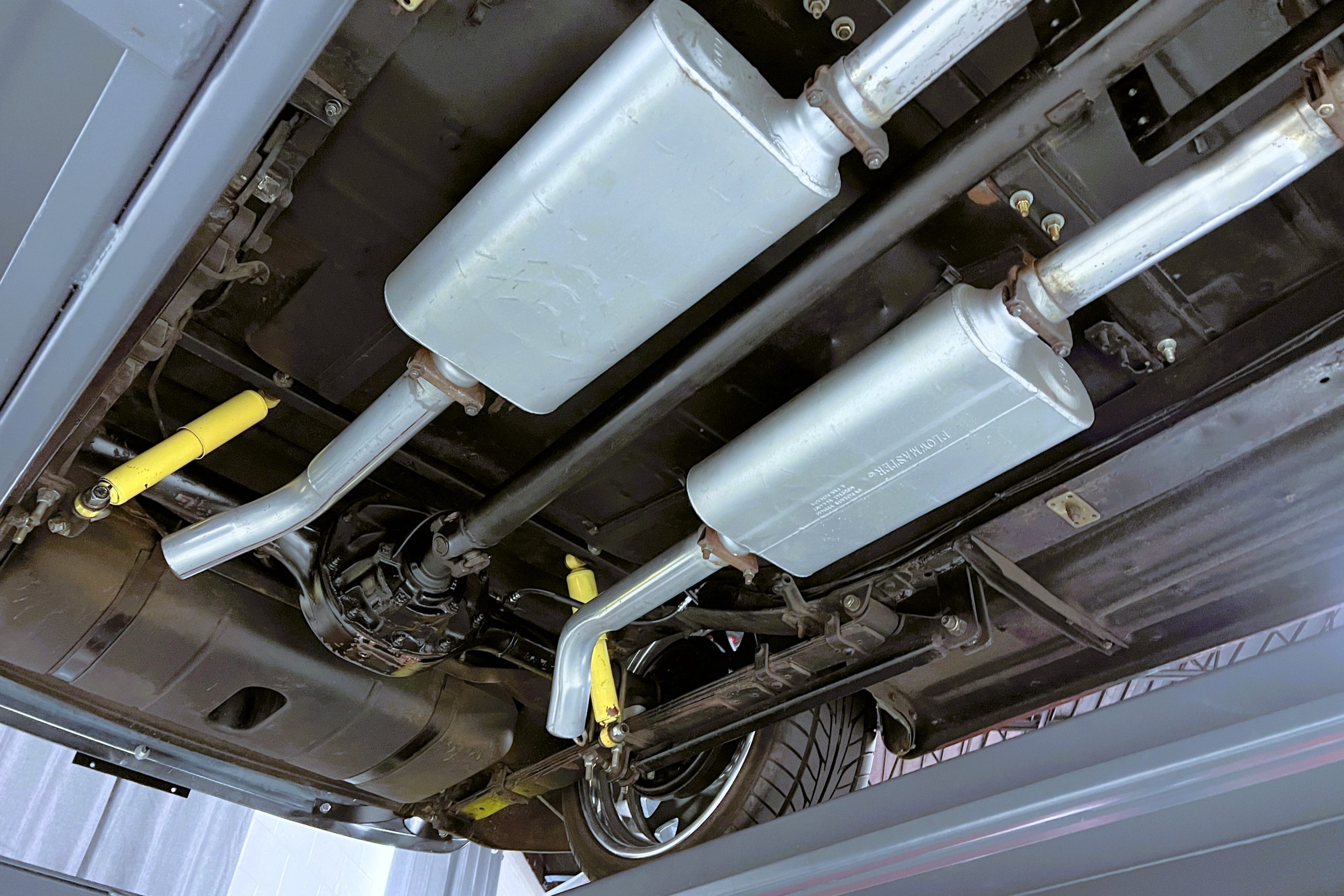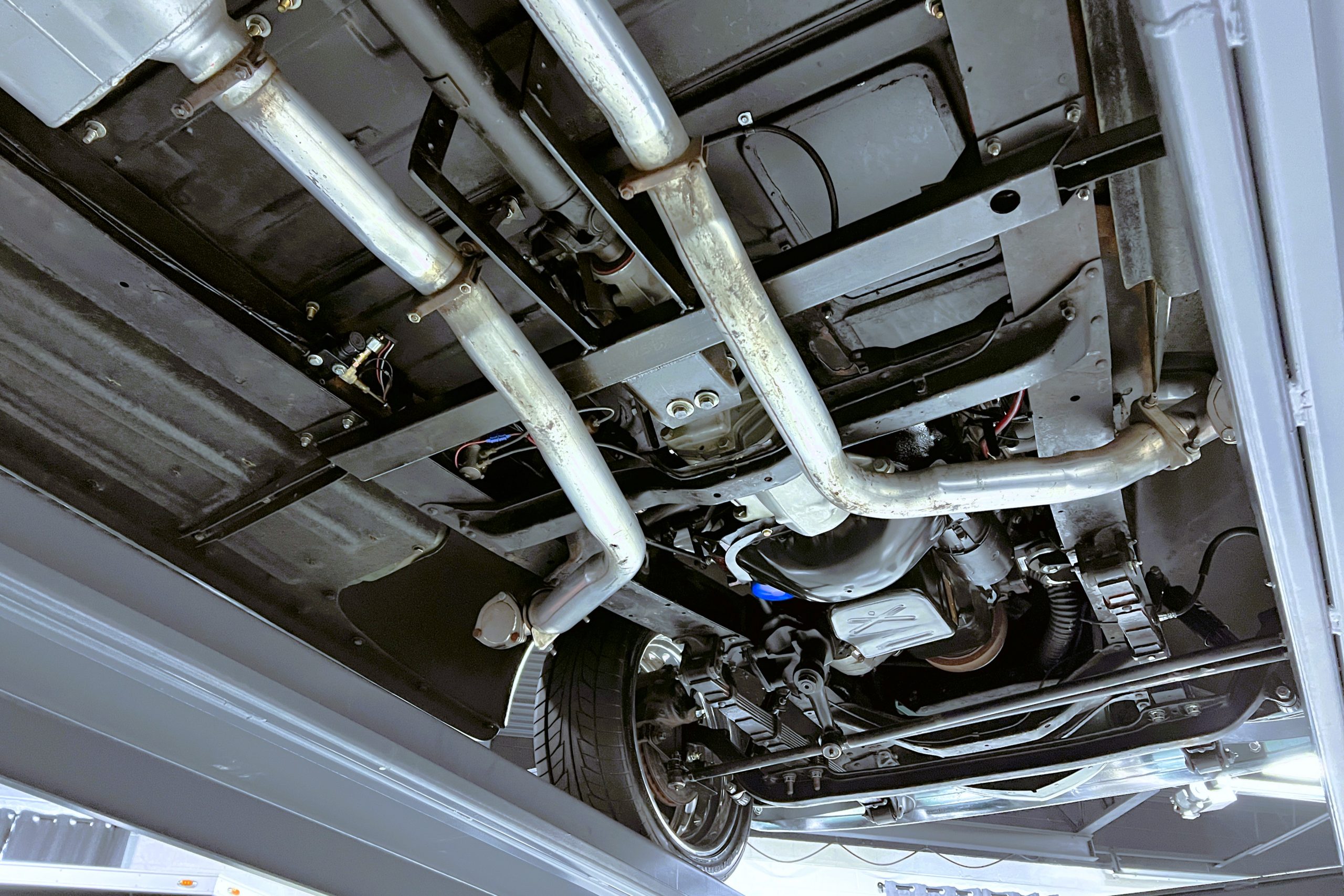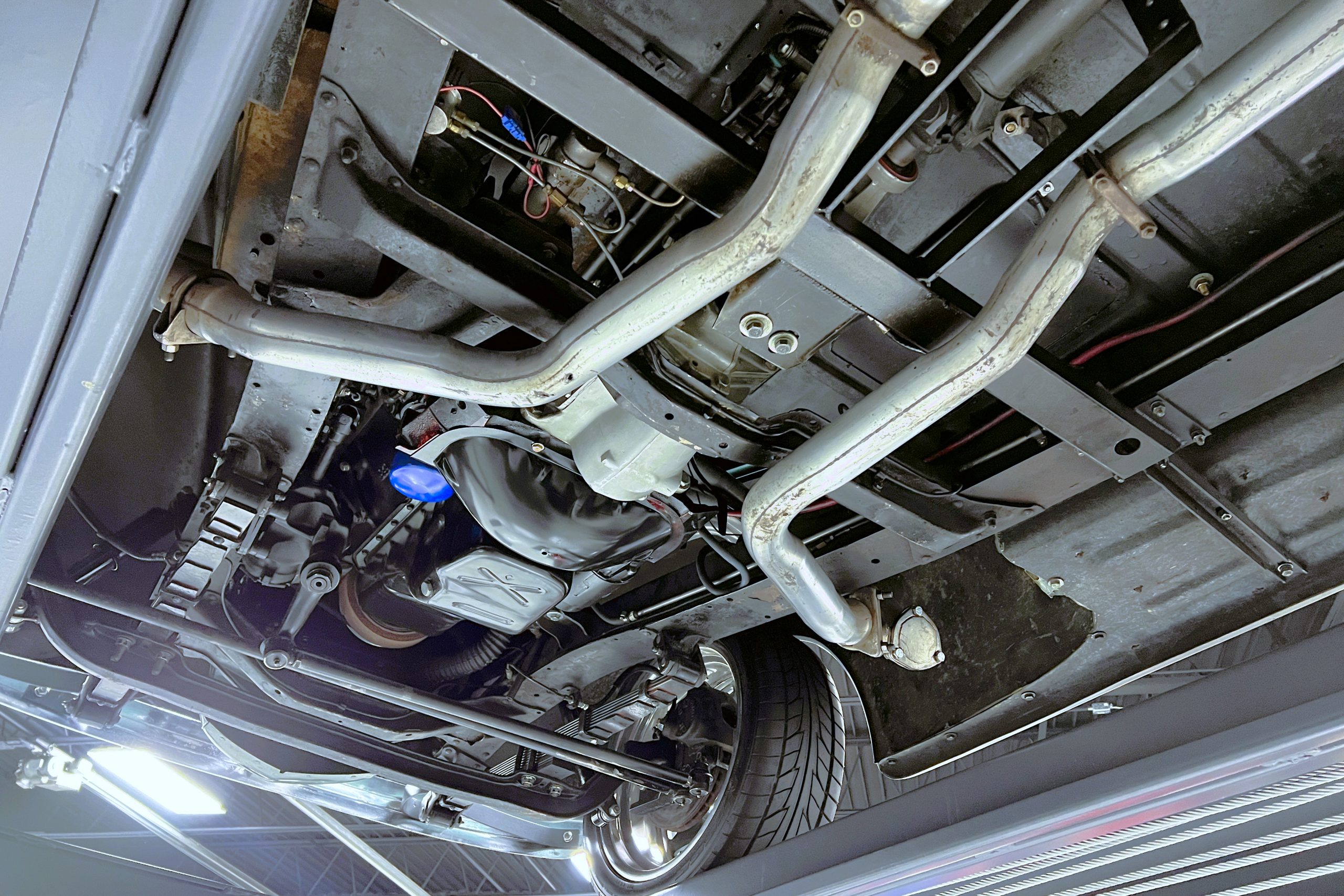 Under the hood sits a GM Performance ZZ3 350ci V8 crate engine which was rated by GM at 345 horsepower at 5,200 RPM and 395 lb.-ft. of torque at 3,500 rpm mated to a 1969 dated Muncie M-20 4-speed manual transmission. Fuel delivery arrives via a Holly 750 CFM 4-barrel carburetor with Delco Remy ignition. The exhaust is comprised of a set of mild headers with manual cutouts running through Flowmaster mufflers. The chassis and suspension are largely stock aside for extra bracing and gas shock absorbers. It has a Ford 9″ rear-end and braking is provided by discs up front and drums in the back and it’s all riding on a set of one-off custom-made color-matched Rushforth artillery style wheels with polished lips sized 18″ up front and 20″ in the back mounted on Nitto NT555 Extreme ZR tires with 2014 date codes.