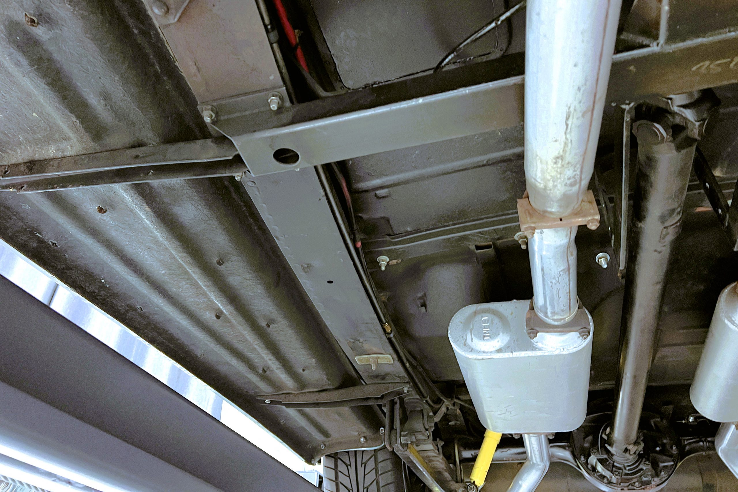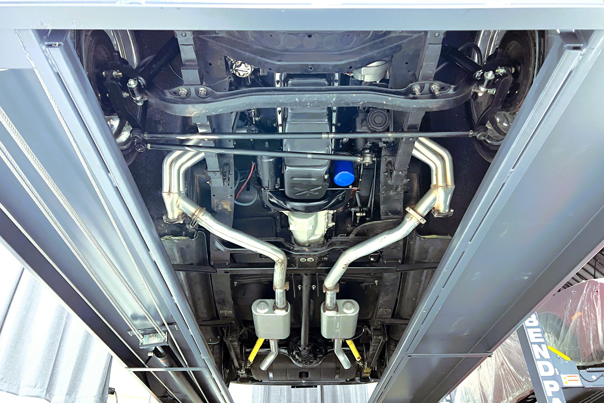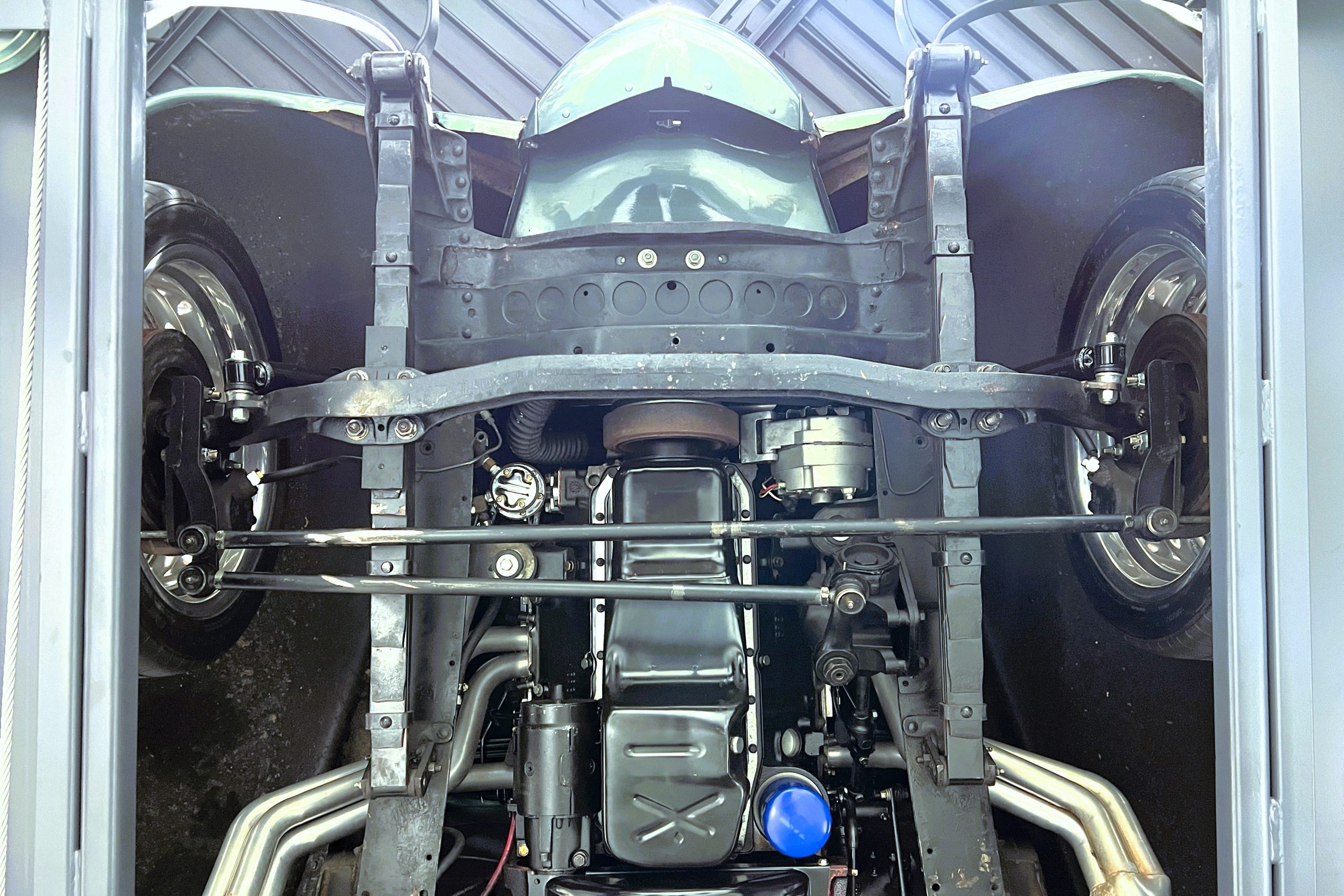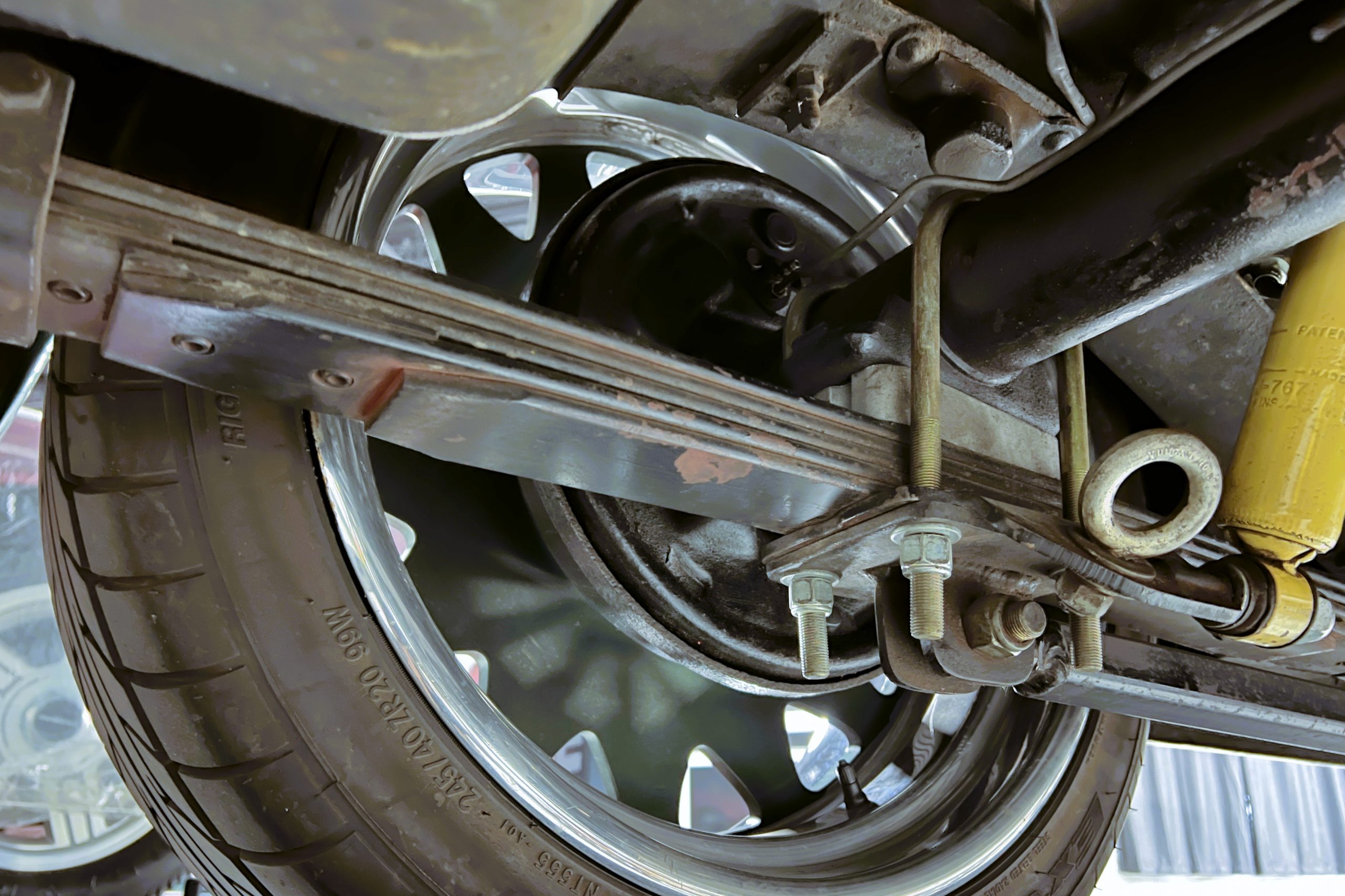 Under the hood sits a GM Performance ZZ3 350ci V8 crate engine which was rated by GM at 345 horsepower at 5,200 RPM and 395 lb.-ft. of torque at 3,500 rpm mated to a 1969 dated Muncie M-20 4-speed manual transmission. Fuel delivery arrives via a Holly 750 CFM 4-barrel carburetor with Delco Remy ignition. The exhaust is comprised of a set of mild headers with manual cutouts running through Flowmaster mufflers. The chassis and suspension are largely stock aside for extra bracing and gas shock absorbers. It has a Ford 9″ rear-end and braking is provided by discs up front and drums in the back and it’s all riding on a set of one-off custom-made color-matched Rushforth artillery style wheels with polished lips sized 18″ up front and 20″ in the back mounted on Nitto NT555 Extreme ZR tires with 2014 date codes.