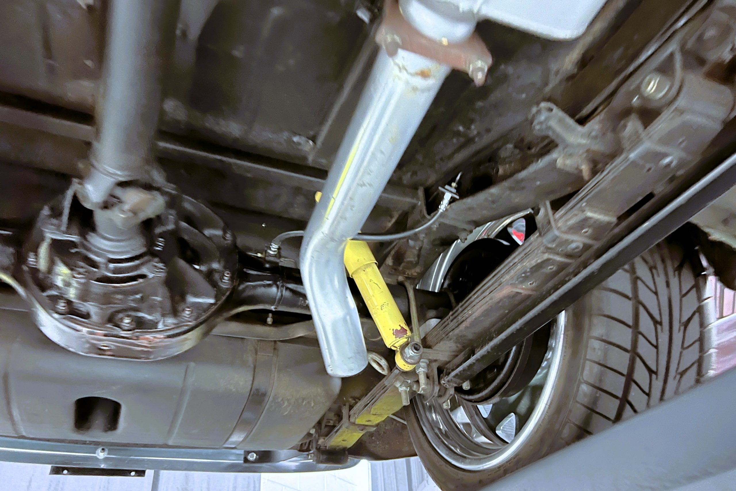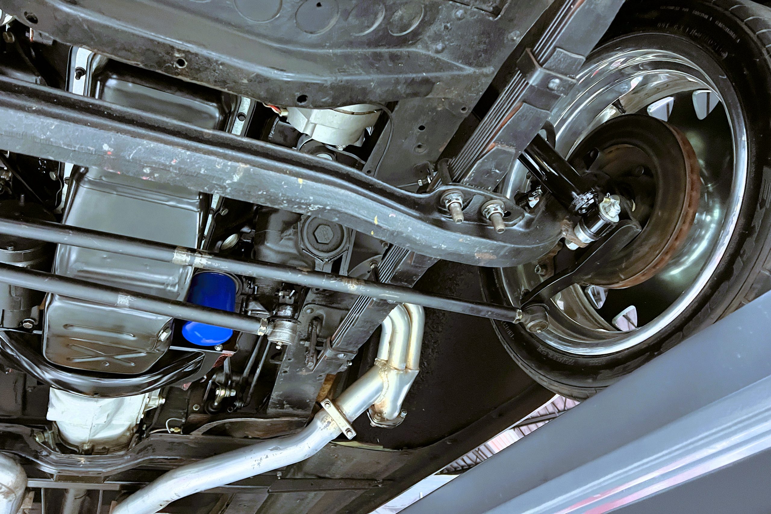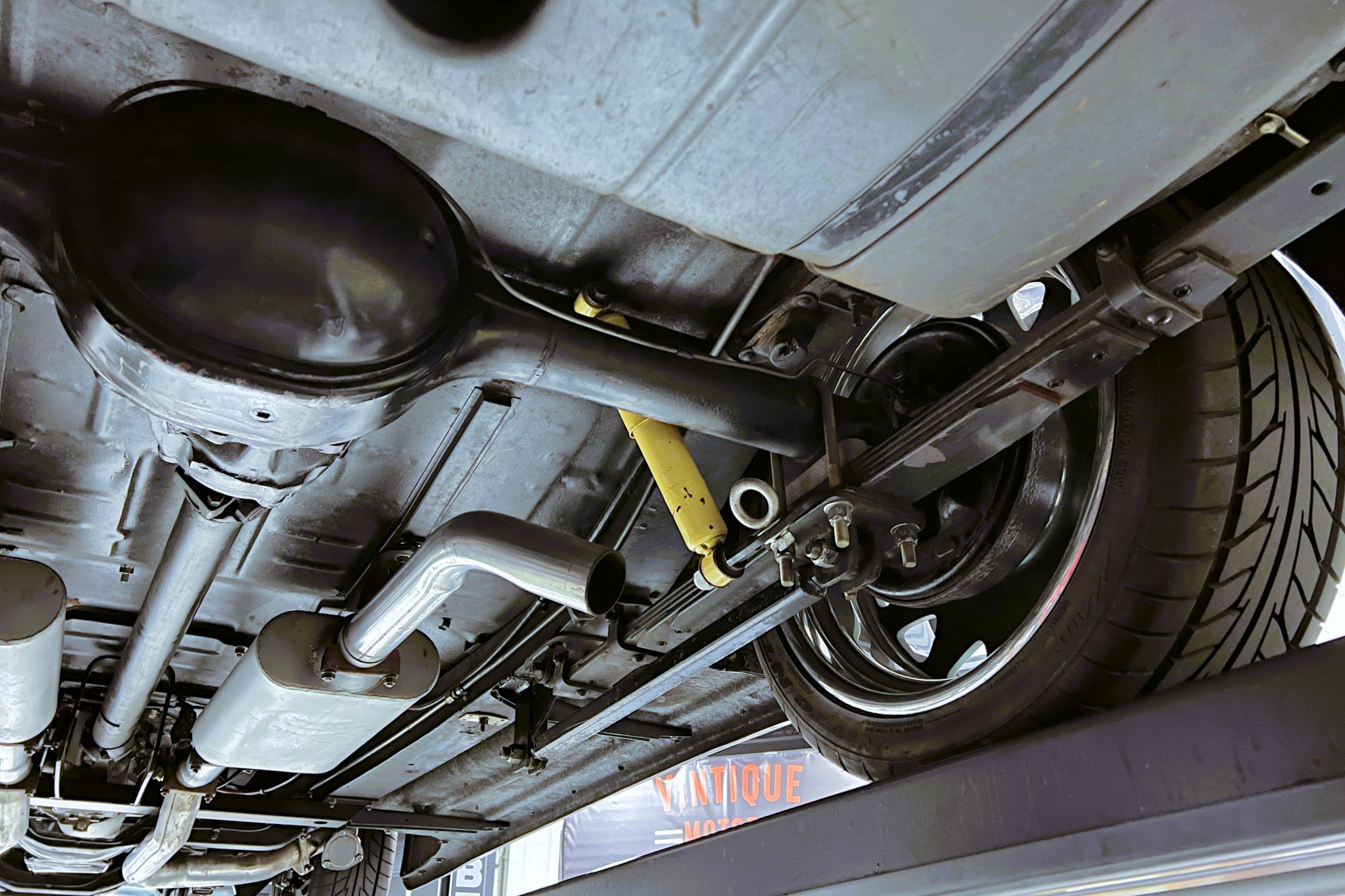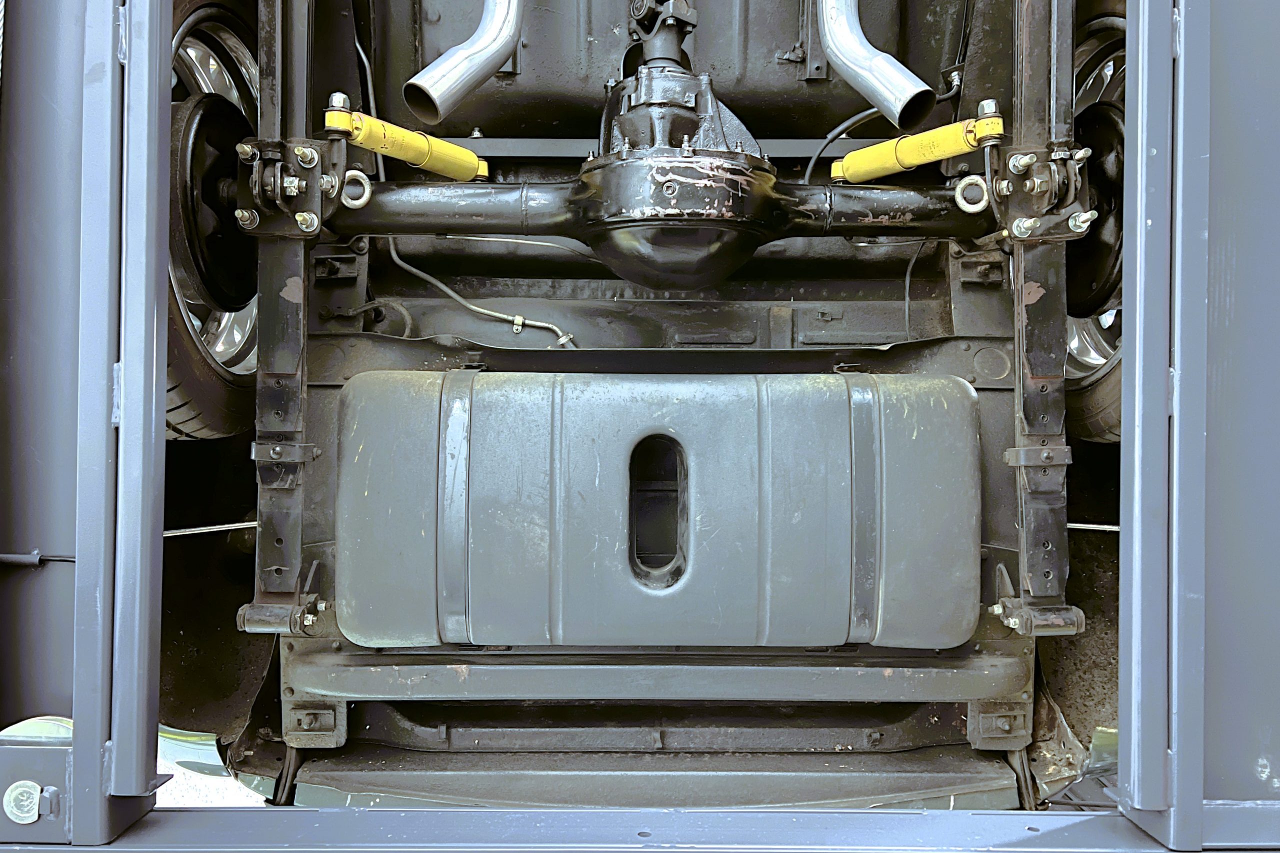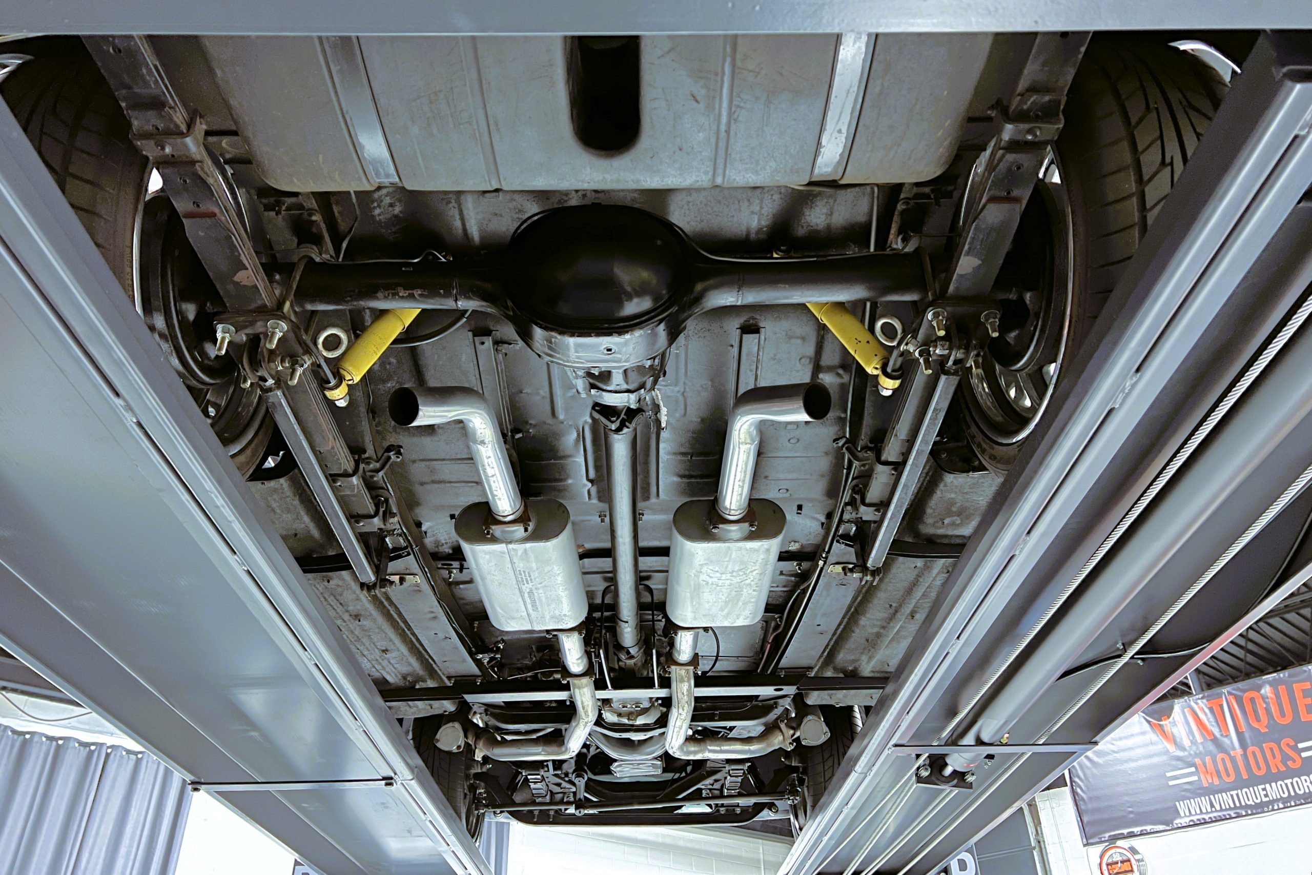 Under the hood sits a GM Performance ZZ3 350ci V8 crate engine which was rated by GM at 345 horsepower at 5,200 RPM and 395 lb.-ft. of torque at 3,500 rpm mated to a 1969 dated Muncie M-20 4-speed manual transmission. Fuel delivery arrives via a Holly 750 CFM 4-barrel carburetor with Delco Remy ignition. The exhaust is comprised of a set of mild headers with manual cutouts running through Flowmaster mufflers. The chassis and suspension are largely stock aside for extra bracing and gas shock absorbers. It has a Ford 9″ rear-end and braking is provided by discs up front and drums in the back and it’s all riding on a set of one-off custom-made color-matched Rushforth artillery style wheels with polished lips sized 18″ up front and 20″ in the back mounted on Nitto NT555 Extreme ZR tires with 2014 date codes.