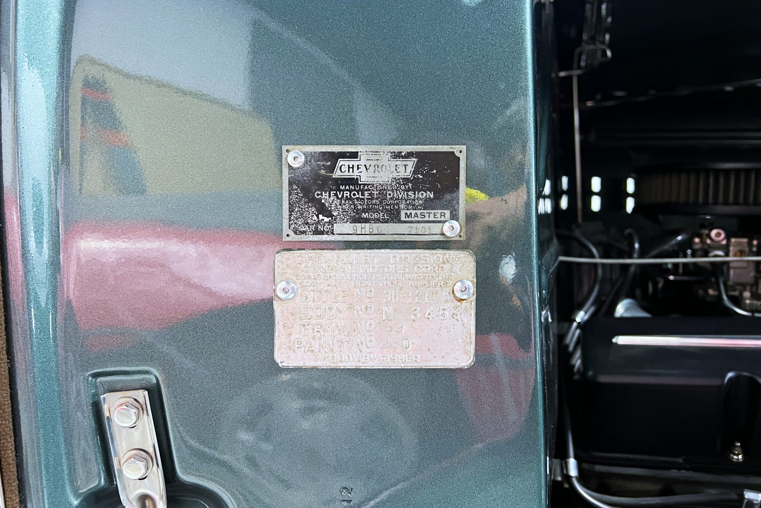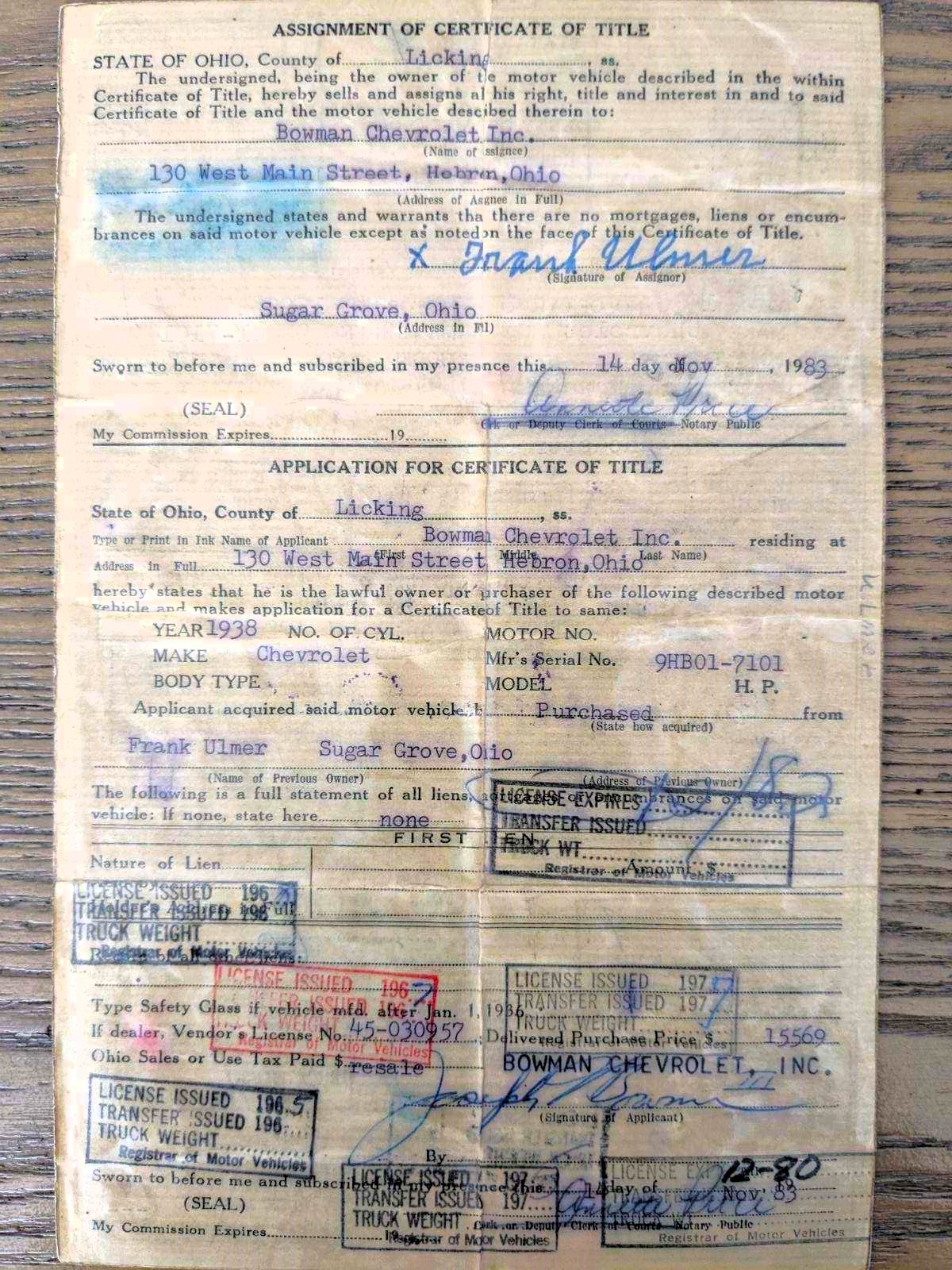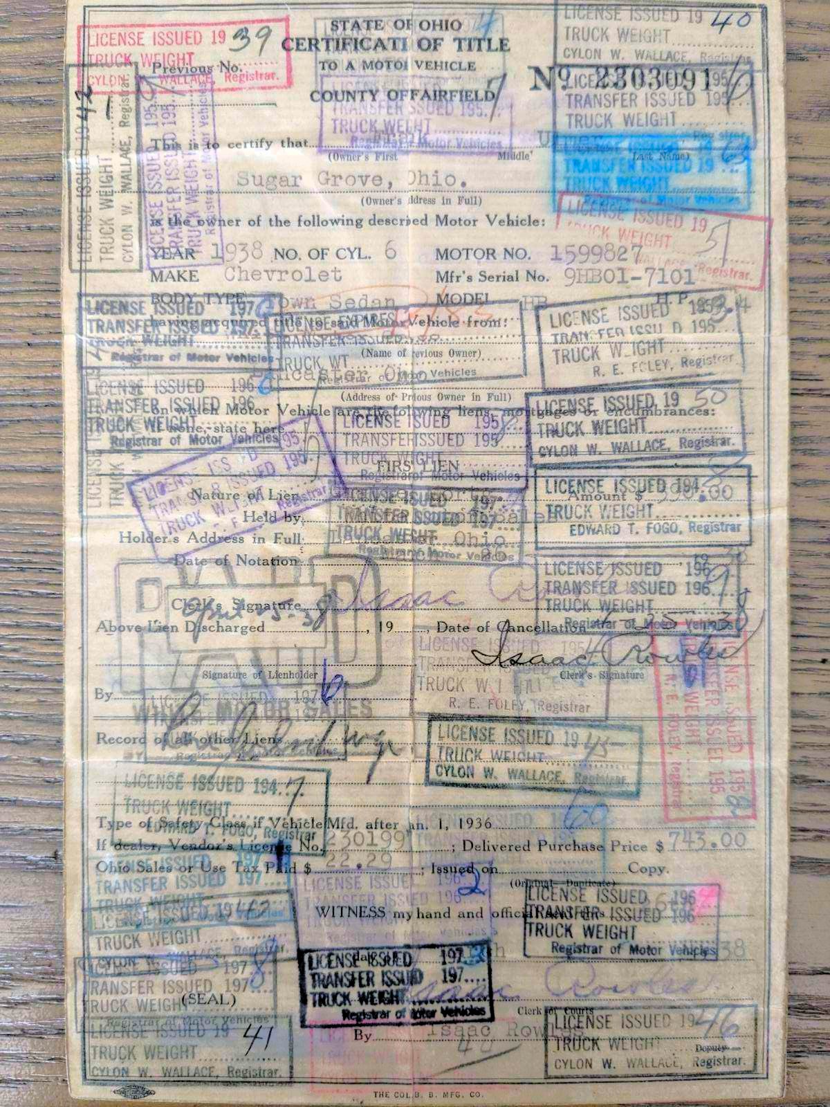 This 1938 Master Town Sedan was built in GM’s Norwood, OH assembly plant in January 1938 originally finished in gunmetal gray over a tan interior. Per the original title included with the car, it was sold new by Chevrolet dealer White Motor Sales in Lancaster, OH to a gentleman from Sugar Grove, OH on 3/26/1938 for $743 in which he retained it for 45 years before selling it to Bowman Chevrolet in Hebron, OH on 11/14/1983 for $15,569. Sometime in the late 1980’s, it was purchased by a gentleman from Michigan who proceeded to restore it to a high level along with tastefully hot rodding it. He would retain the car for approximately 27 years until his passing in which his son, a Detroit Speed executive from South Lyon, MI, then assumed titled ownership of it in 2015 and proceeded to update the car with a new interior and wheels. We then purchased it from him on 8/3/2020 to add to our private collection.