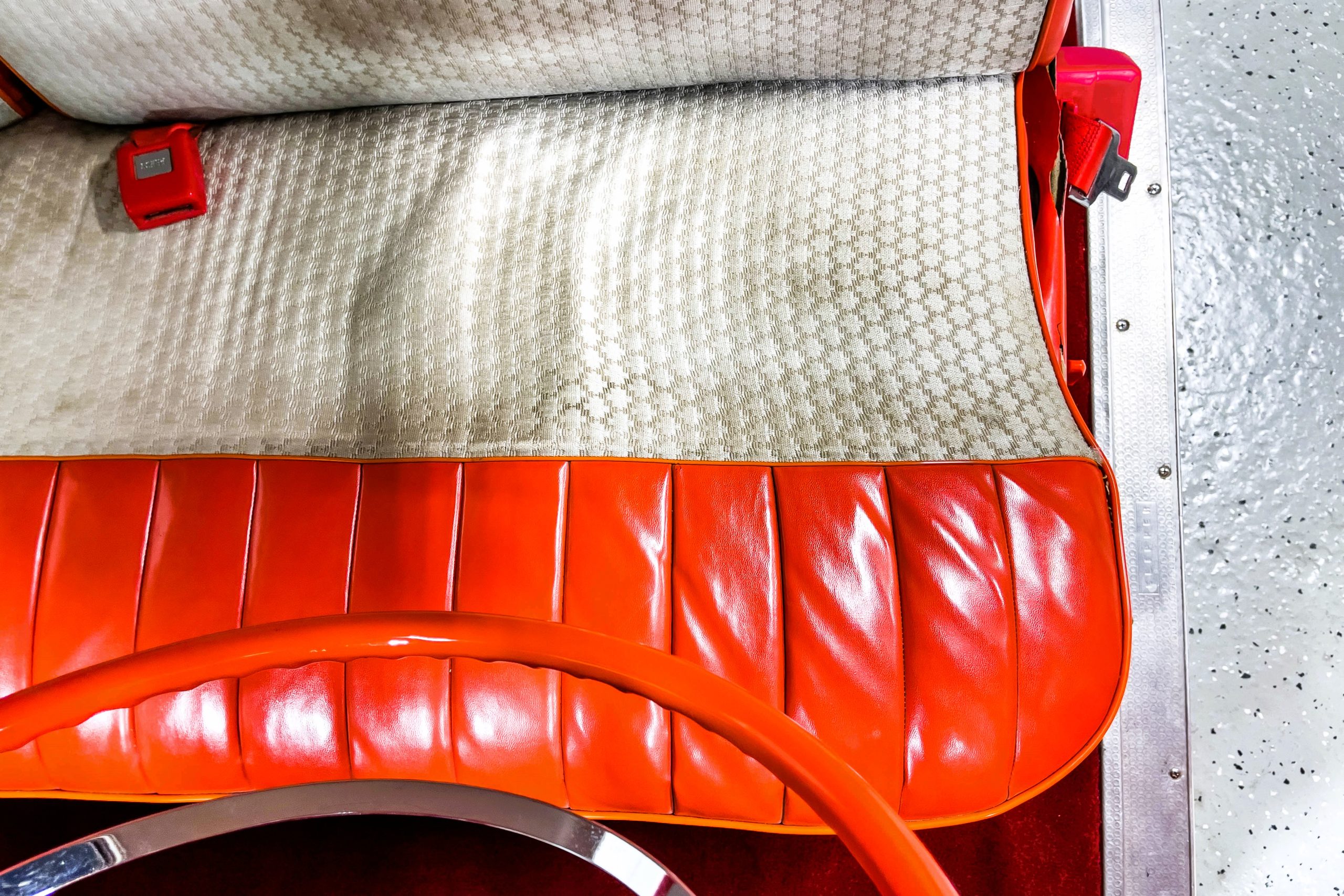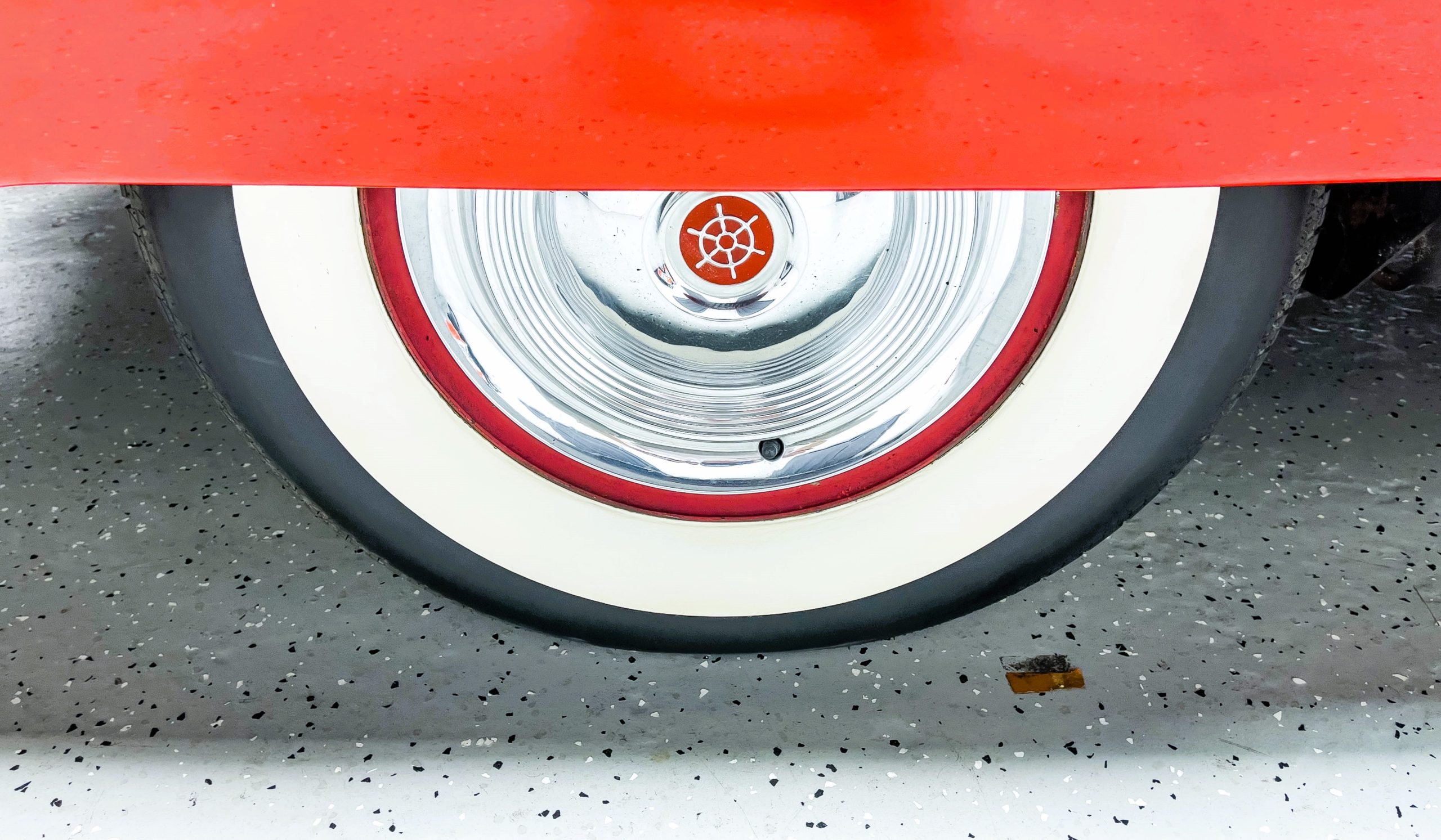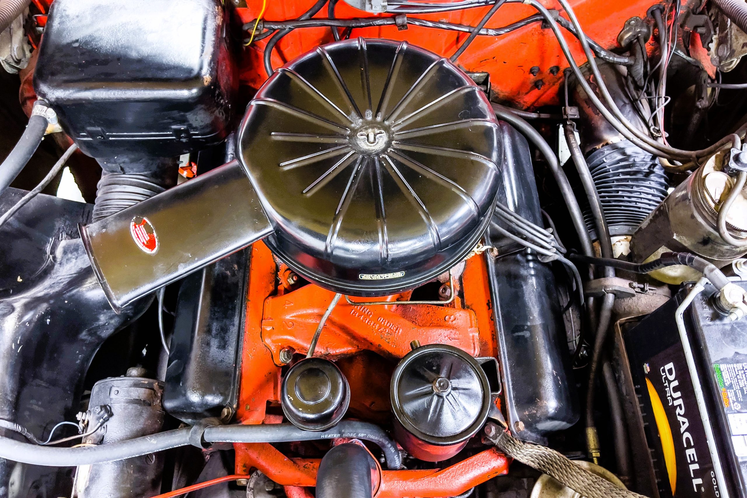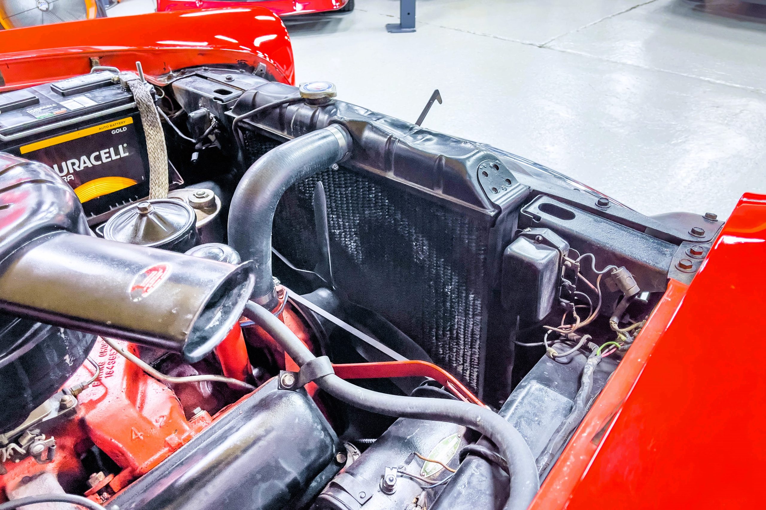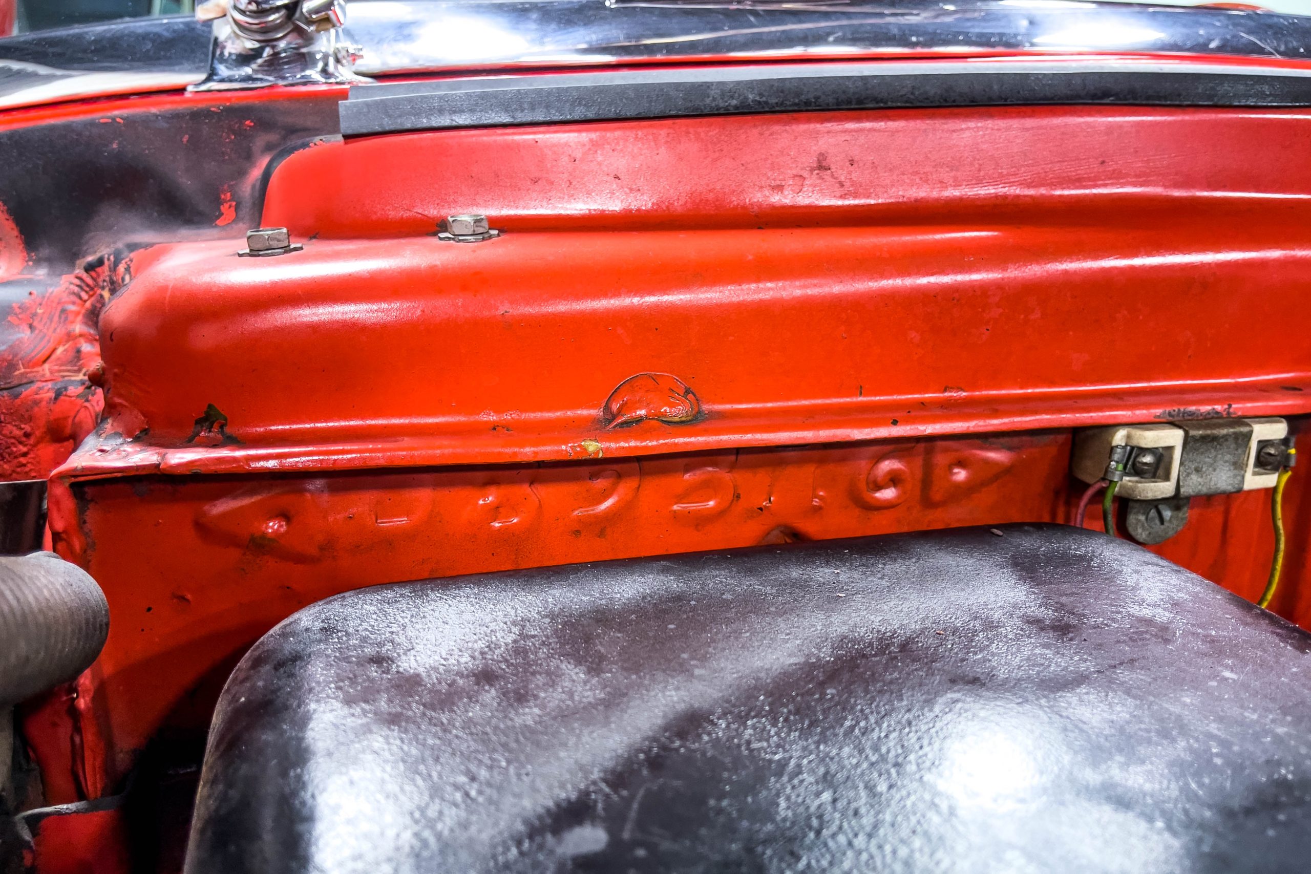 This 1955 Packard Clipper Super Panama, which was only offered as a 2-door hardtop coupe, is finished in two-tone Fire Opal and White Jade over a red interior. The Super Panama trim was the most expensive trim offered on the Clipper model with a retail cost of $3,100. Packard significantly altered the Clipper line in 1955 with a new design, new powertrain, and a new chassis. The car’s front was radically different, with a mesh grille, revised bumper, and a wraparound windshield. Mechanically, a 12-volt electrical system was adopted, a new torsion bar suspension was installed, the Ultramatic transmission was enhanced, and a V8 replaced the straight-eight engines.