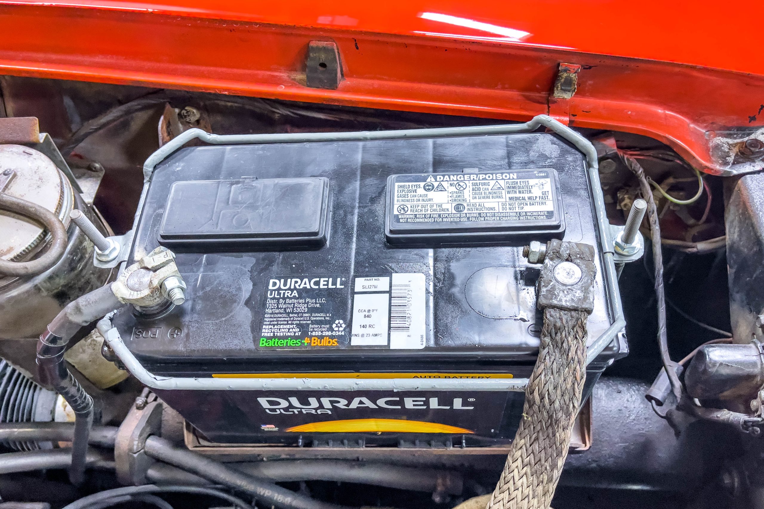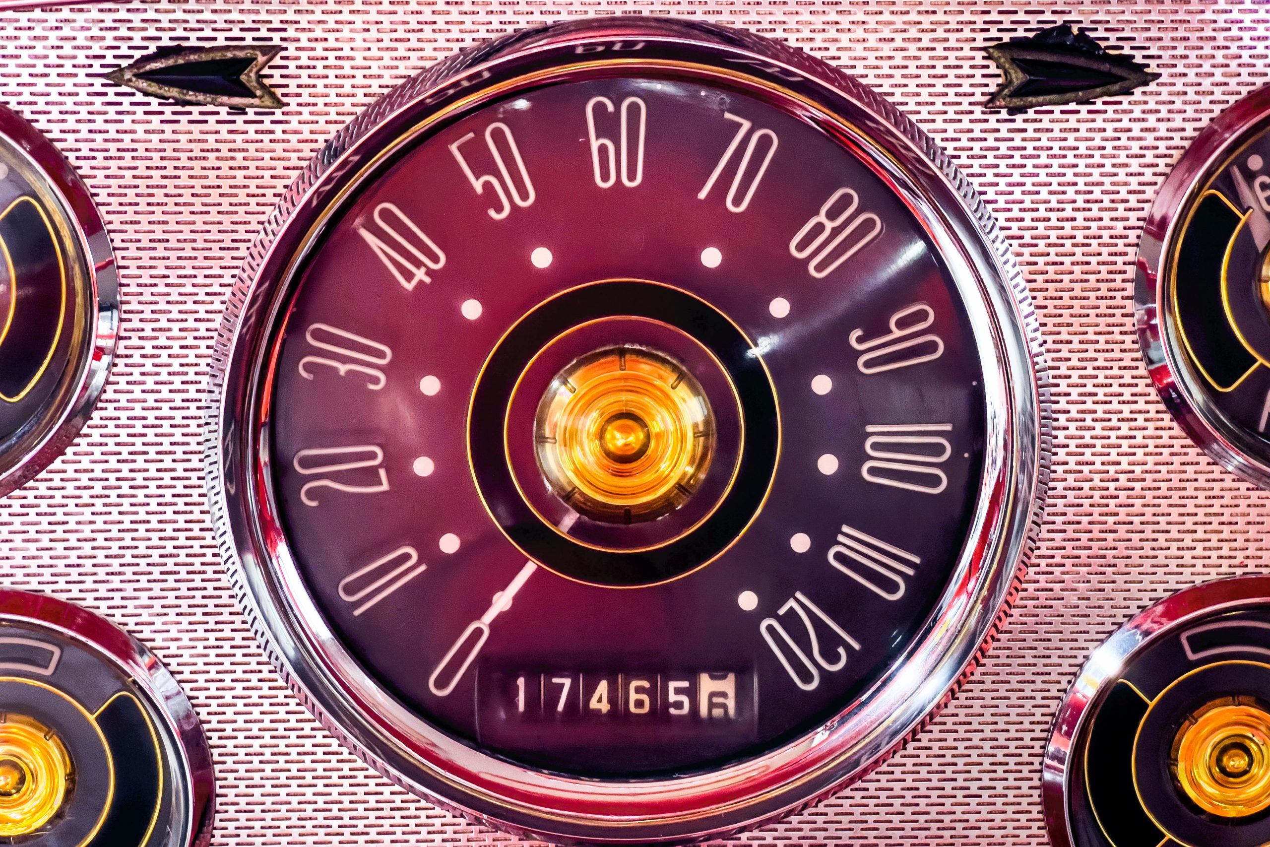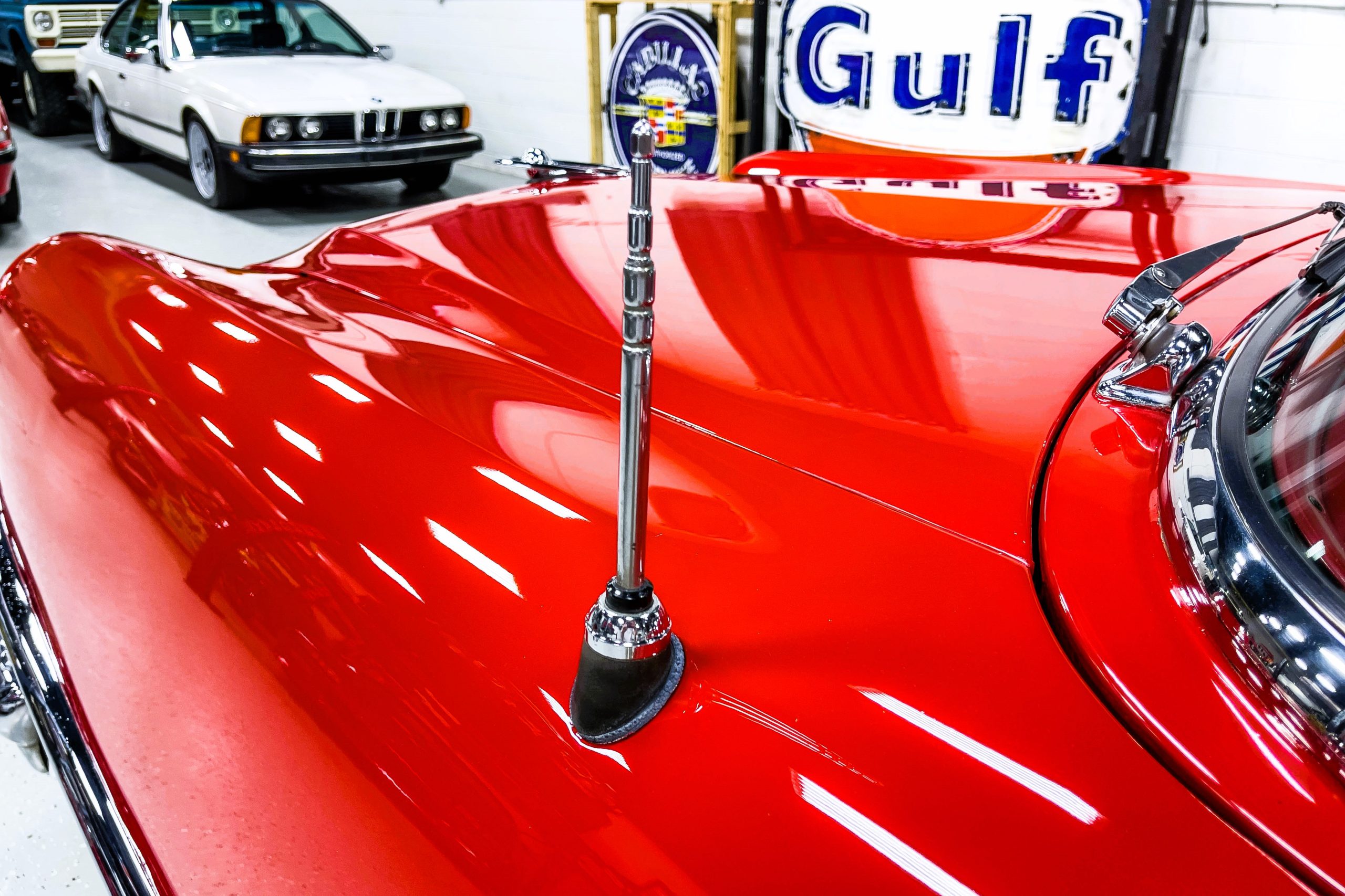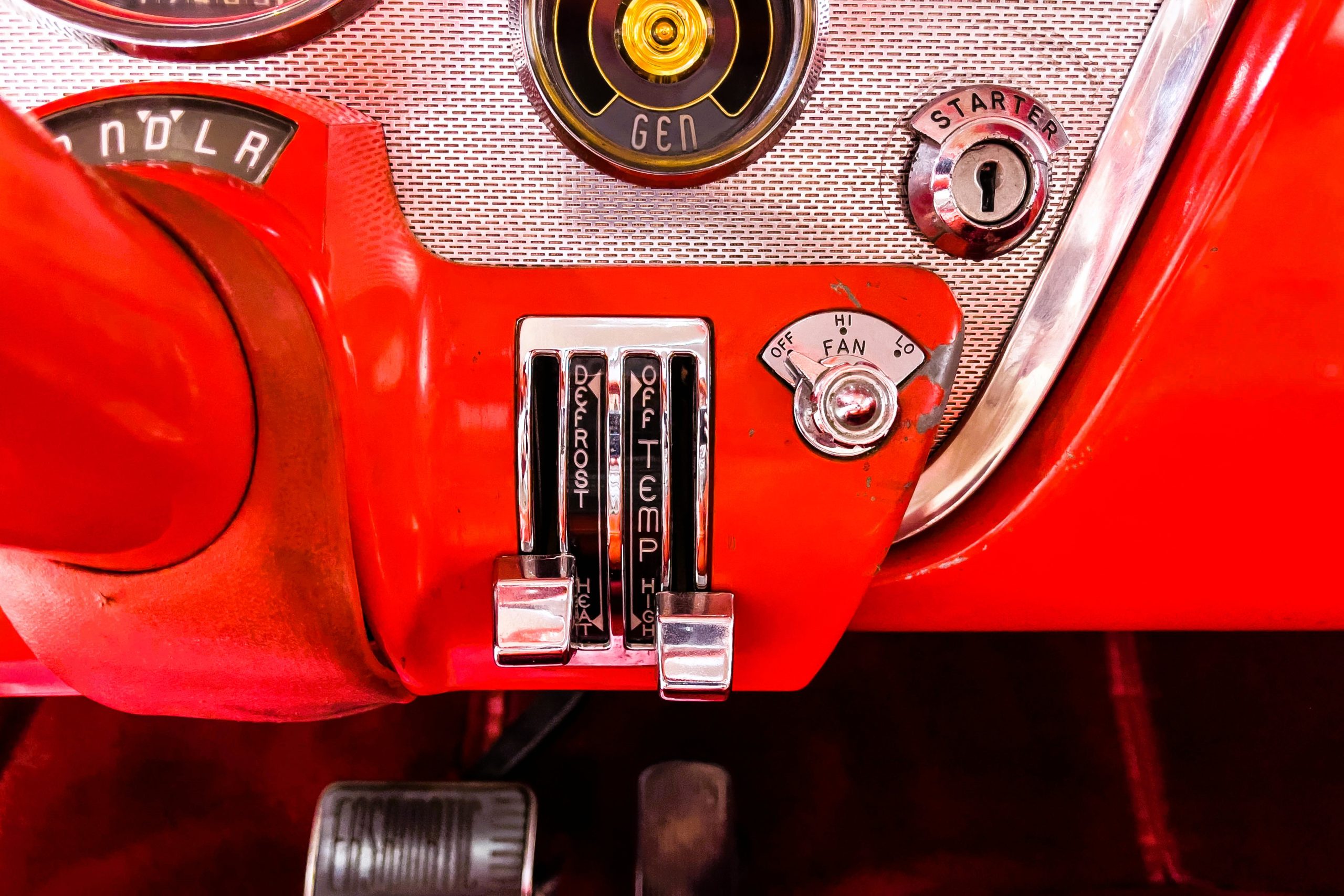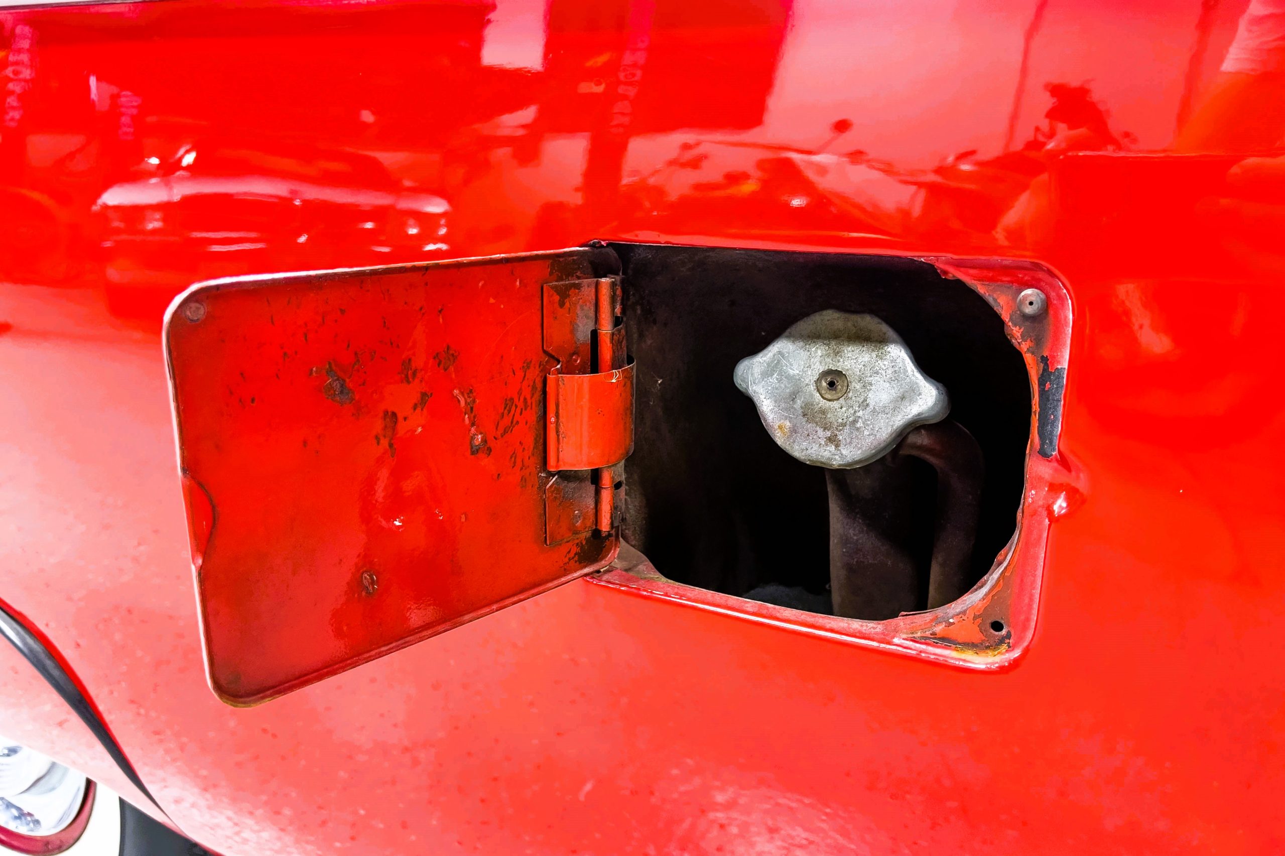 This 1955 Packard Clipper Super Panama, which was only offered as a 2-door hardtop coupe, is finished in two-tone Fire Opal and White Jade over a red interior. The Super Panama trim was the most expensive trim offered on the Clipper model with a retail cost of $3,100. Packard significantly altered the Clipper line in 1955 with a new design, new powertrain, and a new chassis. The car’s front was radically different, with a mesh grille, revised bumper, and a wraparound windshield. Mechanically, a 12-volt electrical system was adopted, a new torsion bar suspension was installed, the Ultramatic transmission was enhanced, and a V8 replaced the straight-eight engines.