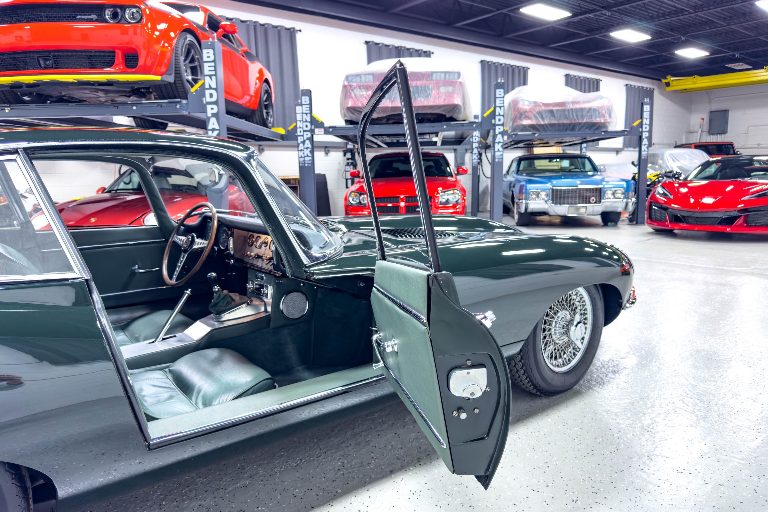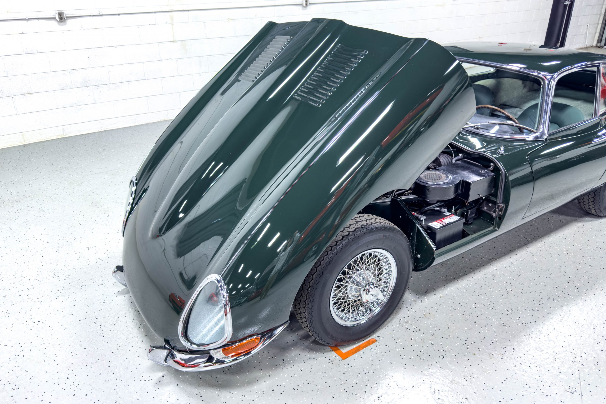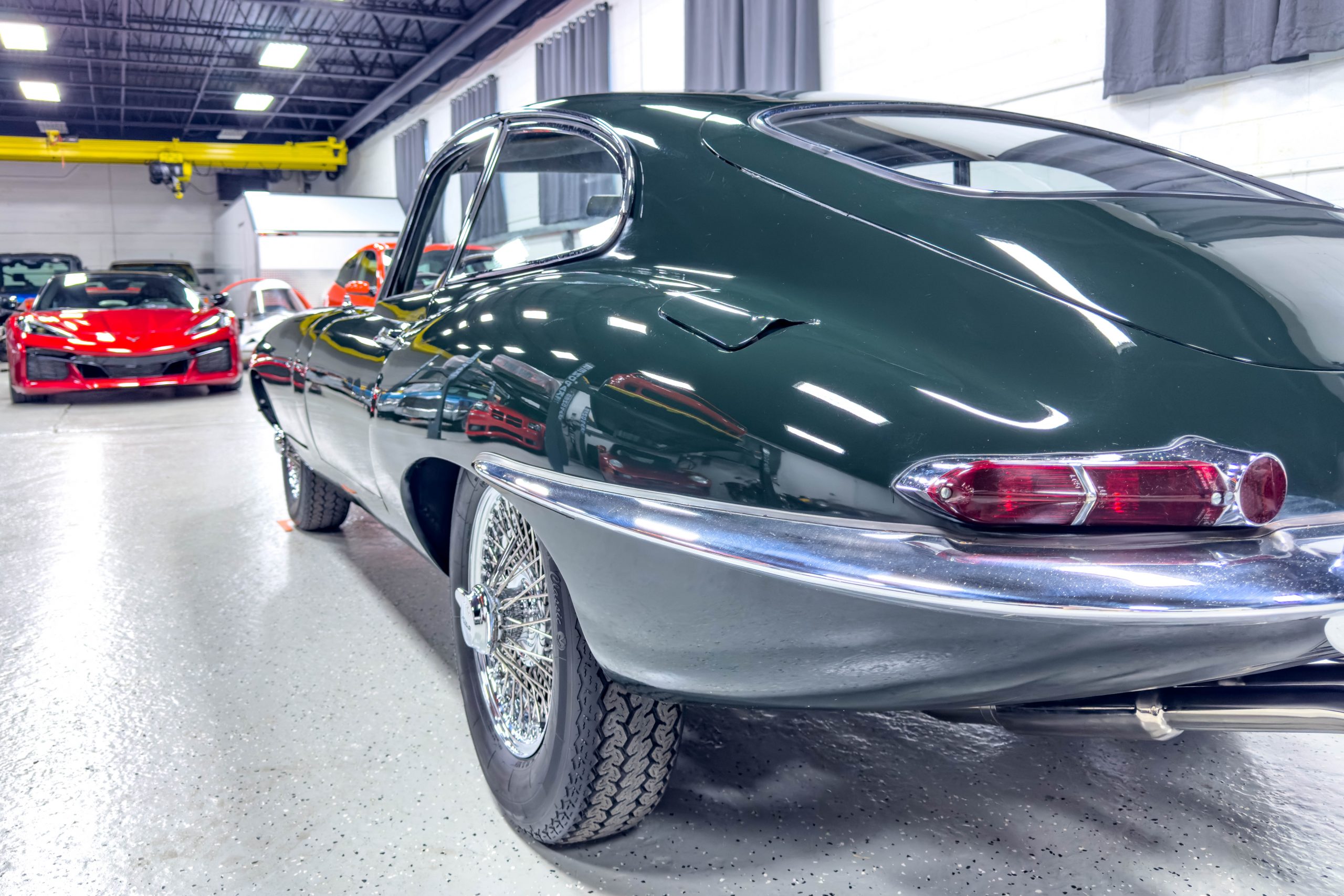 Per the Jaguar Hertiage Trust Certificate, this 1963 E-Type coupe was completed on March 6th, 1962, finished in opalescent gunmetal over a red interior and sold to its first owner on May 3rd, 1962, by Jaguar Cars of New York. Unfortunately, not much is known of its history in the 38 years between its original sale in 1962 and when a previous owner restored the car in the early-2000s. The recommissioning included a color change to British racing green over a green interior along with installing a Series 1.5 4.2-liter engine. In May 2021 it was acquired by a dealer in Miami, FL who proceeded to service the car before selling it a collector from Northville, MI a short time later. This owner enjoyed the car sparingly for the next 2 years until deciding it was time for another recommissioning which included $55,000 in service and updates conducted by the skilled craftsmen at Nostalgic Motoring in Auburn Hills, MI.