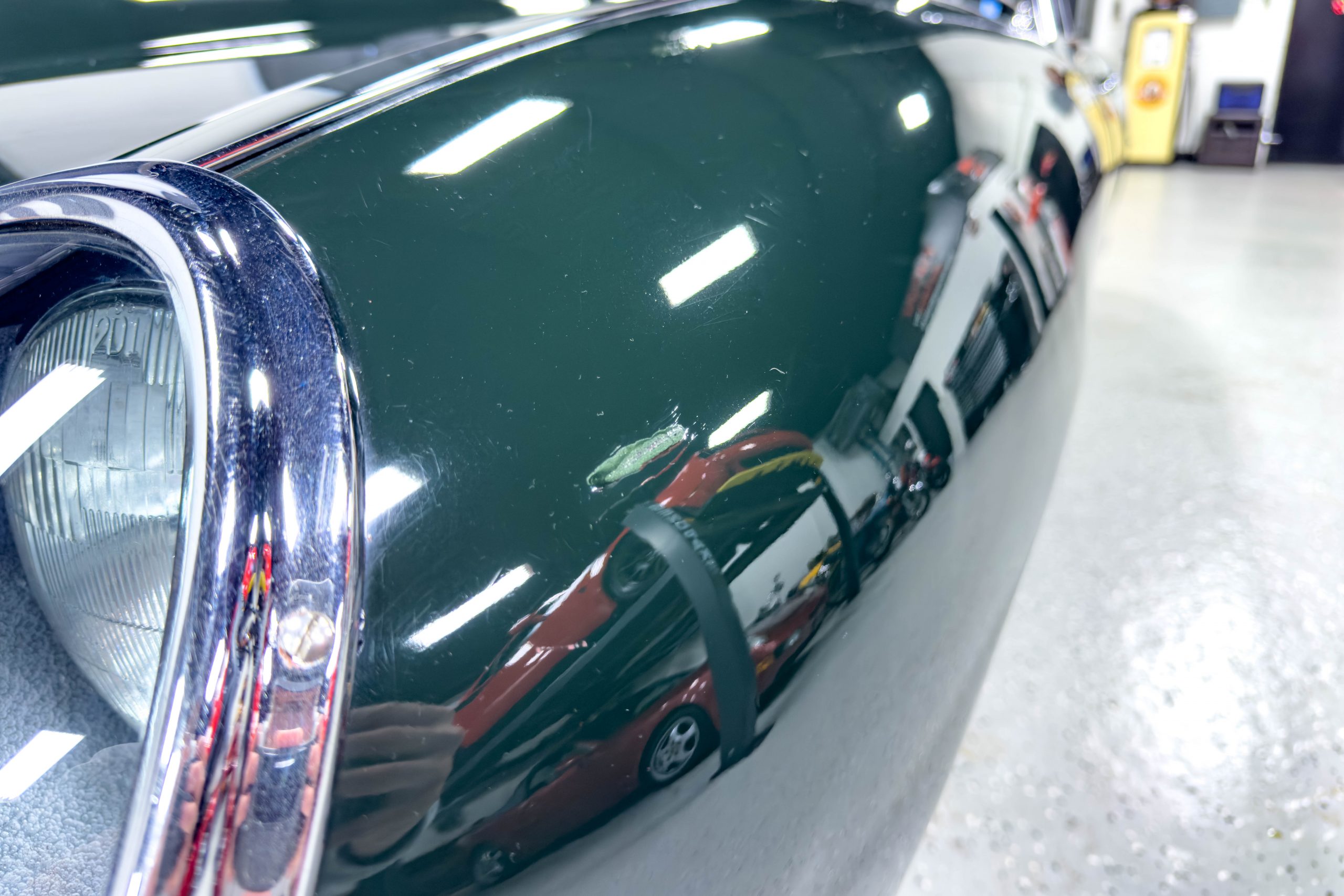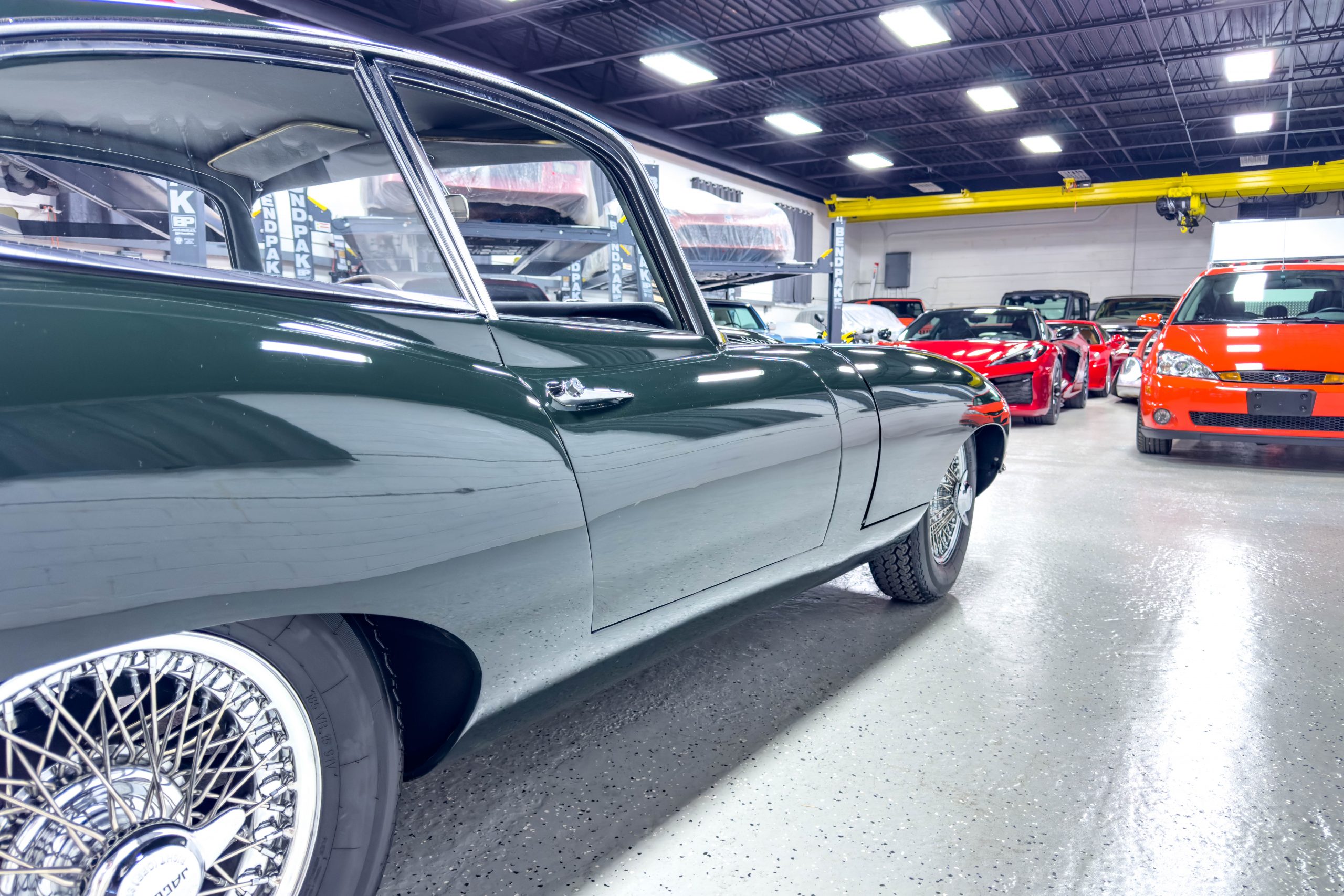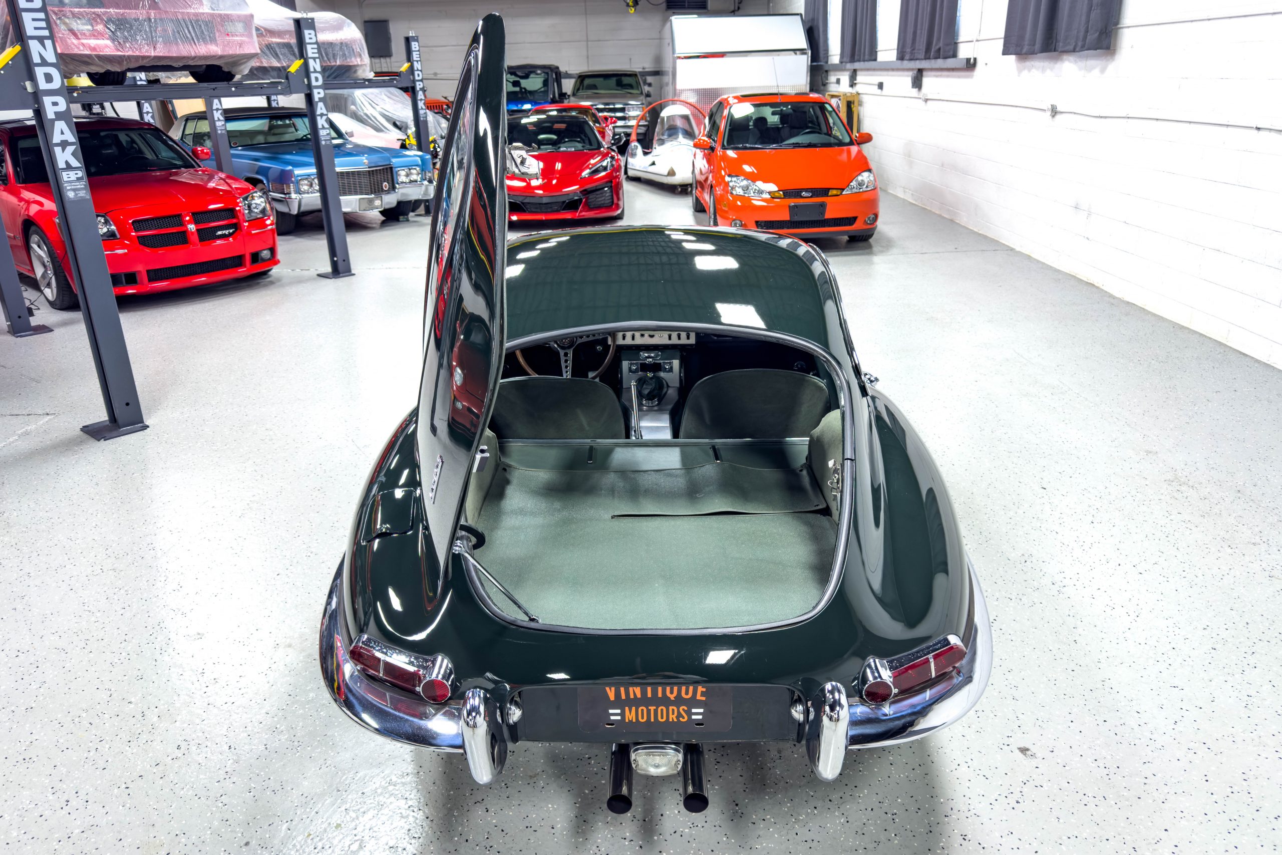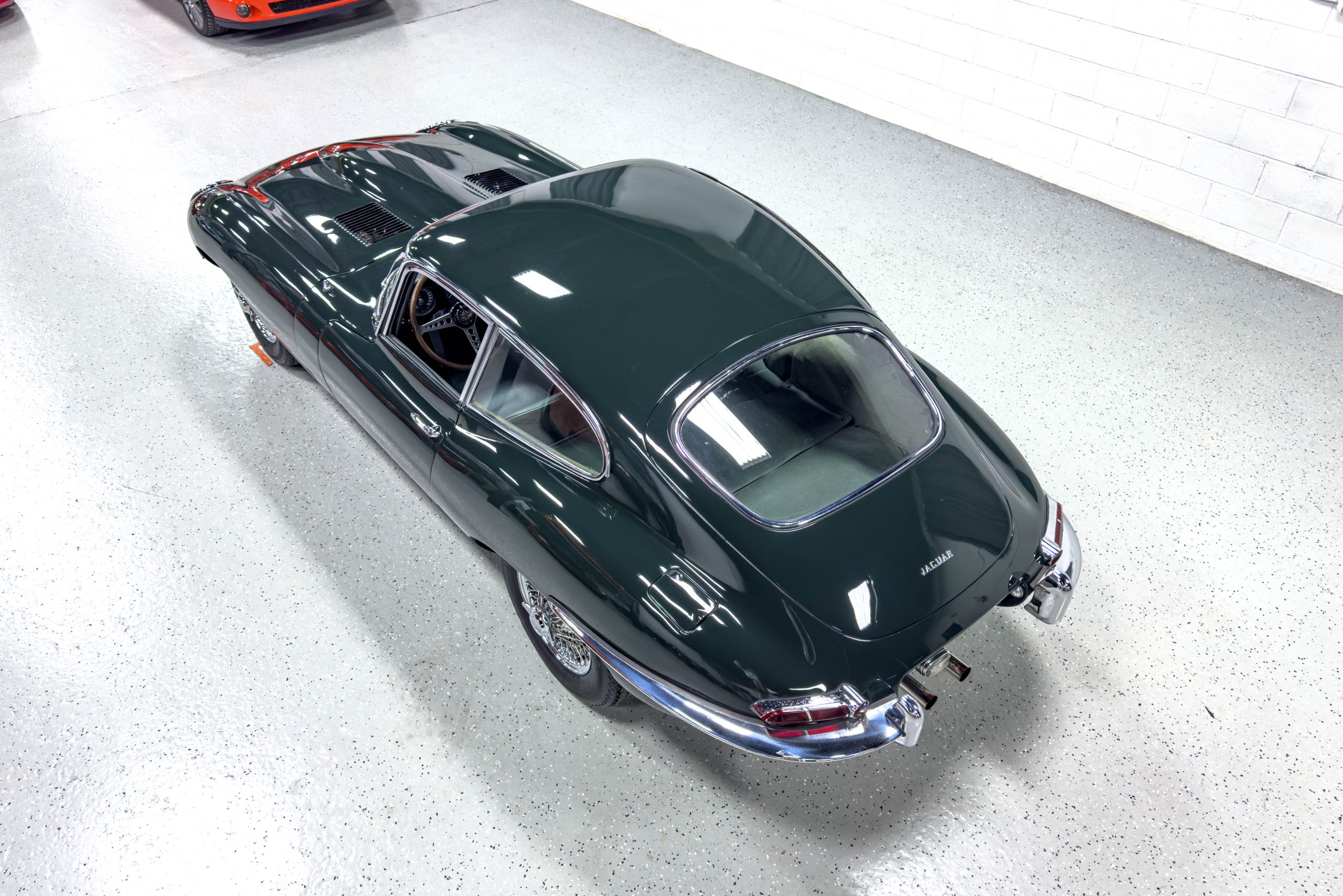 Per the Jaguar Hertiage Trust Certificate, this 1963 E-Type coupe was completed on March 6th, 1962, finished in opalescent gunmetal over a red interior and sold to its first owner on May 3rd, 1962, by Jaguar Cars of New York. Unfortunately, not much is known of its history in the 38 years between its original sale in 1962 and when a previous owner restored the car in the early-2000s. The recommissioning included a color change to British racing green over a green interior along with installing a Series 1.5 4.2-liter engine. In May 2021 it was acquired by a dealer in Miami, FL who proceeded to service the car before selling it a collector from Northville, MI a short time later. This owner enjoyed the car sparingly for the next 2 years until deciding it was time for another recommissioning which included $55,000 in service and updates conducted by the skilled craftsmen at Nostalgic Motoring in Auburn Hills, MI.