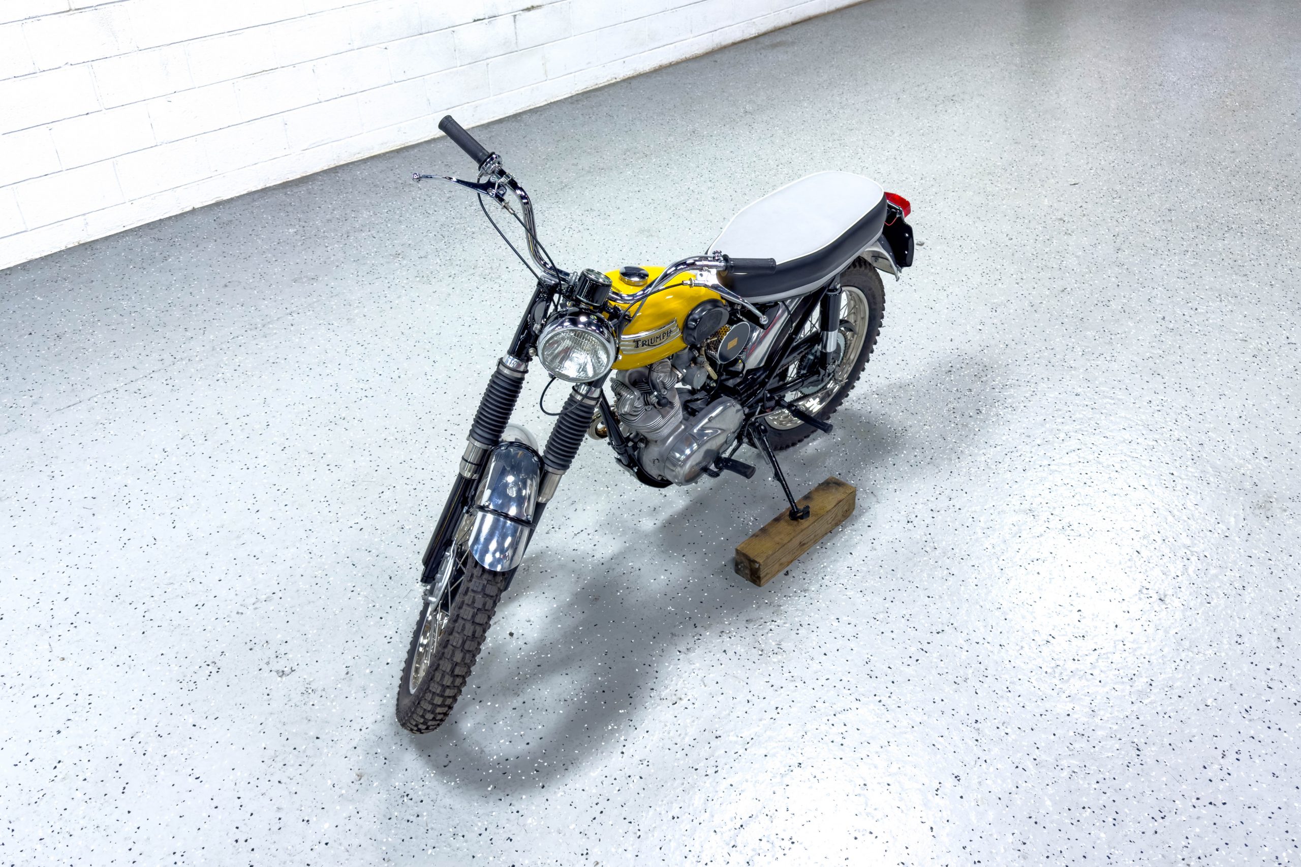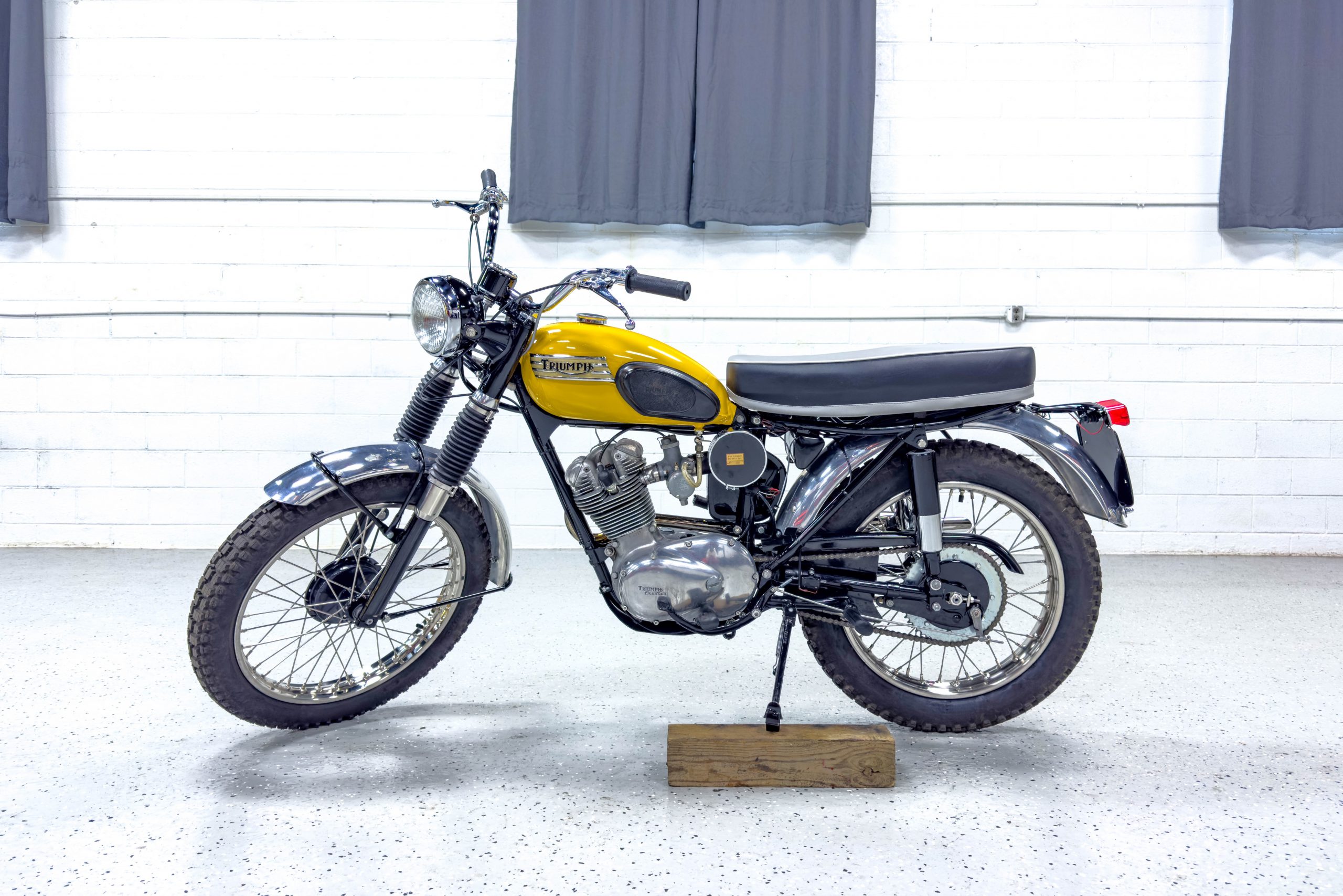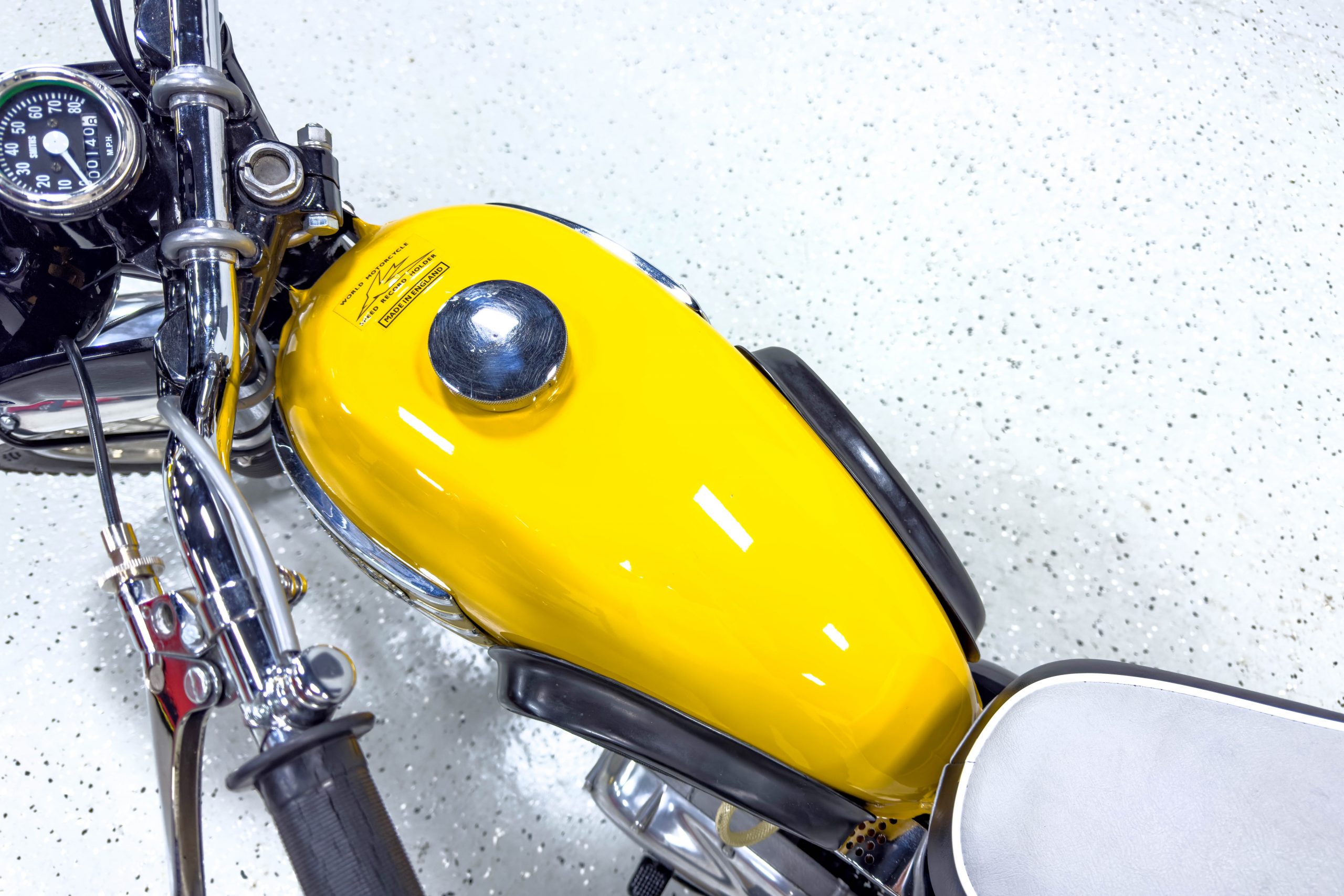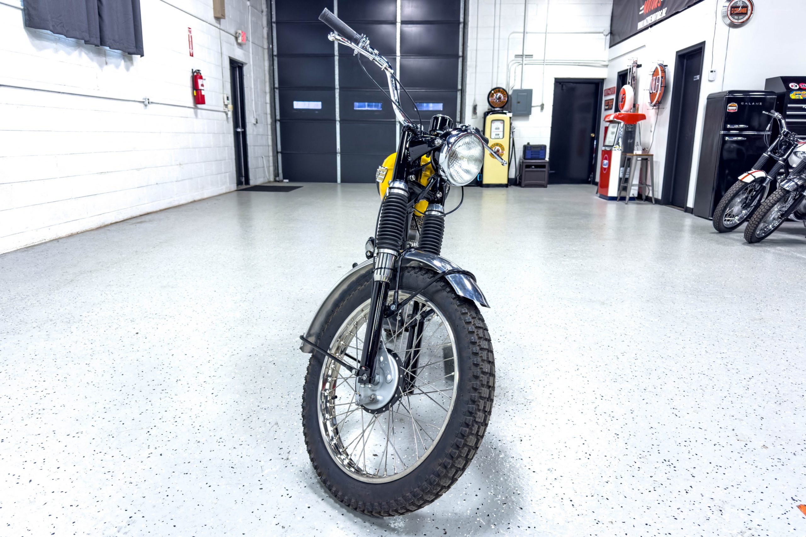 This 1966 Triumph Mountain Cub is the recipient of a comprehensive restoration completed in 2021 and is beautifully presented in Hunting Yellow with Black oil tank and stainless-steel fenders. It is powered by a 199cc four-stroke single paired with a four-speed transmission.