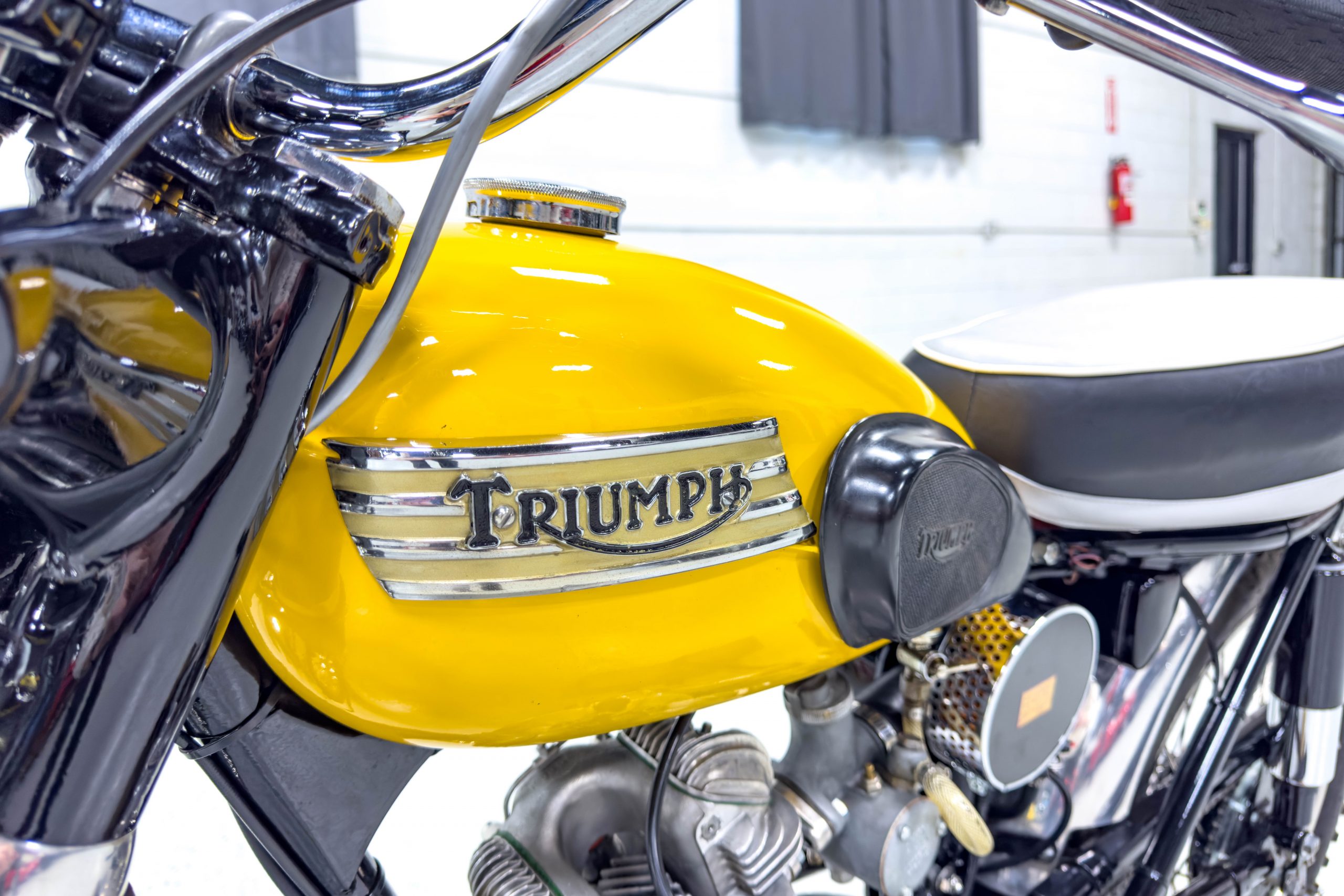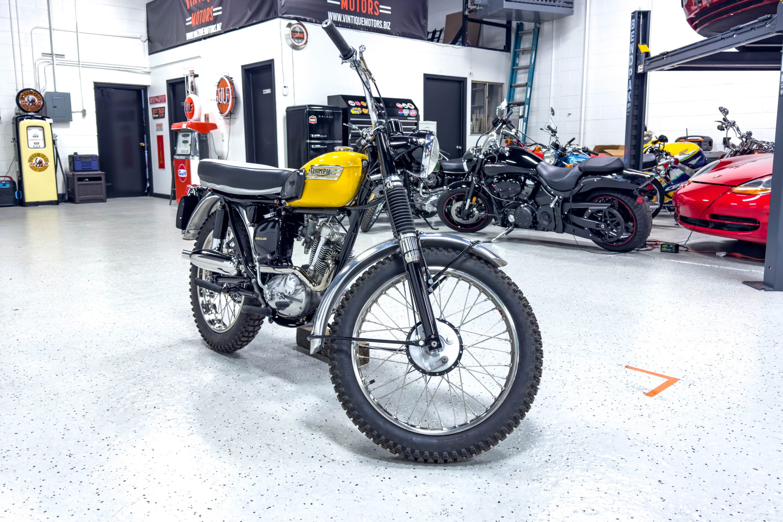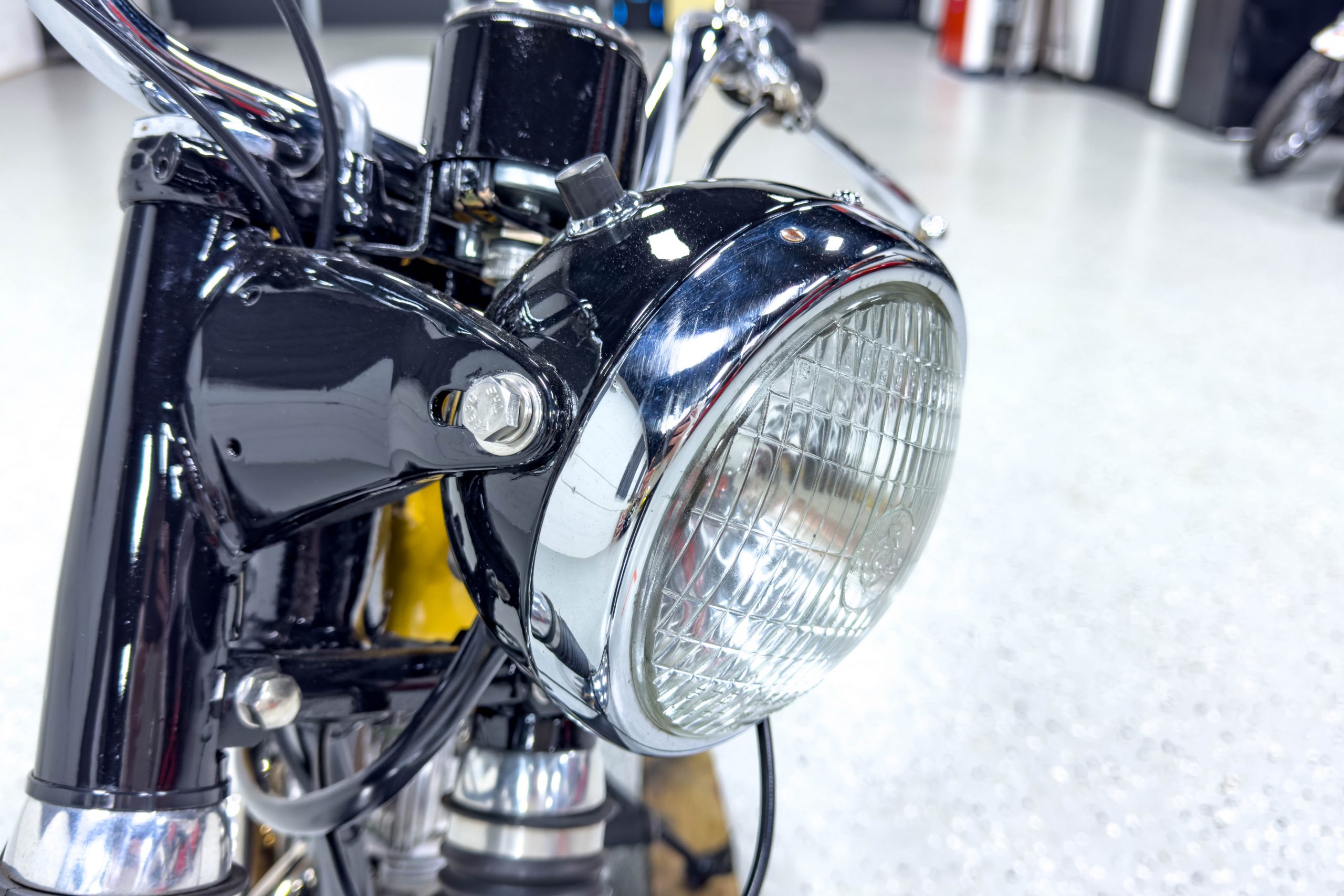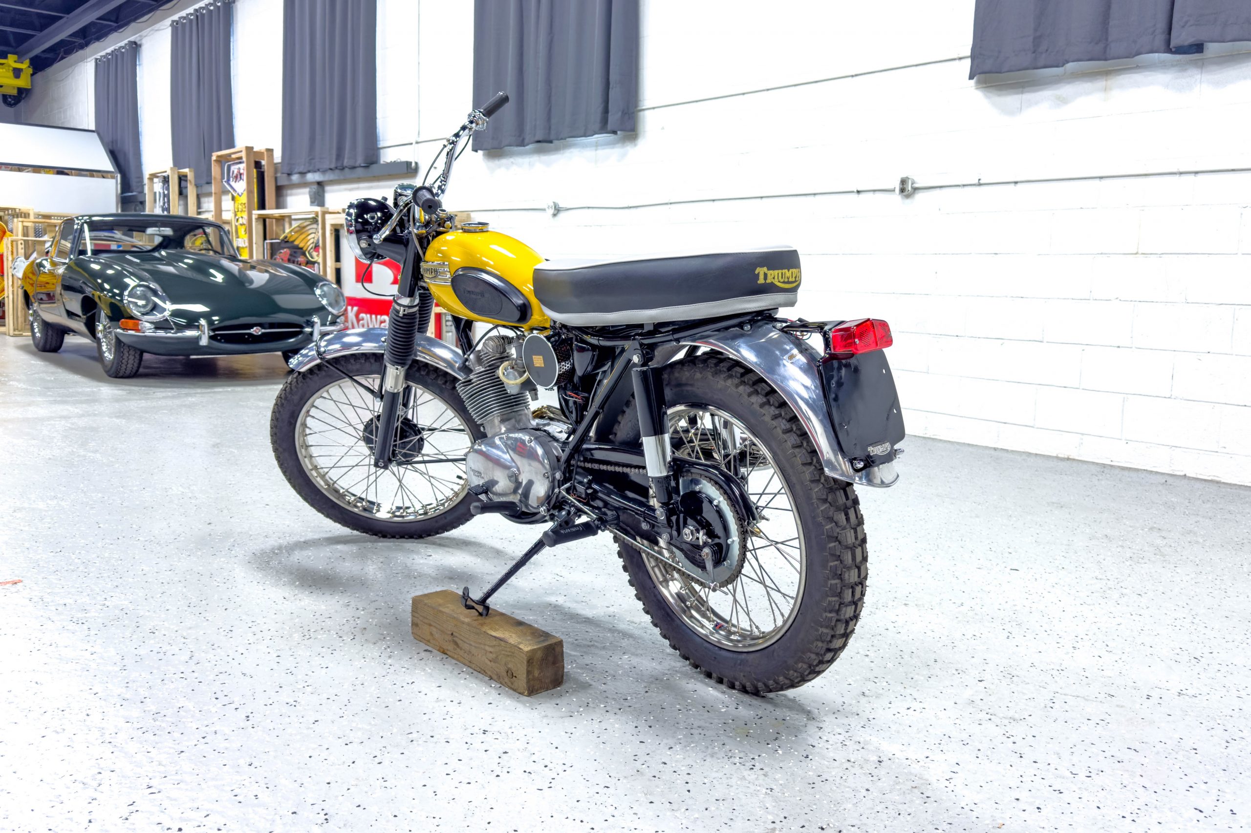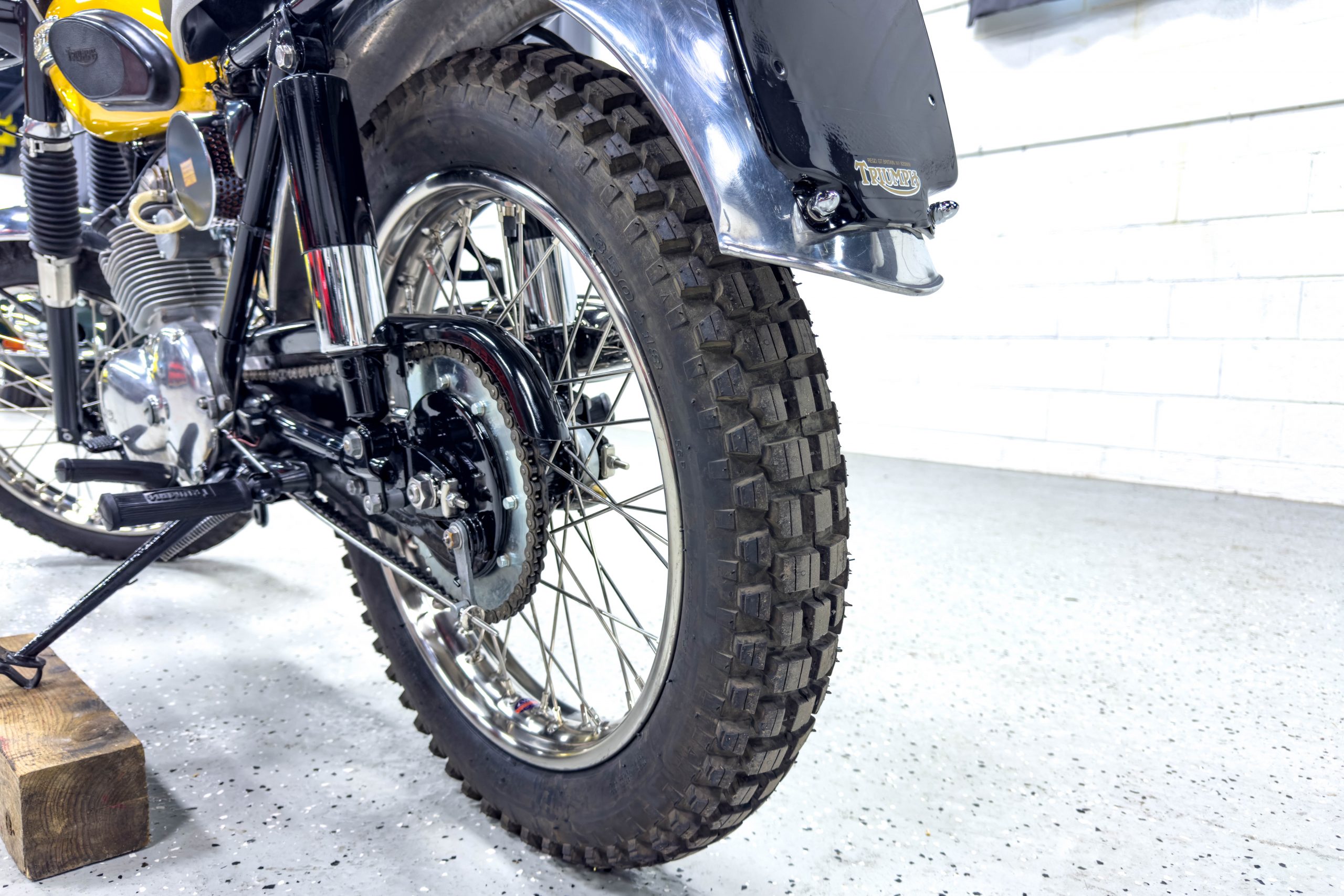 This 1966 Triumph Mountain Cub is the recipient of a comprehensive restoration completed in 2021 and is beautifully presented in Hunting Yellow with Black oil tank and stainless-steel fenders. It is powered by a 199cc four-stroke single paired with a four-speed transmission.