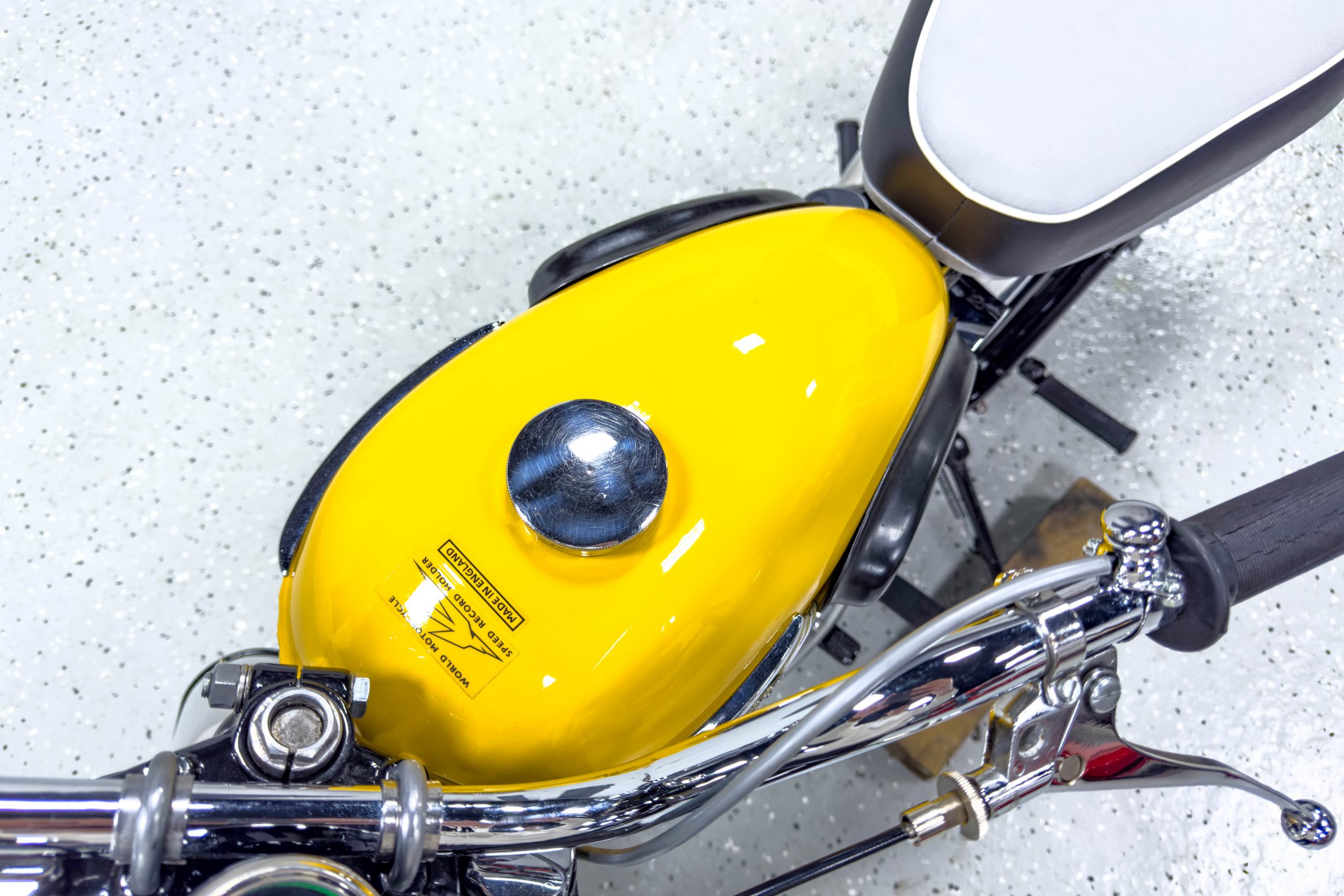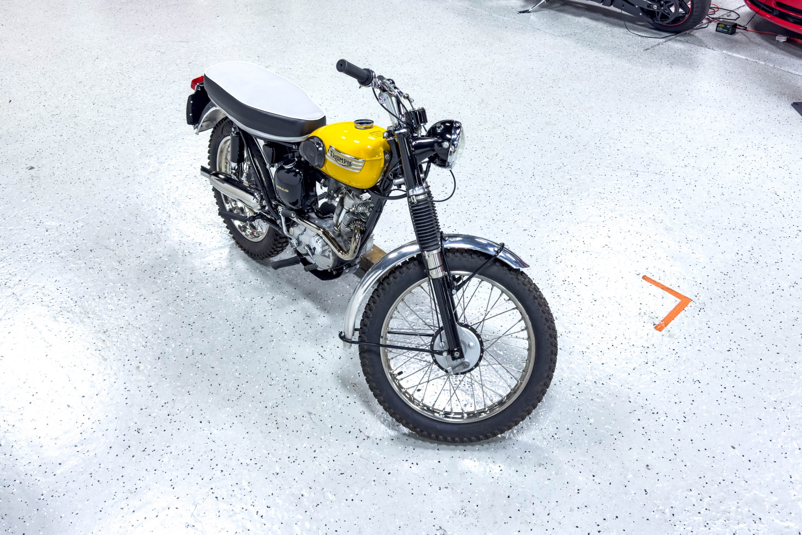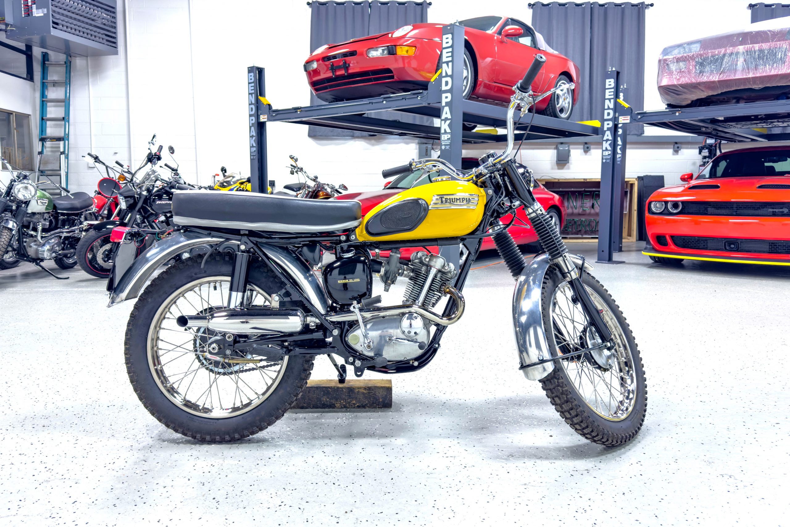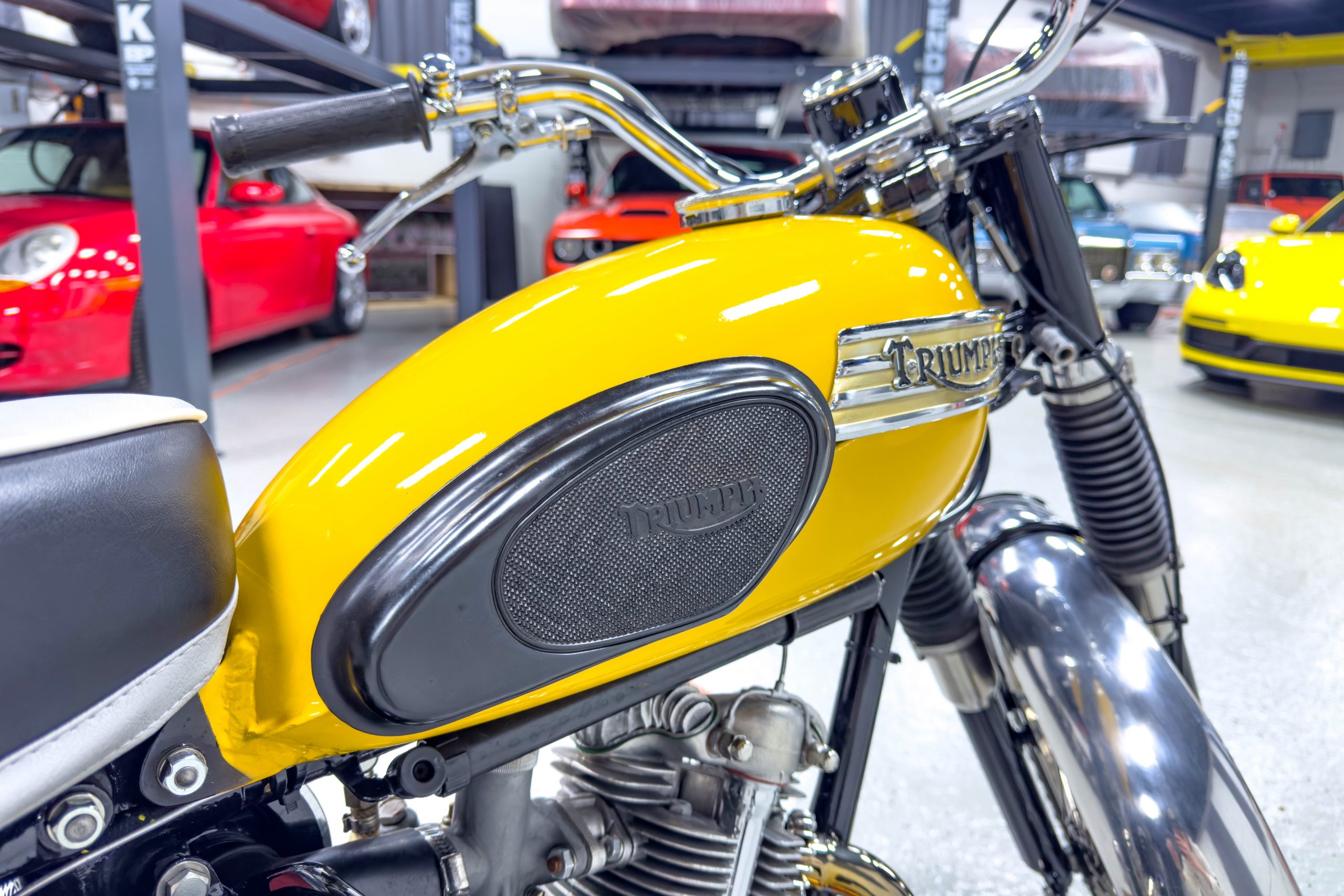 This 1966 Triumph Mountain Cub is the recipient of a comprehensive restoration completed in 2021 and is beautifully presented in Hunting Yellow with Black oil tank and stainless-steel fenders. It is powered by a 199cc four-stroke single paired with a four-speed transmission.