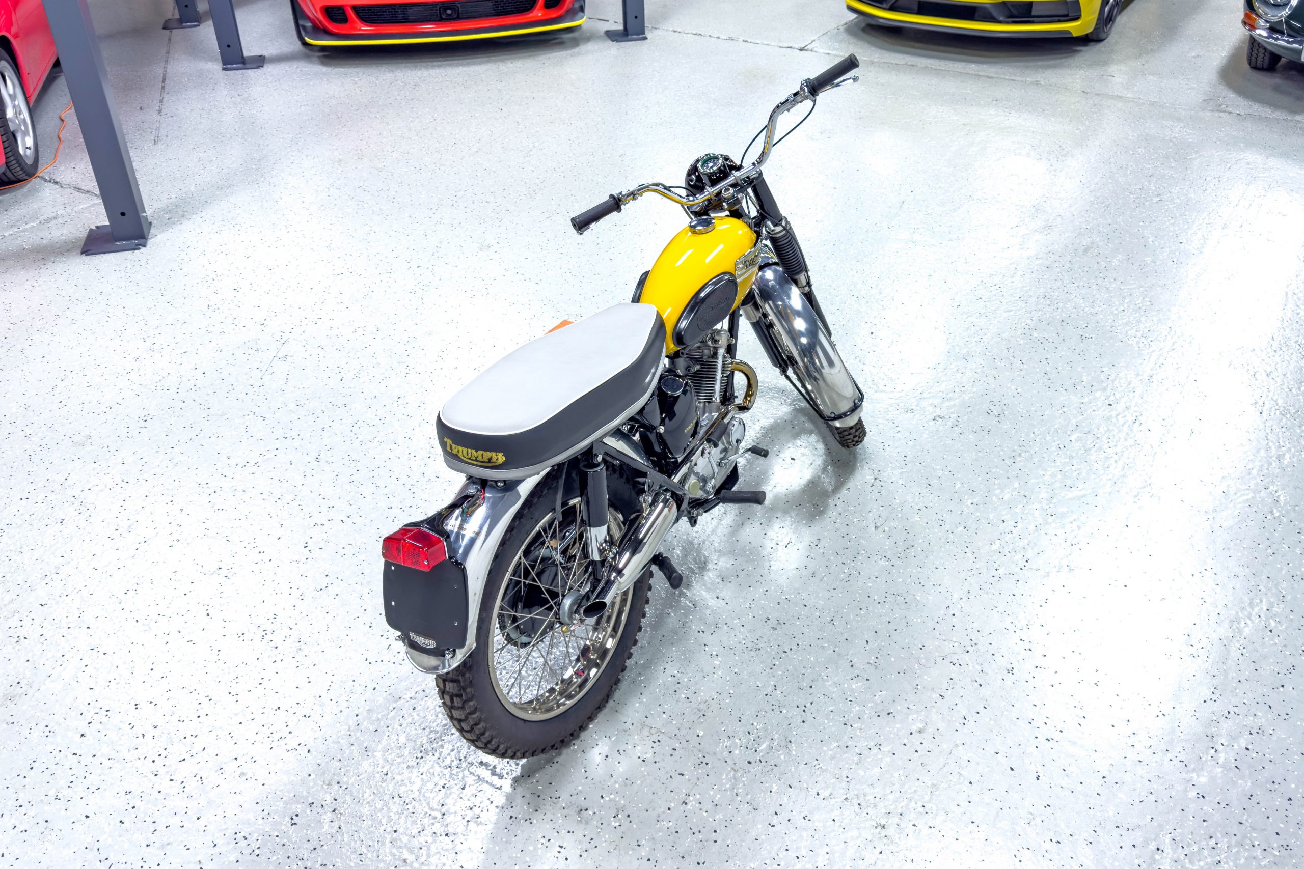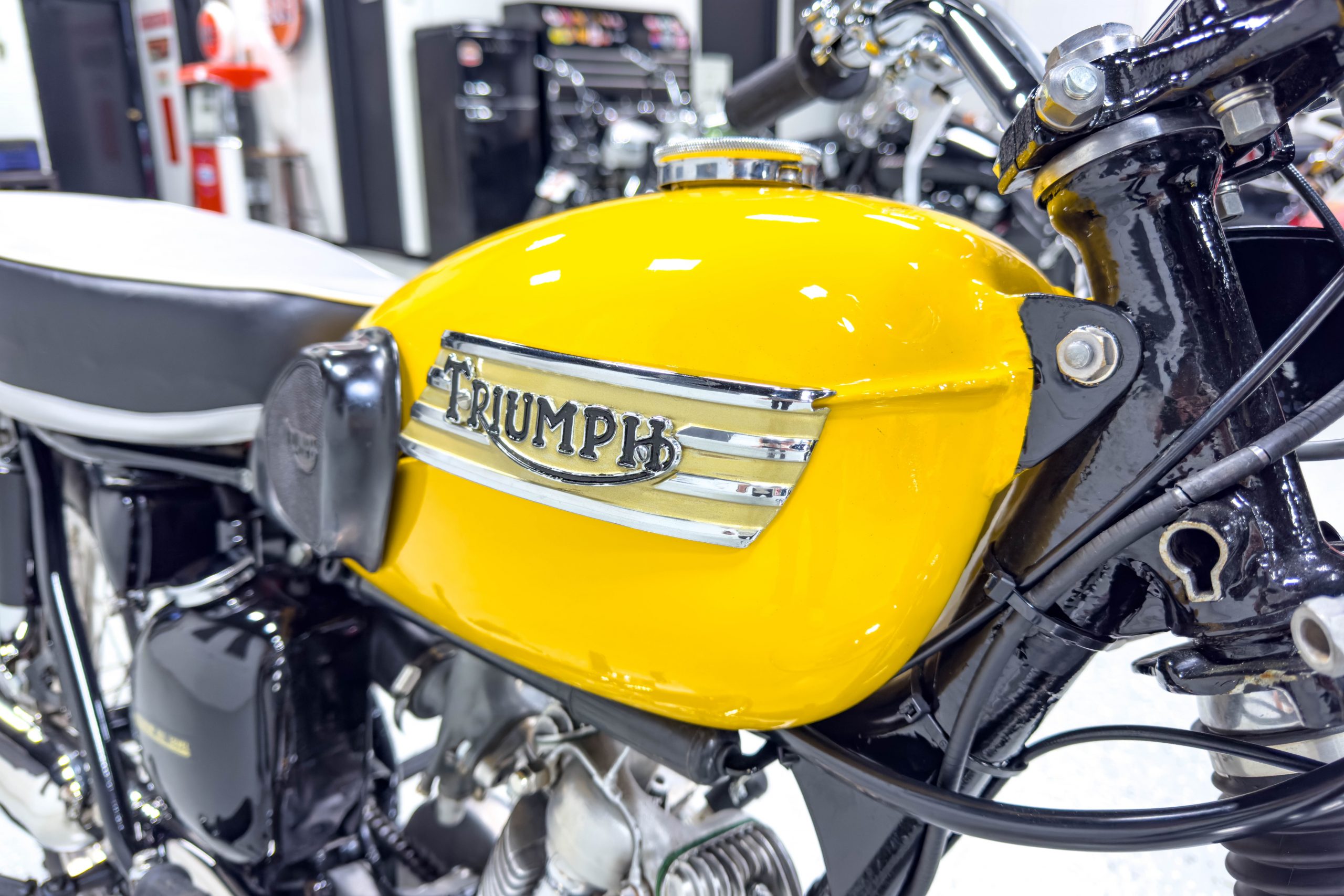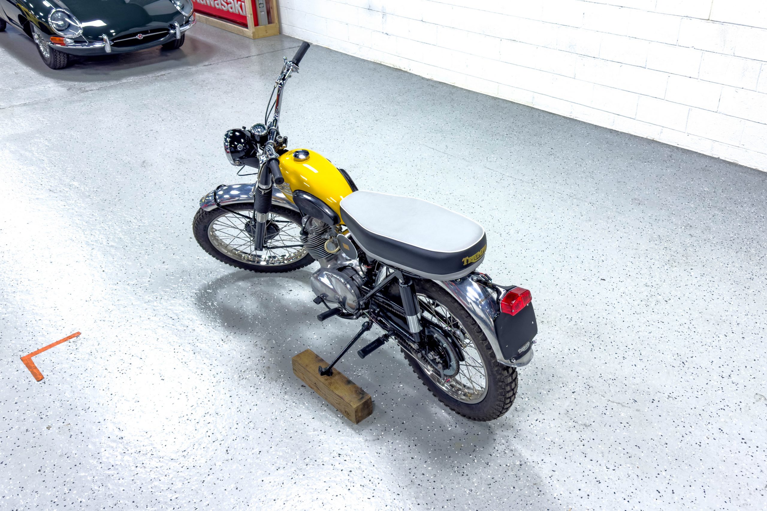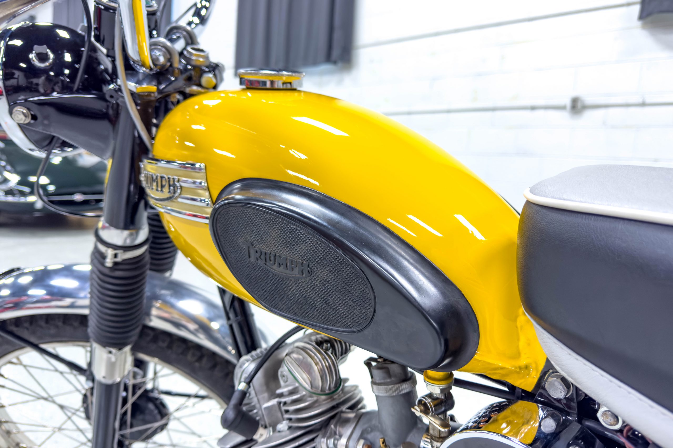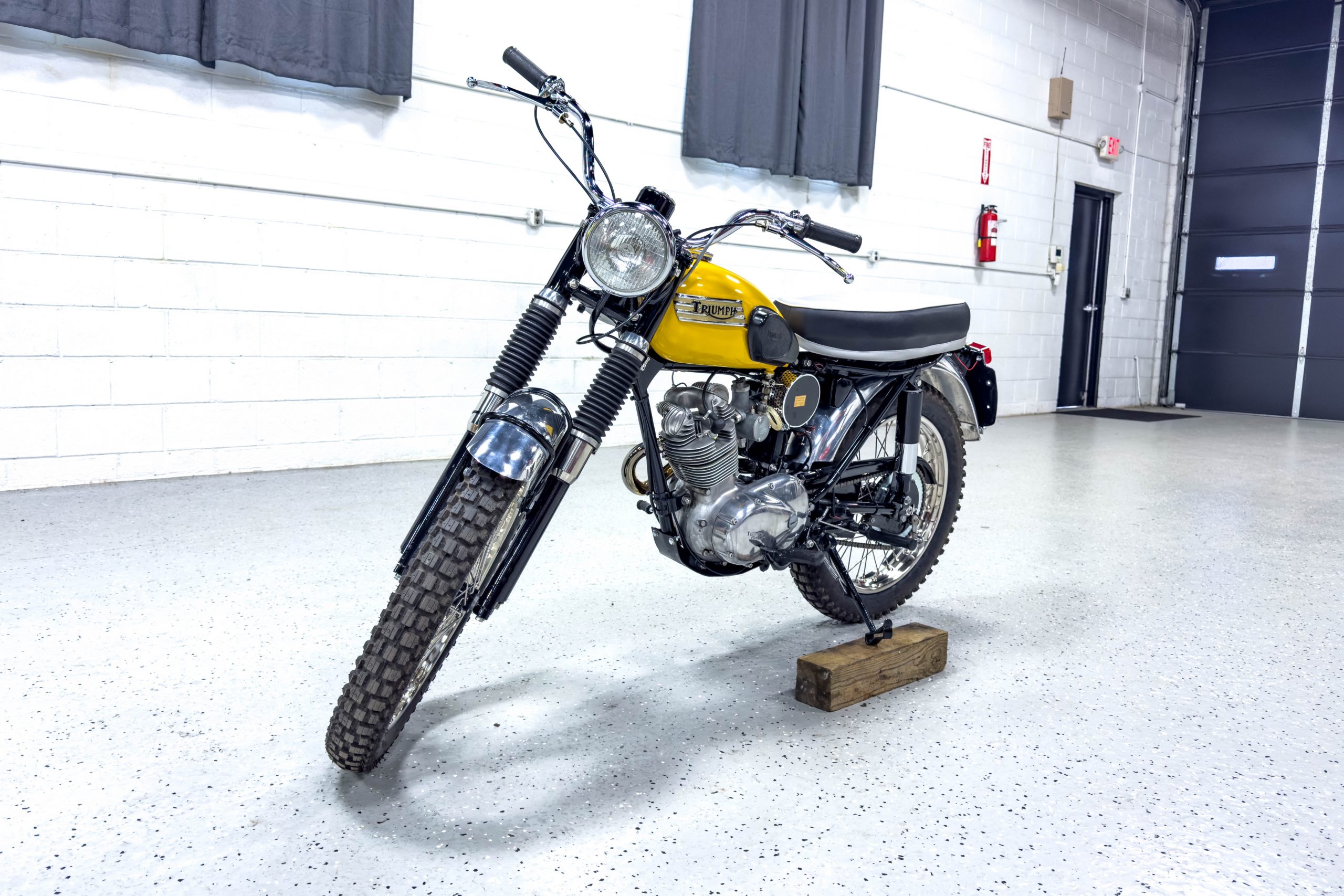This 1966 Triumph Mountain Cub is the recipient of a comprehensive restoration completed in 2021 and is beautifully presented in Hunting Yellow with Black oil tank and stainless-steel fenders. It is powered by a 199cc four-stroke single paired with a four-speed transmission.