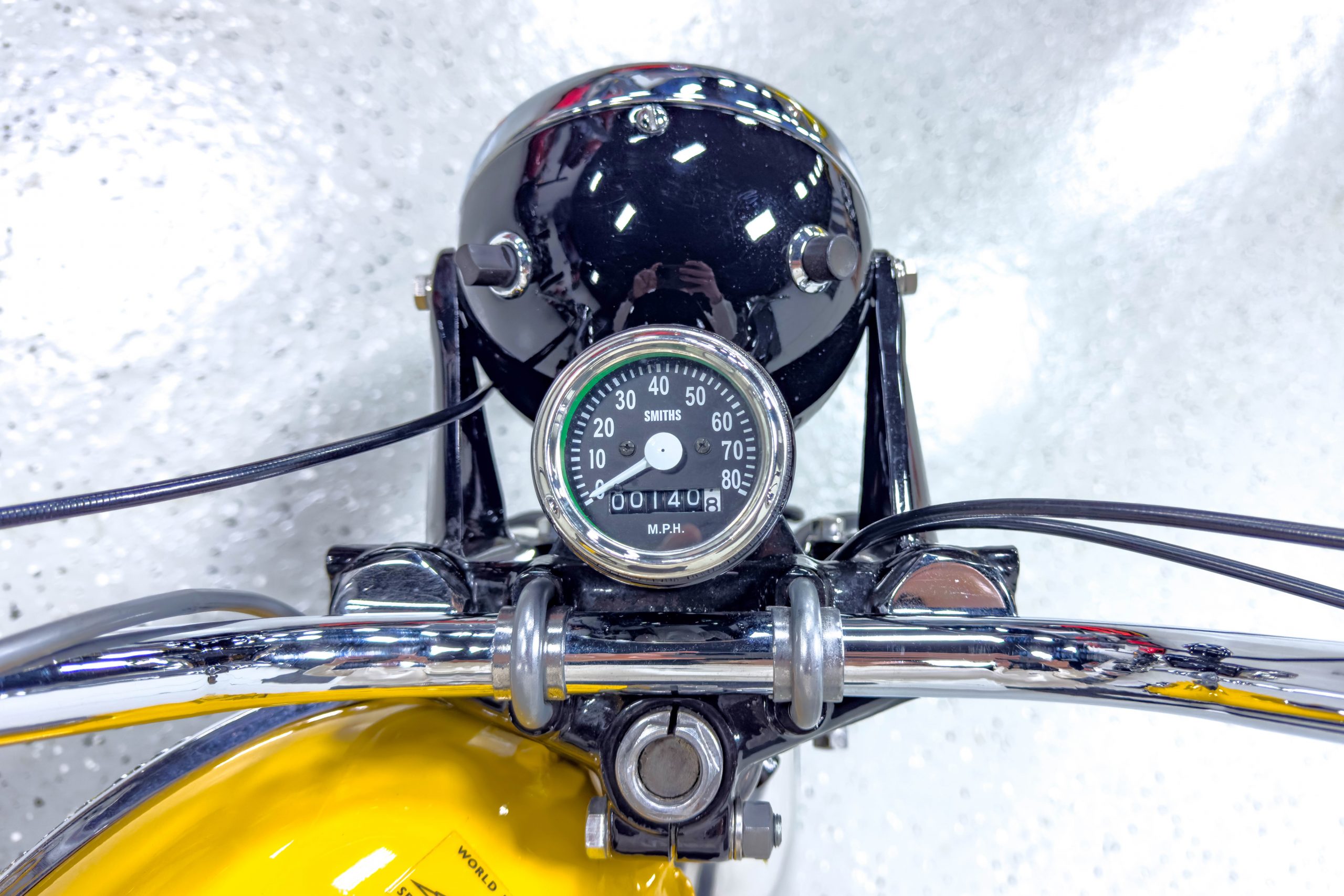 The chrome handlebar is mounted aft of a Smiths 80-mph speedometer. The five-digit odometer shows 140 miles which is believed to be the mileage accumulated since the restoration was completed. It runs and drives beautifully and is ready for your next adventure!
