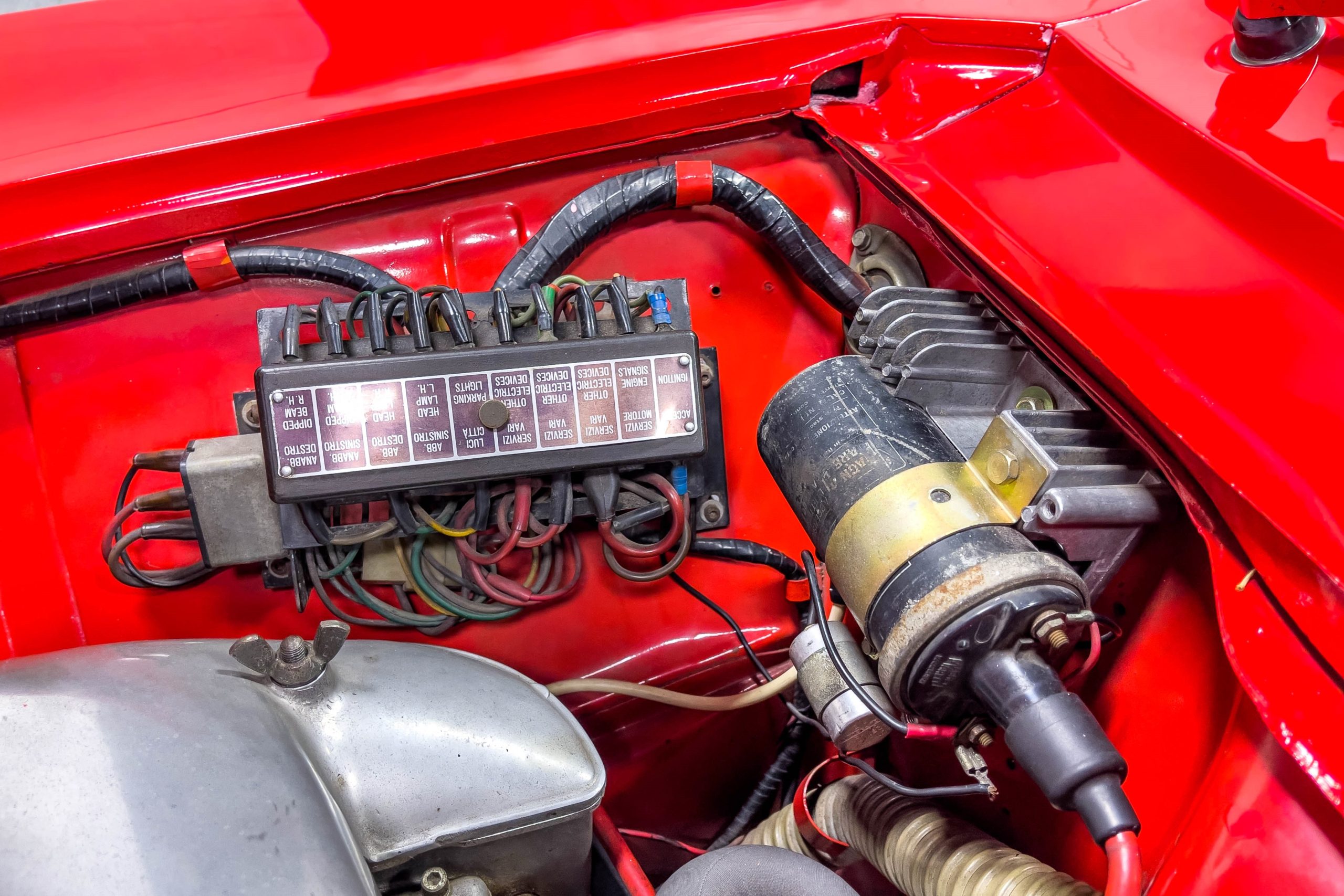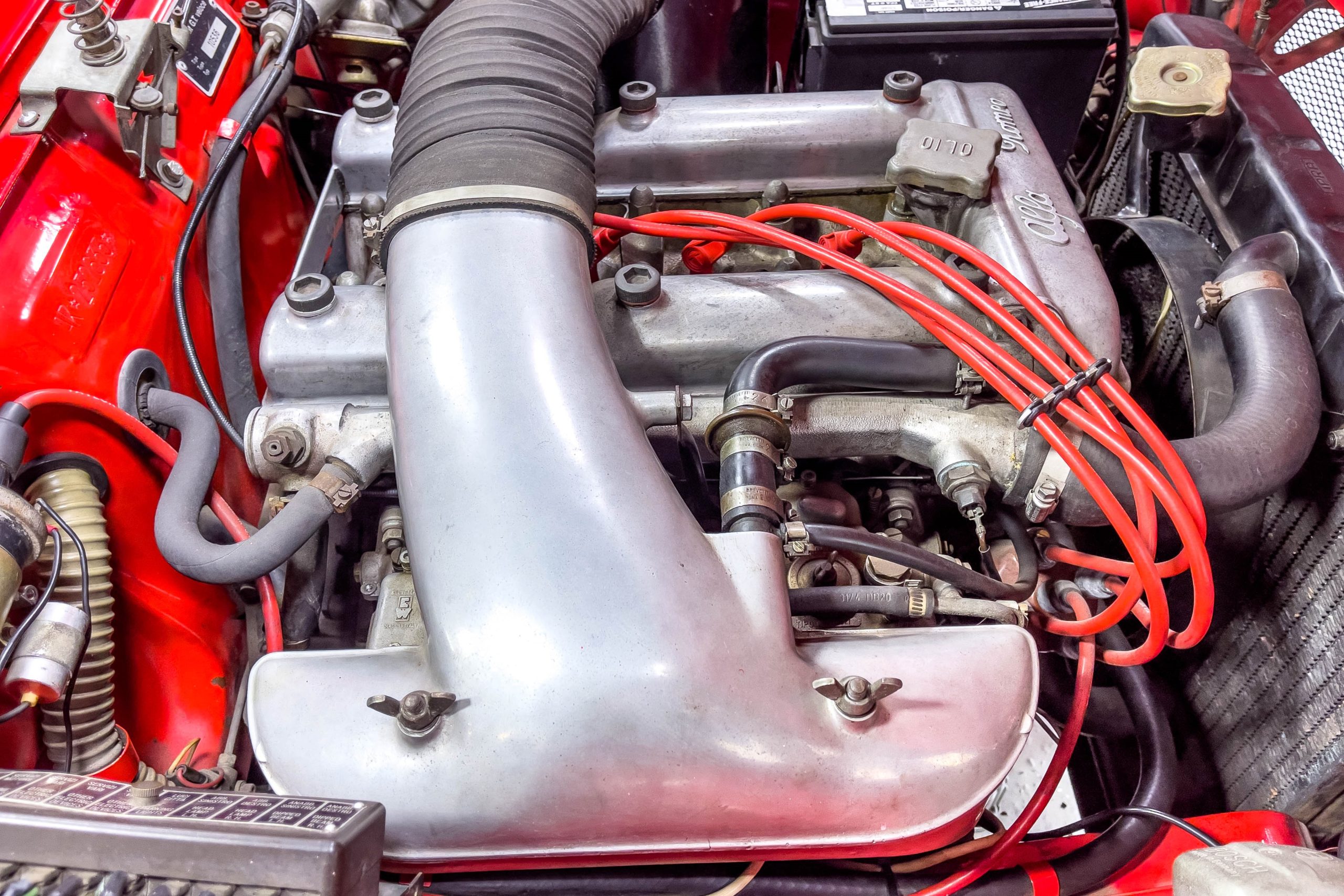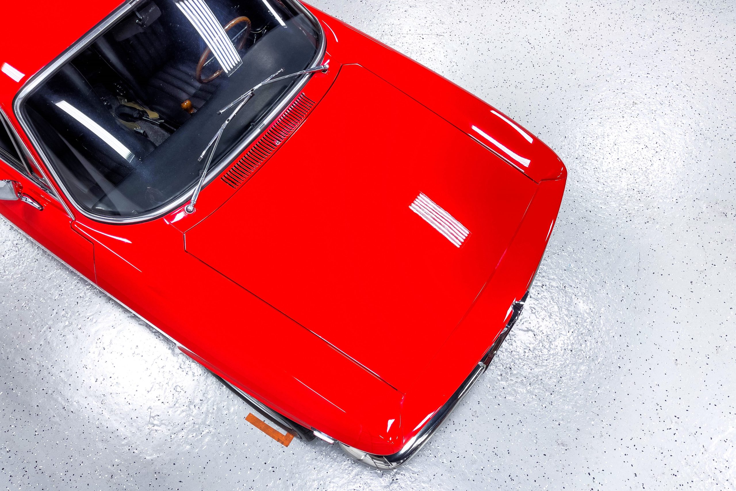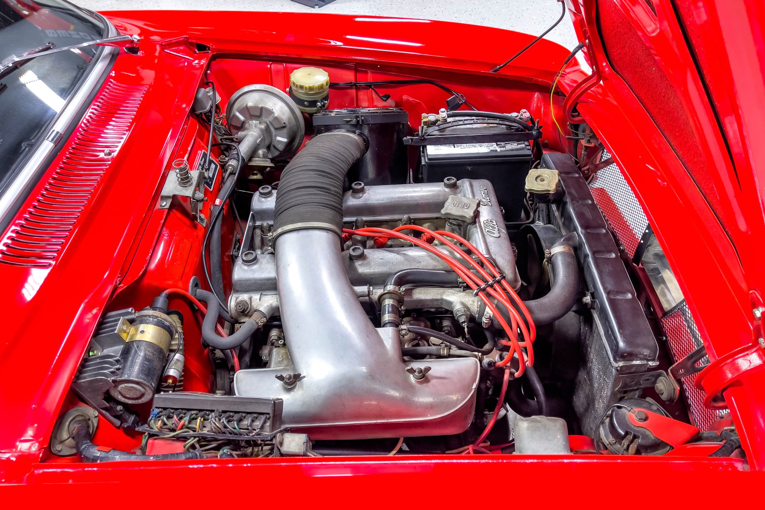 The Sprint GT Veloce was introduced at the 36th Geneva Motor Show in March 1966 to great fanfare. It featured several updates over the previous model including a revised engine, better interior fittings, and changes to the exterior trim. Inside the main changes from the Giulia Sprint GT were imitation wood dashboard fascia instead of the previous anti-glare grey finish, front seats revised to a mild “bucket” design, and a dished three aluminum spoke steering wheel, with a black rim and horn buttons through the spokes.
