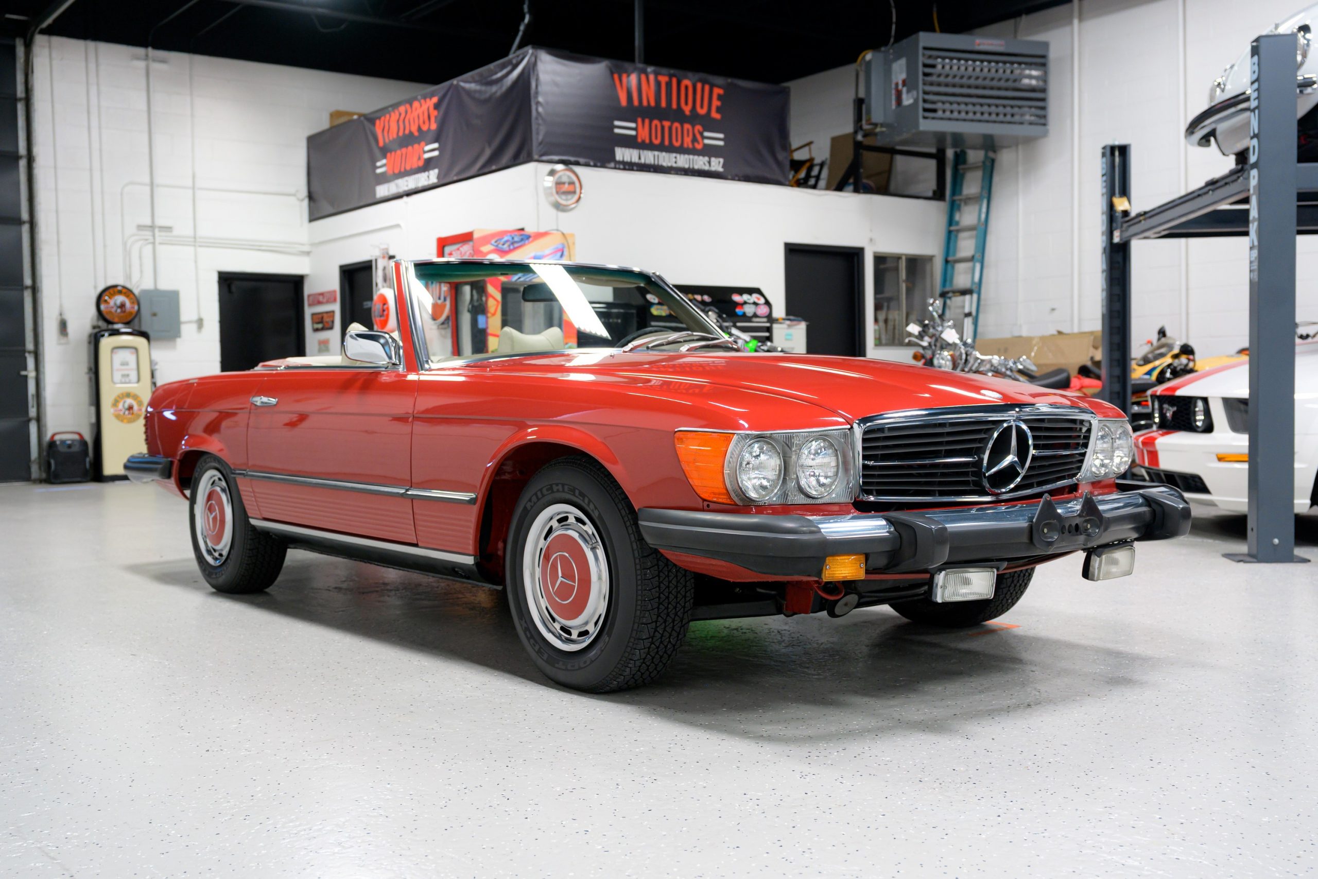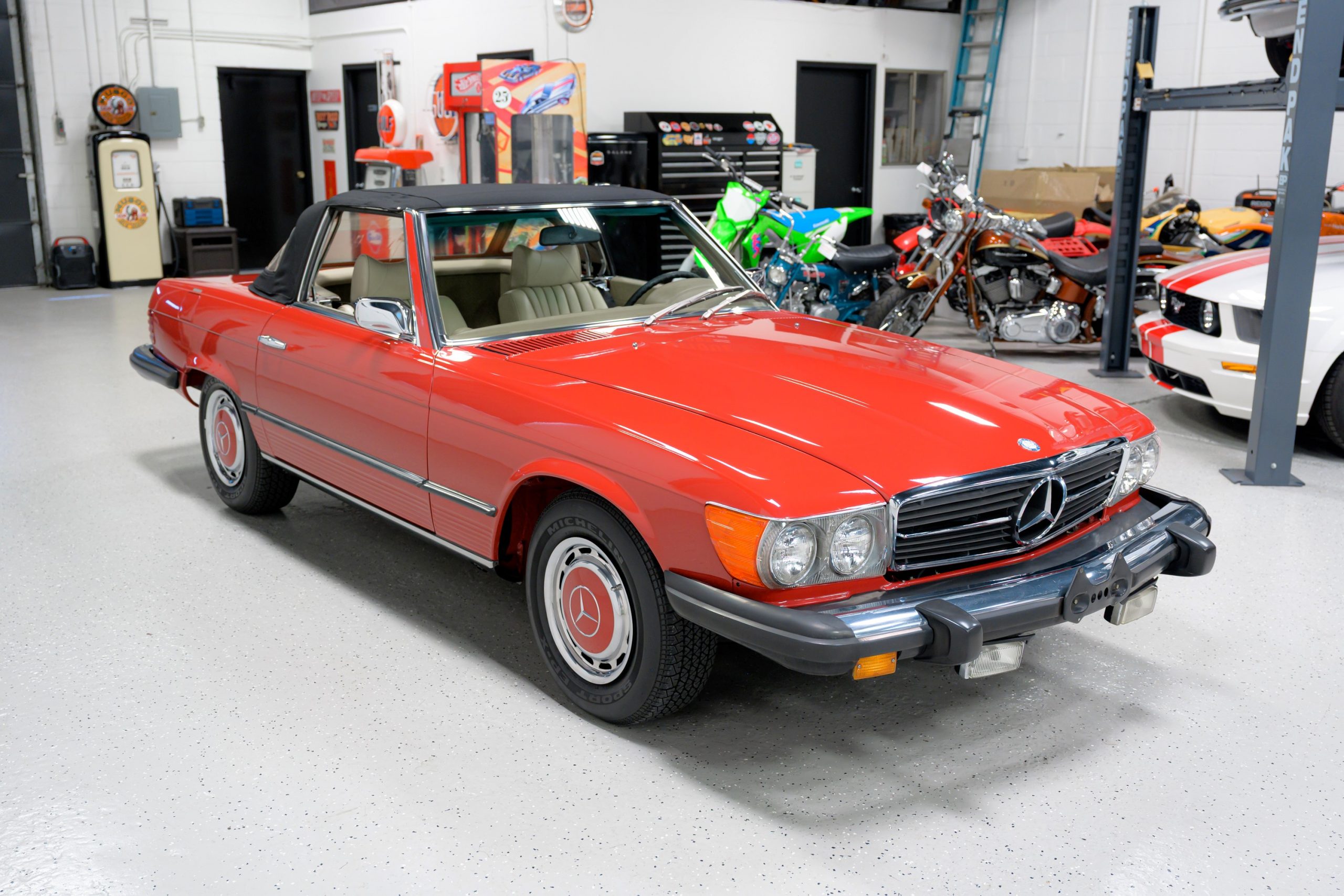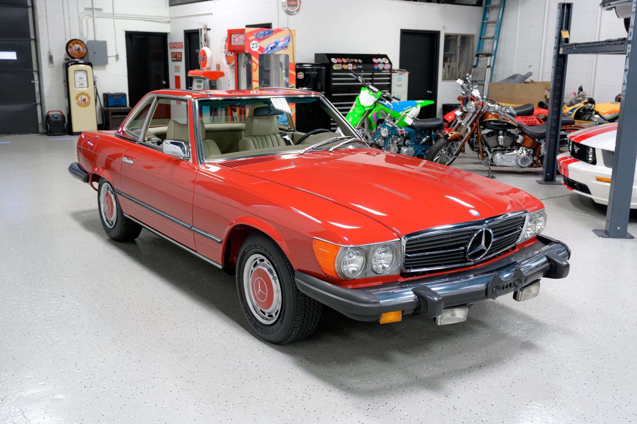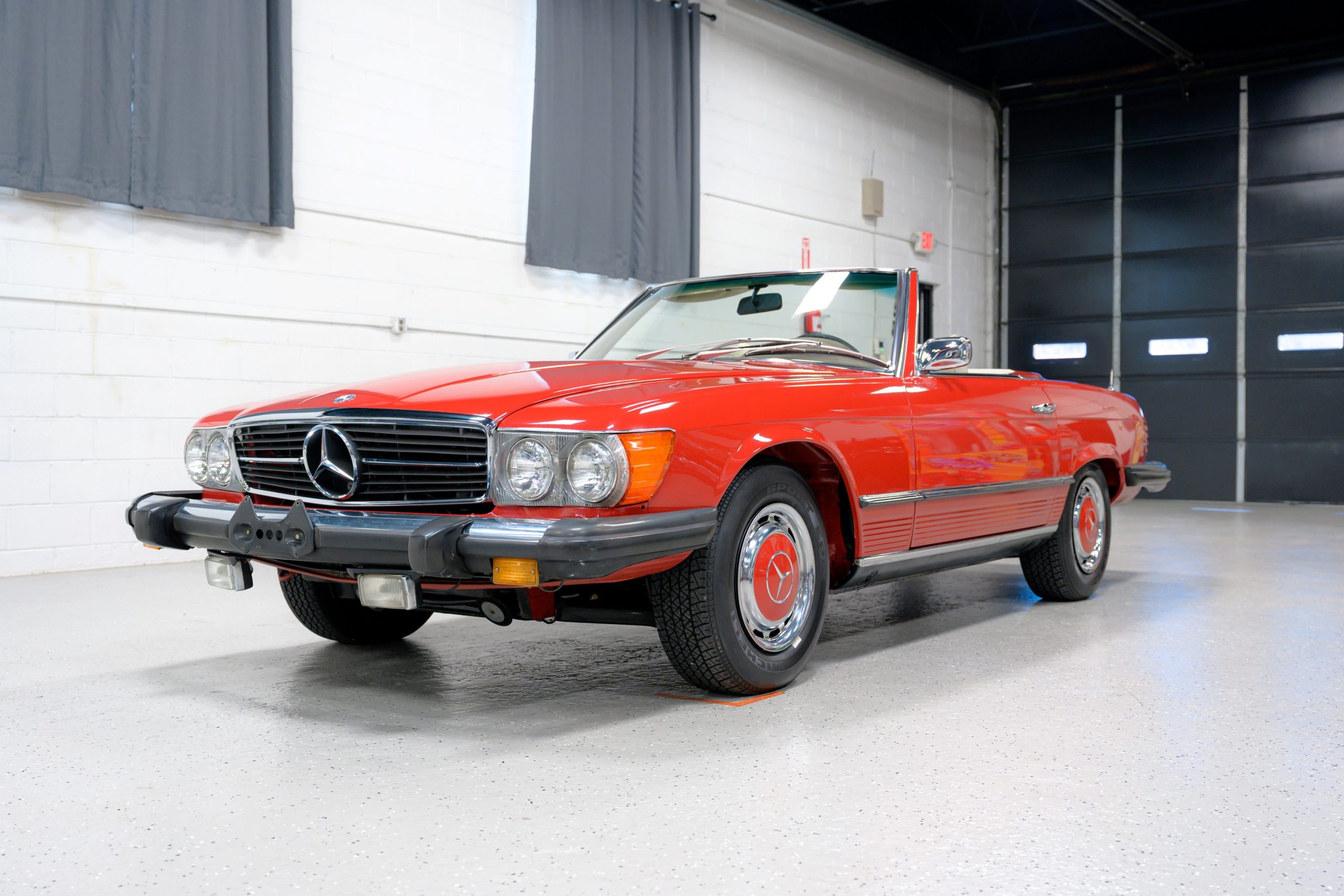 1975 Mercedes-Benz 450SL showing 22k miles This 450SL is beautifully finished in rare Carnelian Red over a cream MB-Tex interior with a black soft top and a color-matched painted hardtop. Under the hood is a 4.5L M117 V8 featuring Bosch D-Jetronic fuel injection and was factory rated at 180 horsepower and …