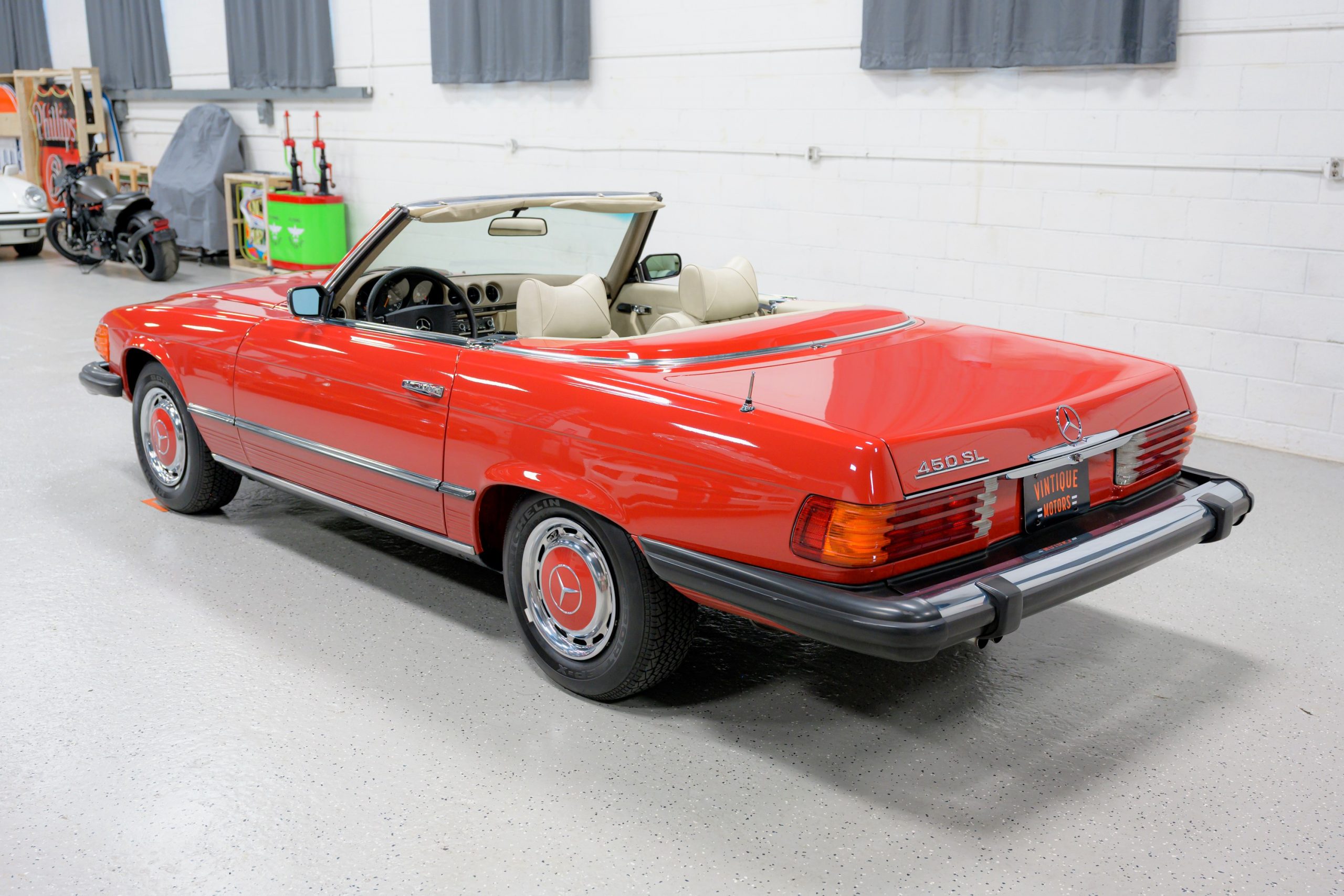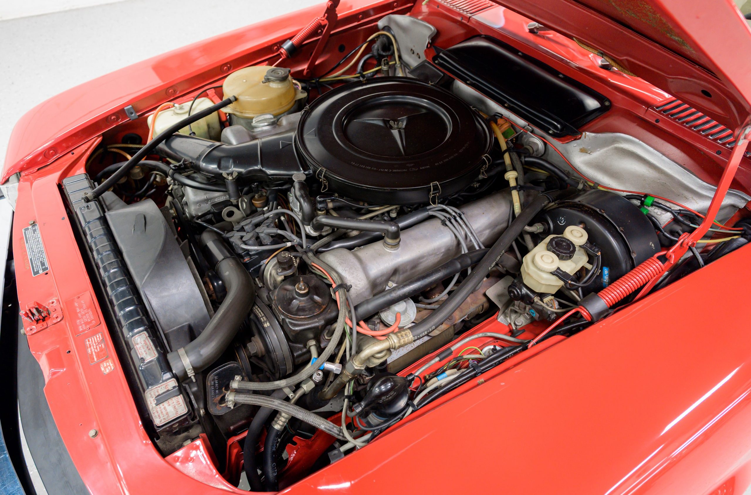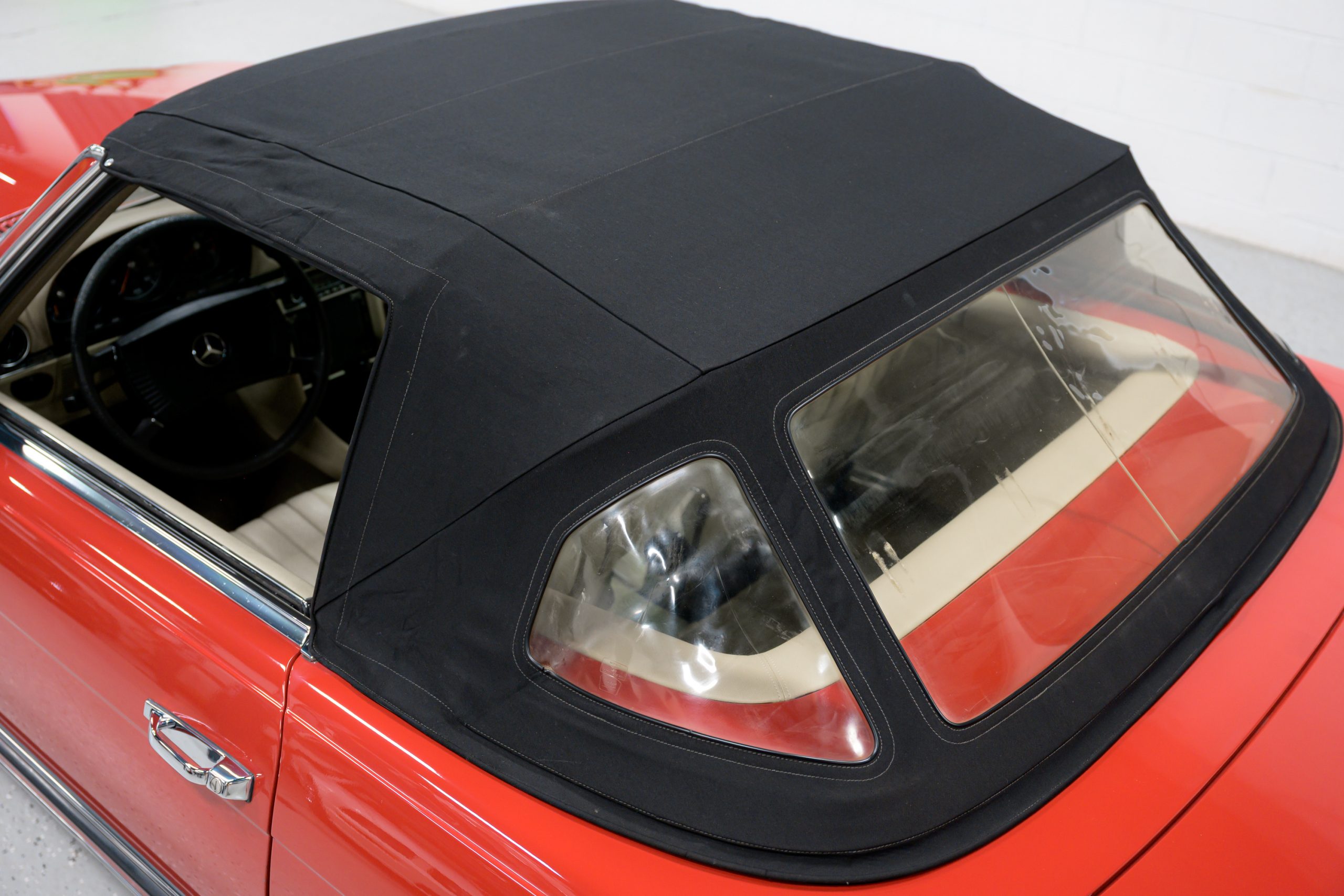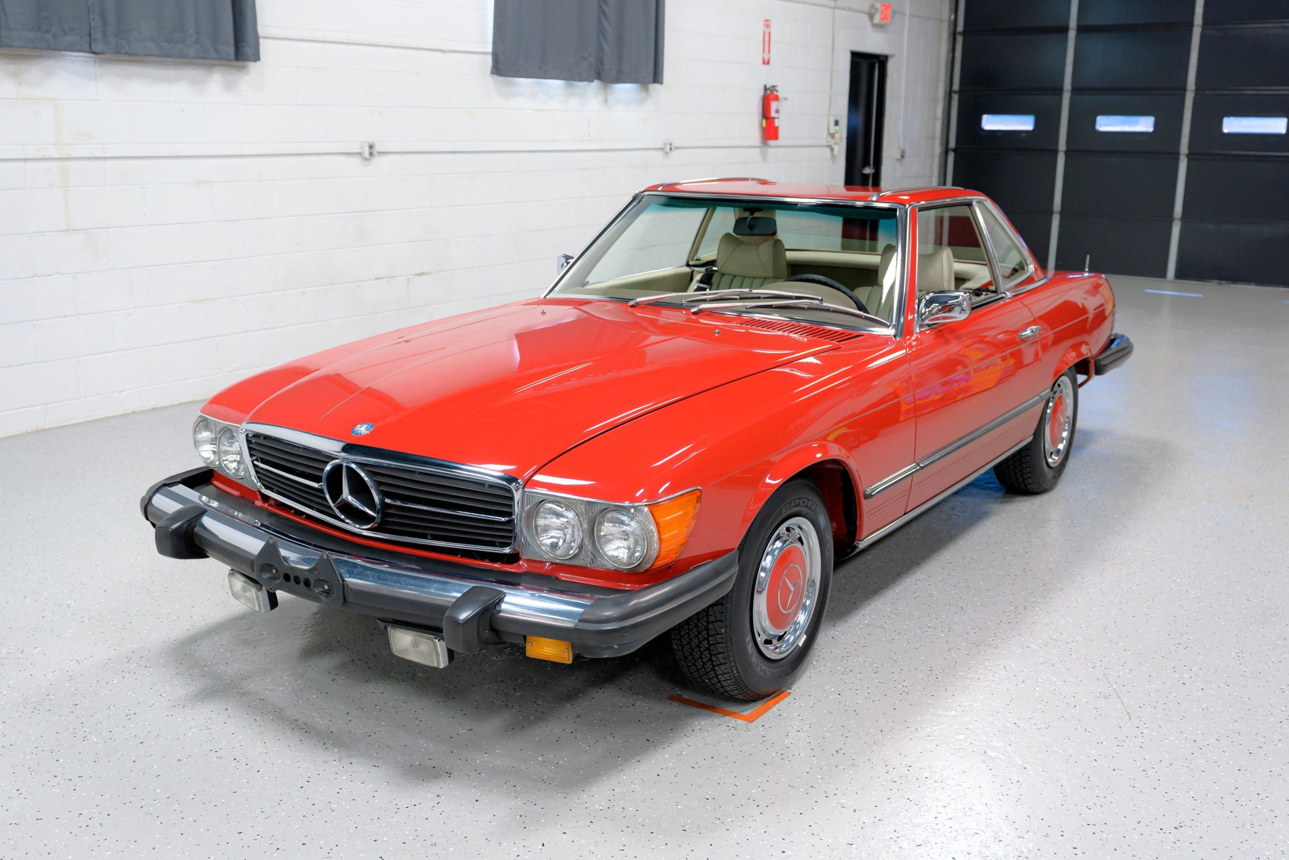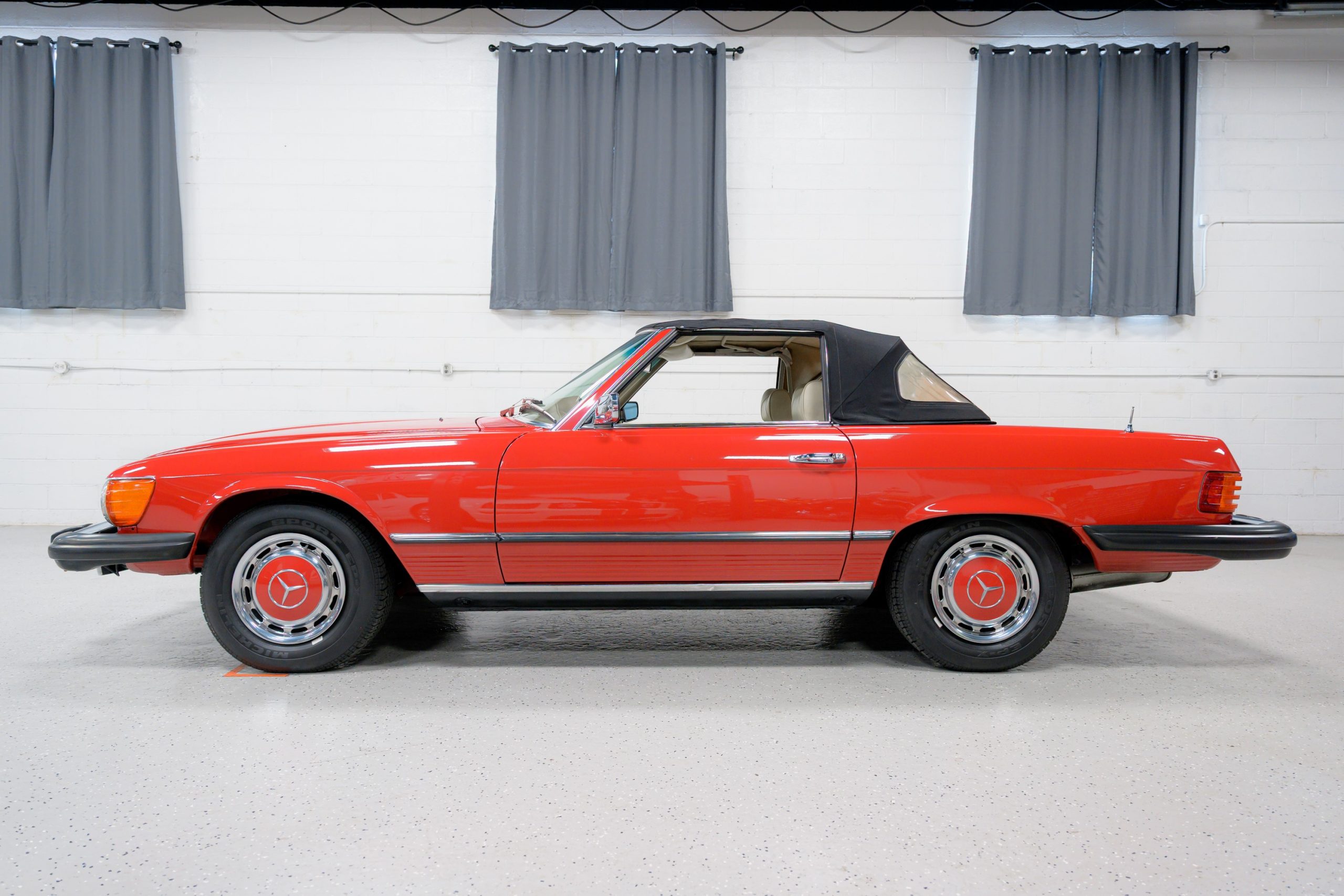 This 450SL is beautifully finished in rare Carnelian Red over a cream MB-Tex interior with a black soft top and a color-matched painted hardtop. Under the hood is a 4.5L M117 V8 featuring Bosch D-Jetronic fuel injection and was factory rated at 180 horsepower and 220 lb-ft of torque mated to a 3-speed automatic transmission.