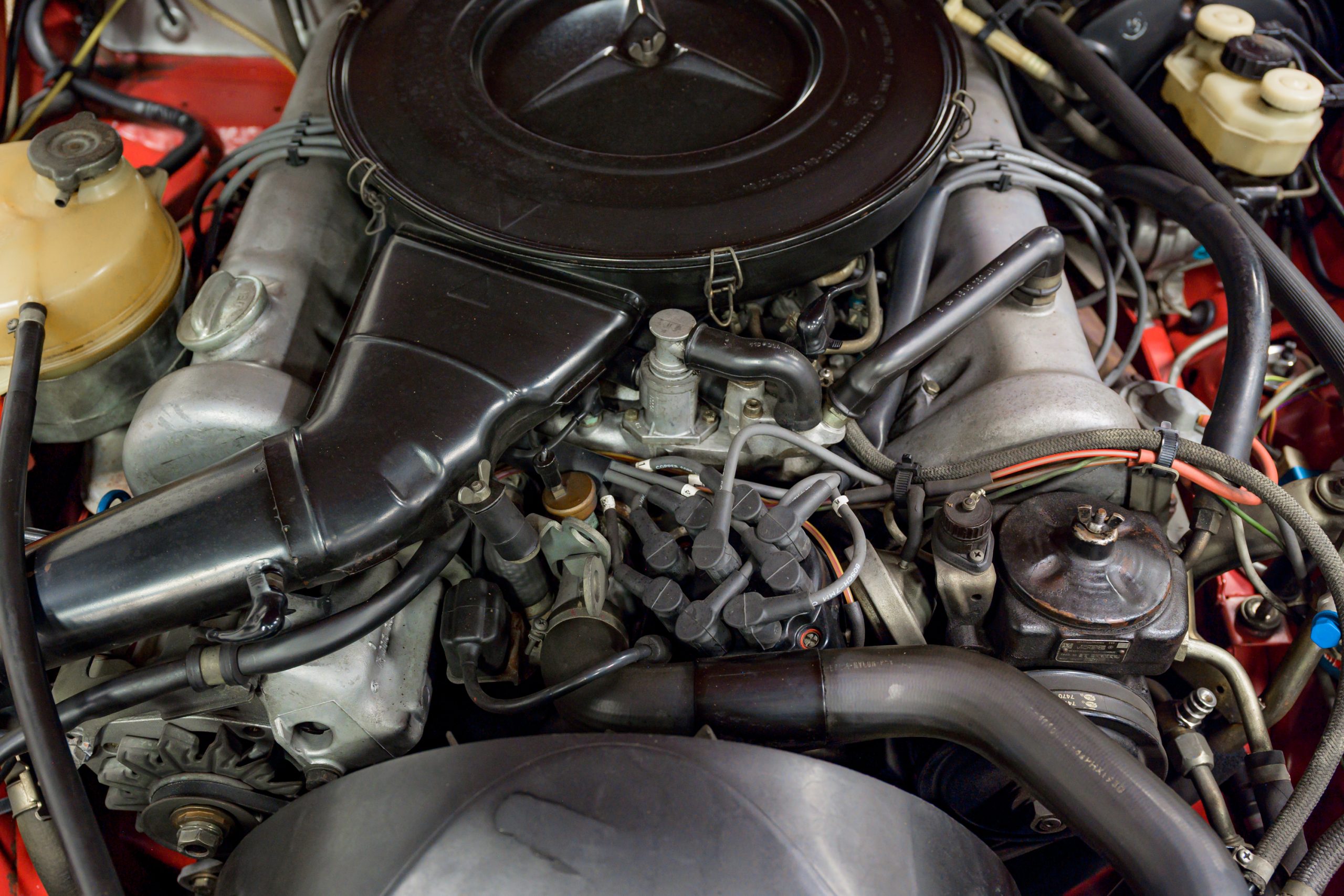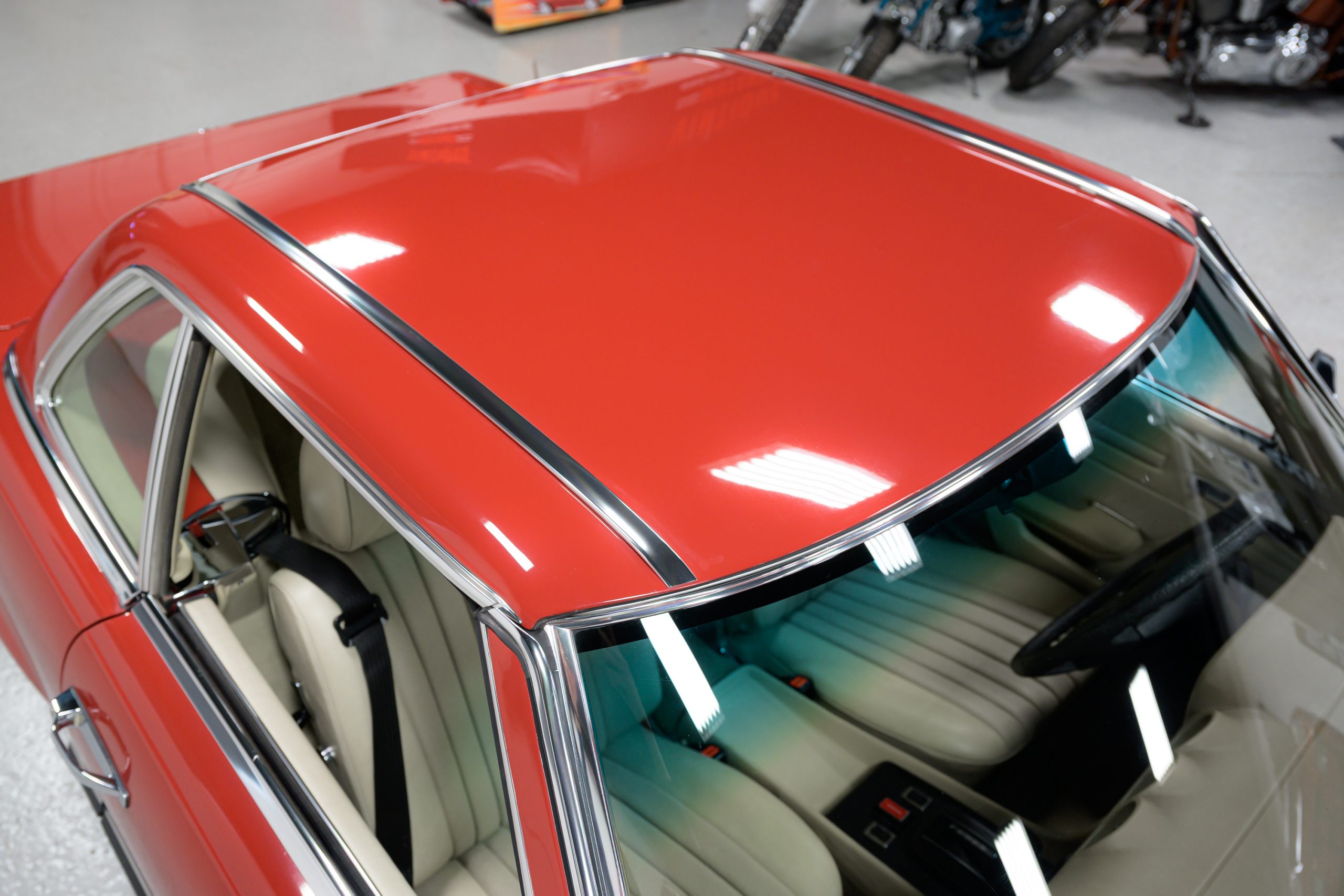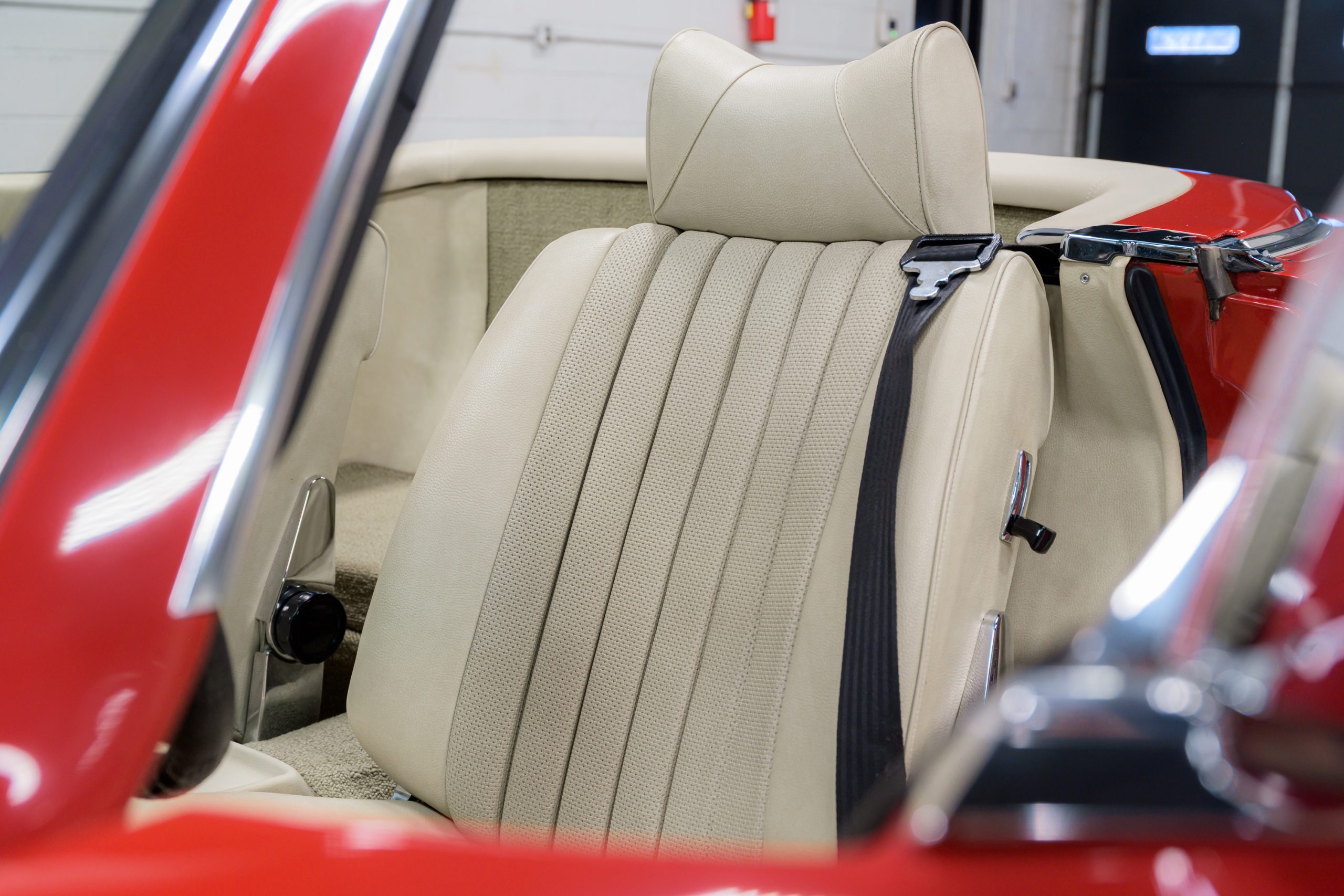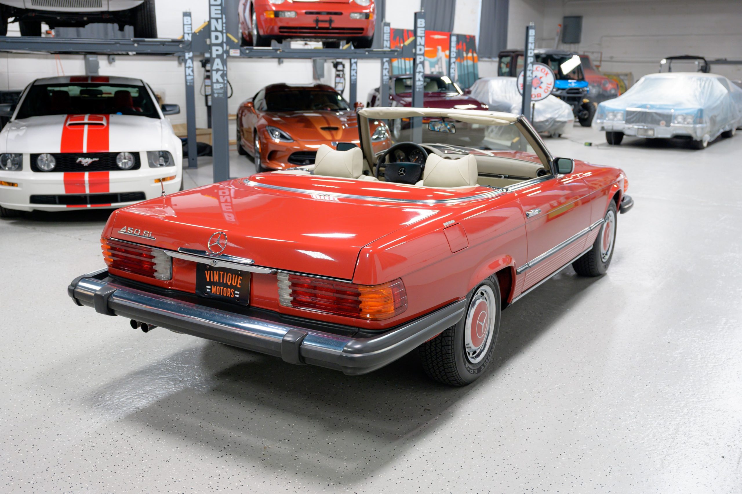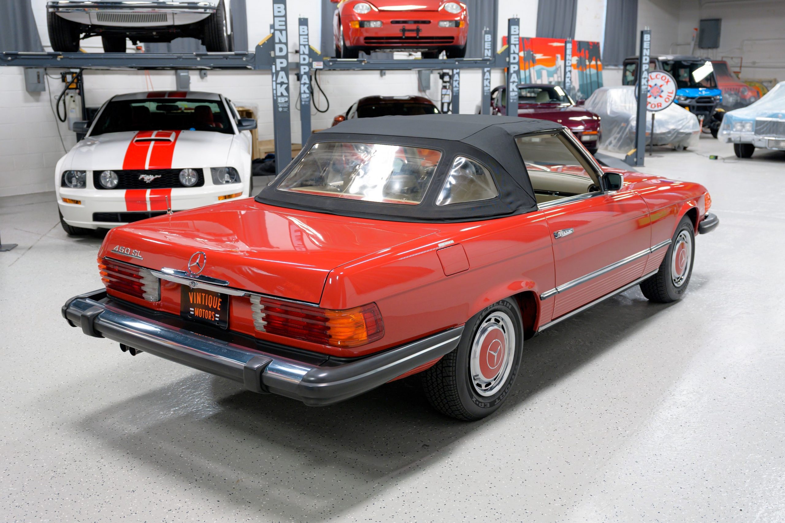 This 450SL is beautifully finished in rare Carnelian Red over a cream MB-Tex interior with a black soft top and a color-matched painted hardtop. Under the hood is a 4.5L M117 V8 featuring Bosch D-Jetronic fuel injection and was factory rated at 180 horsepower and 220 lb-ft of torque mated to a 3-speed automatic transmission.