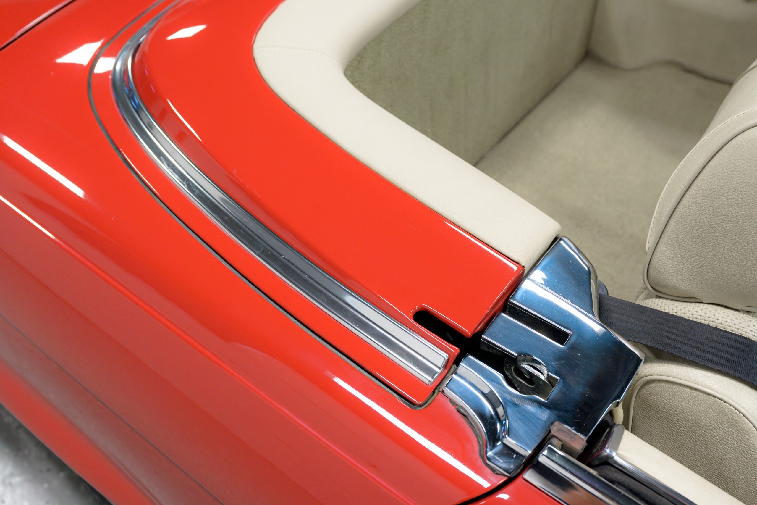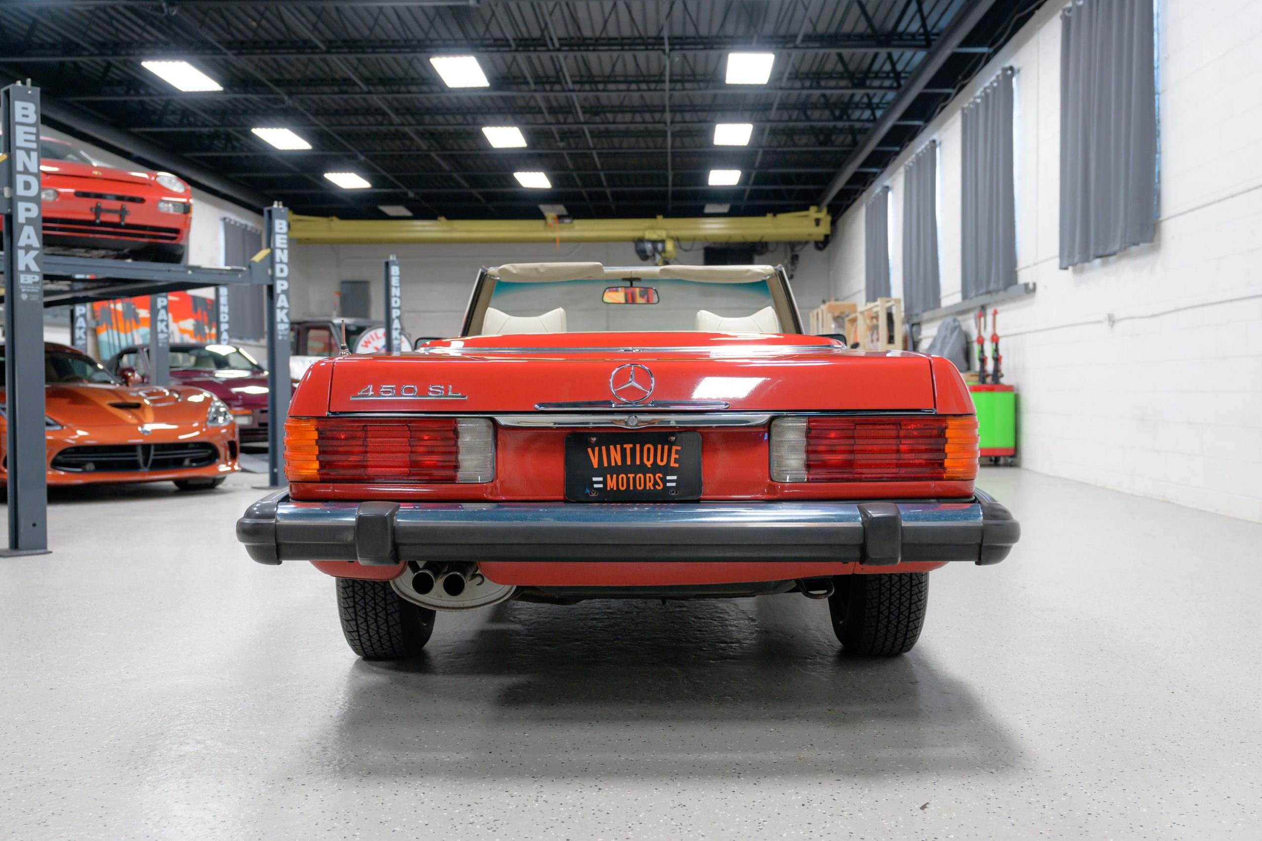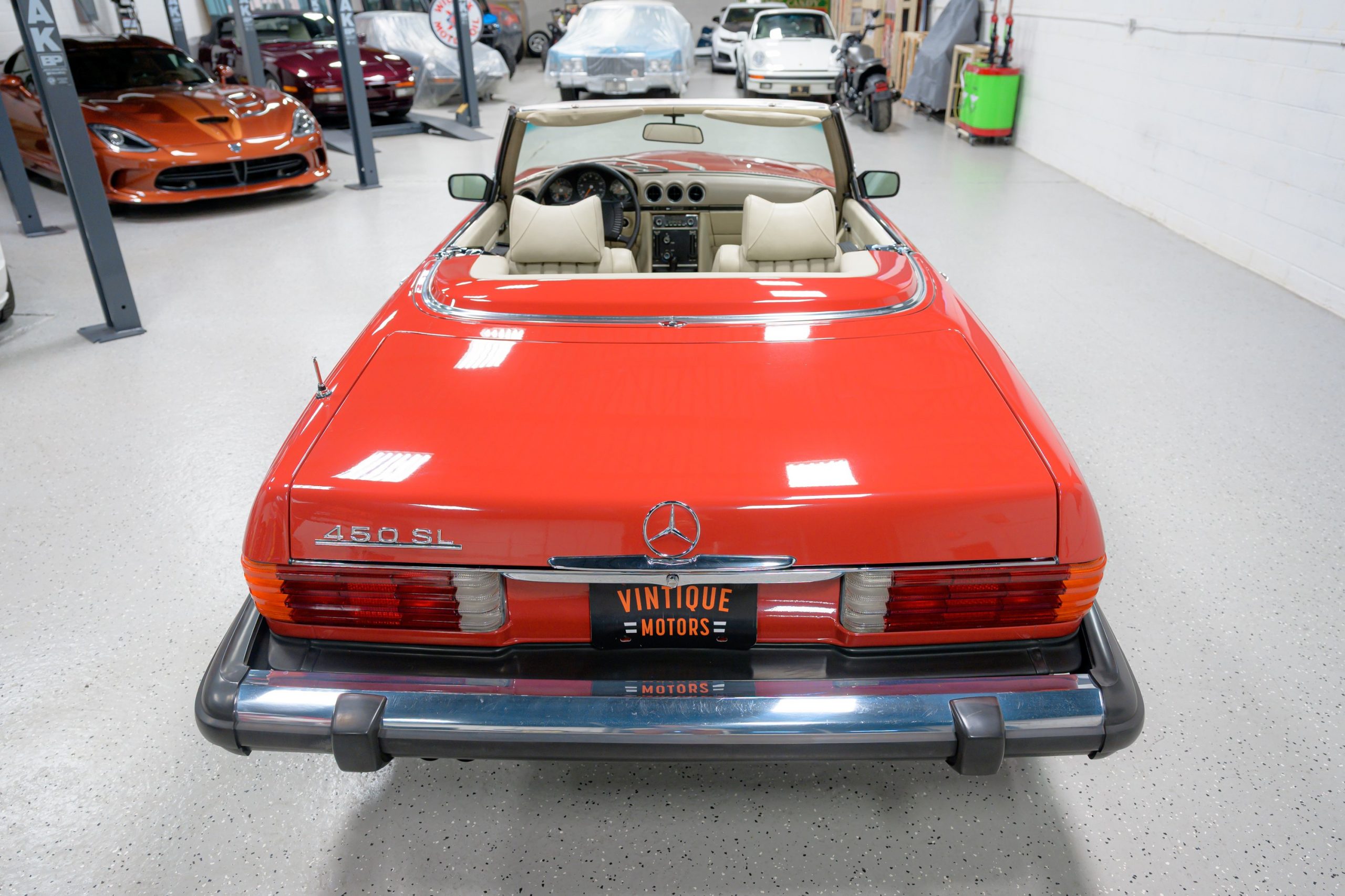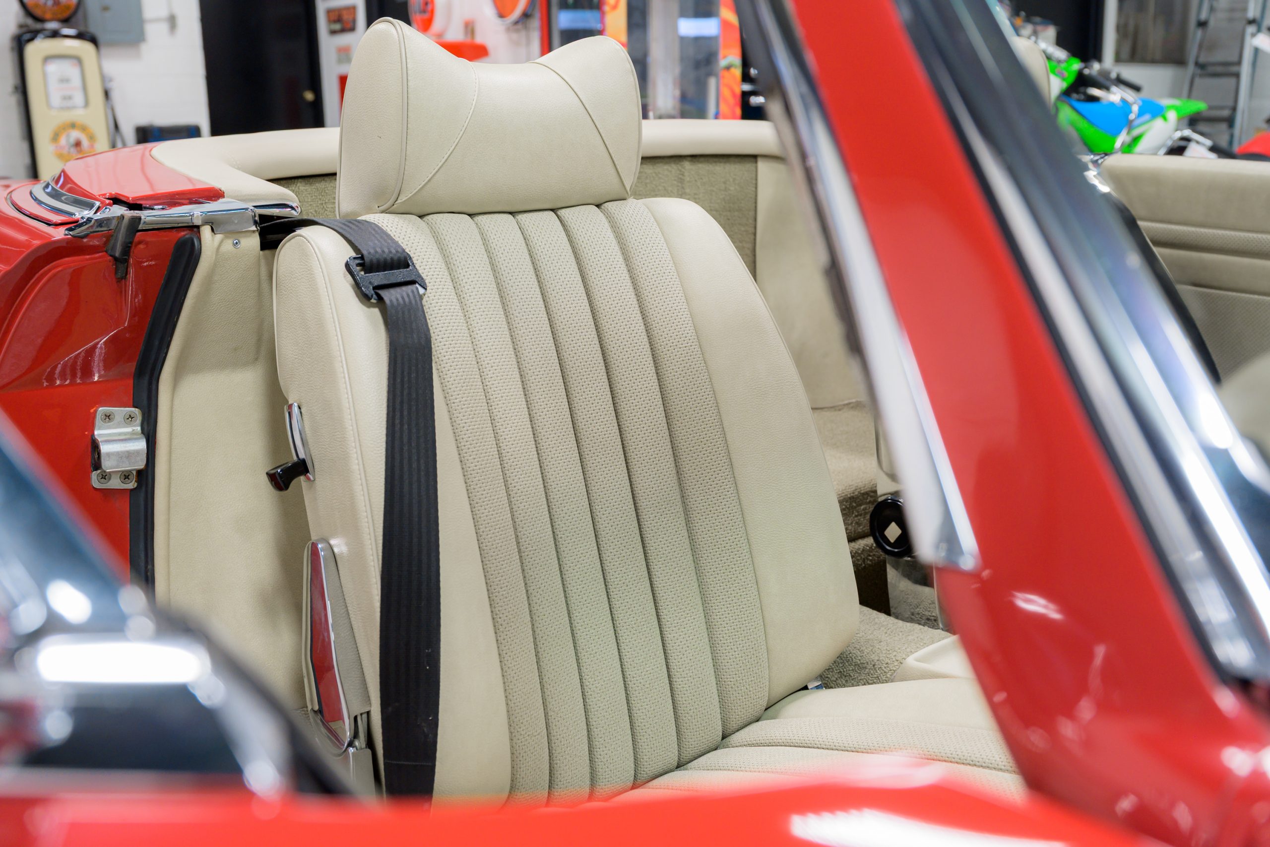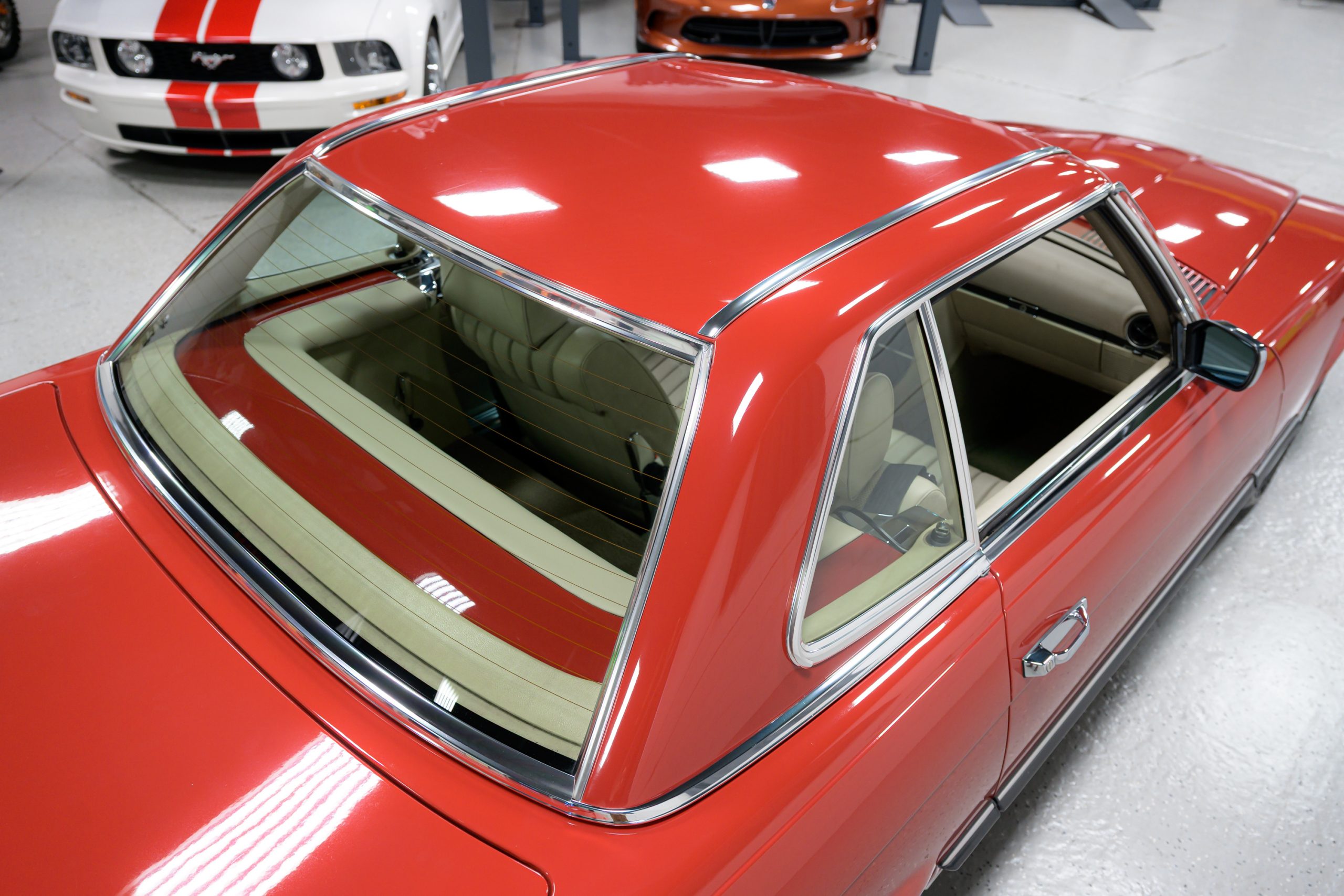 This 450SL is beautifully finished in rare Carnelian Red over a cream MB-Tex interior with a black soft top and a color-matched painted hardtop. Under the hood is a 4.5L M117 V8 featuring Bosch D-Jetronic fuel injection and was factory rated at 180 horsepower and 220 lb-ft of torque mated to a 3-speed automatic transmission.