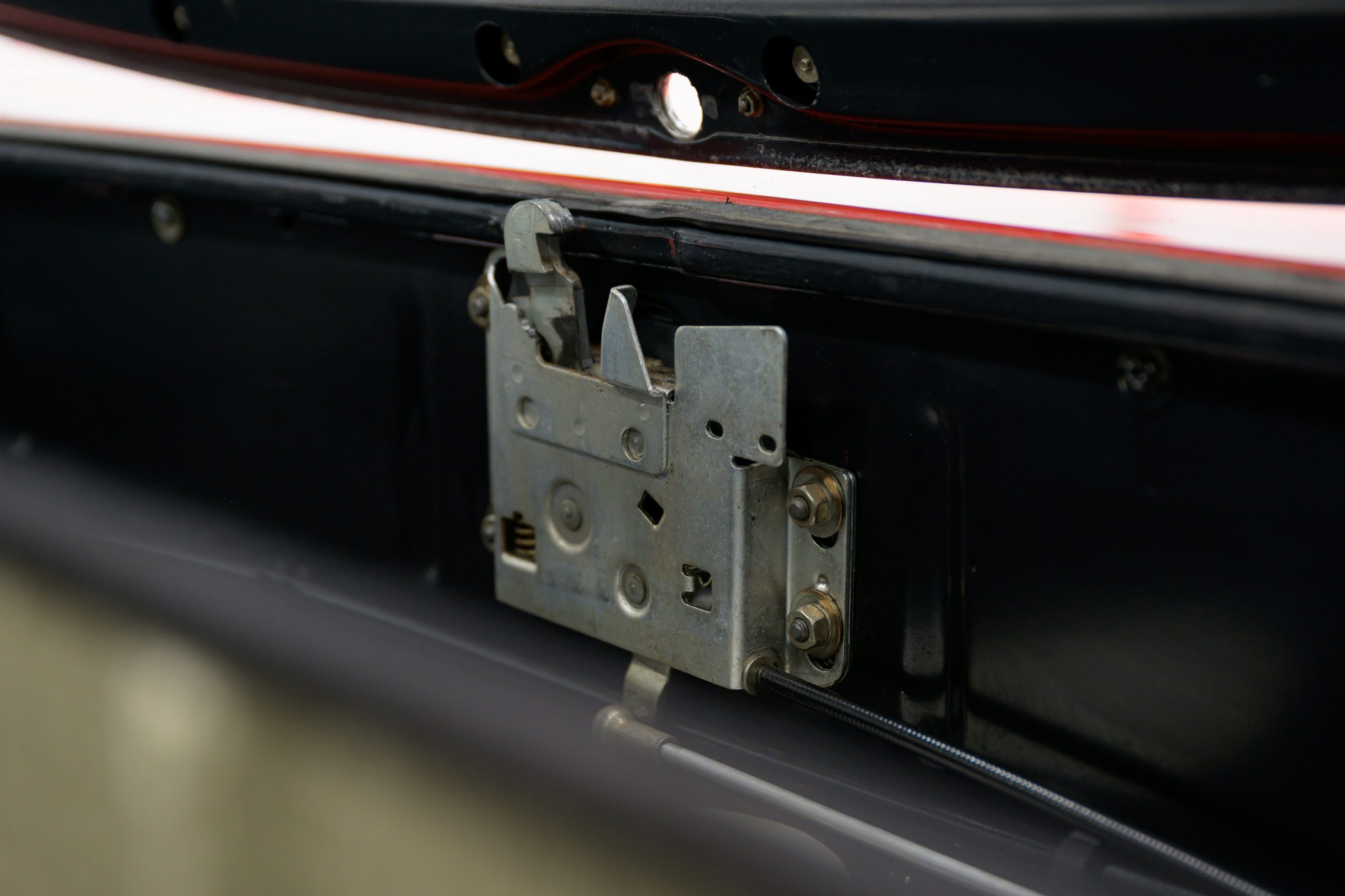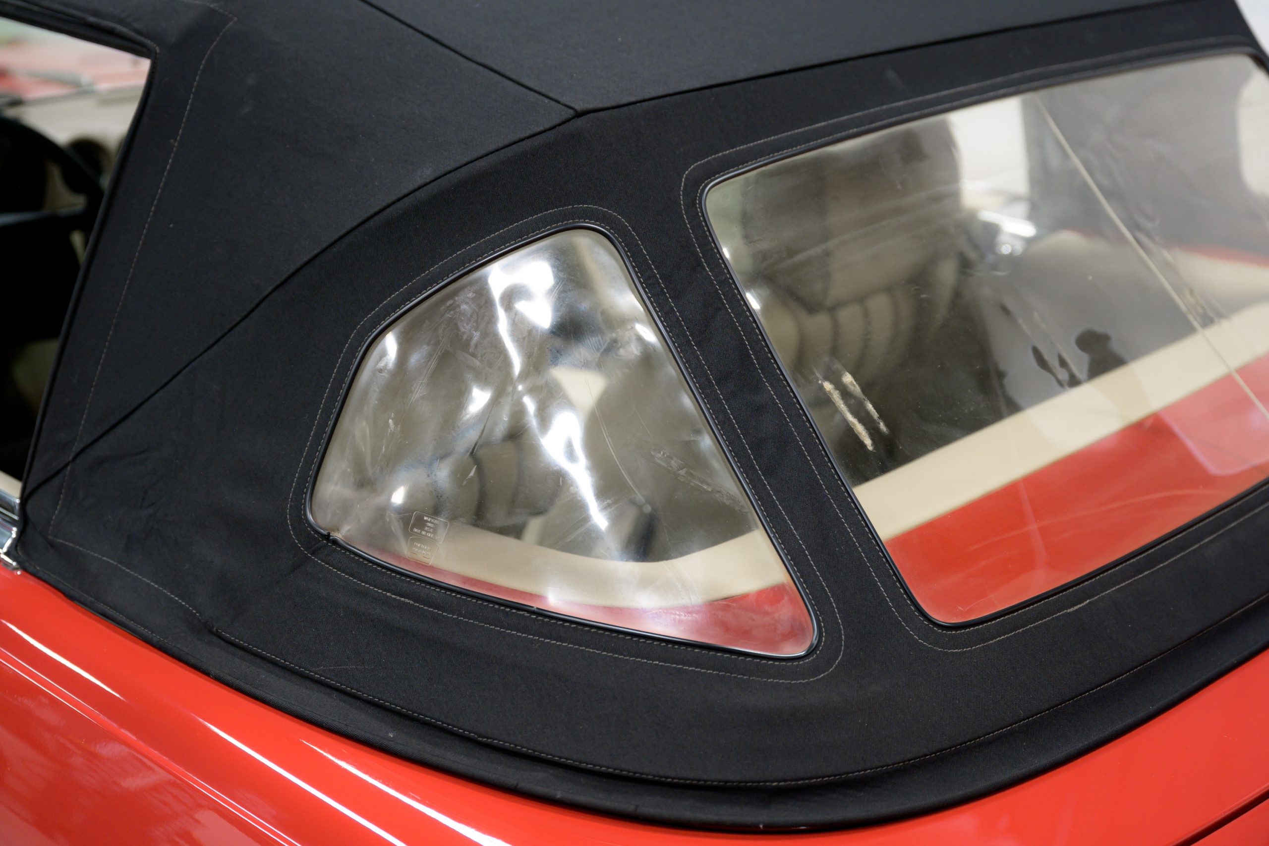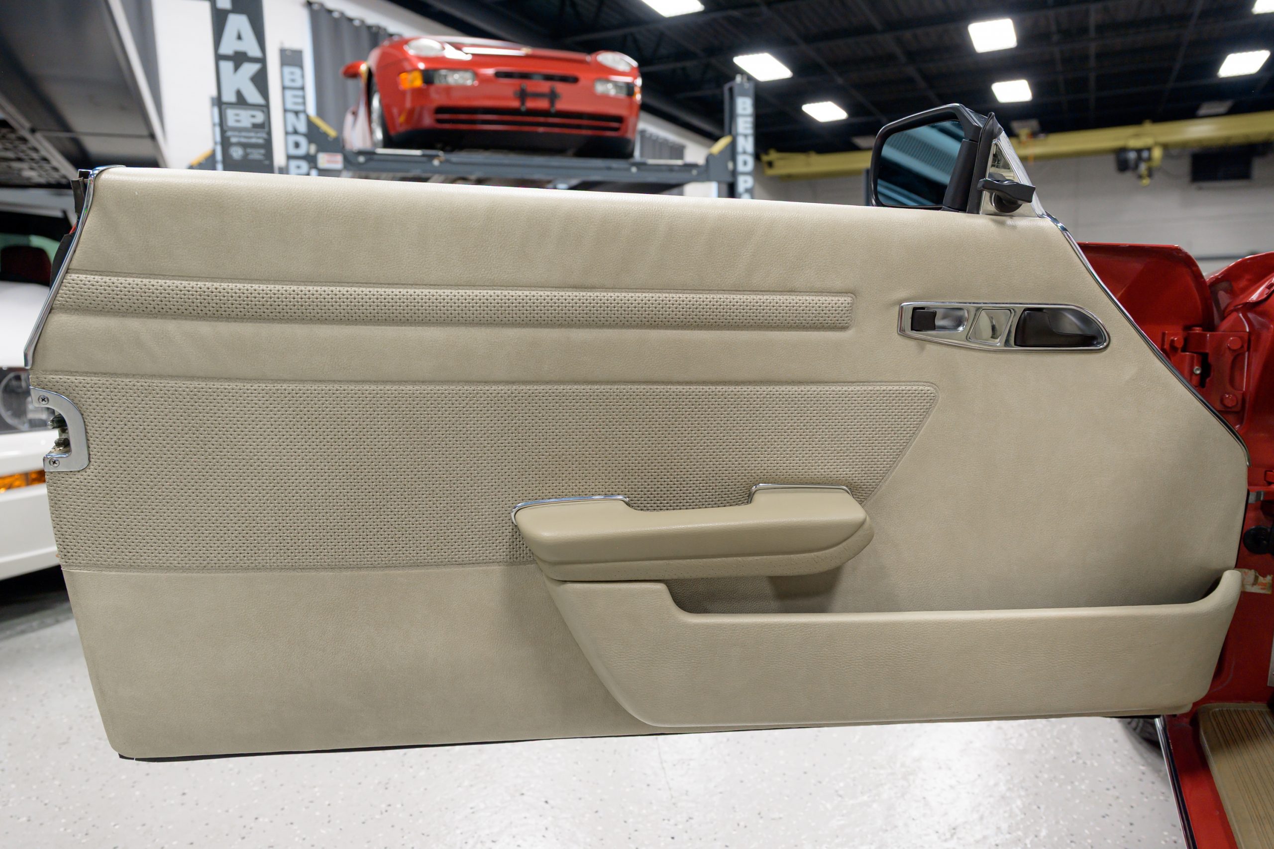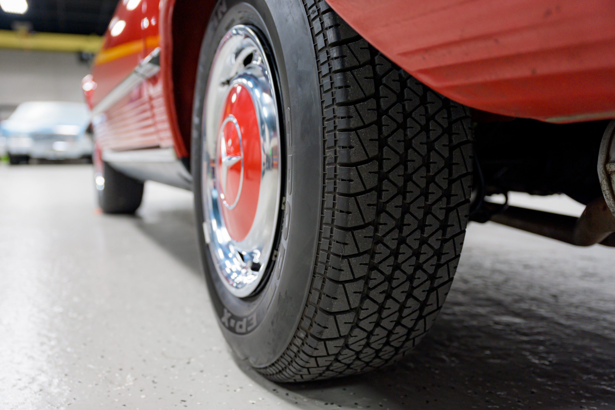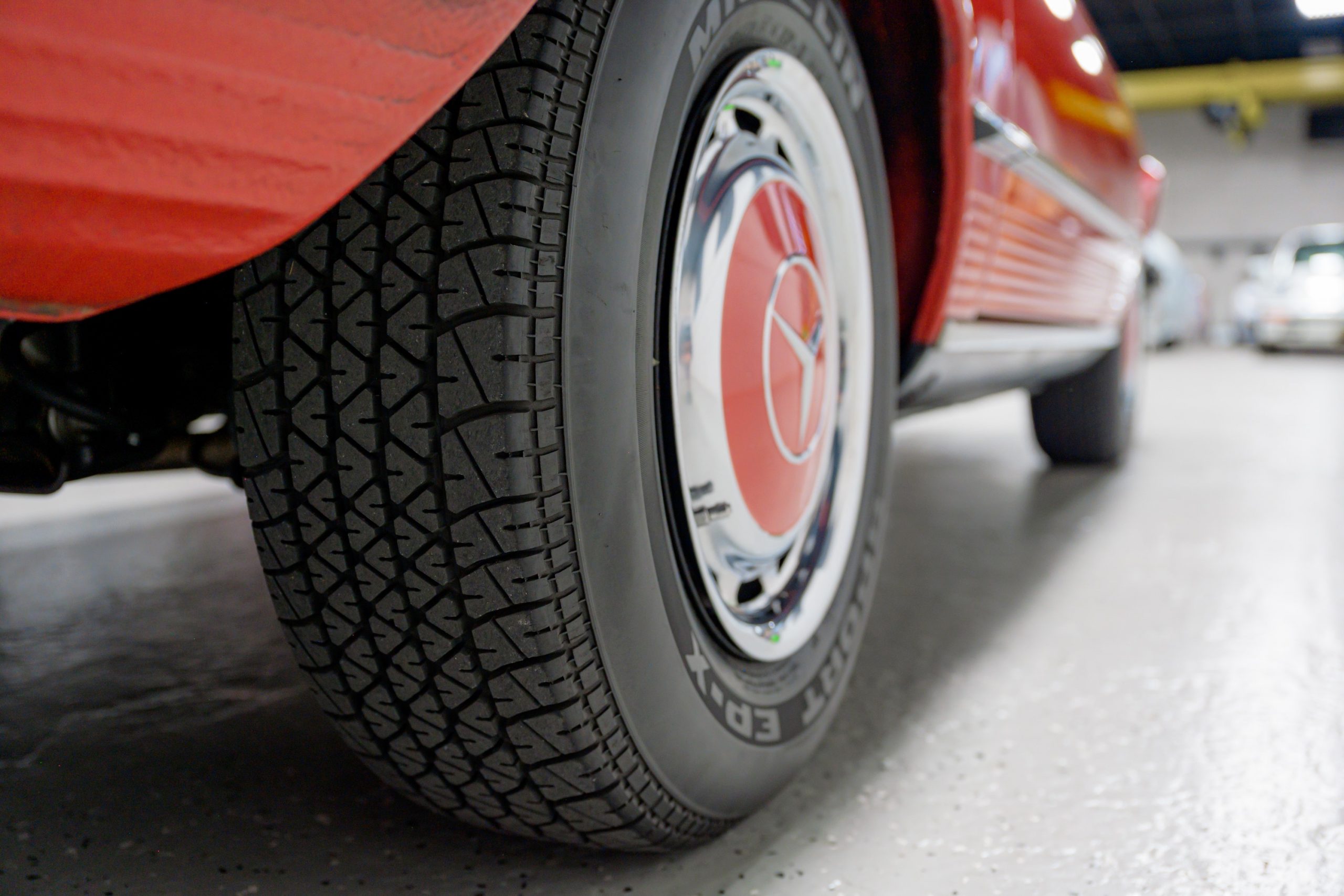 Equipment includes a body-color removable hardtop, a black soft top, fog lights, air conditioning, power steering, power disc brakes, a Becker Grand Prix stereo with power antenna, central locking, and power windows. It is also equipped with 14″ steel wheels with bright covers and color-matched painted centers mounted with 205/70 Michelin Sport EP-X tires.