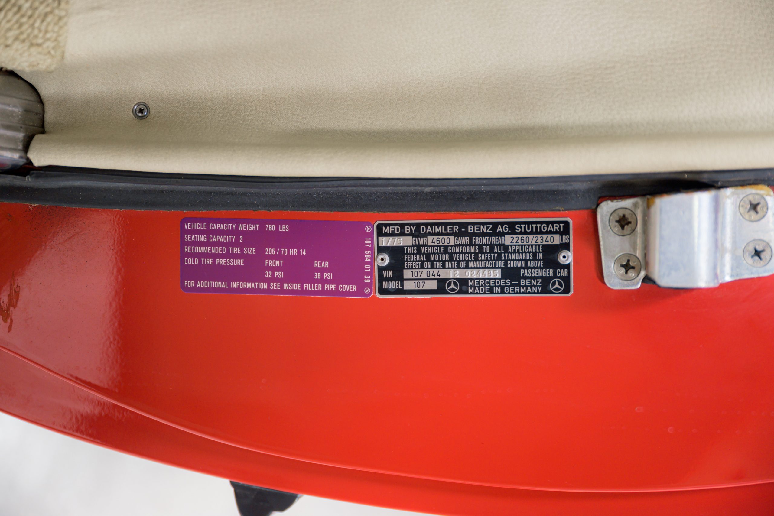 Decoding the option plate reveals this 450SL is equipped as follows: