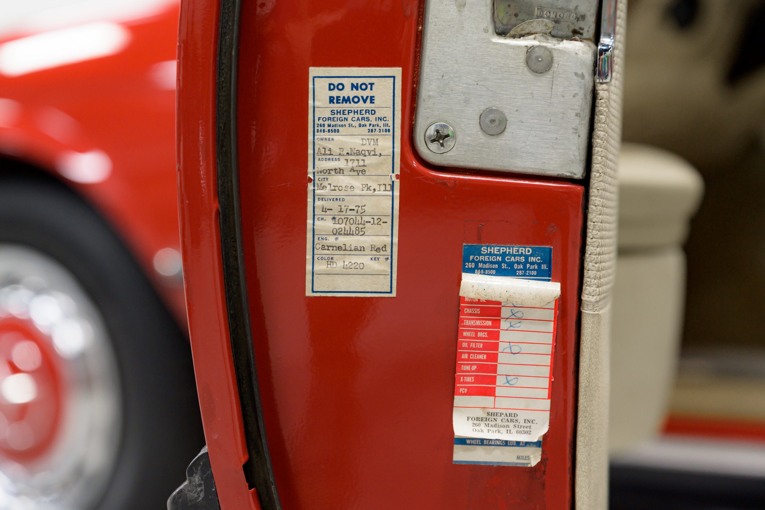 It was sold new at authorized Mercedes-Benz dealer Shepard Foreign Cars in Oak Park, IL on 4/17/1975 to Mr. Naqvi of Melrose Park, IL. It’s understood to have remained with the original owner for multiple decades before our acquisition in May 2024 in which the odometer shows just 22,651 miles of accumulation over the past 50 years.
