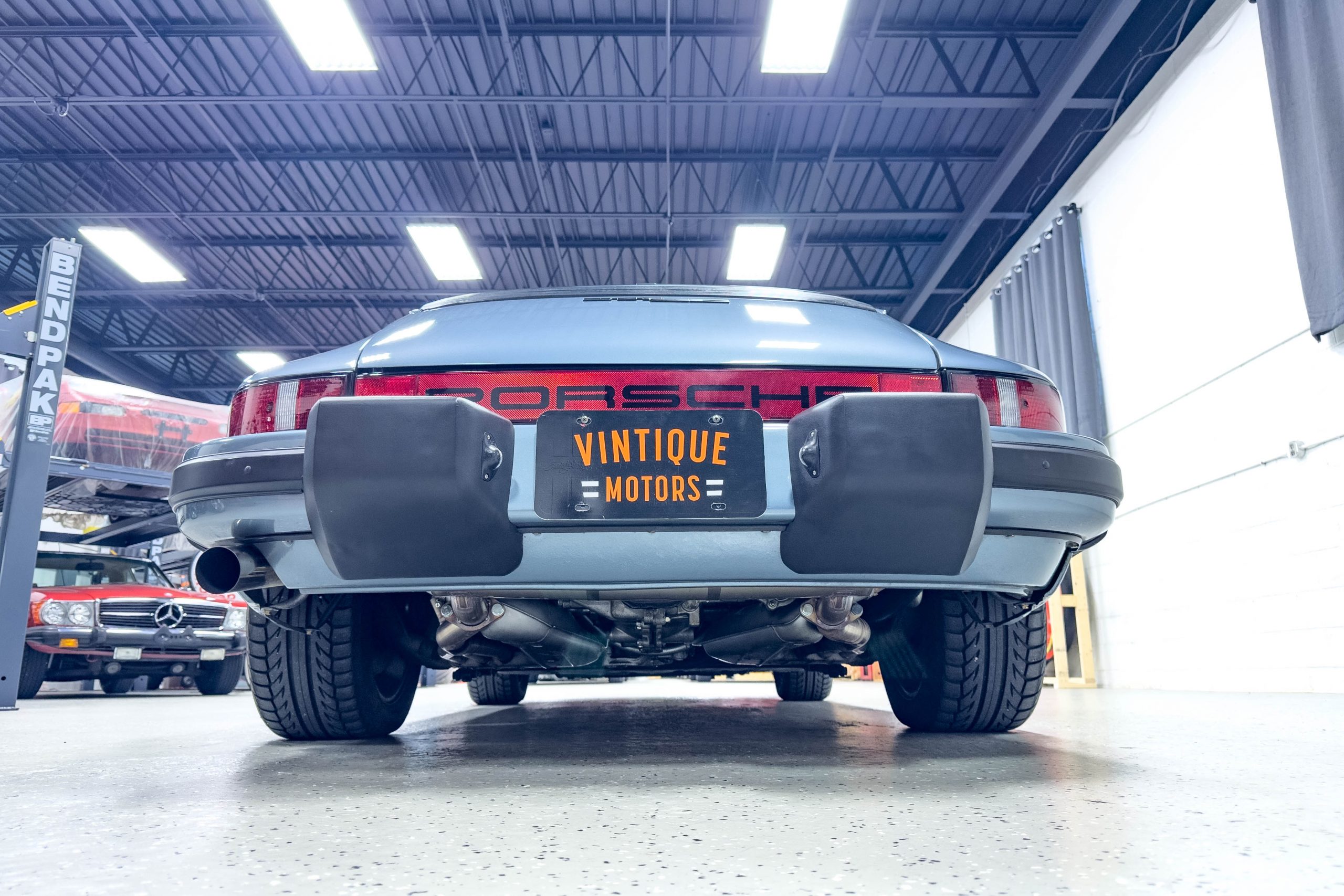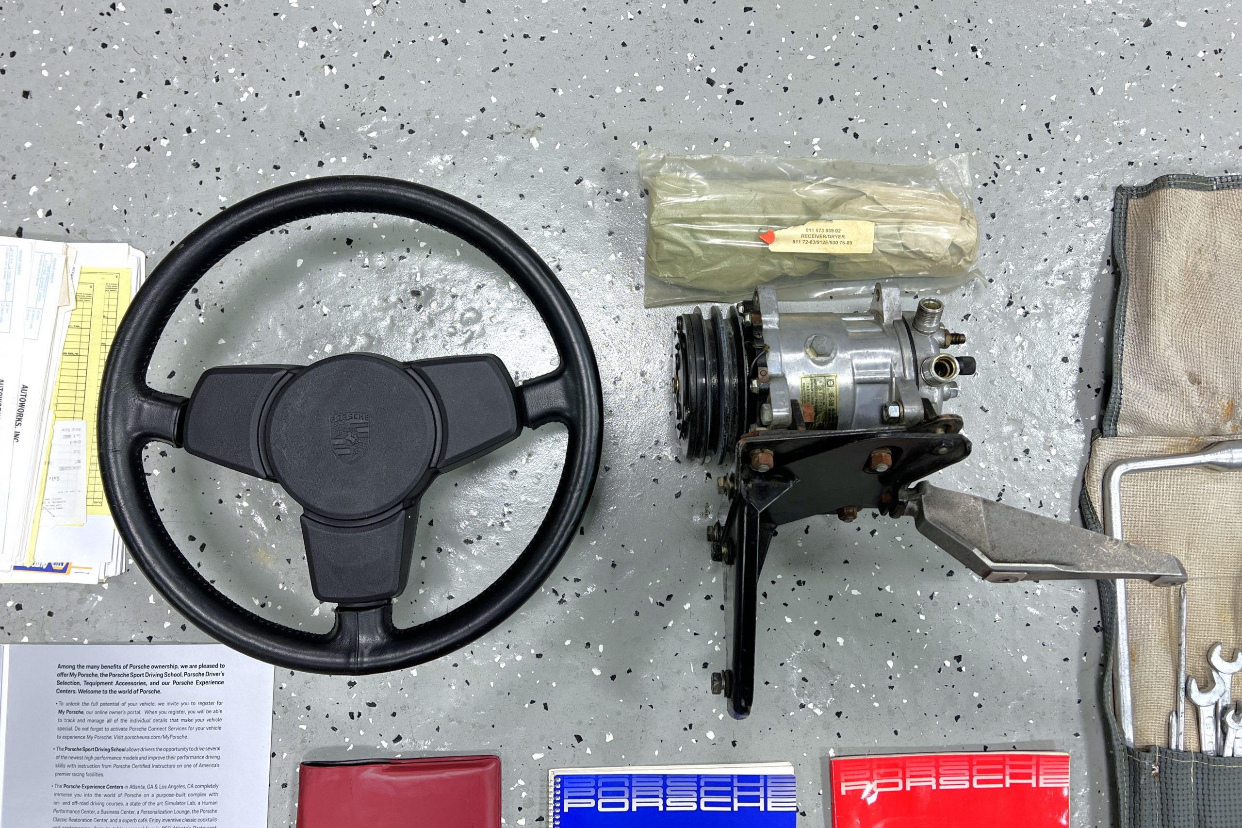 The only known modifications include the SSI exhaust, a MoMo prototipo steering wheel, and an upgraded audio system. Included with the sale are the original books and manuals, keys, service records, Porsche CoA, tool roll, steering wheel, and an uninstalled air conditioning compressor.