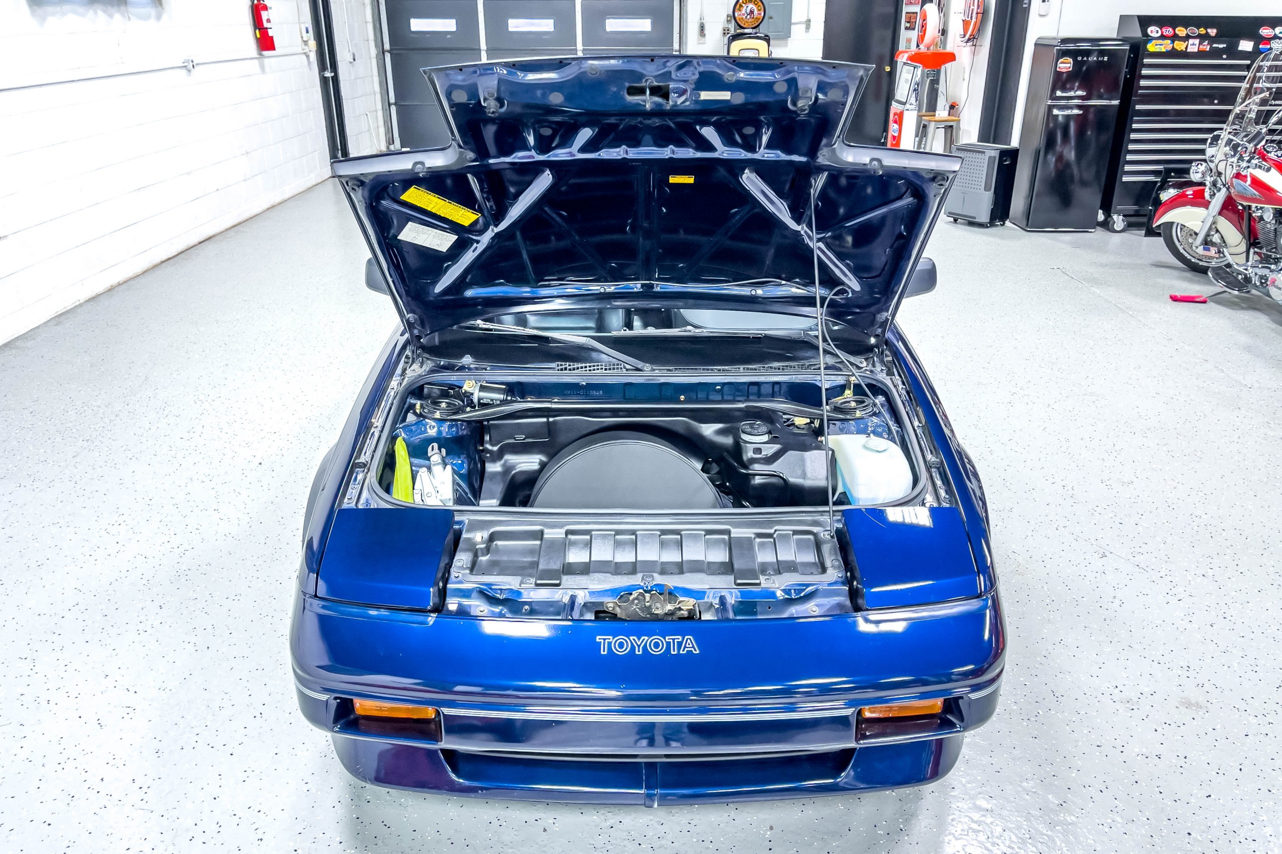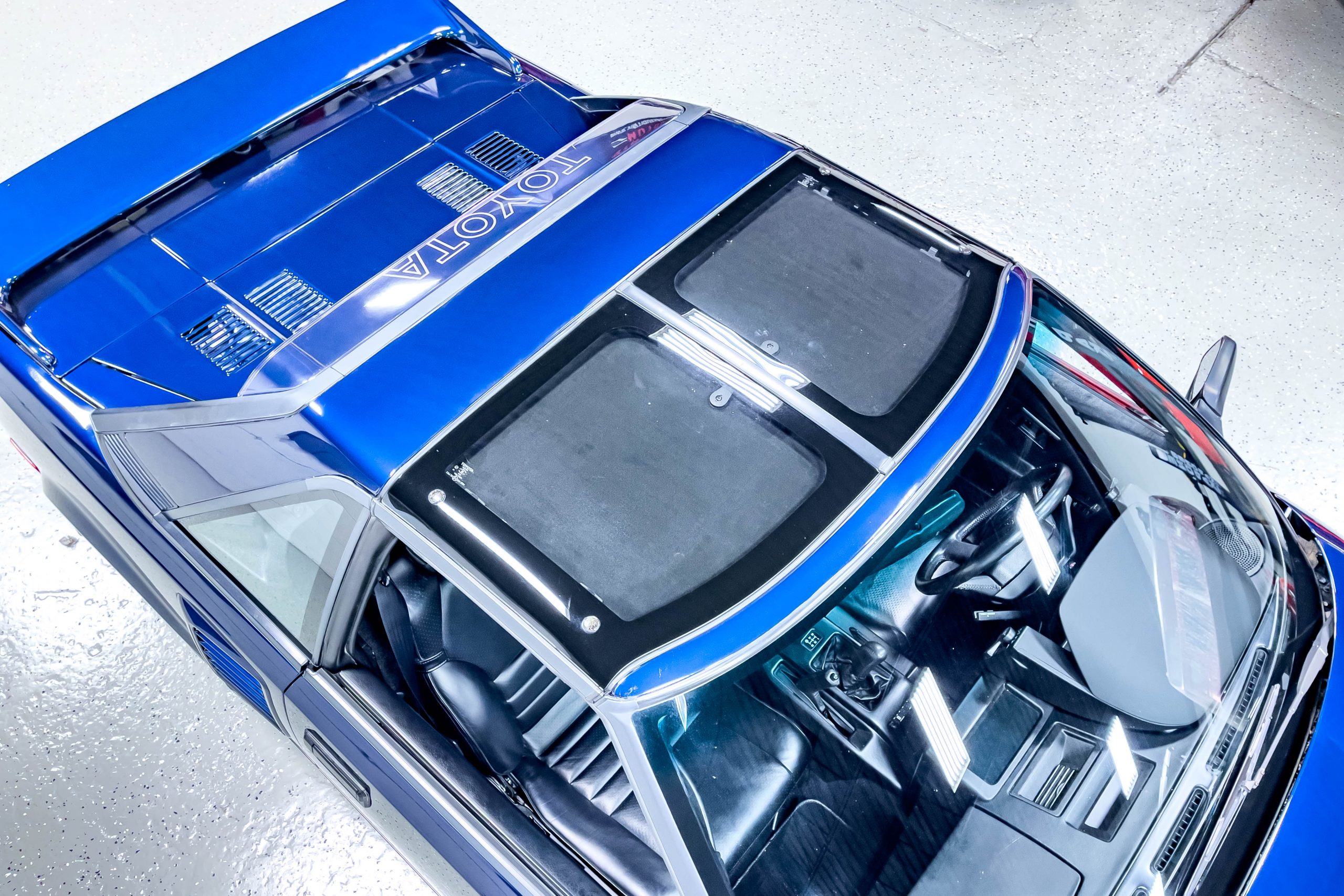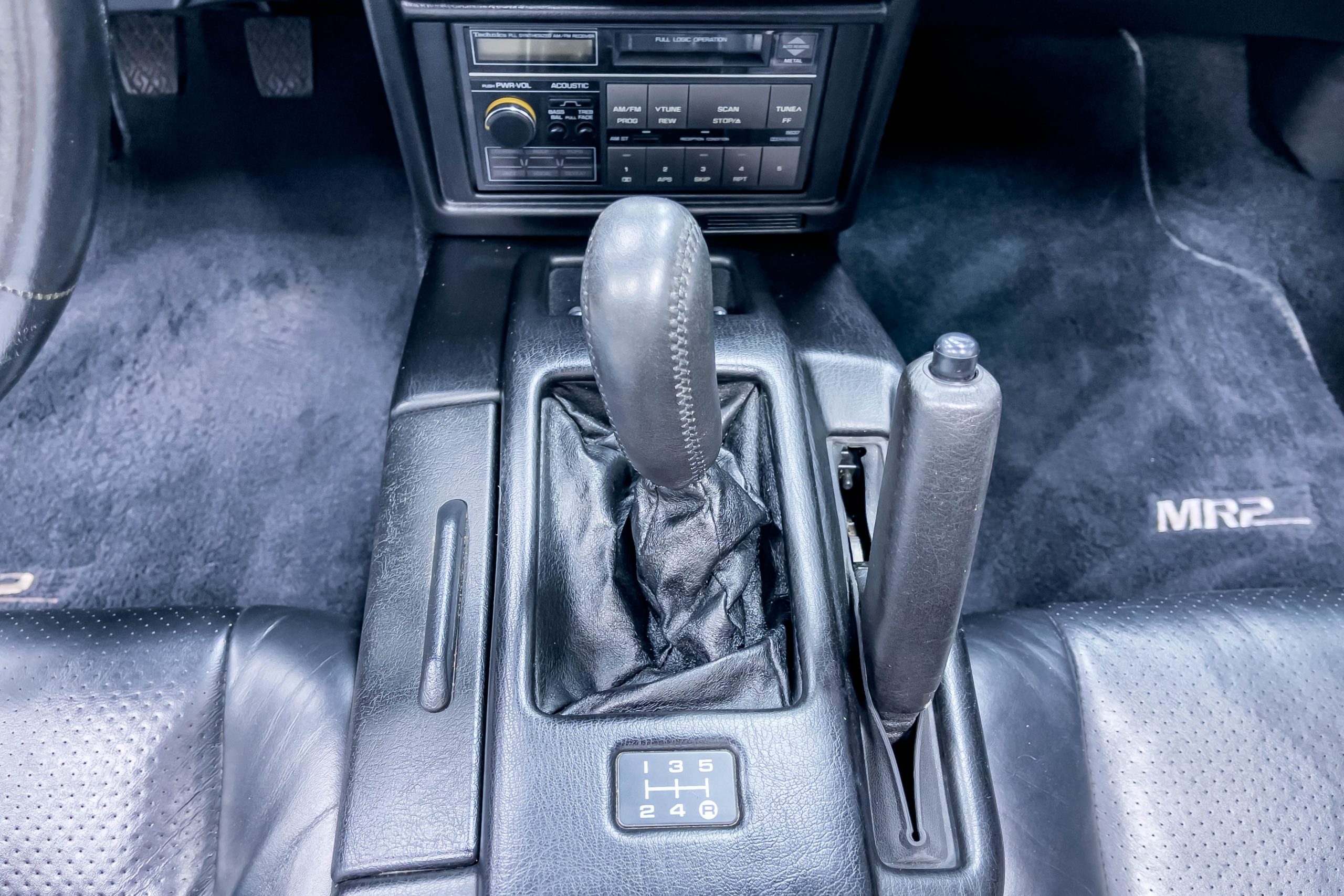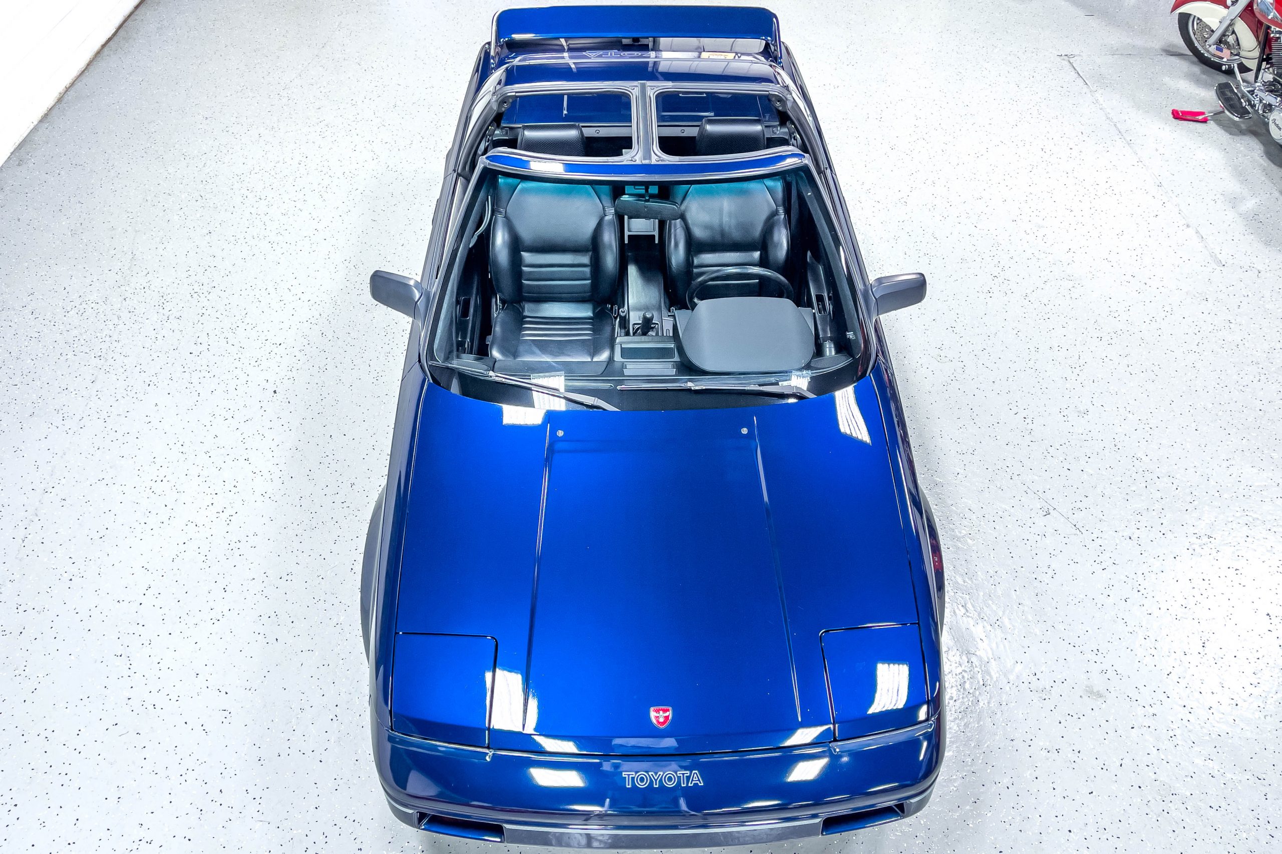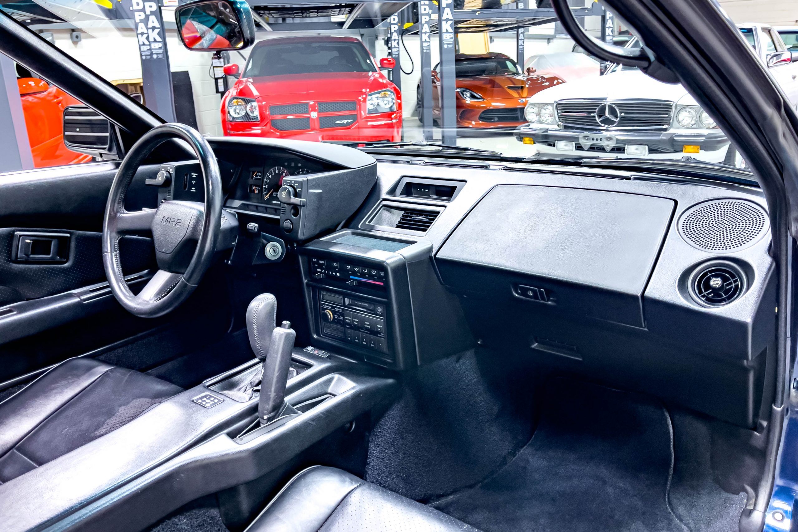 This MR2 is finished in its factory shade of Dark Blue Pearl over a black leather interior and features a 1.6L 4-cylinder engine mated to a 5-speed manual transmission. The mid-mounted engine features fuel injection and DOHC and was rated at 112 horsepower and 97 lb.-ft. of torque. Additional standard features include 4-wheel power disc brakes, 4-wheel independent suspension, tilt steering wheel, digital clock, and a rear window defogger. This example is well equipped with several desirable options and packages consisting of 14″ aluminum alloy wheels, Aero Package with color-keyed rear spoiler, Performance Interior Package with 7-way leather bucket seats, Power Package with power windows and locks, Super Sound AM/FM/MPX receiver with equalizer, air conditioning, cruise control, removable T-top glass roof panels, alarm system, and mudguards.