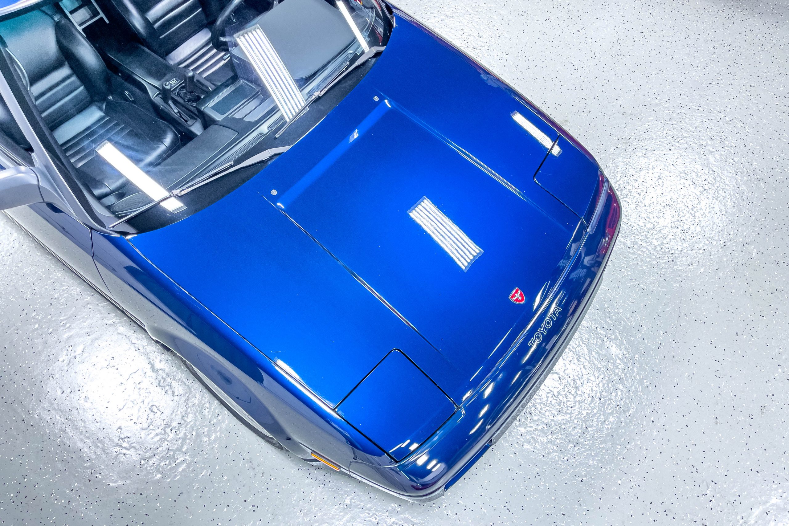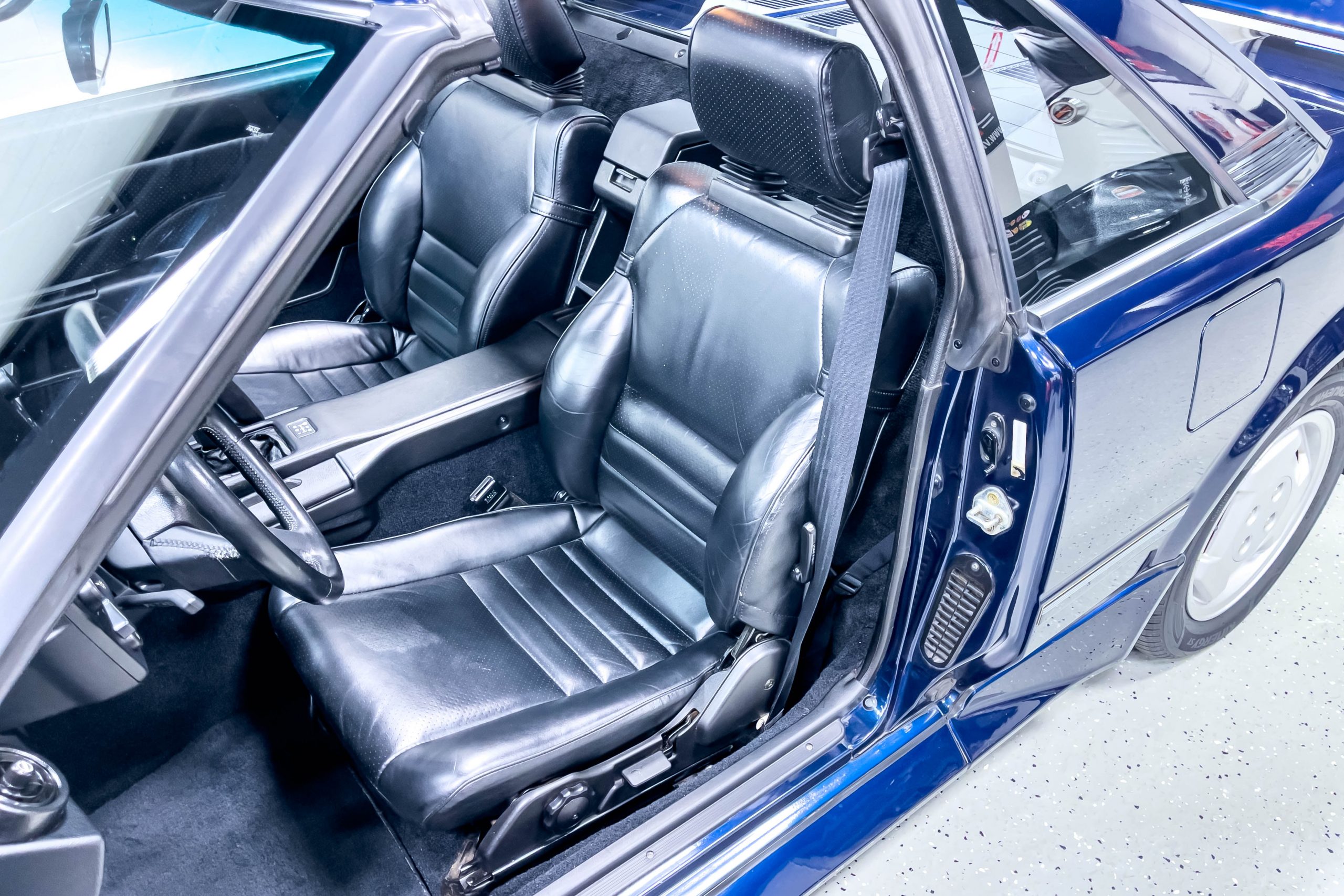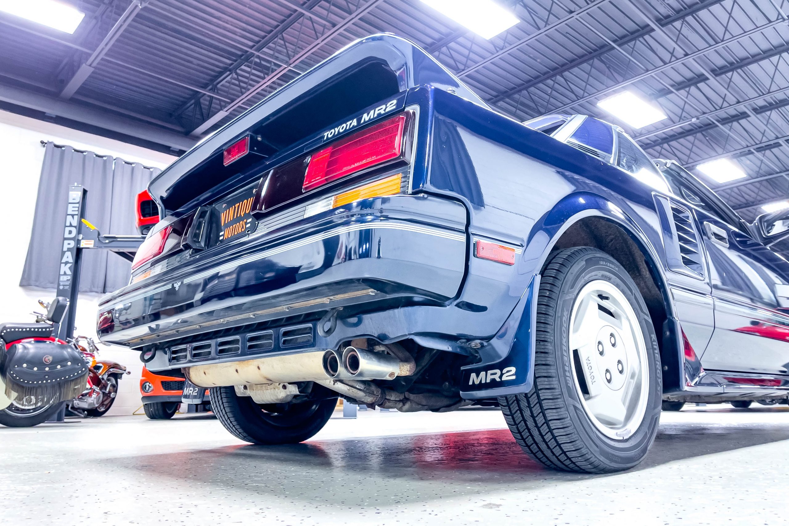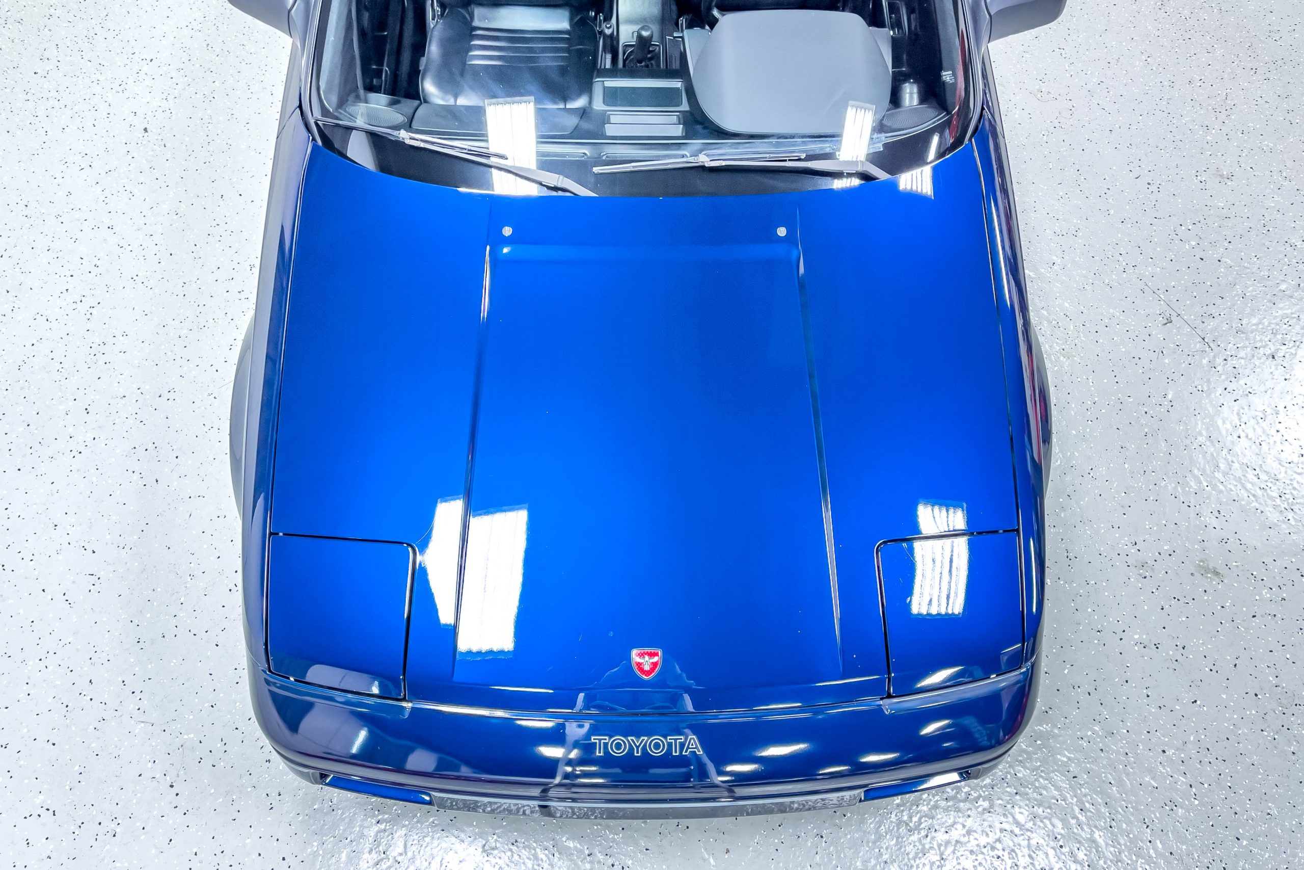 This MR2 is finished in its factory shade of Dark Blue Pearl over a black leather interior and features a 1.6L 4-cylinder engine mated to a 5-speed manual transmission. The mid-mounted engine features fuel injection and DOHC and was rated at 112 horsepower and 97 lb.-ft. of torque. Additional standard features include 4-wheel power disc brakes, 4-wheel independent suspension, tilt steering wheel, digital clock, and a rear window defogger. This example is well equipped with several desirable options and packages consisting of 14″ aluminum alloy wheels, Aero Package with color-keyed rear spoiler, Performance Interior Package with 7-way leather bucket seats, Power Package with power windows and locks, Super Sound AM/FM/MPX receiver with equalizer, air conditioning, cruise control, removable T-top glass roof panels, alarm system, and mudguards.