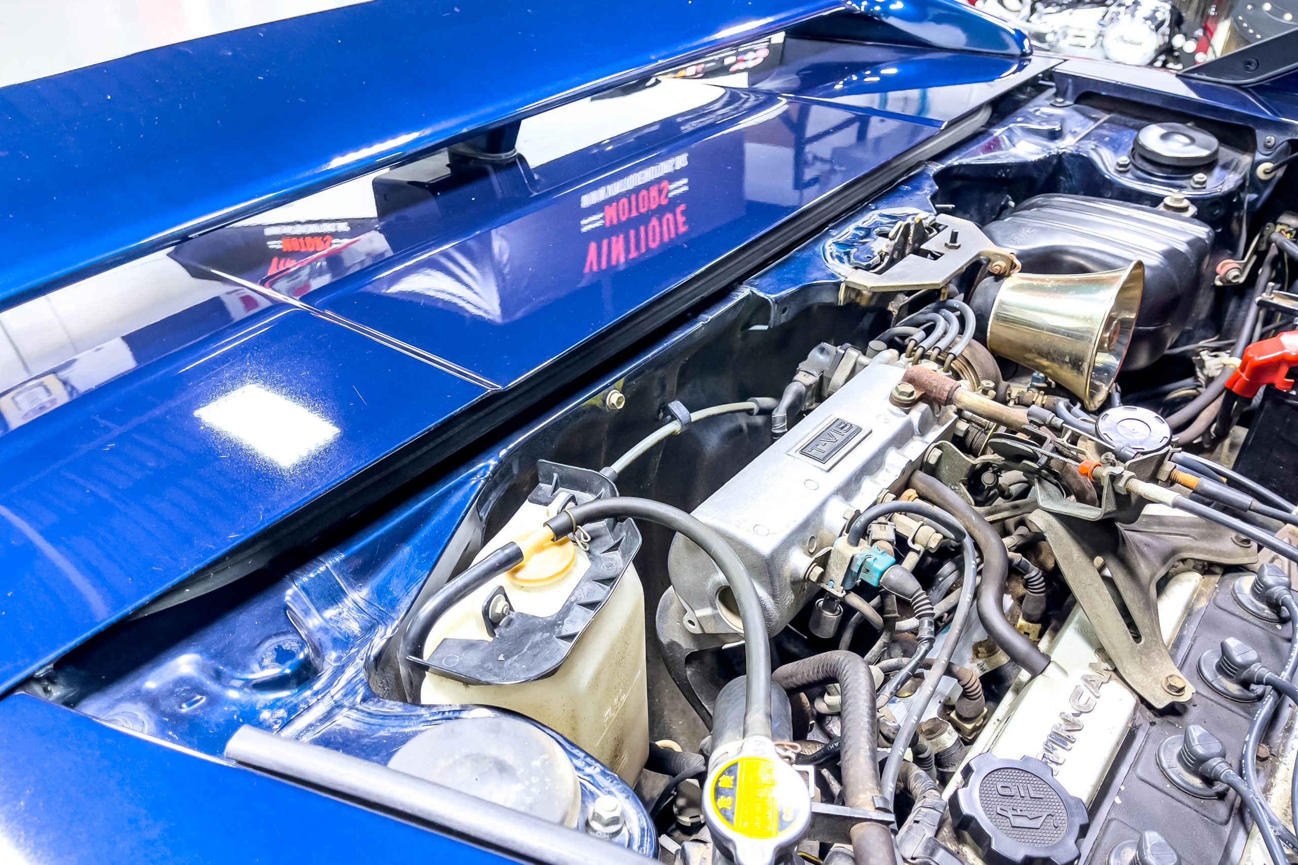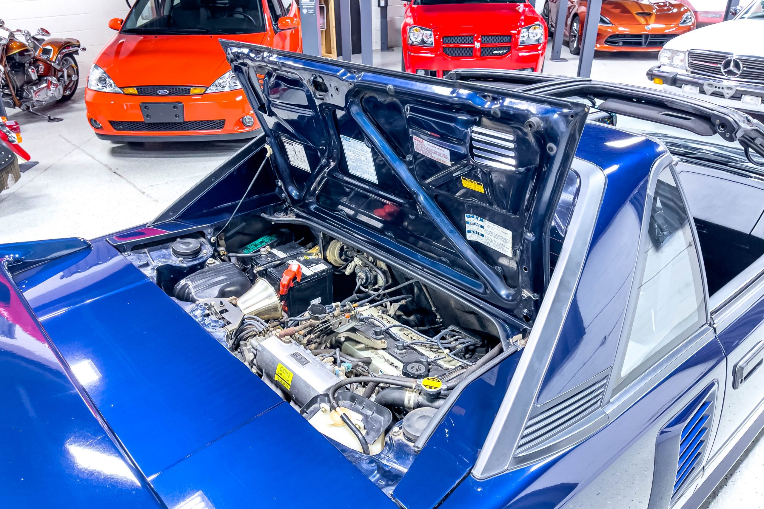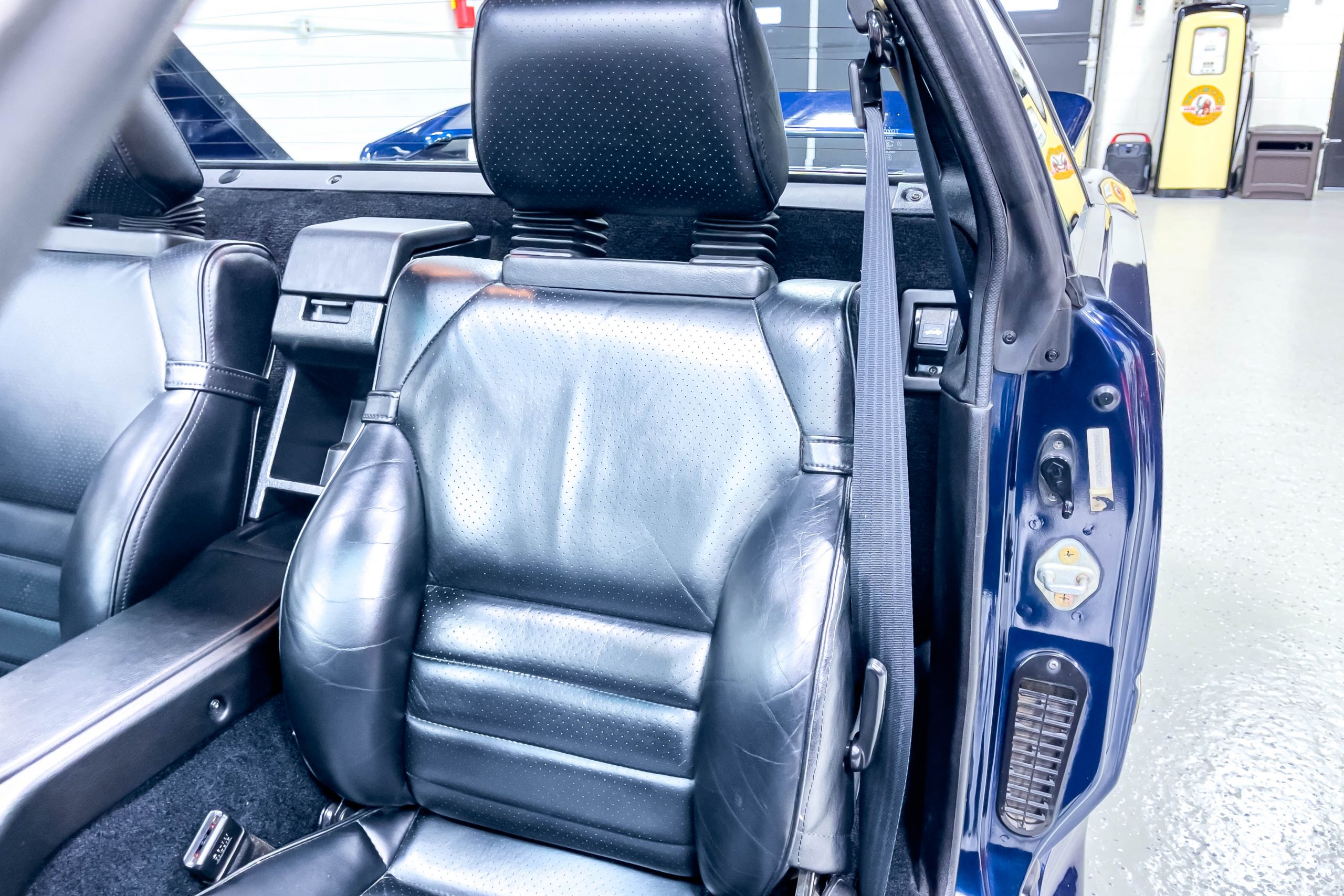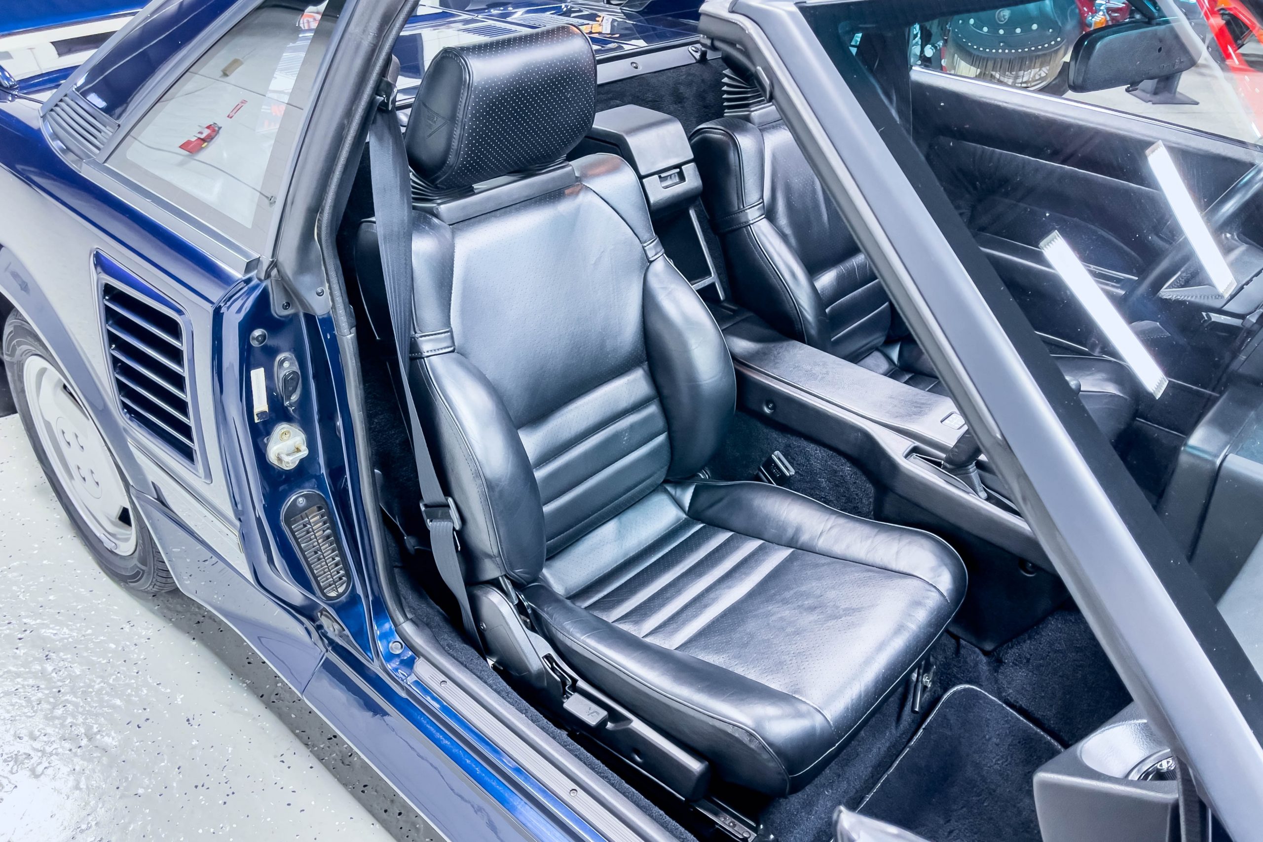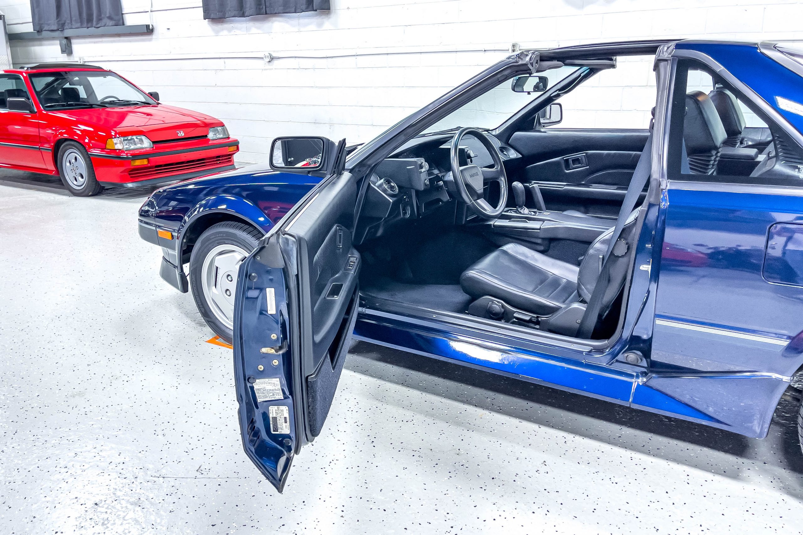 This MR2 is finished in its factory shade of Dark Blue Pearl over a black leather interior and features a 1.6L 4-cylinder engine mated to a 5-speed manual transmission. The mid-mounted engine features fuel injection and DOHC and was rated at 112 horsepower and 97 lb.-ft. of torque. Additional standard features include 4-wheel power disc brakes, 4-wheel independent suspension, tilt steering wheel, digital clock, and a rear window defogger. This example is well equipped with several desirable options and packages consisting of 14″ aluminum alloy wheels, Aero Package with color-keyed rear spoiler, Performance Interior Package with 7-way leather bucket seats, Power Package with power windows and locks, Super Sound AM/FM/MPX receiver with equalizer, air conditioning, cruise control, removable T-top glass roof panels, alarm system, and mudguards.