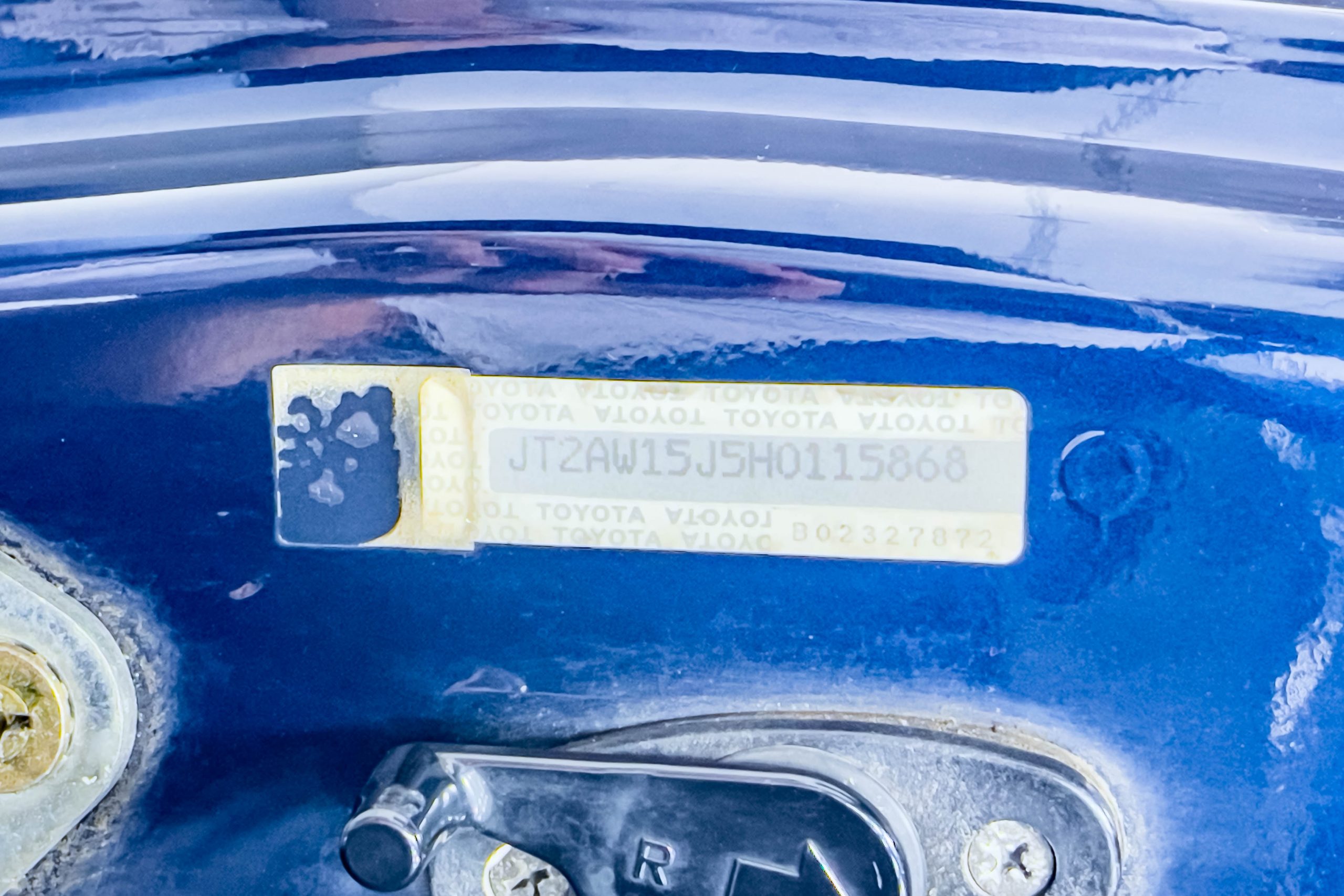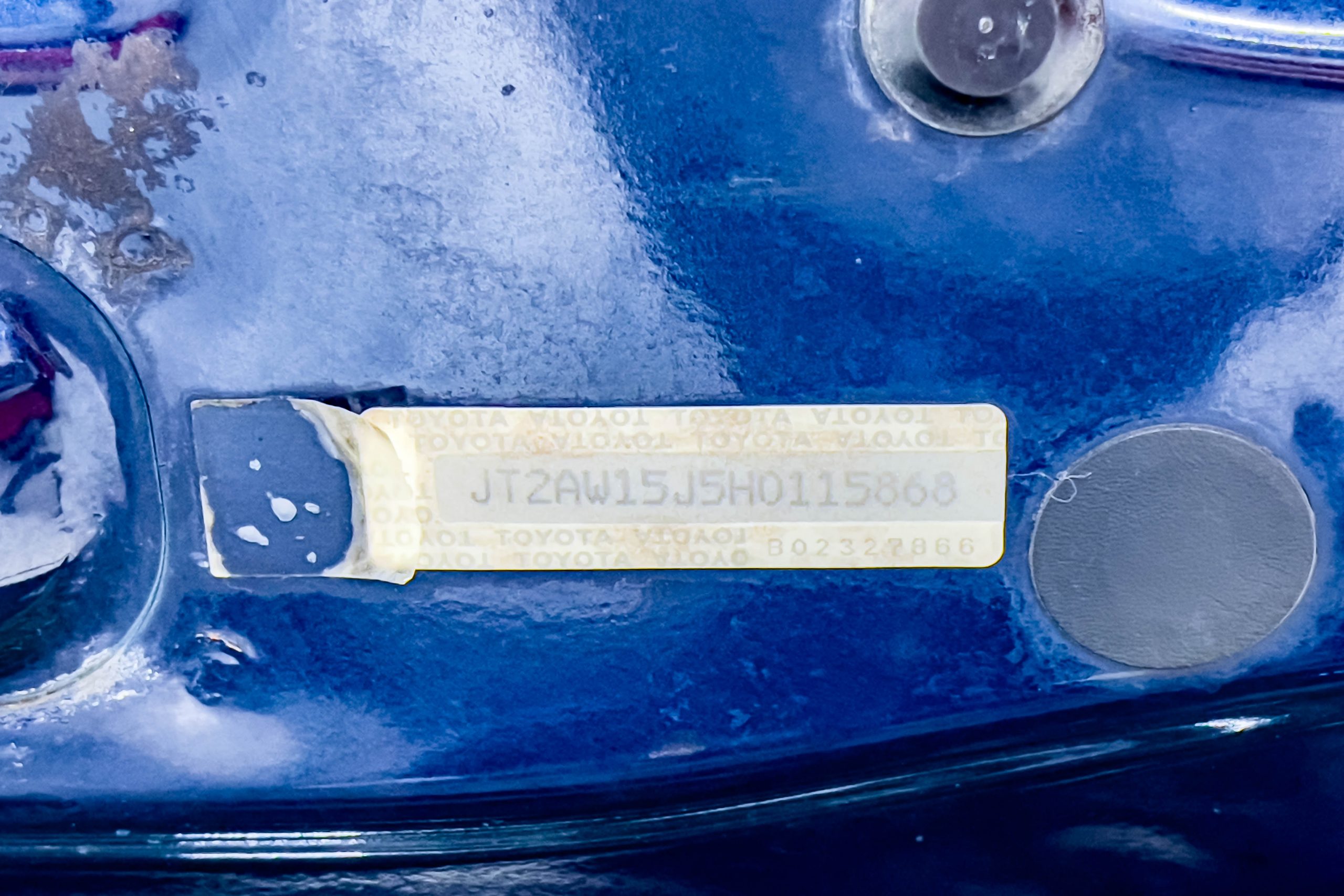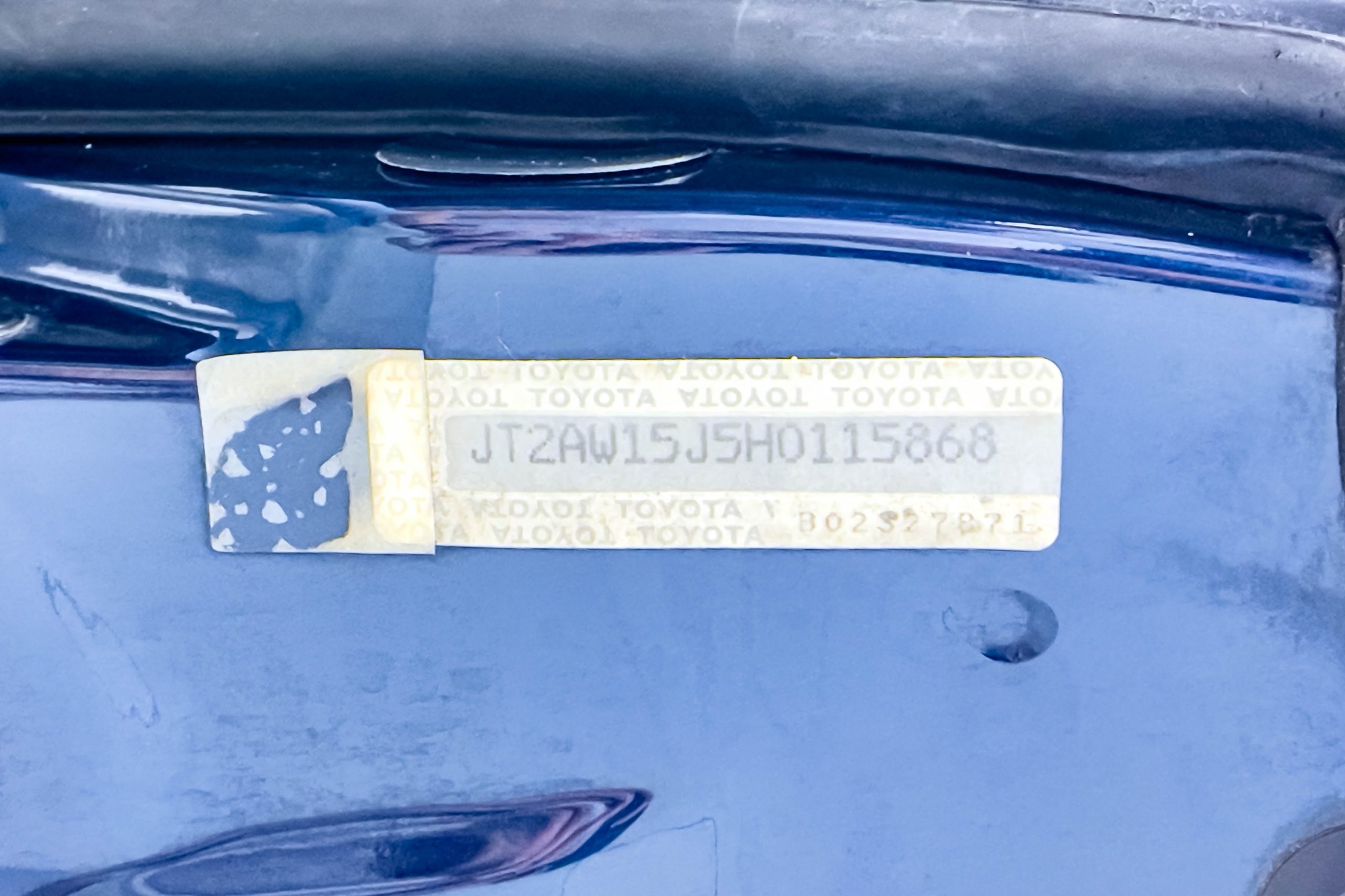 It was purchased new in Michigan, believed to be from Bob Saks Toyota in Farmington Hills, MI, on 6/3/1987 and subsequently registered in Walled Lake, MI. It would remain with the original owner for 36 years until his passing in which it was retitled in his spouse’s name on 1/9/2023 for the purposes of selling it. It had been in storage for 21 years as its last registration tag is from 2002 in which a friend of the family also from Walled Lake, MI came to understand the original owner’s widow was going to donate it and instead, he purchased it on 7/25/2023 becoming the DeFacto second owner. Being mechanically inclined, he went through the car front to back replacing and updating components to return it top operating condition. Following this, as a friend of ours he contacted us to gauge our interest in purchasing it in which we acquired it from him on 8/25/2023. We proceeded to install new Hankook Kinergy ST tires in factory sized 185/60R14 and conduct an in-house detailing and two-stage paint correction and polishing.