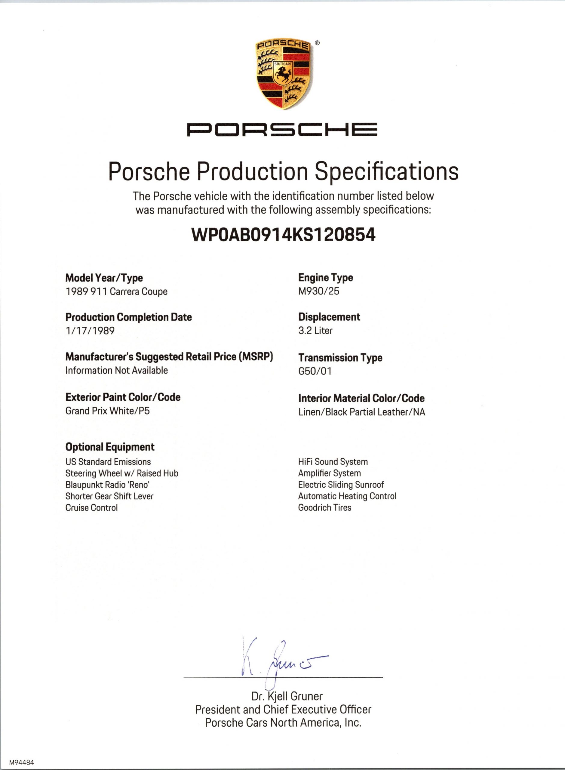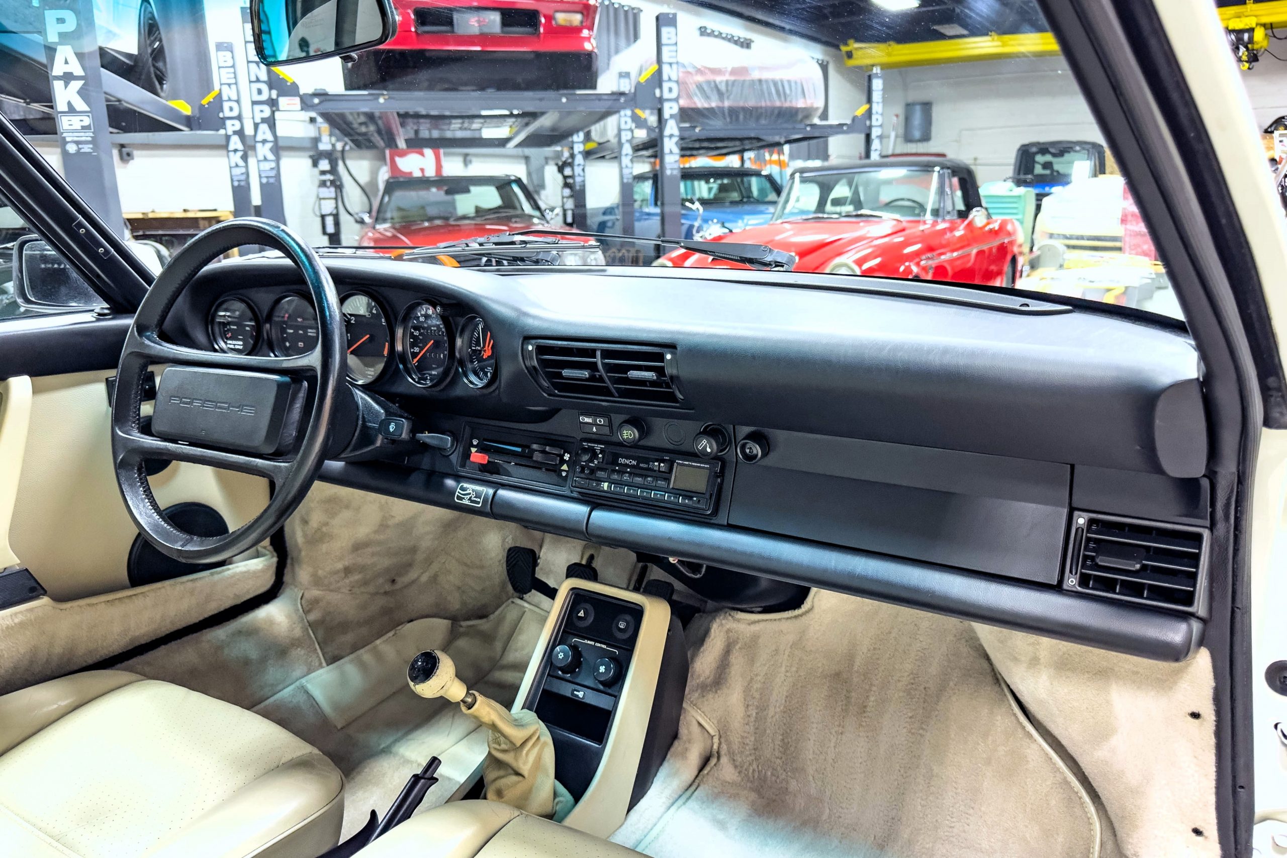 This ’89 911 is finished in the attractive combination of Grand Prix White over a Linen and Black interior complete with color-keyed carpets and black Fuchs wheels wearing brand new Continental Extreme Contact Sport 02 tires. It is equipped with a number of options, notably present is cruise control, short gear shifter, electric sunroof, and the Hi-Fi audio system. It was sold new in New York and in March 1991 it was acquired by its second New York based owner with 2,828 miles. It would remain with the second owner in New York for the next 31 years selling it to a dealer based in Missouri in February 2022 with a reported 54,772 miles. It’s third owner from Michigan purchased it from this dealer in January 2023 and today it is offered with 55,047 miles.