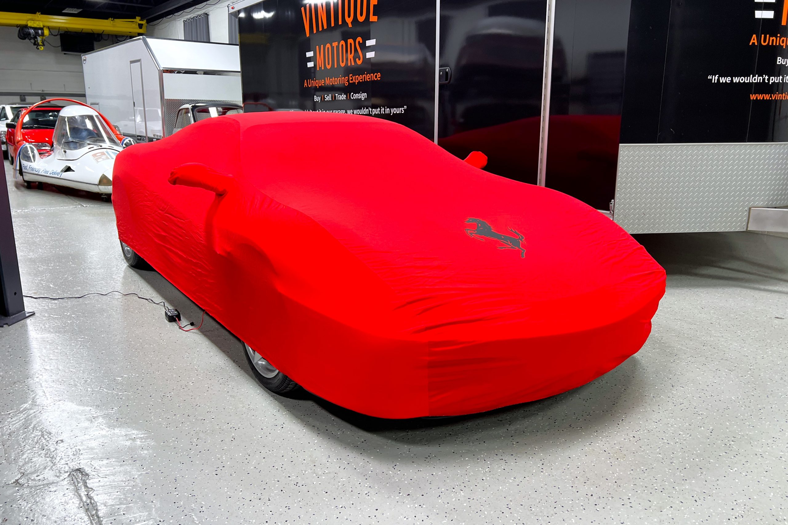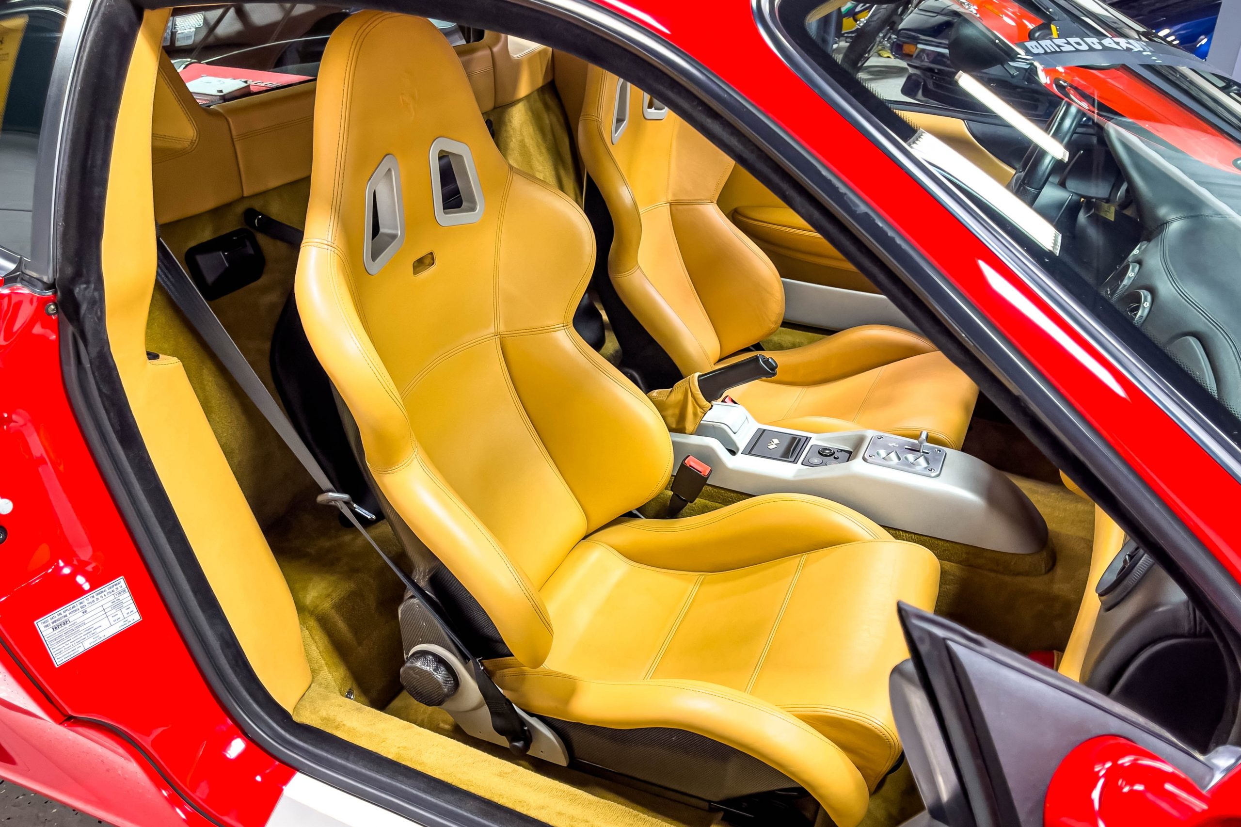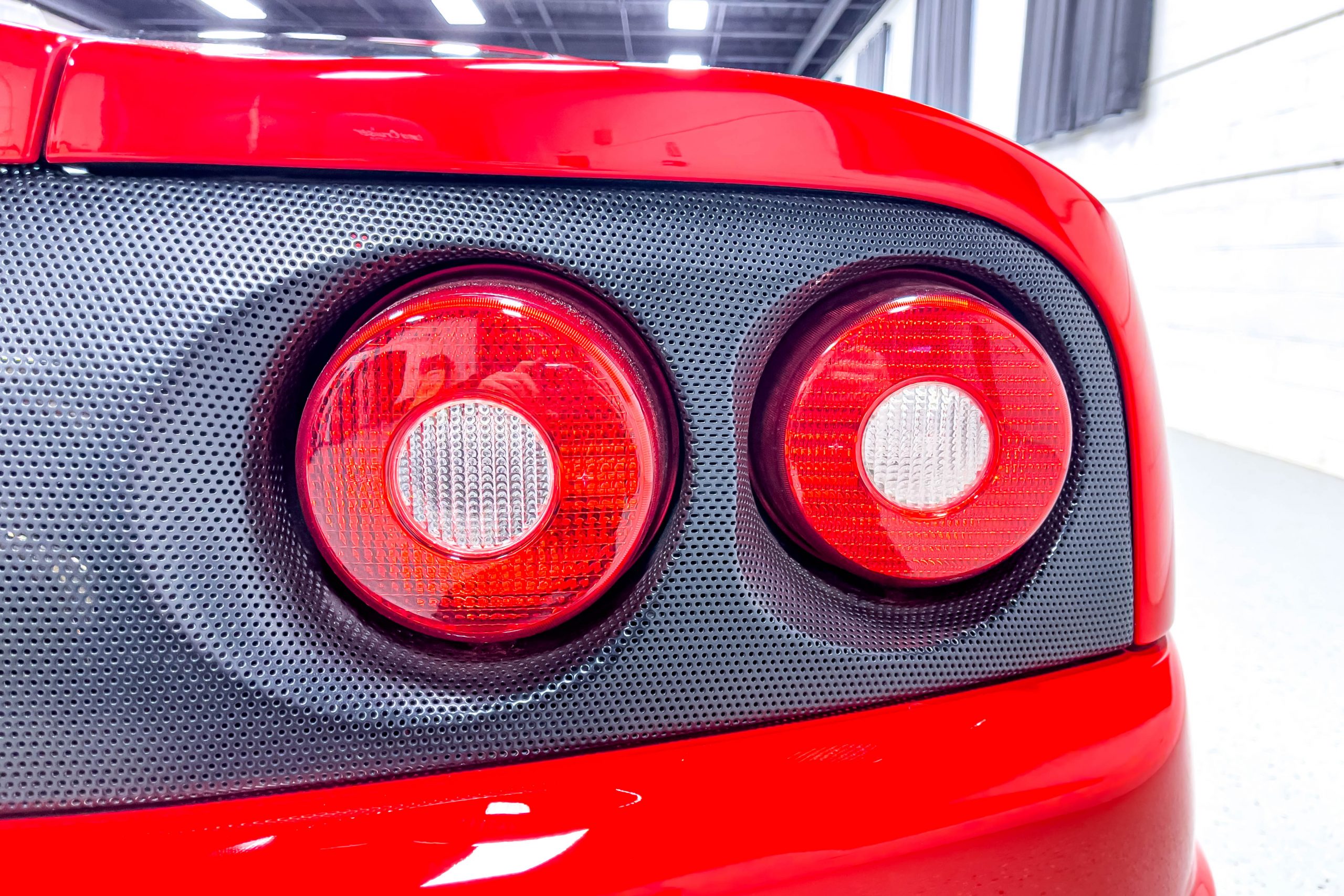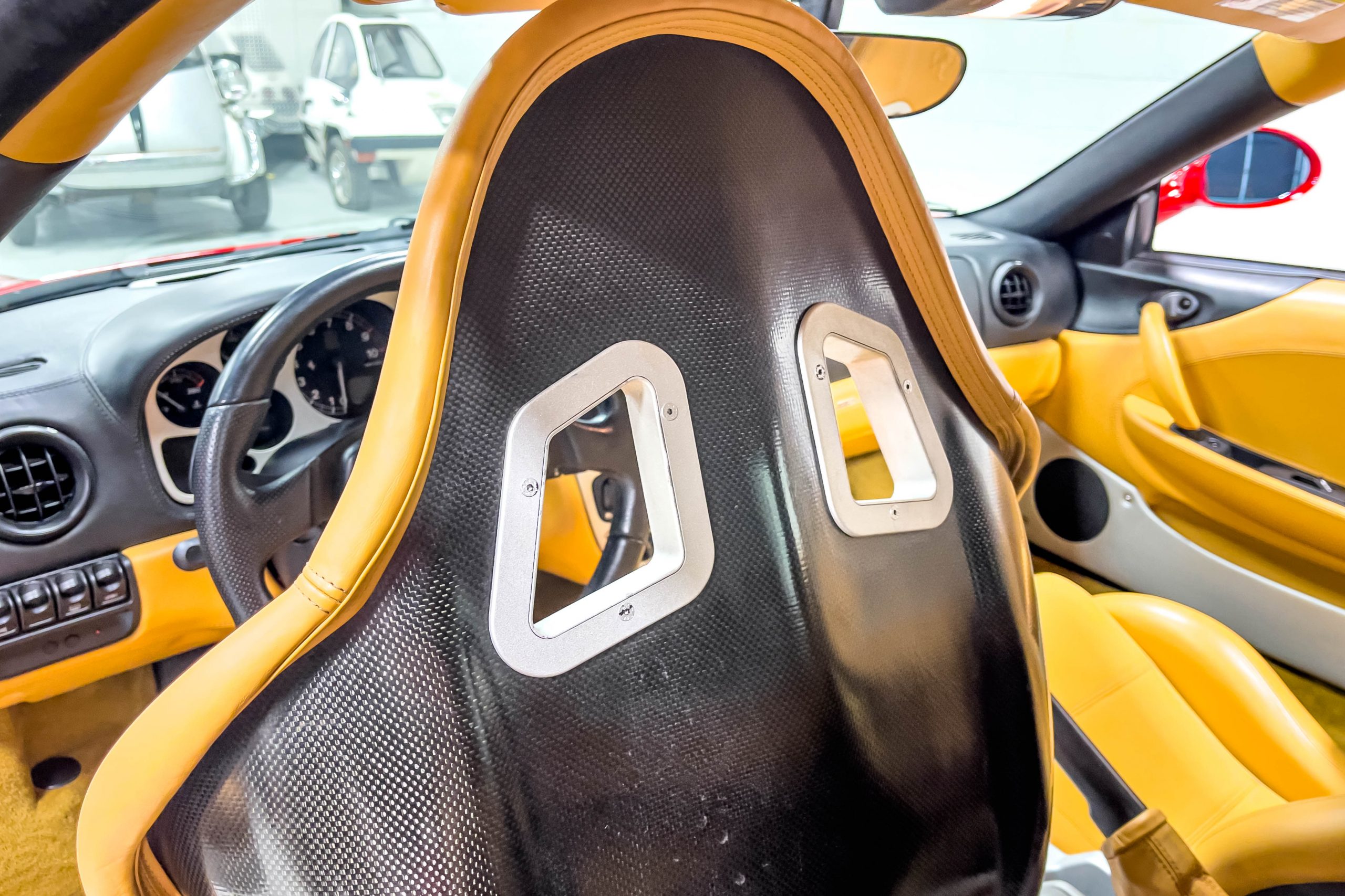 This 360 is finished in traditional colors of Rosso Corsa over a tan leather interior and is uniquely optioned with two extremely rare and desirable options being the painted removable top and the leather covered carbon fiber racing seats. Per our research, Ferrari reportedly produced 8,800 360 Modena’s globally in which 1,810 were U.S. spec versions. Of these 8,800, just 25 were optioned with the painted removable top in which just 12 of these were U.S. spec cars. Additional options and features included the F1 transmission, leather headliner, leather rear shelf and side moldings, red painted brake calipers, battery charger wiring, and an onboard fire extinguisher. The only known deviations from stock are a challenge rear grille and a Capristo performance exhaust.
