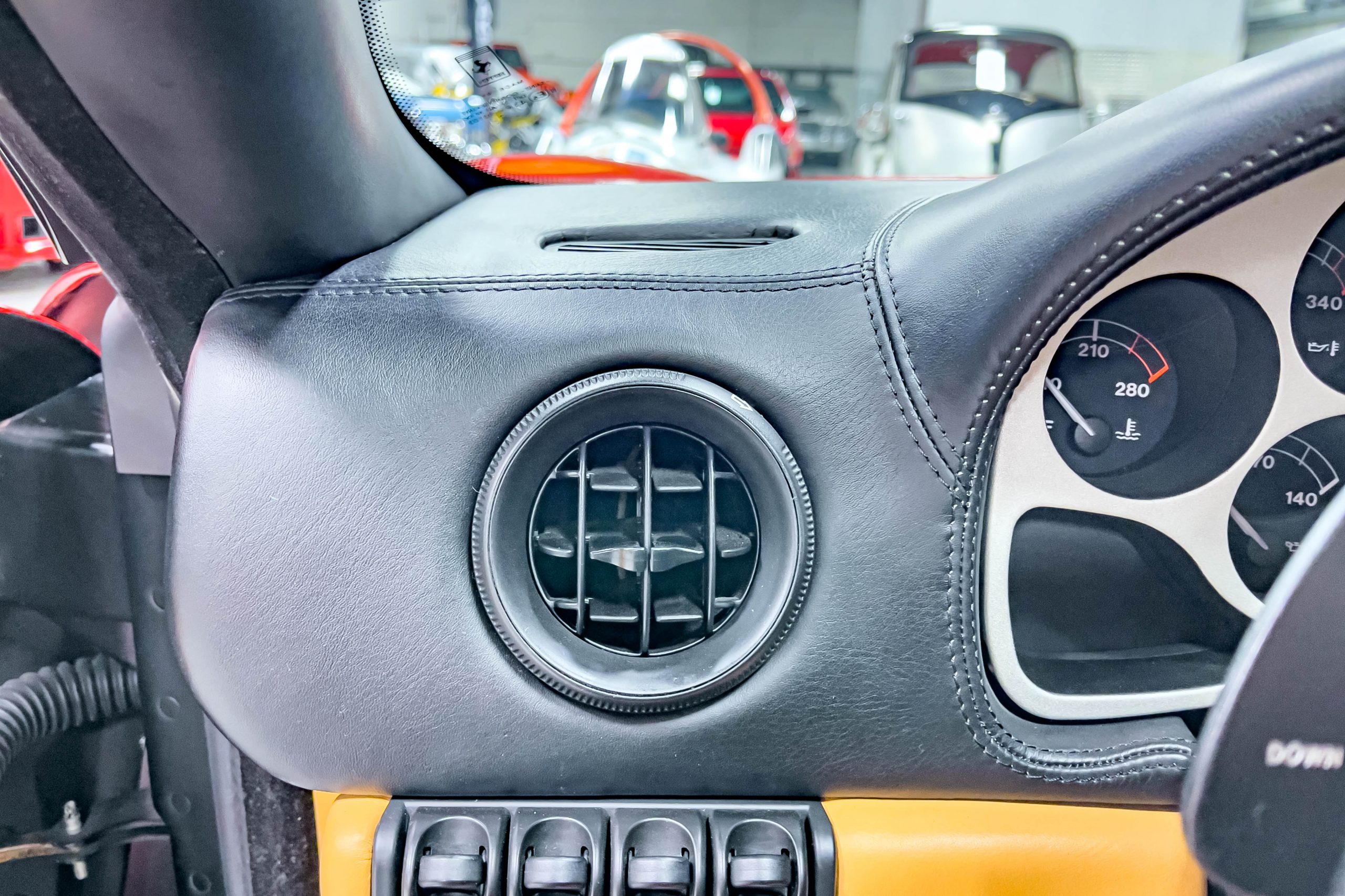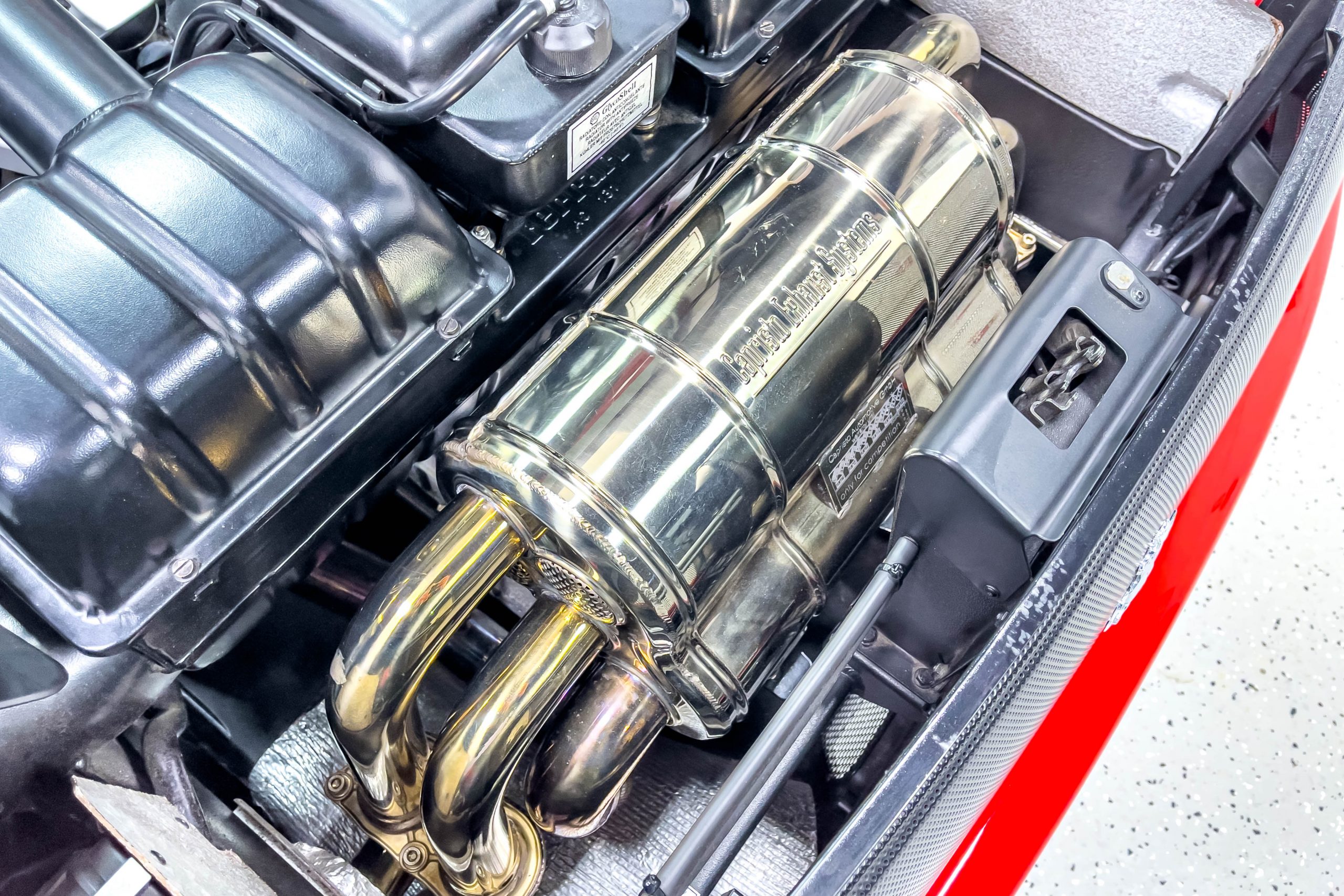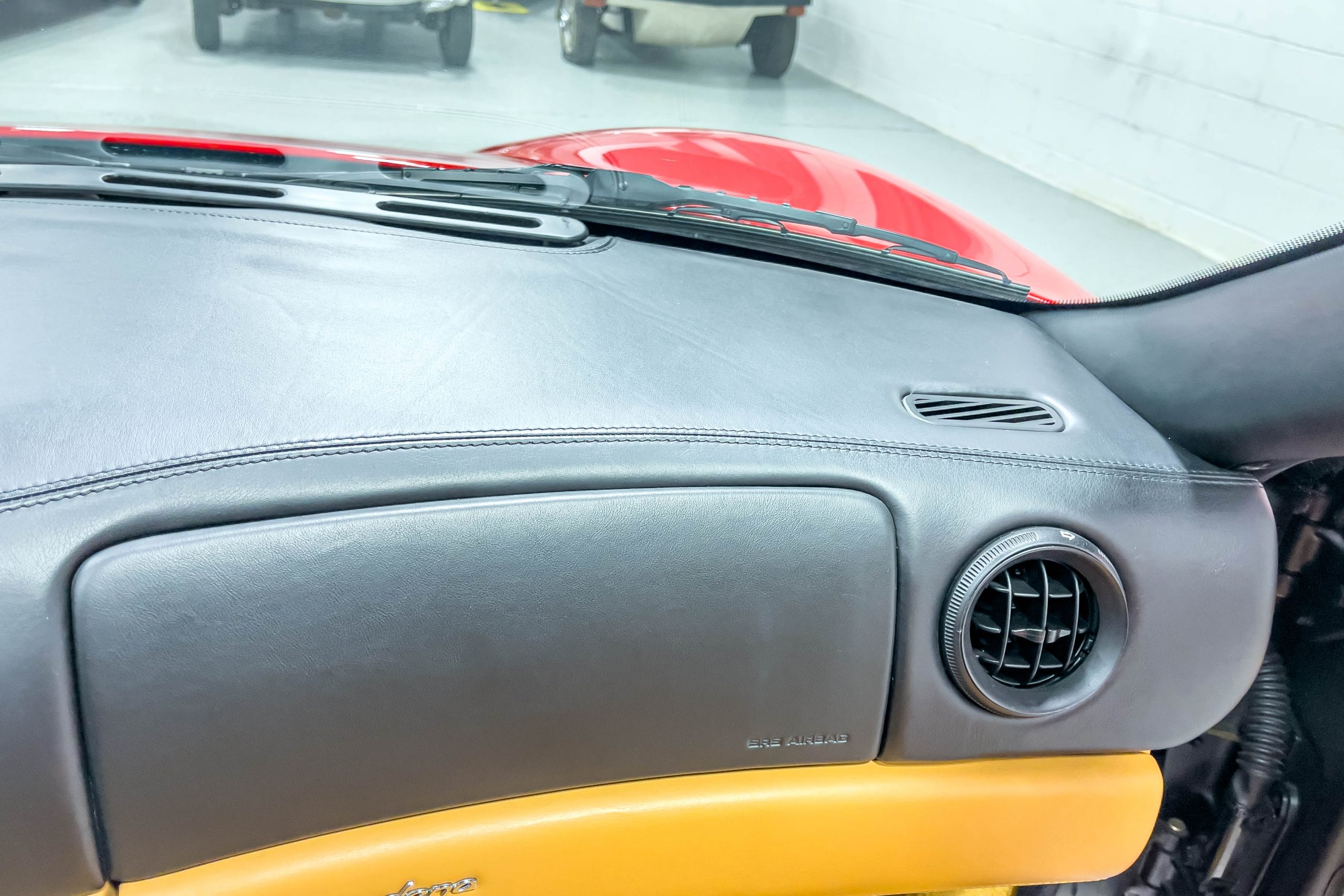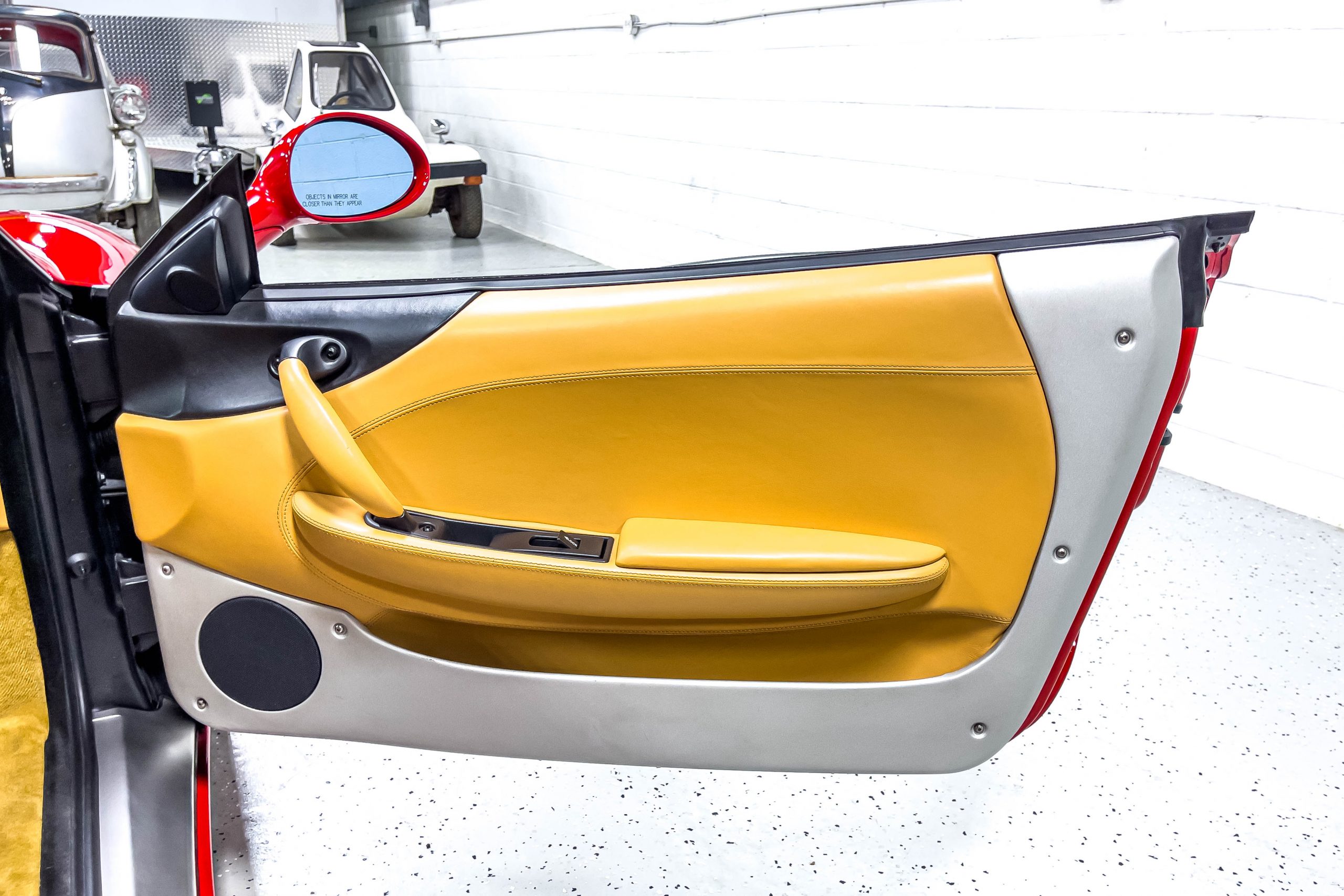 This 360 is finished in traditional colors of Rosso Corsa over a tan leather interior and is uniquely optioned with two extremely rare and desirable options being the painted removable top and the leather covered carbon fiber racing seats. Per our research, Ferrari reportedly produced 8,800 360 Modena’s globally in which 1,810 were U.S. spec versions. Of these 8,800, just 25 were optioned with the painted removable top in which just 12 of these were U.S. spec cars. Additional options and features included the F1 transmission, leather headliner, leather rear shelf and side moldings, red painted brake calipers, battery charger wiring, and an onboard fire extinguisher. The only known deviations from stock are a challenge rear grille and a Capristo performance exhaust.