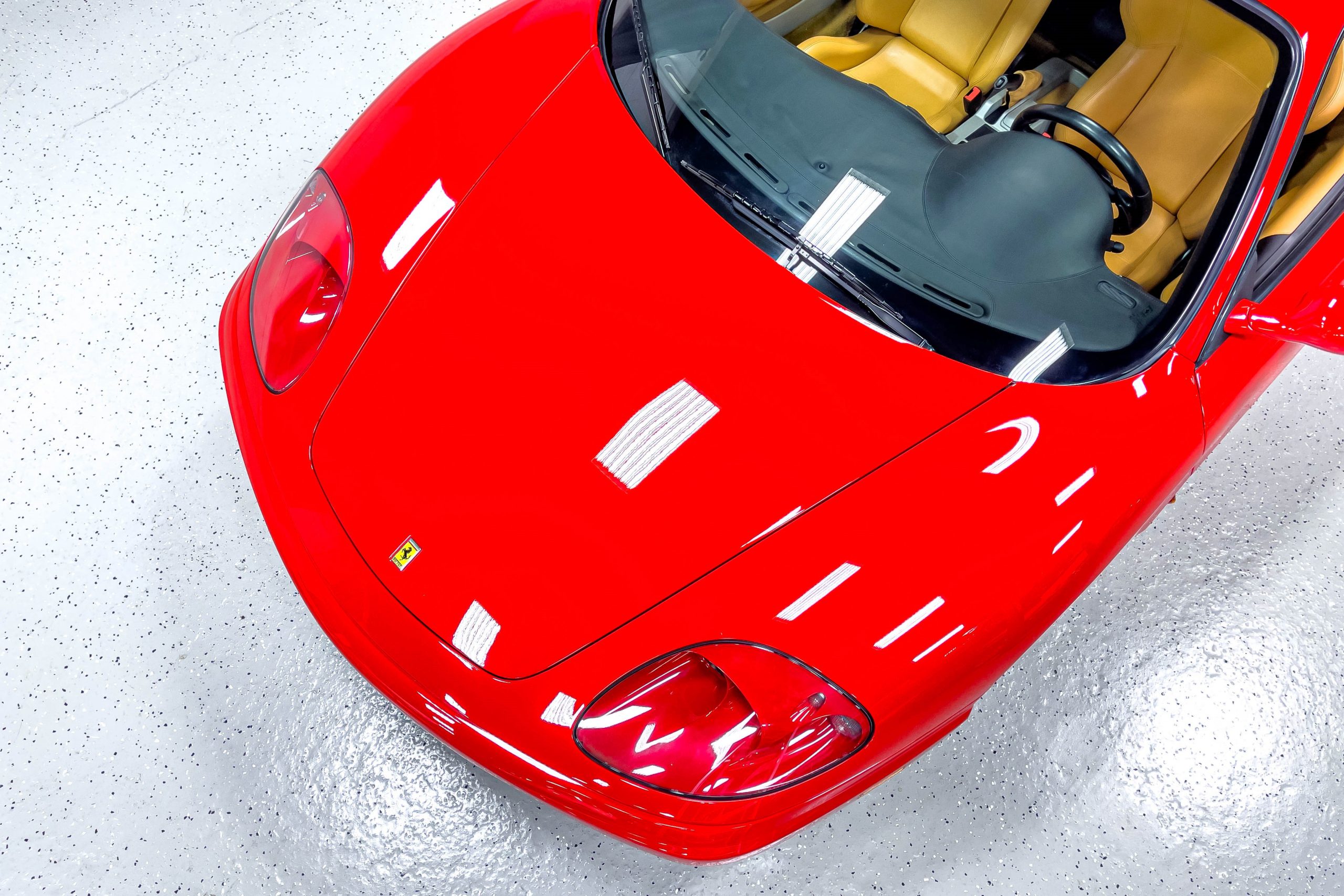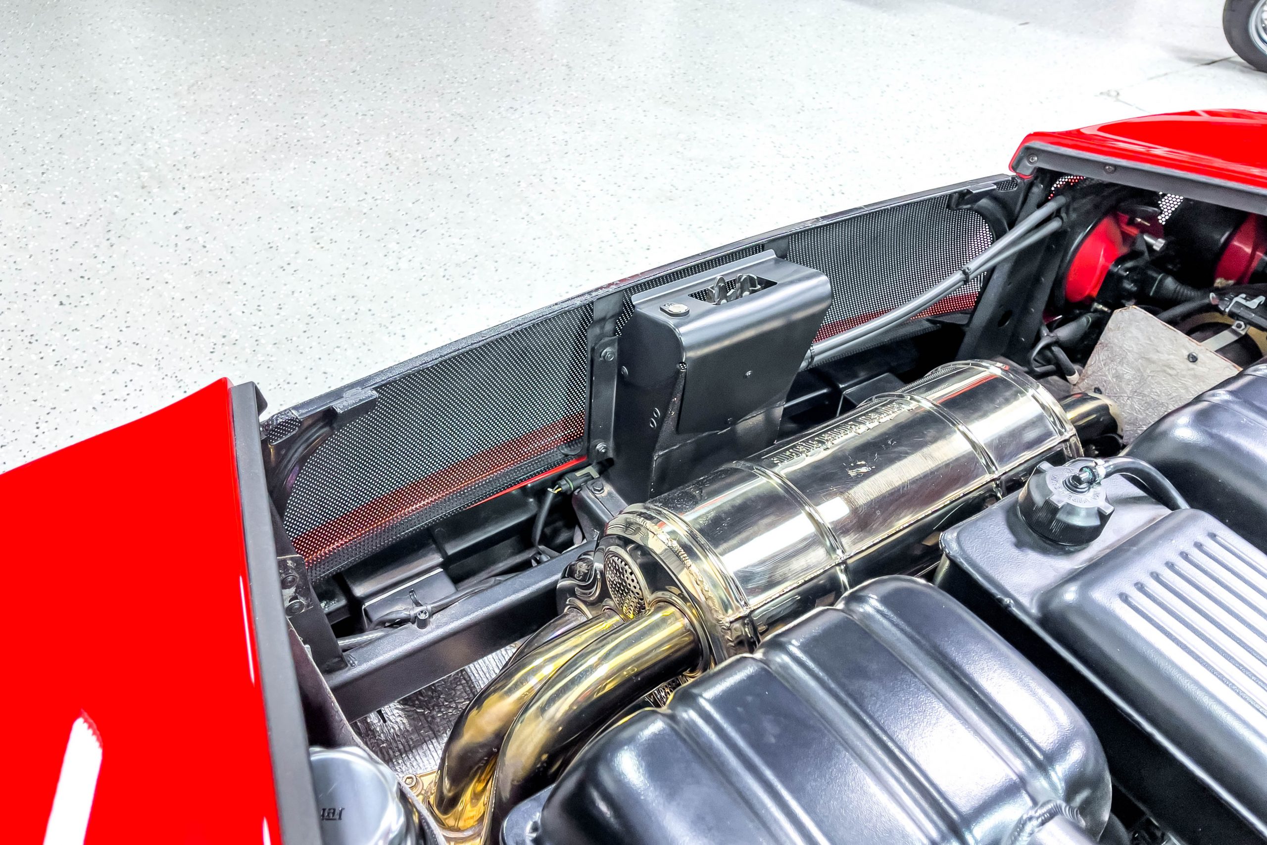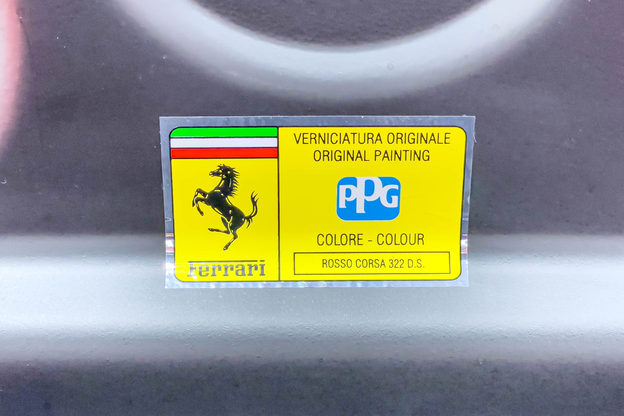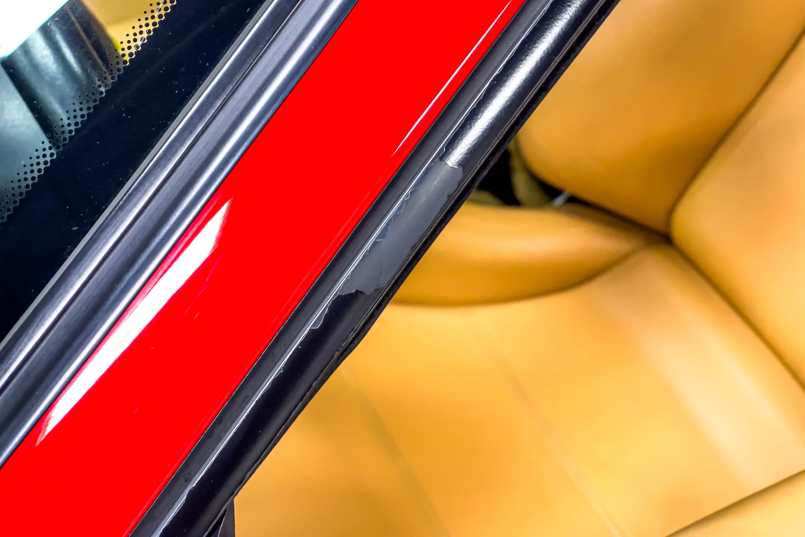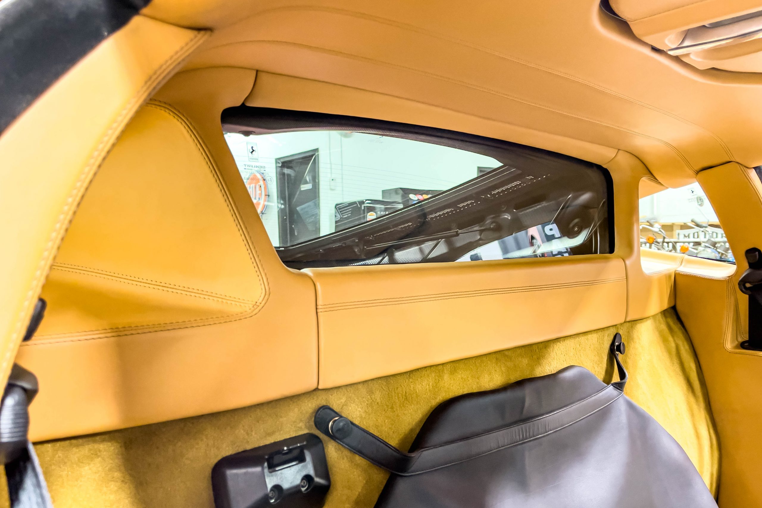 This 360 is finished in traditional colors of Rosso Corsa over a tan leather interior and is uniquely optioned with two extremely rare and desirable options being the painted removable top and the leather covered carbon fiber racing seats. Per our research, Ferrari reportedly produced 8,800 360 Modena’s globally in which 1,810 were U.S. spec versions. Of these 8,800, just 25 were optioned with the painted removable top in which just 12 of these were U.S. spec cars. Additional options and features included the F1 transmission, leather headliner, leather rear shelf and side moldings, red painted brake calipers, battery charger wiring, and an onboard fire extinguisher. The only known deviations from stock are a challenge rear grille and a Capristo performance exhaust.