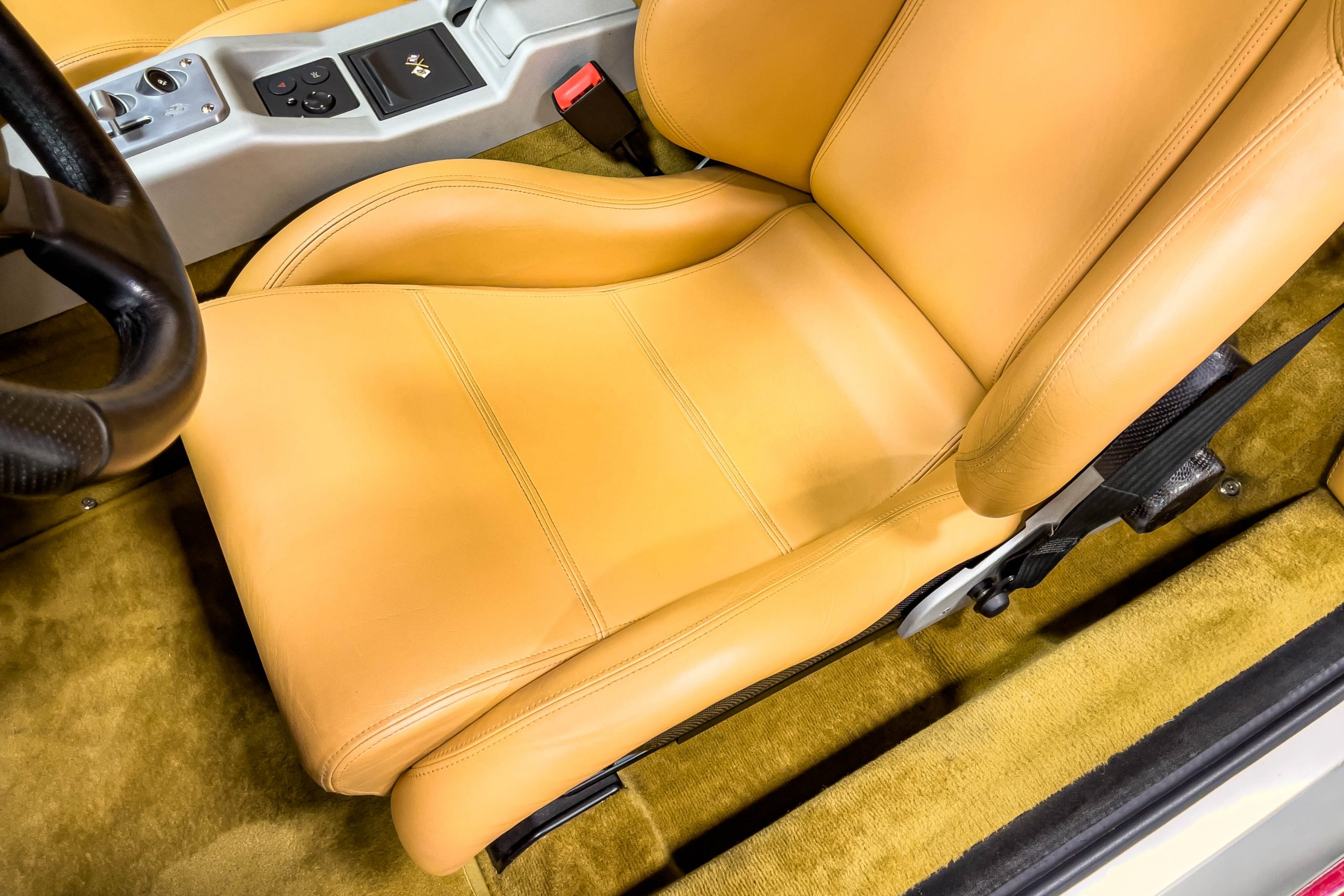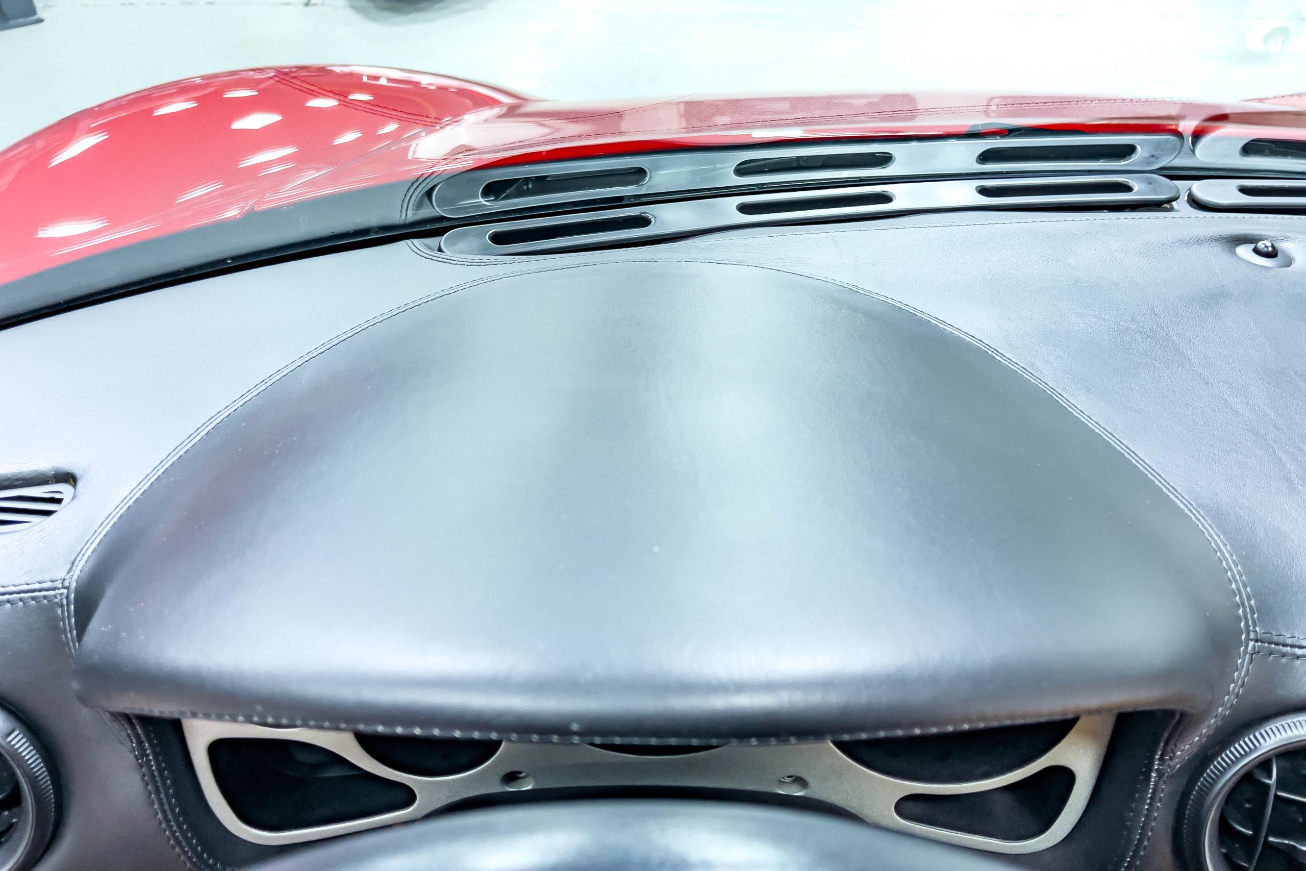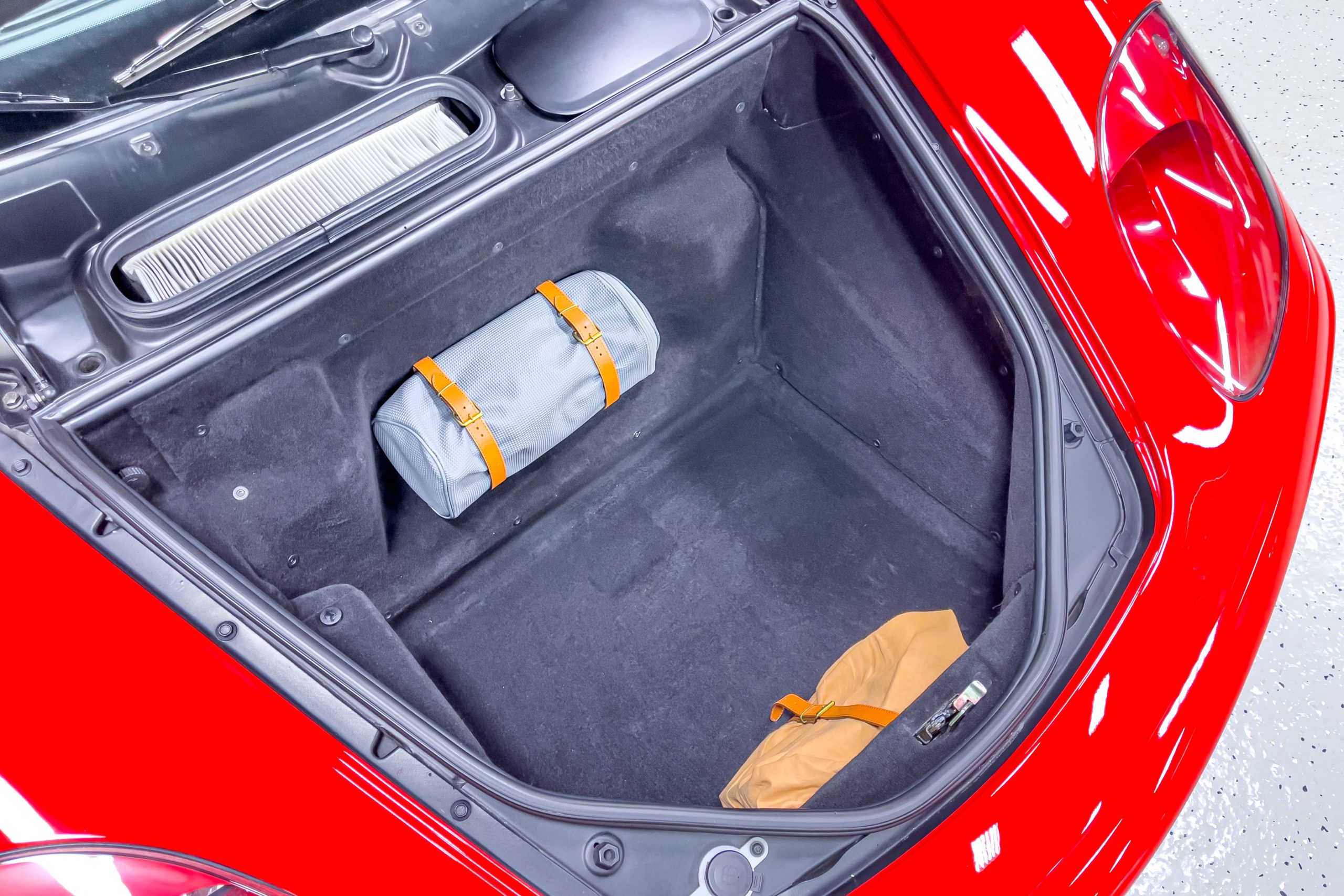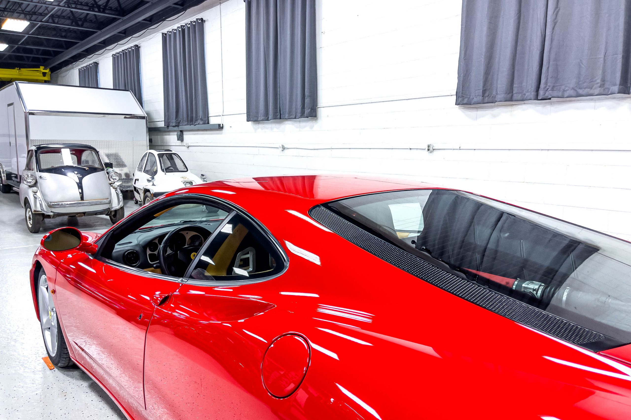 This 360 is finished in traditional colors of Rosso Corsa over a tan leather interior and is uniquely optioned with two extremely rare and desirable options being the painted removable top and the leather covered carbon fiber racing seats. Per our research, Ferrari reportedly produced 8,800 360 Modena’s globally in which 1,810 were U.S. spec versions. Of these 8,800, just 25 were optioned with the painted removable top in which just 12 of these were U.S. spec cars. Additional options and features included the F1 transmission, leather headliner, leather rear shelf and side moldings, red painted brake calipers, battery charger wiring, and an onboard fire extinguisher. The only known deviations from stock are a challenge rear grille and a Capristo performance exhaust.