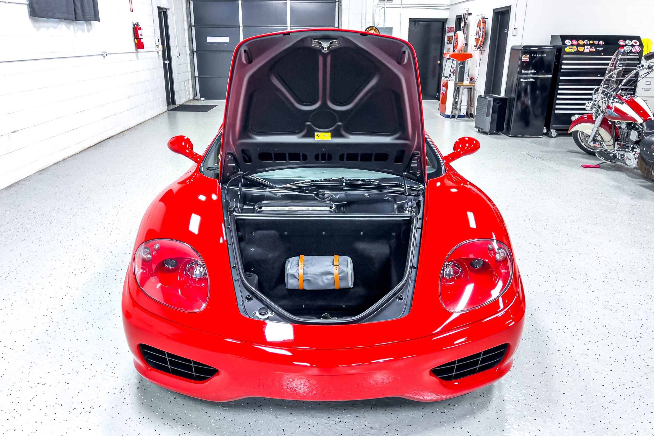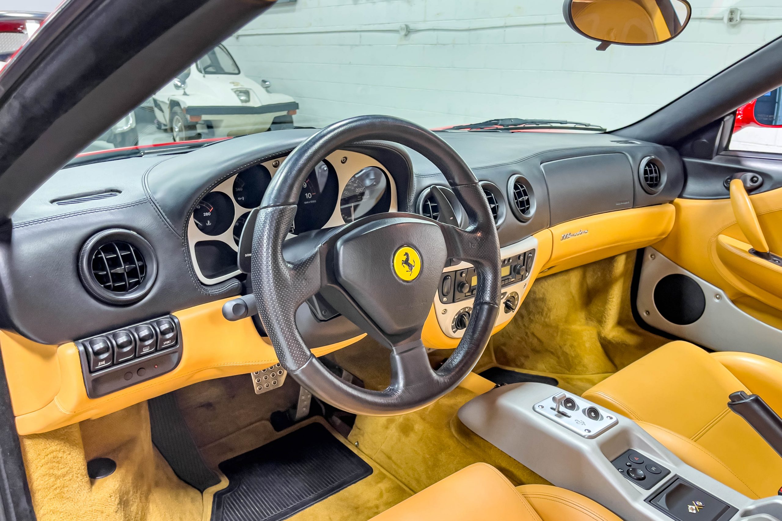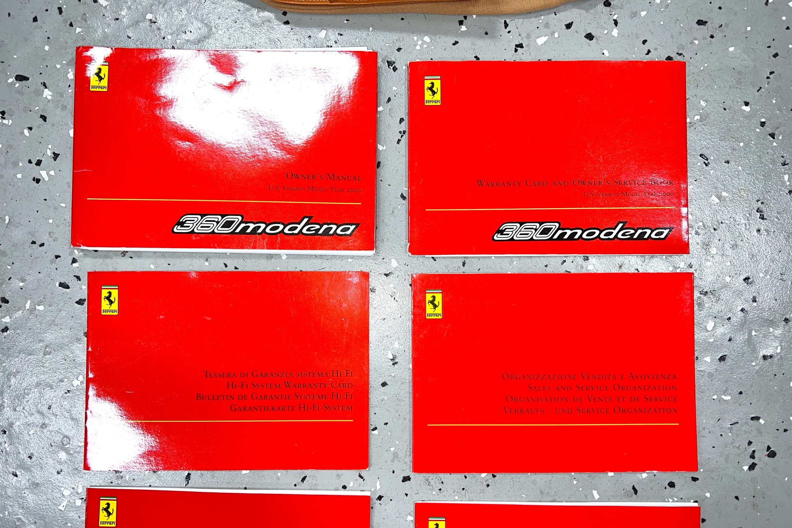 Accompanying the car are the original books and manuals, one original key with working alarm system fob, the original tire inflator kit, the comprehensive service file, the original catalytic converts, two Ferrari oil filters, aftermarket metal Scuderia shields, and a car cover with the Ferrari logo. This is an incredible opportunity to acquire a well looked after 360 with very rare option content in classic Ferrari colors.