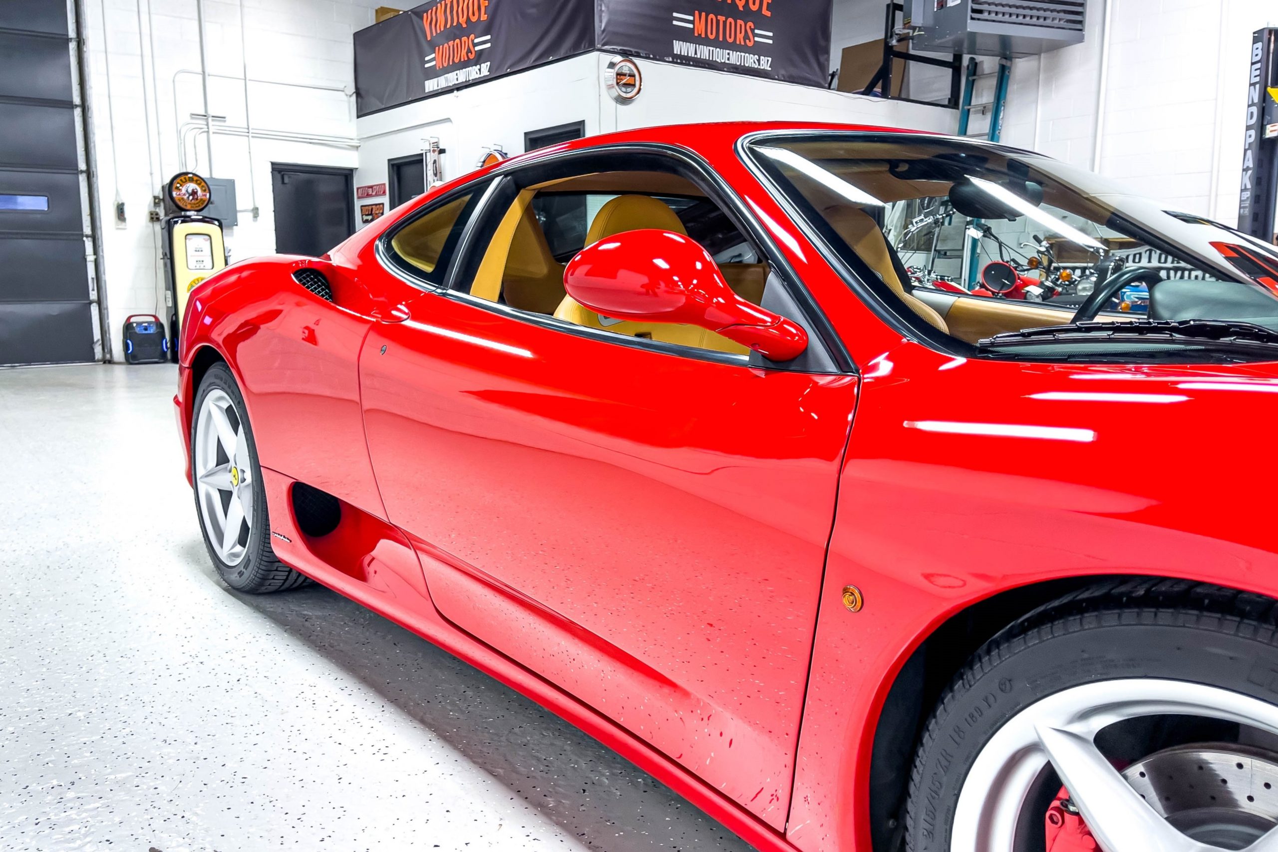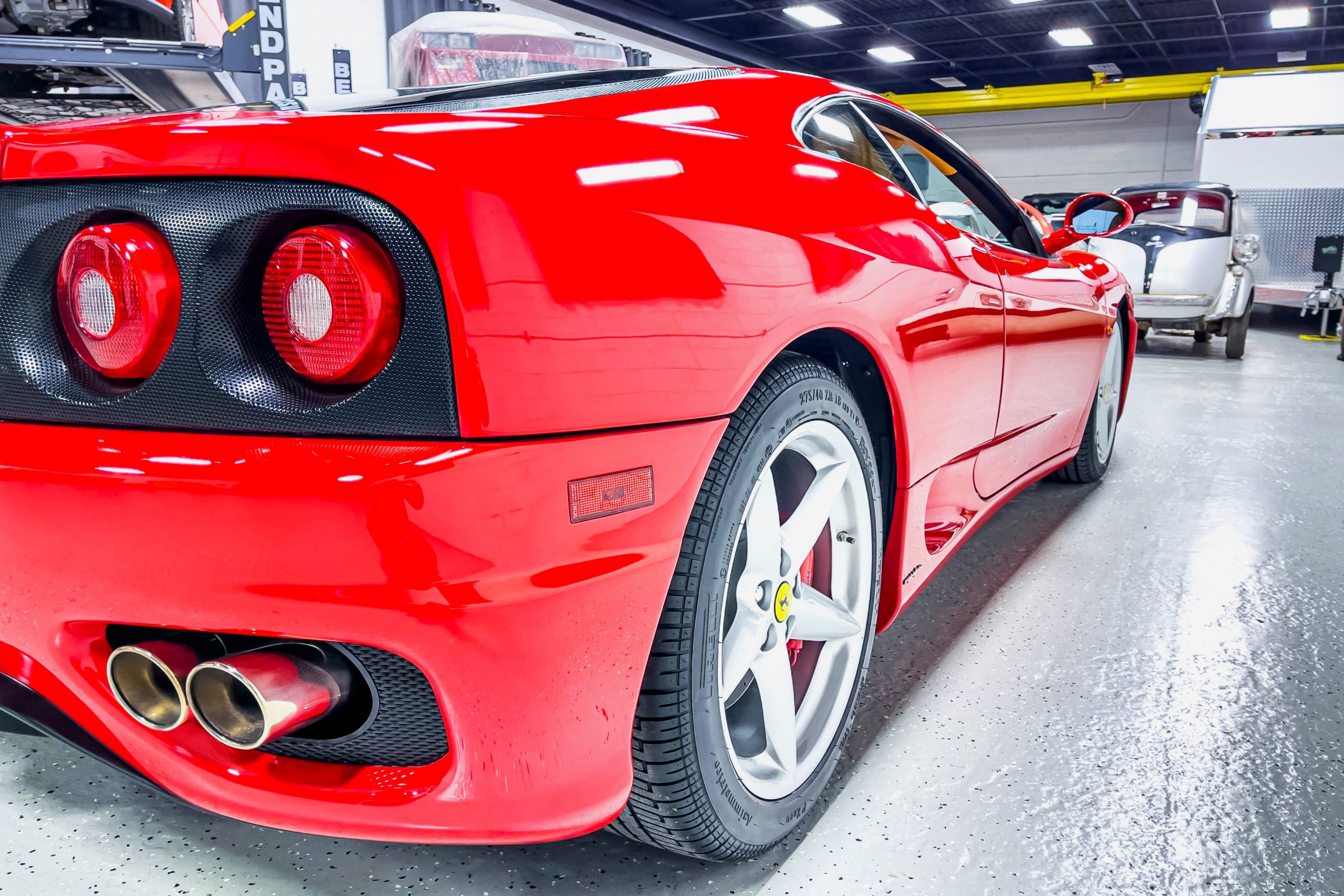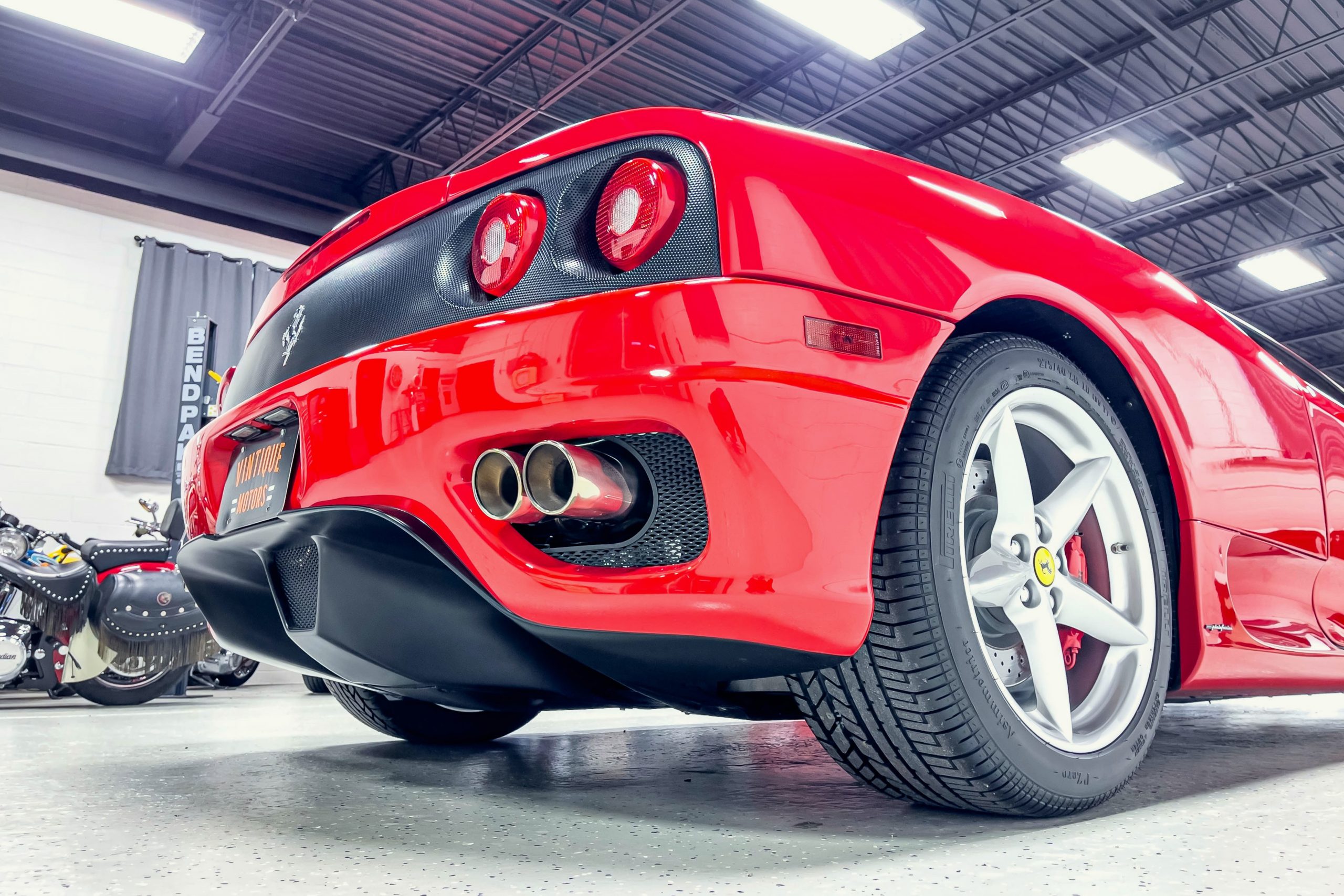 Ferrari offered the 360 starting in 1999 offering it through 2005 as both a Modena (coupe) and a Spider (convertible) in which the Modena name was used as a homage to the birthplace of Enzo Ferrari in Modena, Italy. All 360’s received a rear-mounted longitudinal 90 degree 3.6L V8 engine that featured a flat-plane crank, titanium connecting rods, and a 11:1 compression ratio. It was rated at 400 horsepower at 8,500 rpm and 275 lb.-ft. of torque at 4,750 rpm. Transmissions choices were either a traditional gated 6-speed manual or a “F1” single clutch automated manual with paddle shifters.