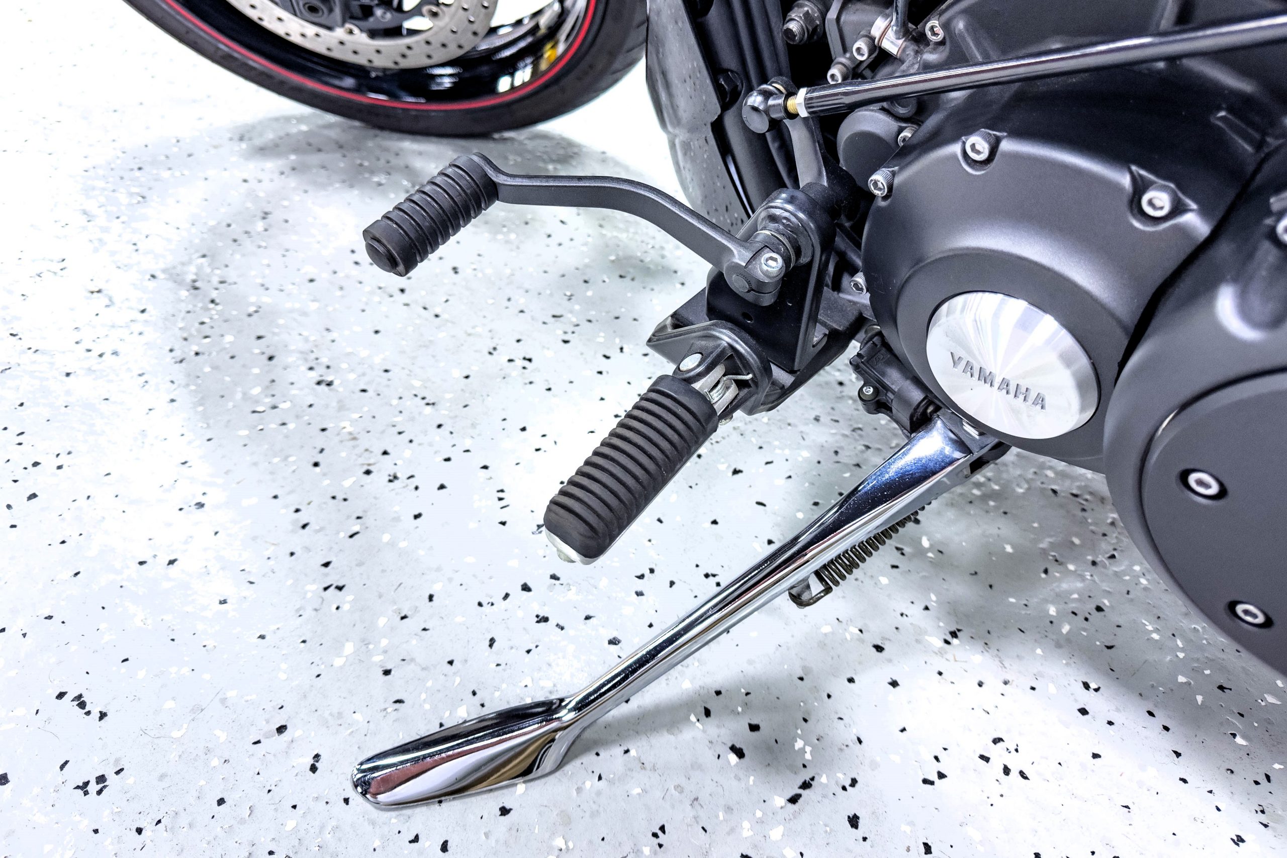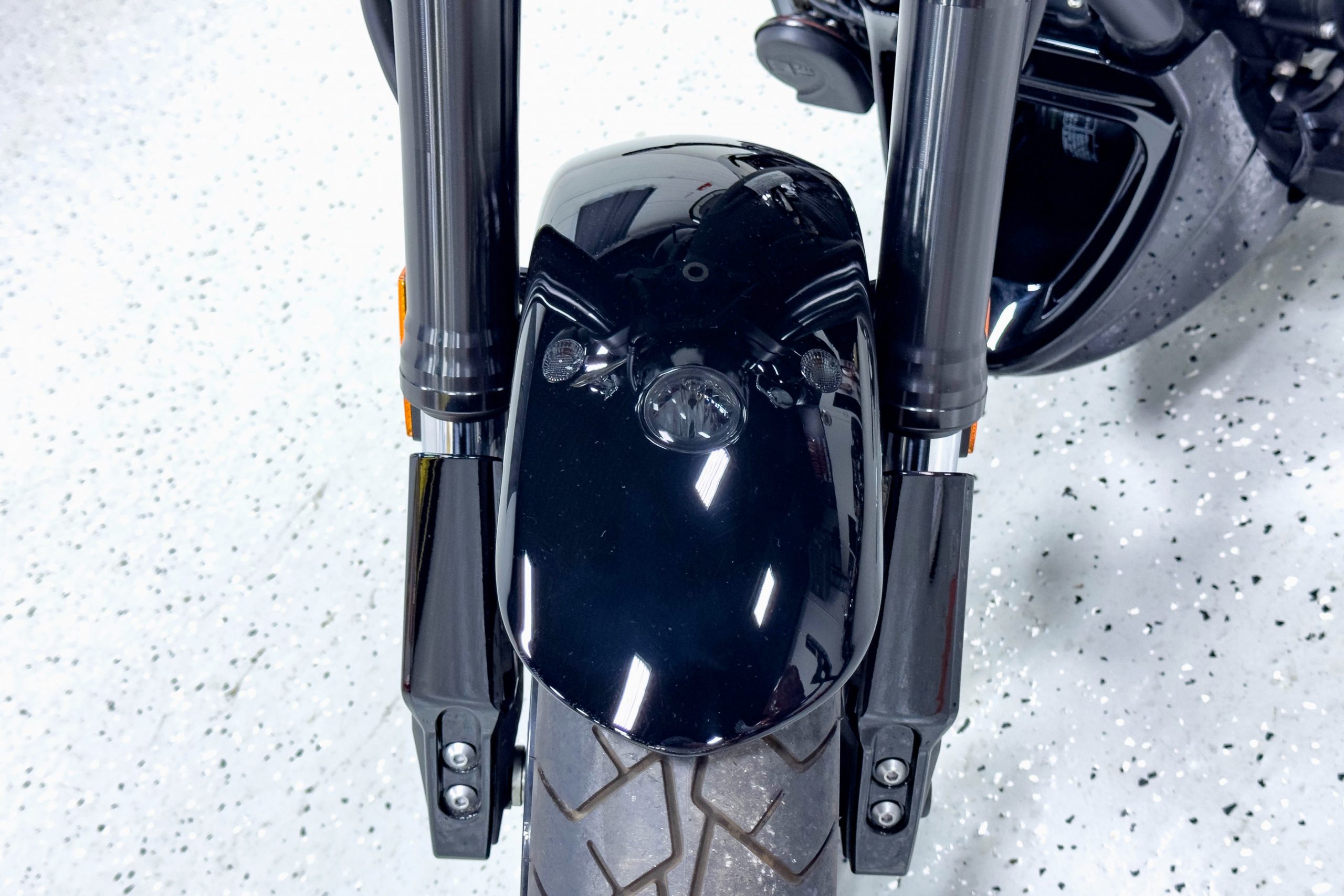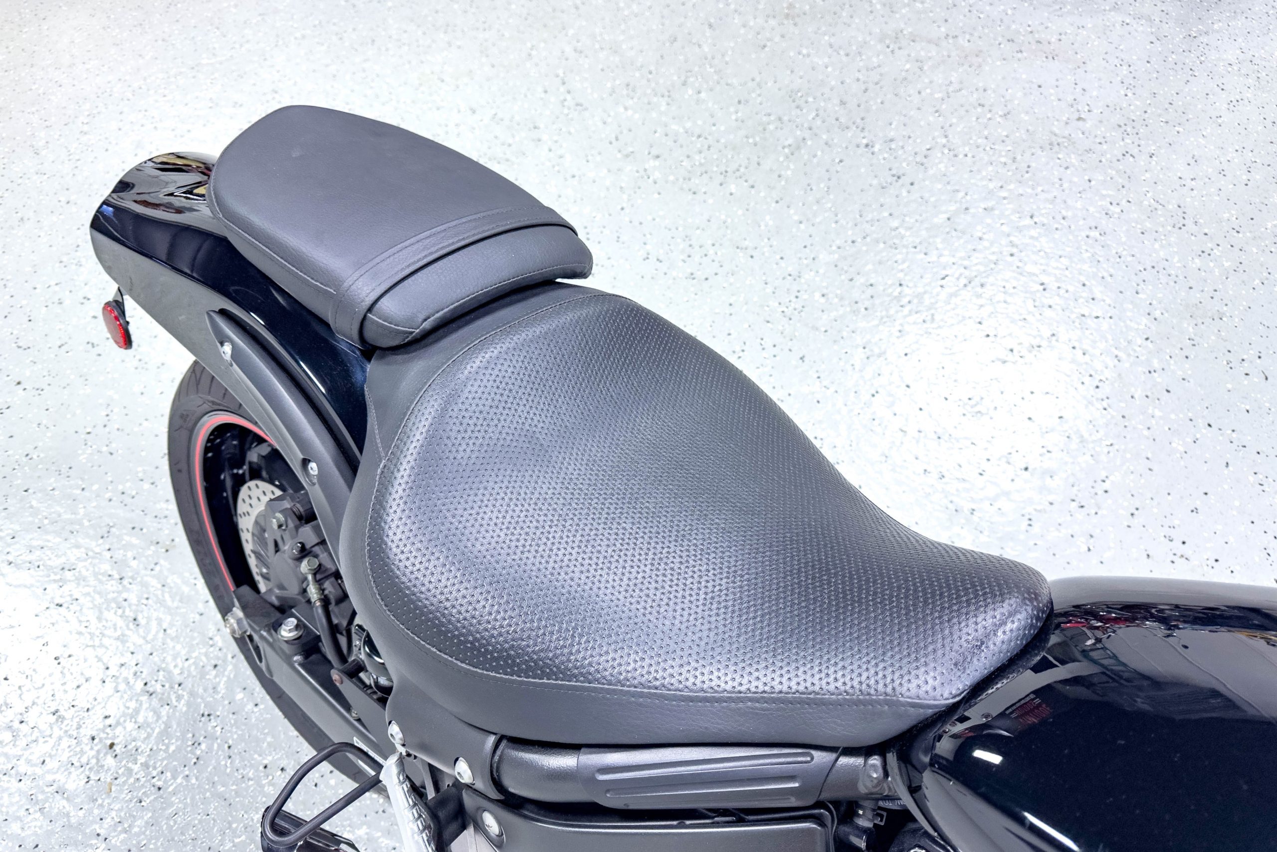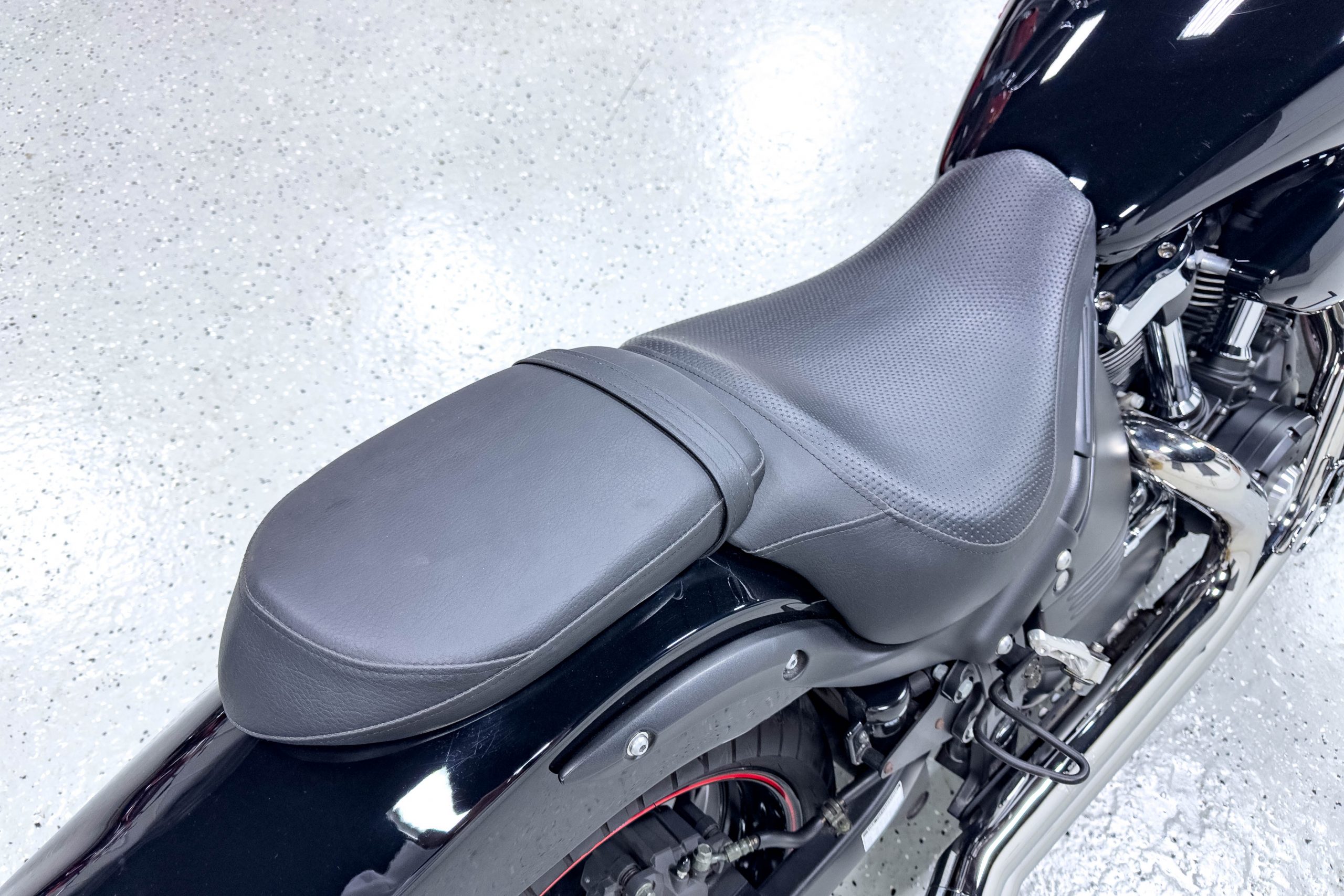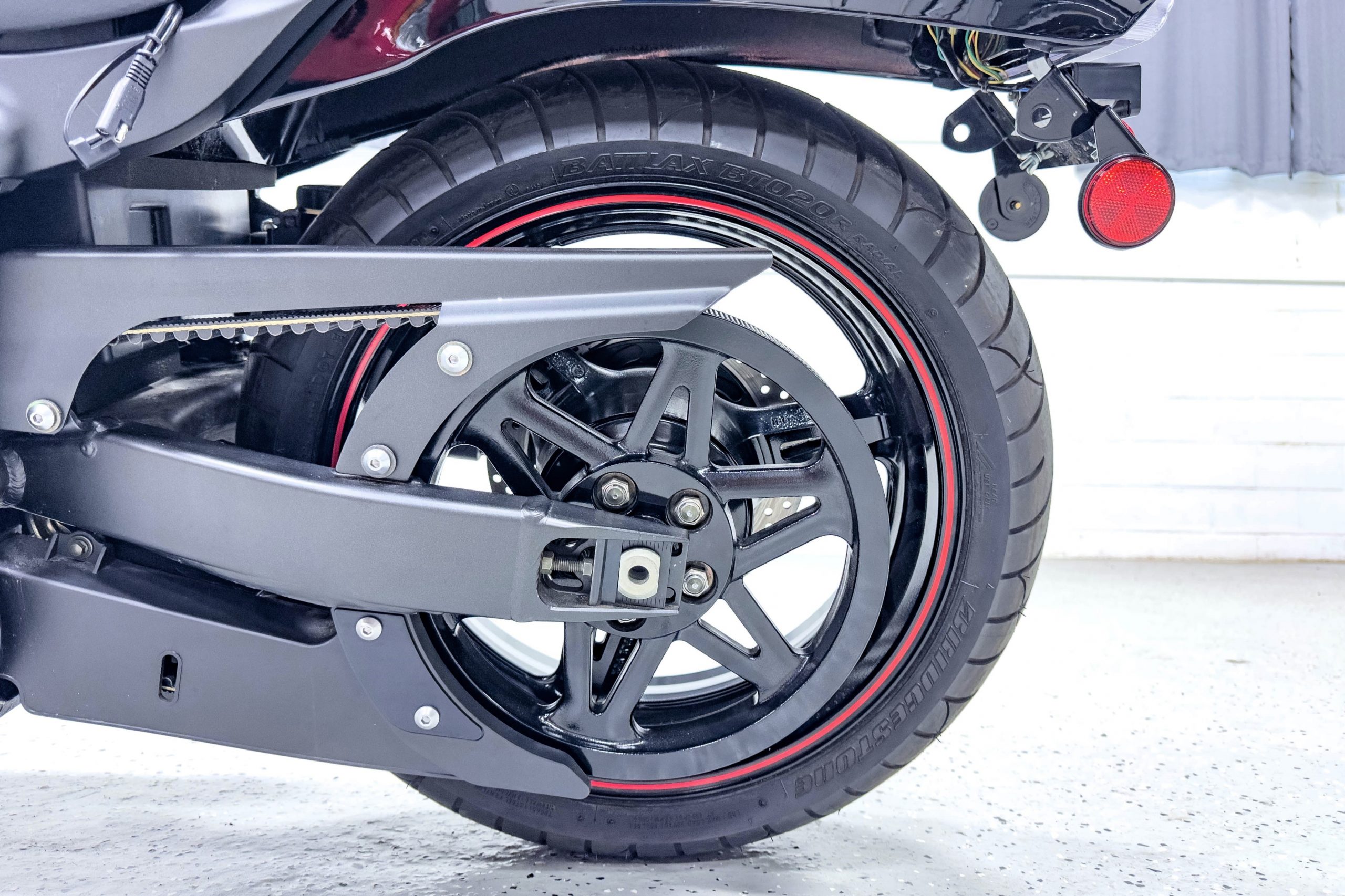The Midnight Warrior is powered by a fuel injected 1,670cc 4-stroke V-twin air-cooled engine rated at 84 horsepower at 4,400 rpm and 99 lb.-ft. of torque at 3,750 rpm mated to a 5-speed manual transmission with a wet multi-disc clutch and a belt drive. The bike features an aluminum frame with 41mm Kayaba inverted telescoping front fork suspension borrowed from the R1 super bike and an adjustable link monocross rear suspension. Braking is handled by a dual 298mm front discs and a single 282mm rear disc. It rides on 3-spoke cast aluminum wheels sized 18″ up front with a 120mm tire and a 17″ out back with a 200mm tire. Weighing in at just 606lbs, this cruiser has 7.2 horsepower per 1 pound of weight enabling it to blast through the 1/4 mile in 12.7 seconds at 103mph.