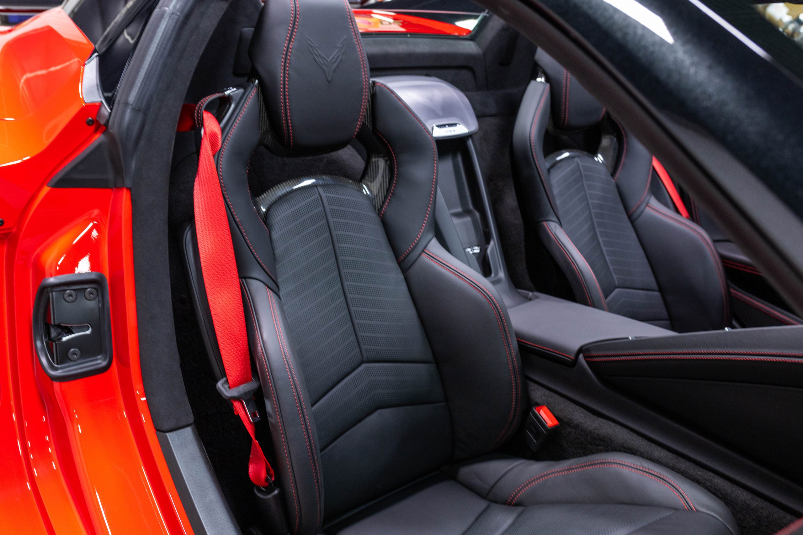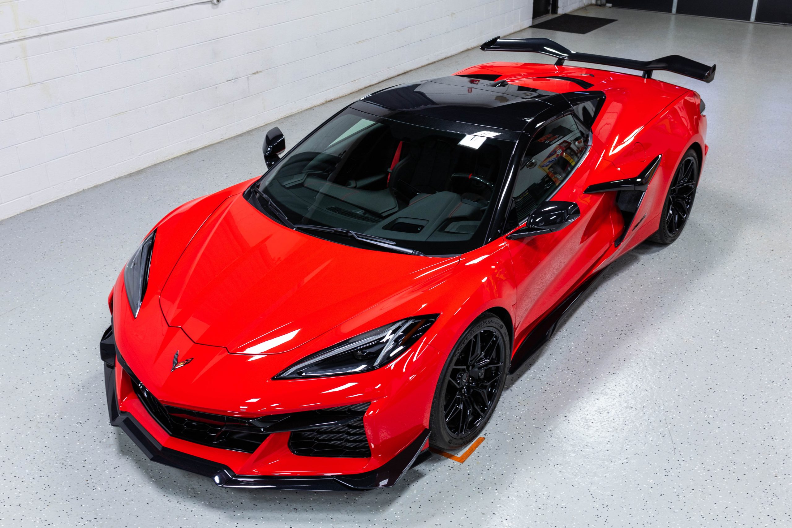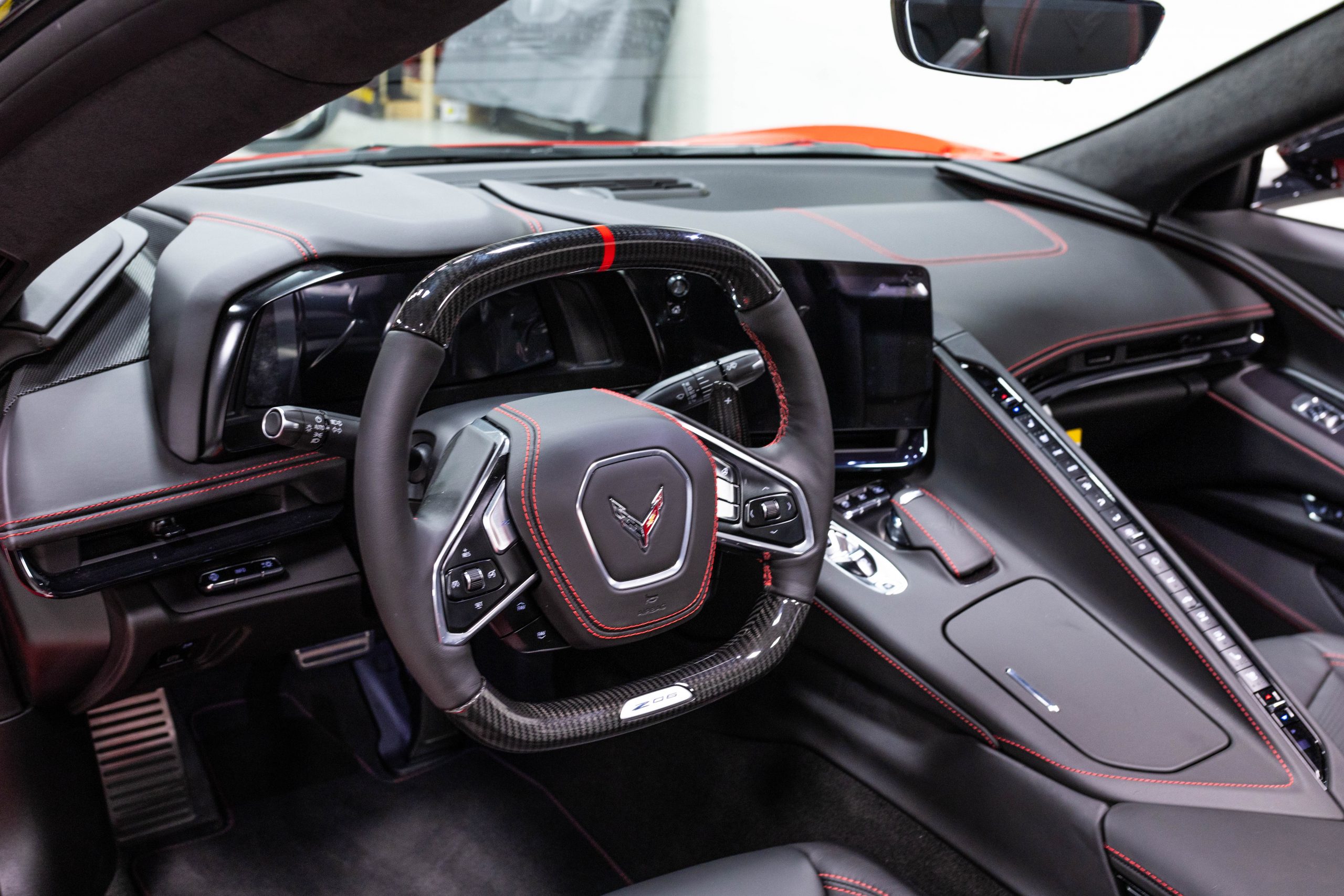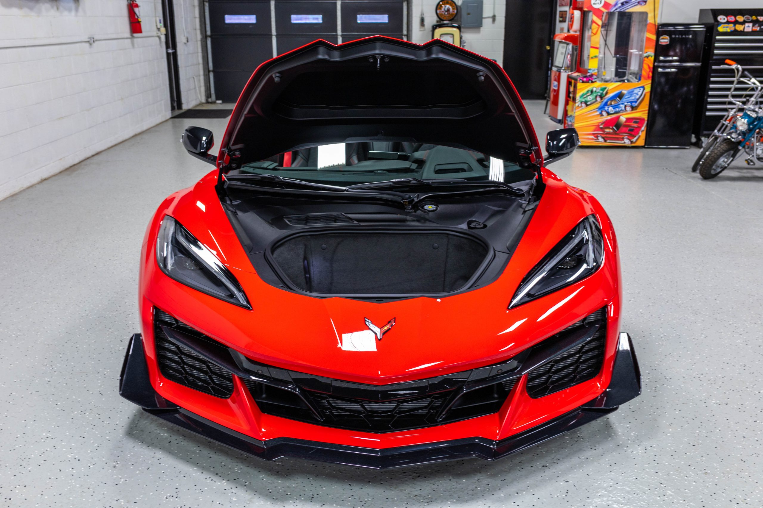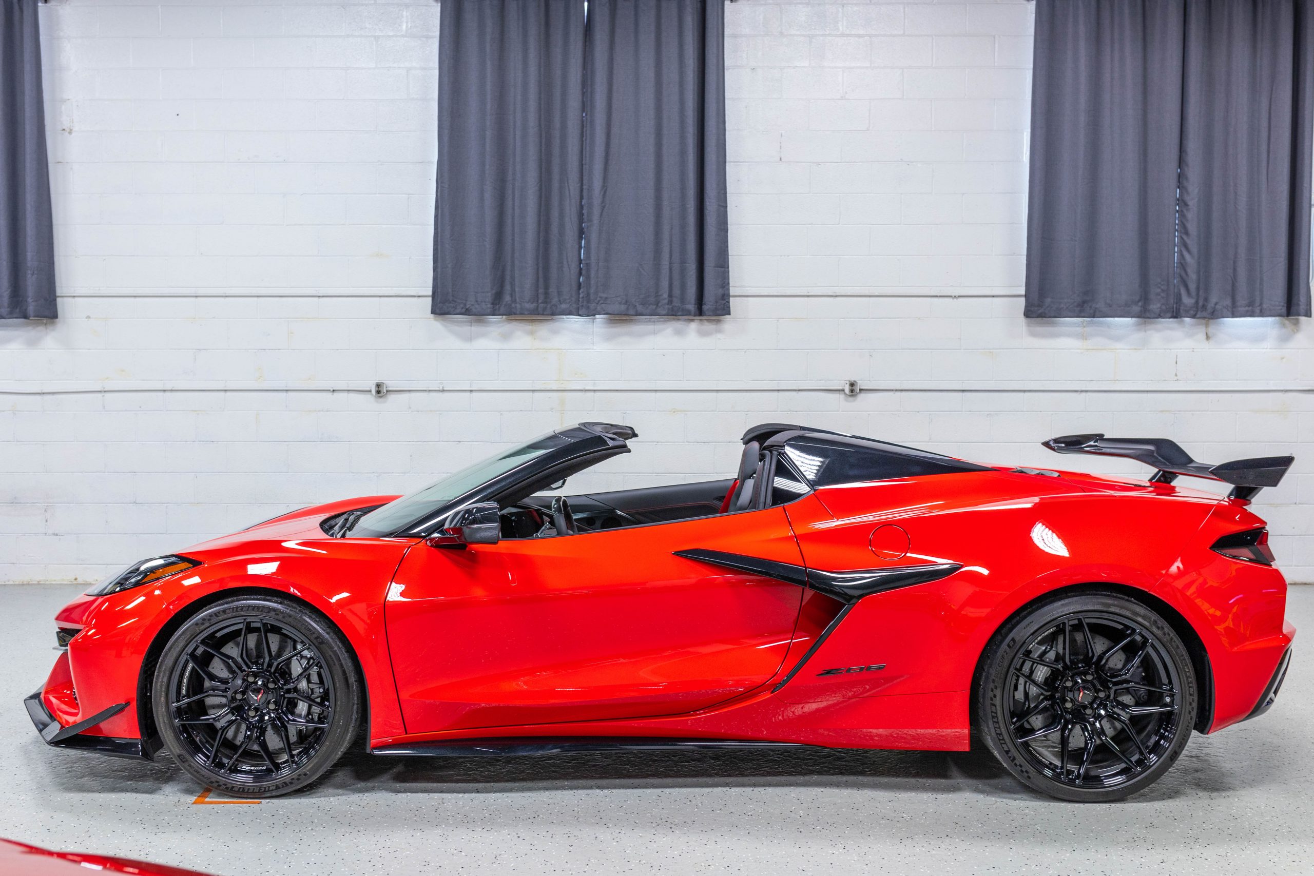 Most notably, it is equipped with the $8,995 Z06 Ultimate Performance Package which afforded the Z07 suspension and Brembo ceramic brakes, the $8,495 Carbon Aero Package, and the $2,595 Front Axle Lift Suspension. Additional optional equipment includes black painted spider design aluminum wheels, red seat belts, red seat stitching, and carbon flash painted exterior accents.