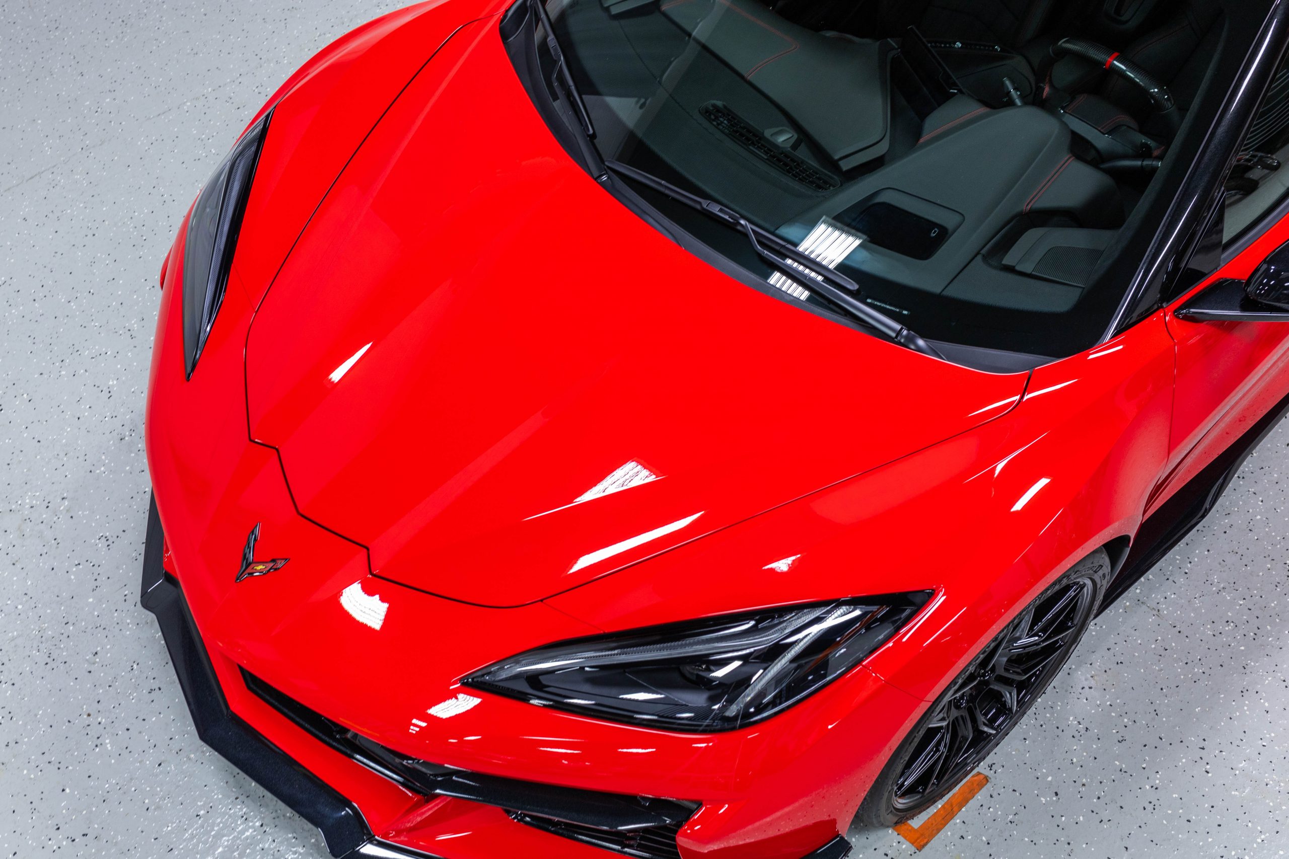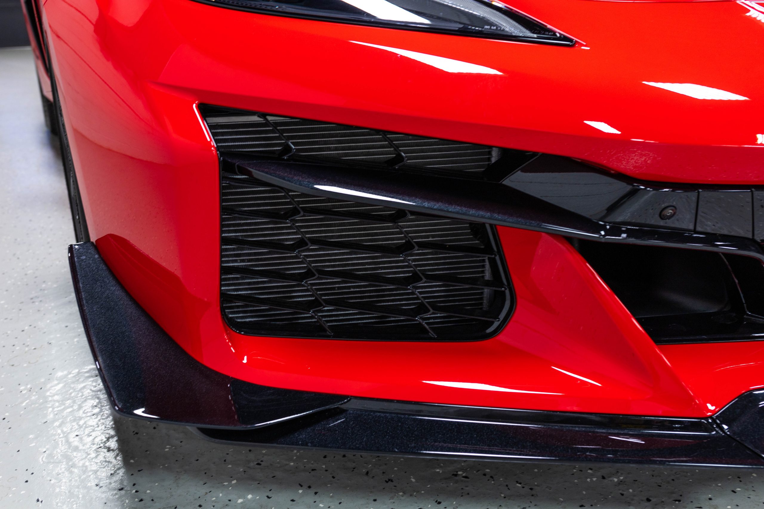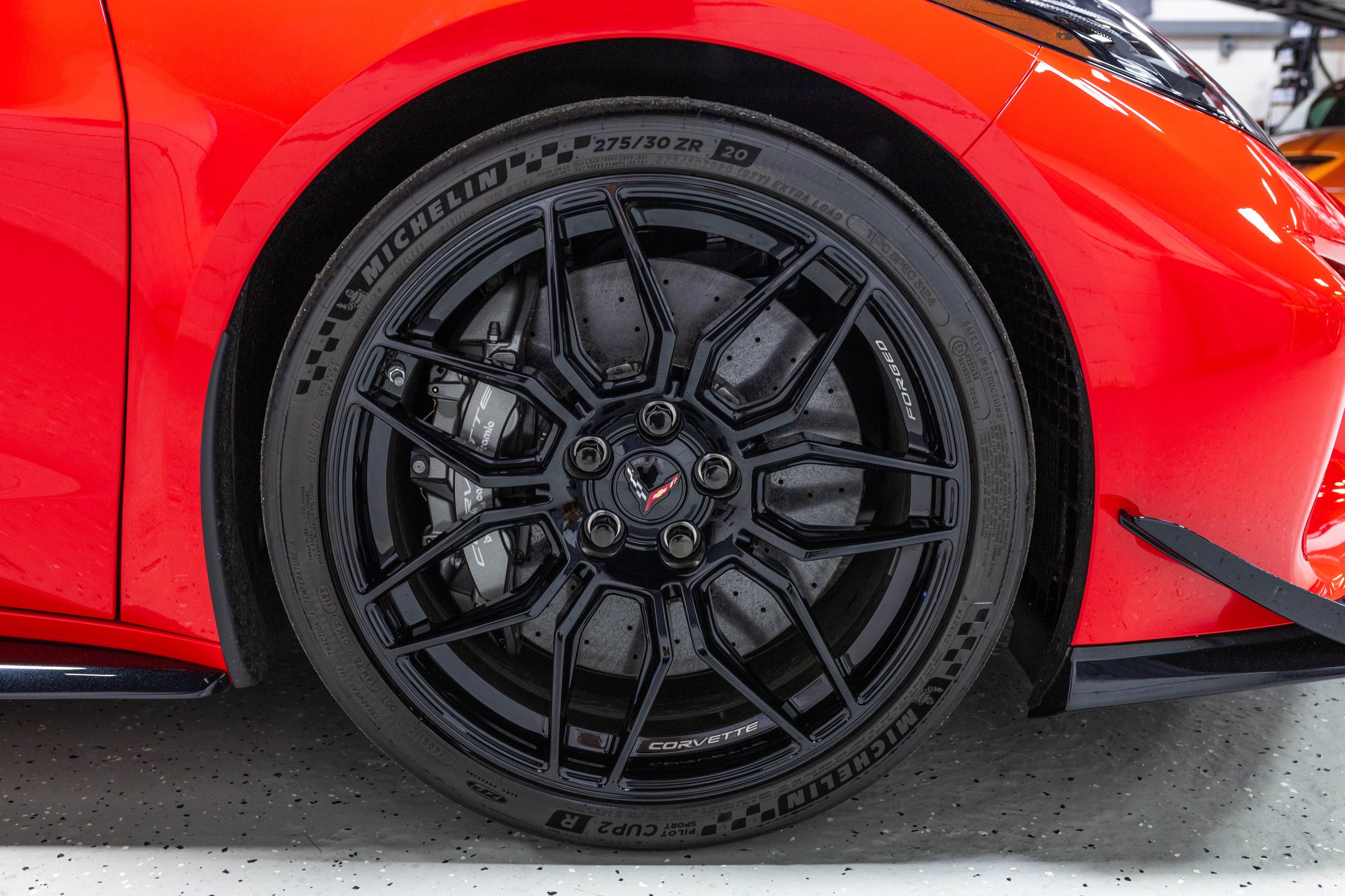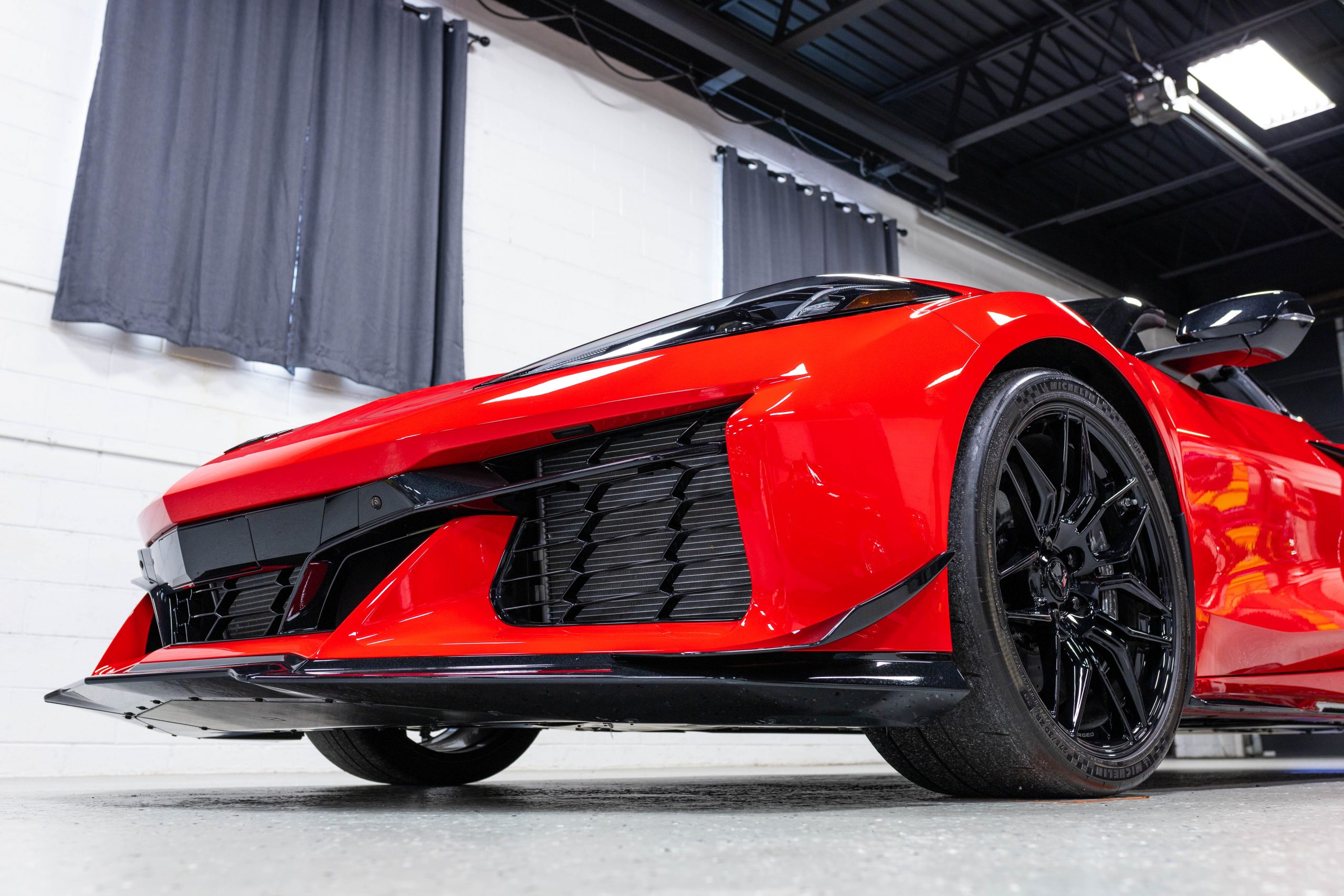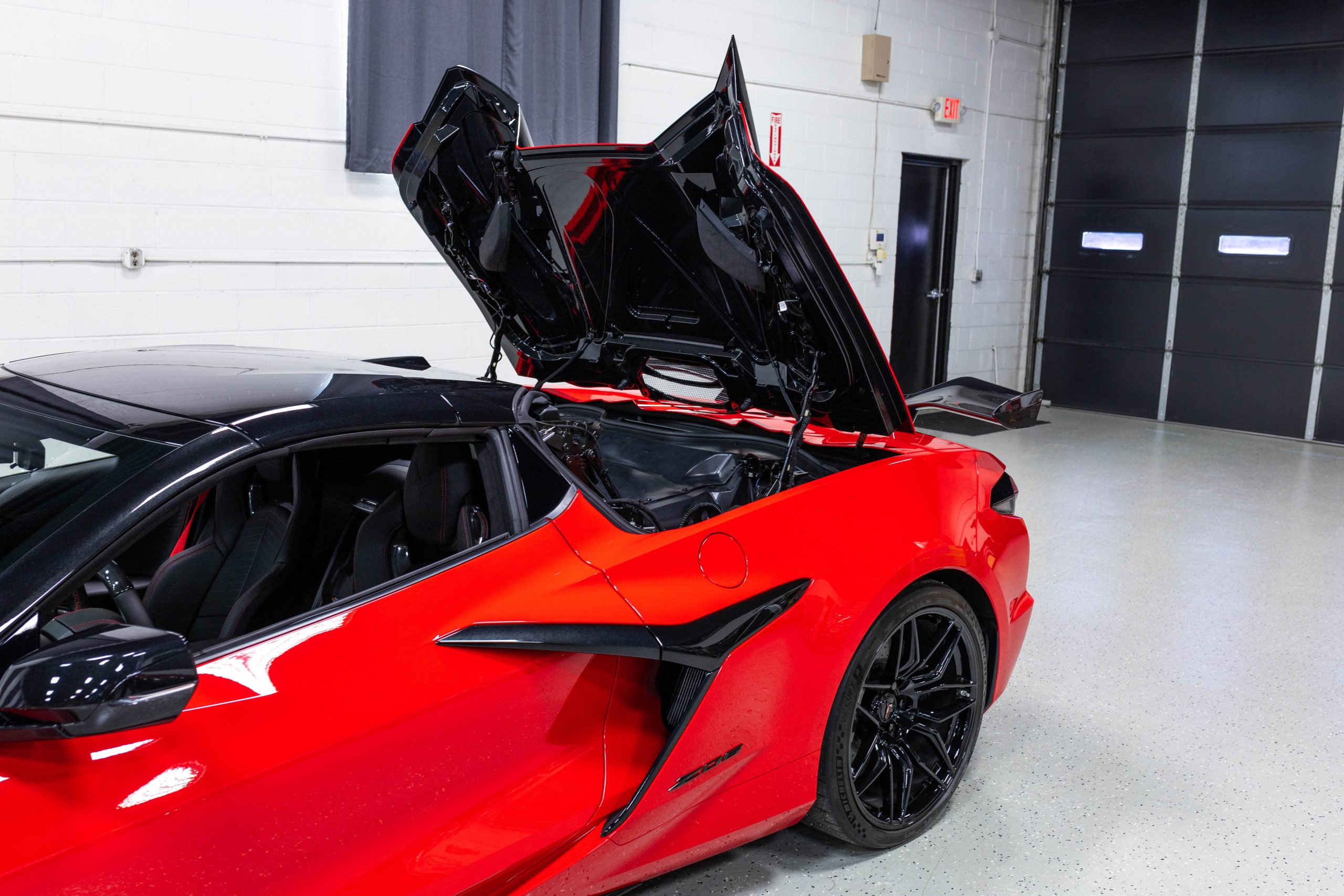 Most notably, it is equipped with the $8,995 Z06 Ultimate Performance Package which afforded the Z07 suspension and Brembo ceramic brakes, the $8,495 Carbon Aero Package, and the $2,595 Front Axle Lift Suspension. Additional optional equipment includes black painted spider design aluminum wheels, red seat belts, red seat stitching, and carbon flash painted exterior accents.