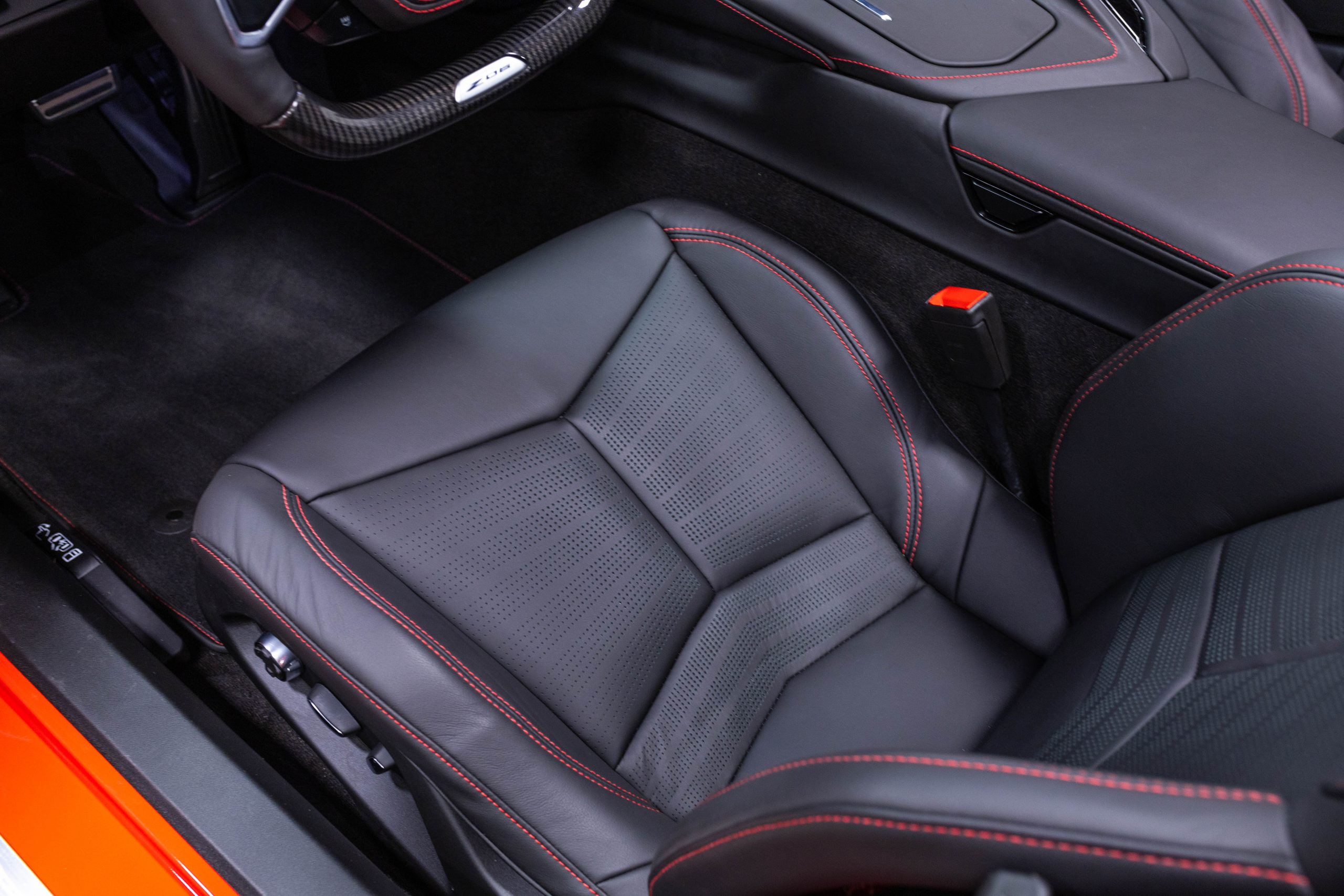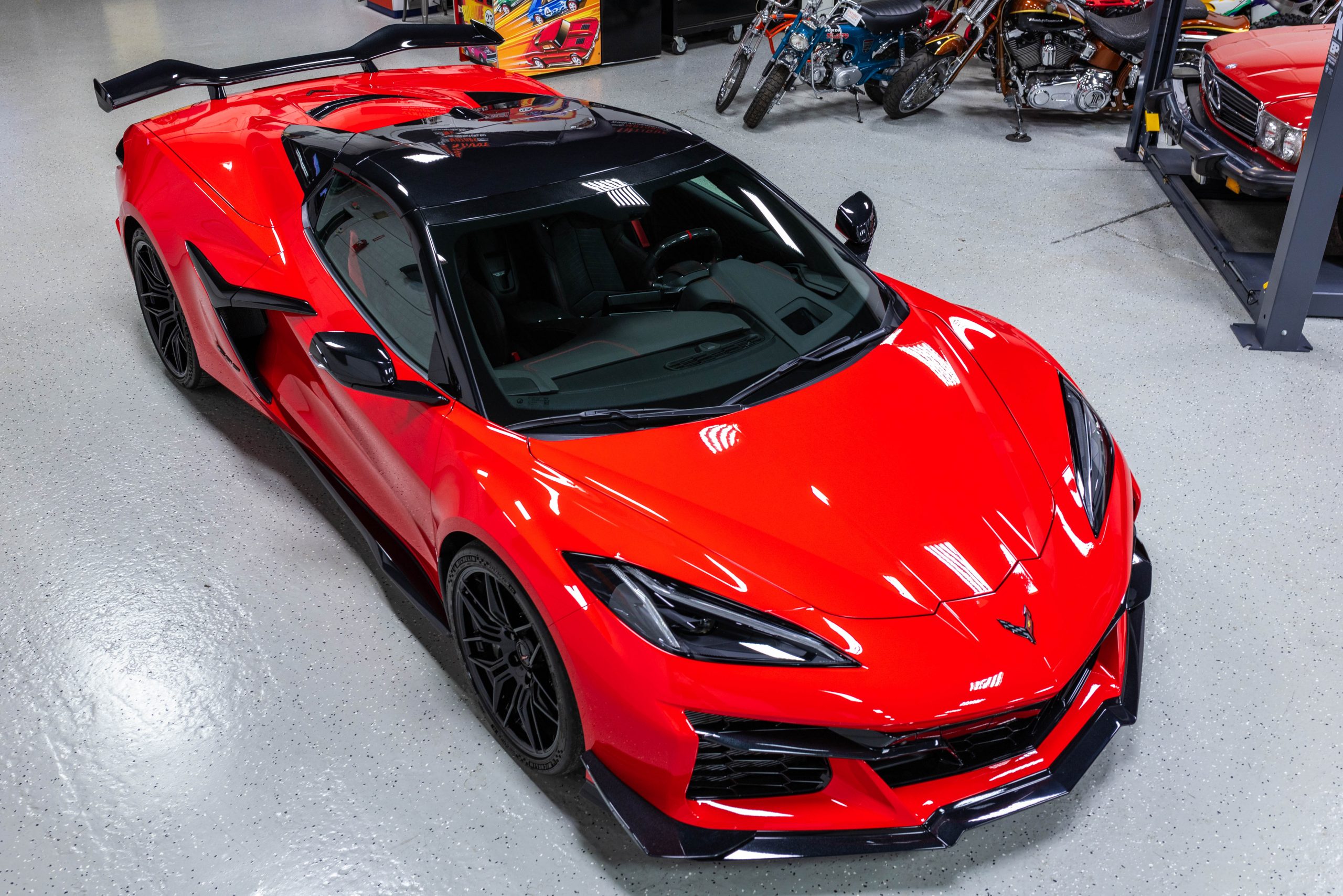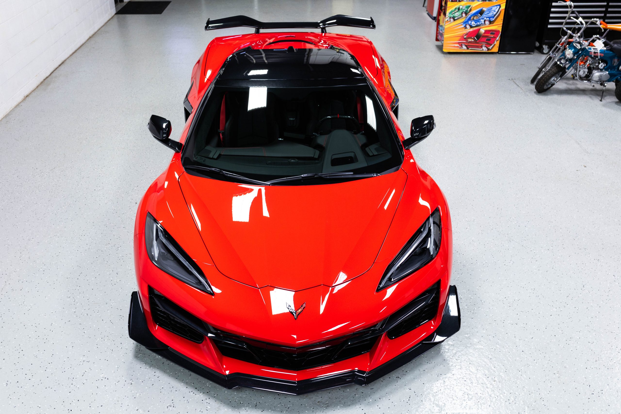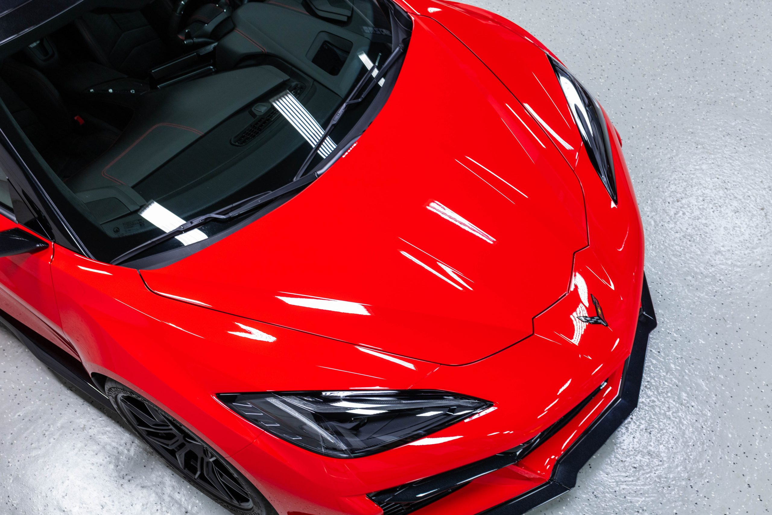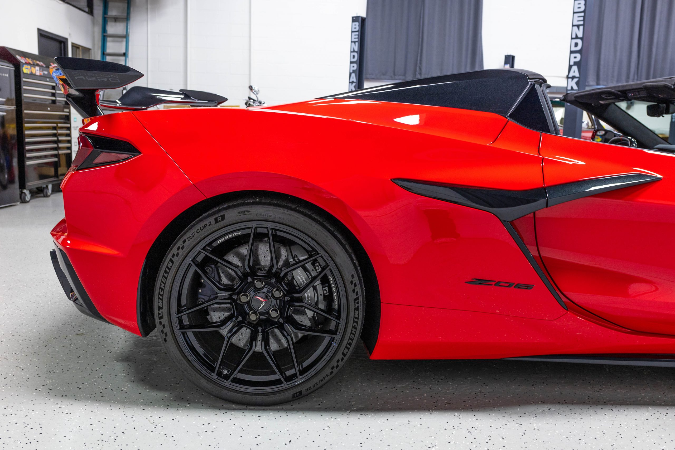 Most notably, it is equipped with the $8,995 Z06 Ultimate Performance Package which afforded the Z07 suspension and Brembo ceramic brakes, the $8,495 Carbon Aero Package, and the $2,595 Front Axle Lift Suspension. Additional optional equipment includes black painted spider design aluminum wheels, red seat belts, red seat stitching, and carbon flash painted exterior accents.