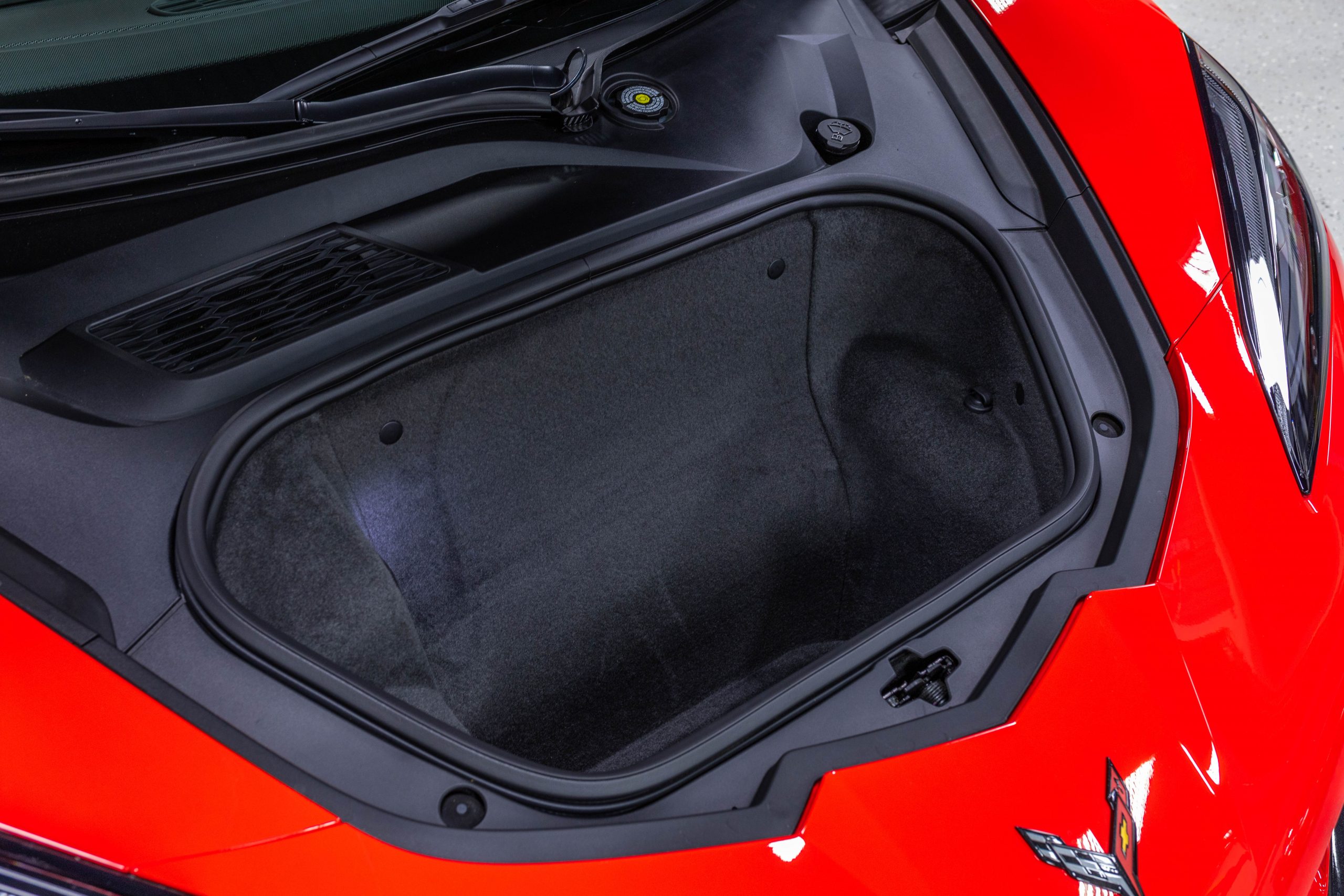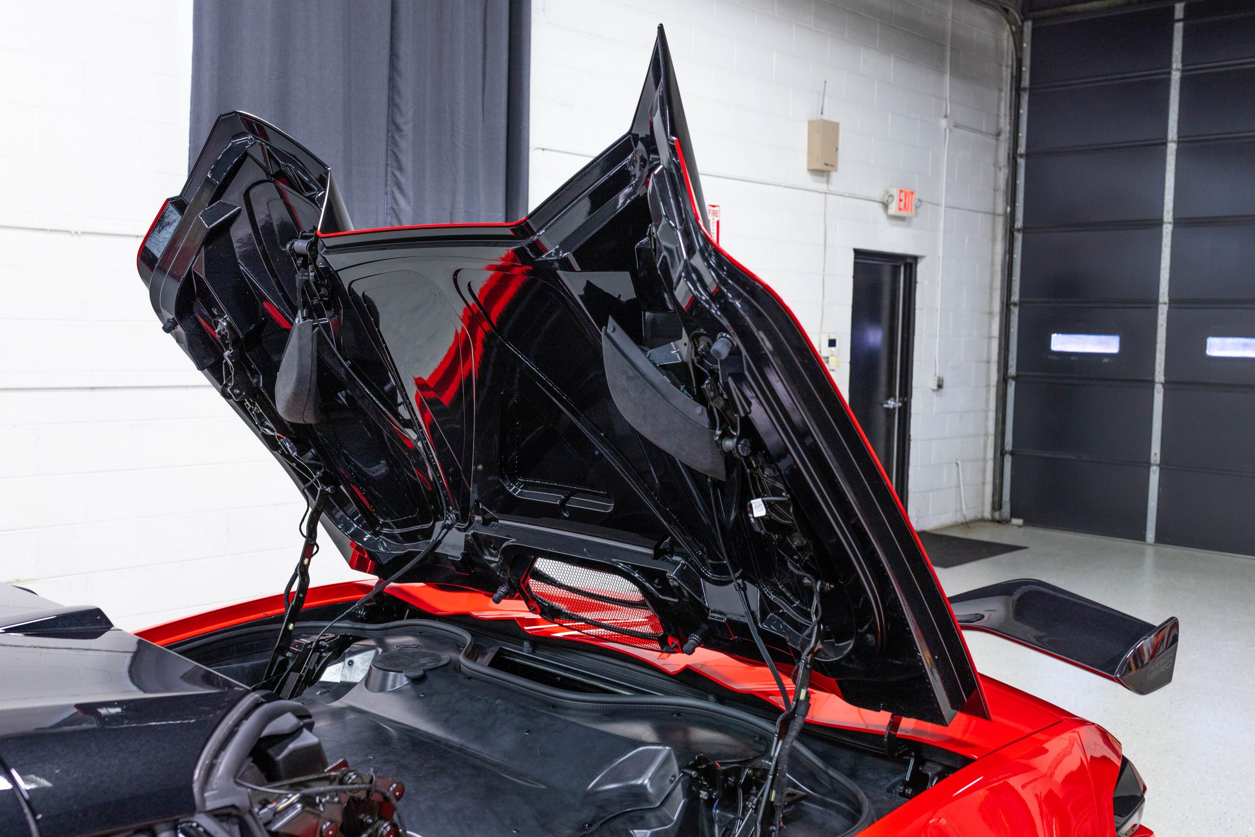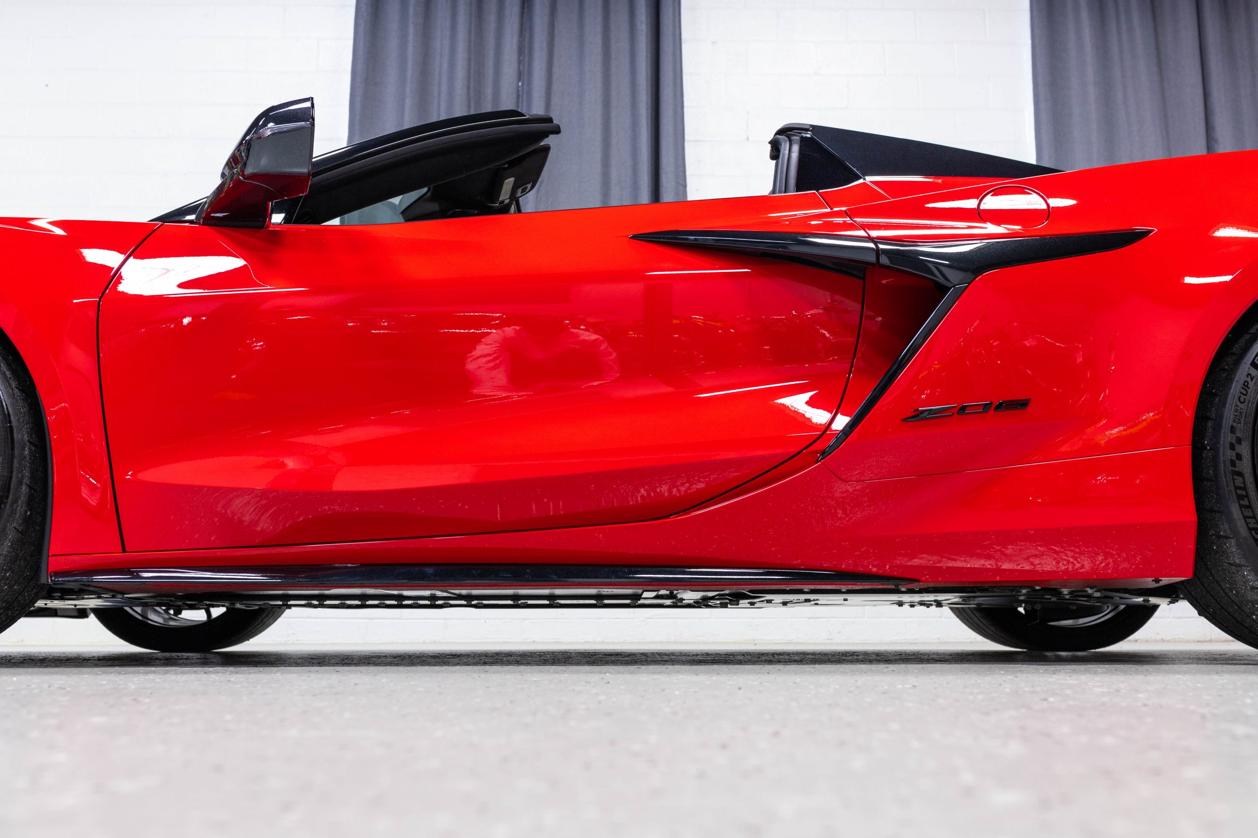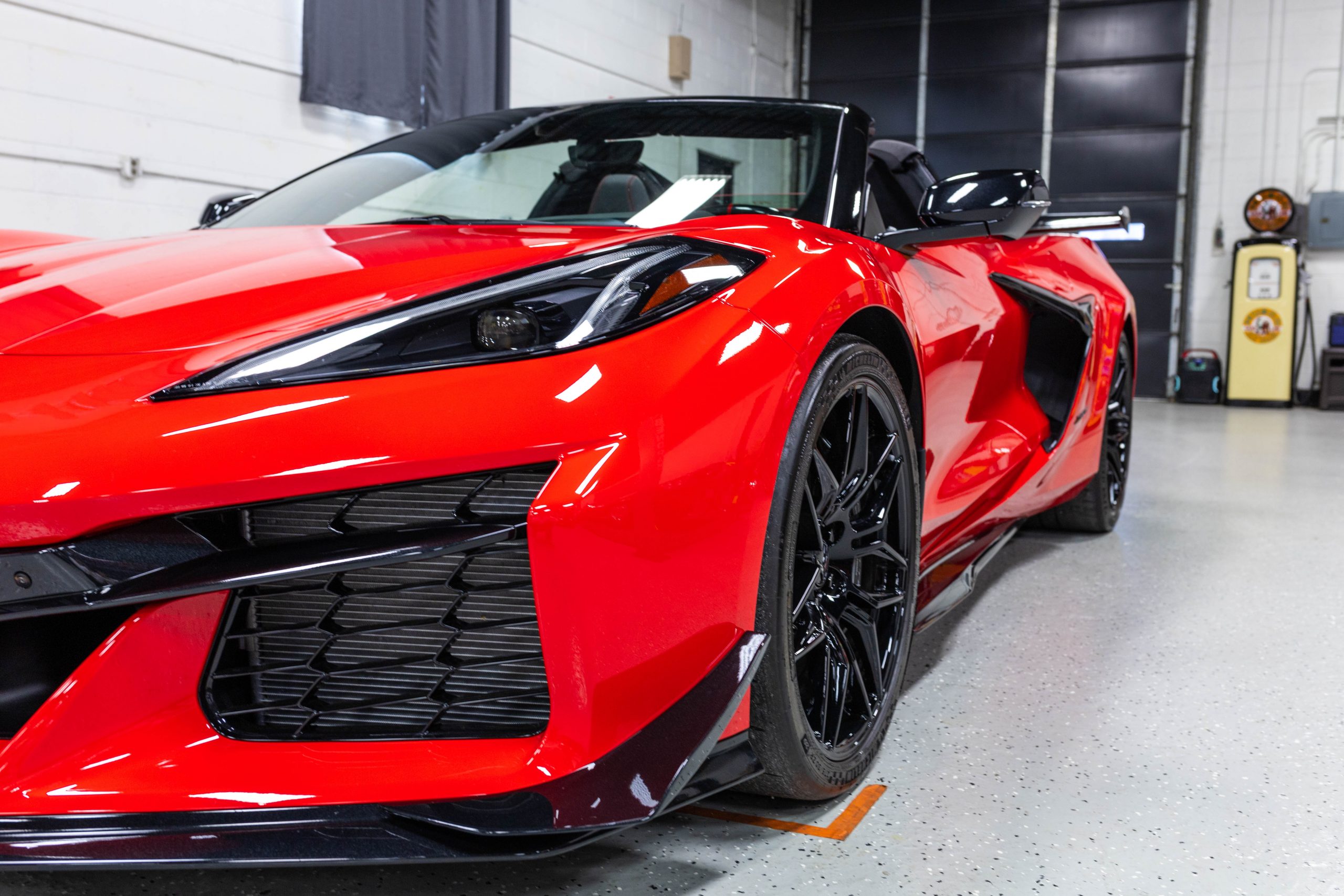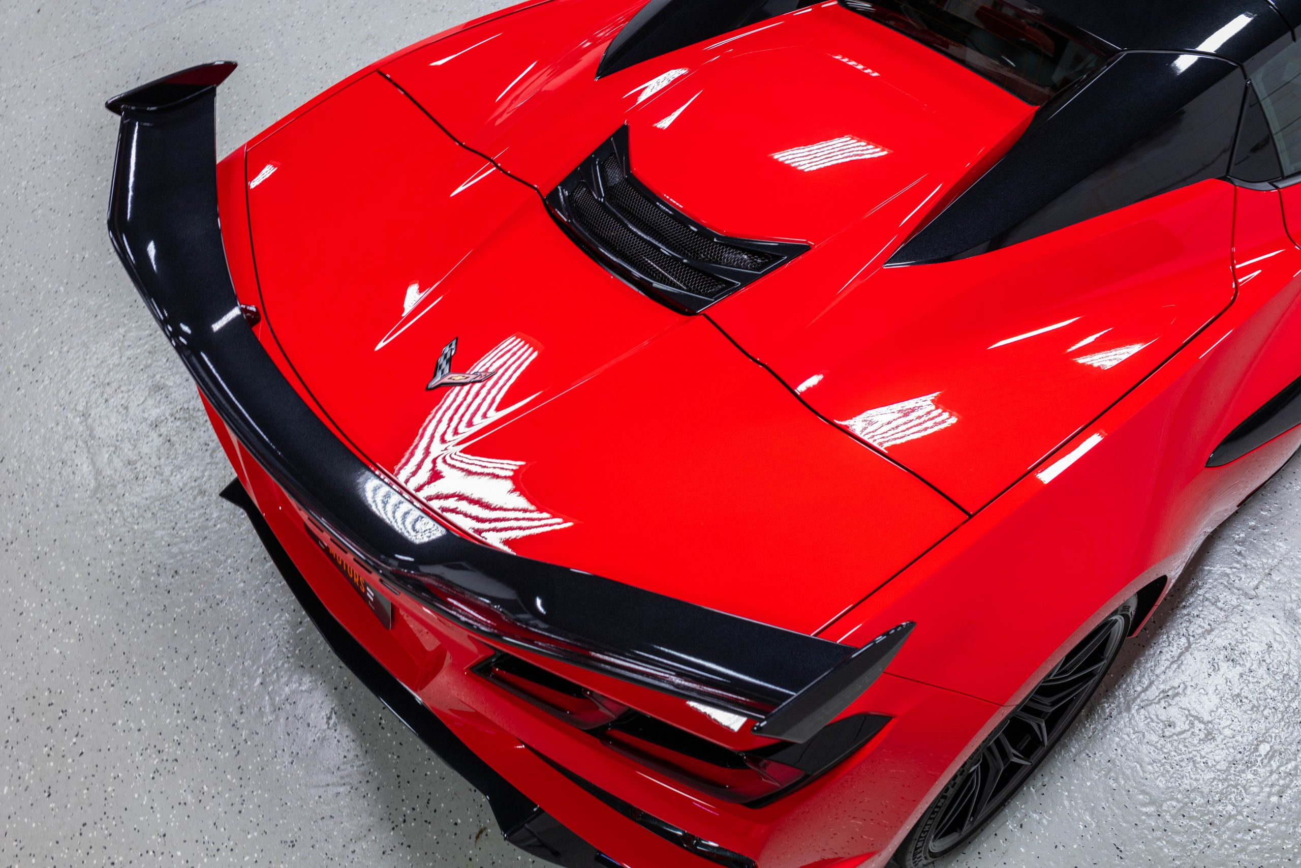 Most notably, it is equipped with the $8,995 Z06 Ultimate Performance Package which afforded the Z07 suspension and Brembo ceramic brakes, the $8,495 Carbon Aero Package, and the $2,595 Front Axle Lift Suspension. Additional optional equipment includes black painted spider design aluminum wheels, red seat belts, red seat stitching, and carbon flash painted exterior accents.