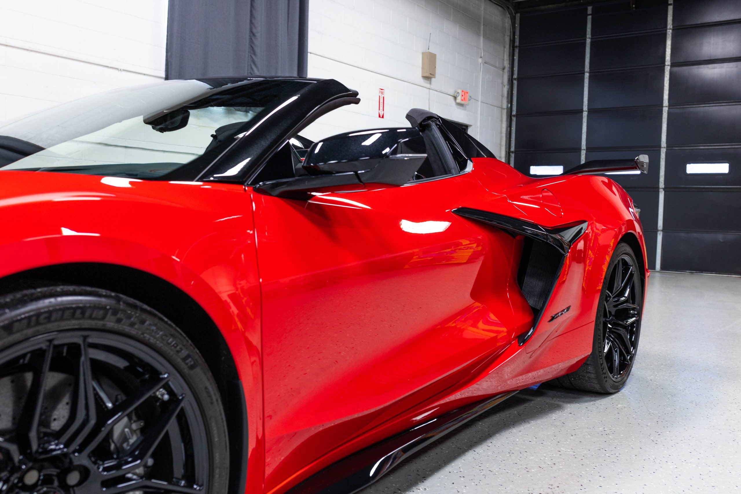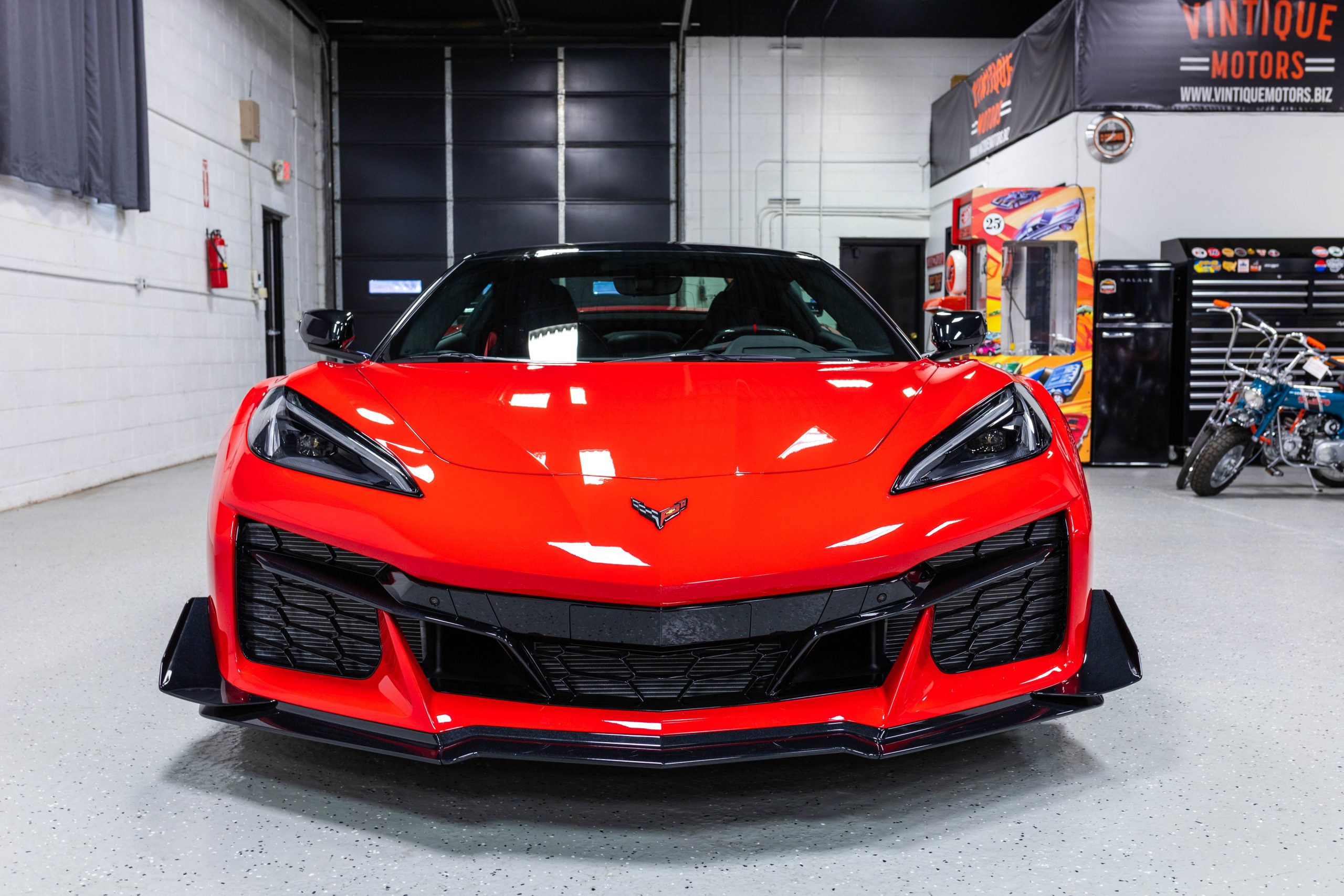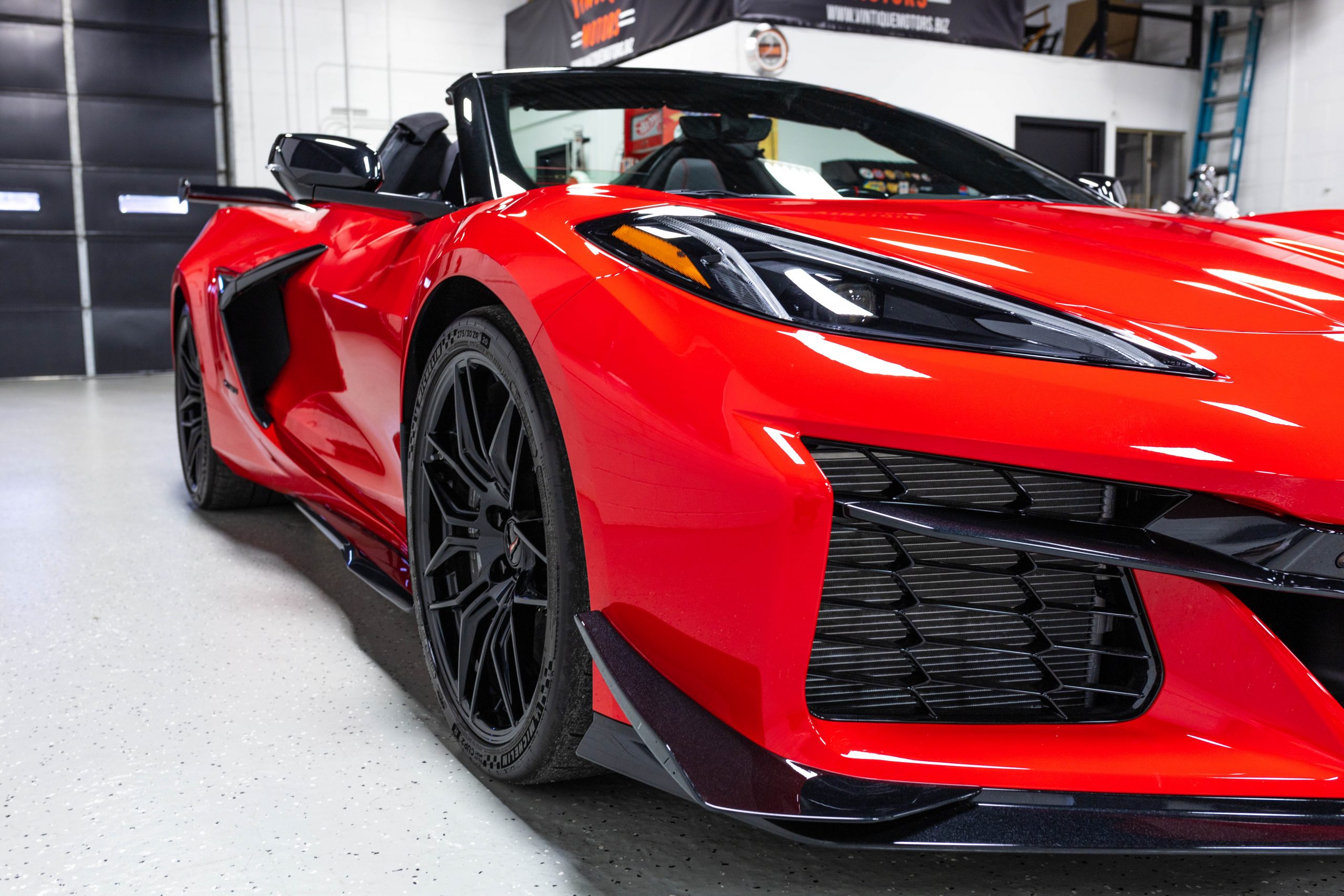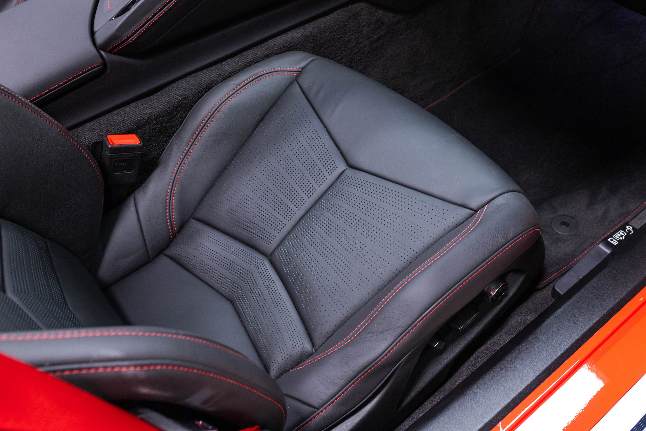 Most notably, it is equipped with the $8,995 Z06 Ultimate Performance Package which afforded the Z07 suspension and Brembo ceramic brakes, the $8,495 Carbon Aero Package, and the $2,595 Front Axle Lift Suspension. Additional optional equipment includes black painted spider design aluminum wheels, red seat belts, red seat stitching, and carbon flash painted exterior accents.