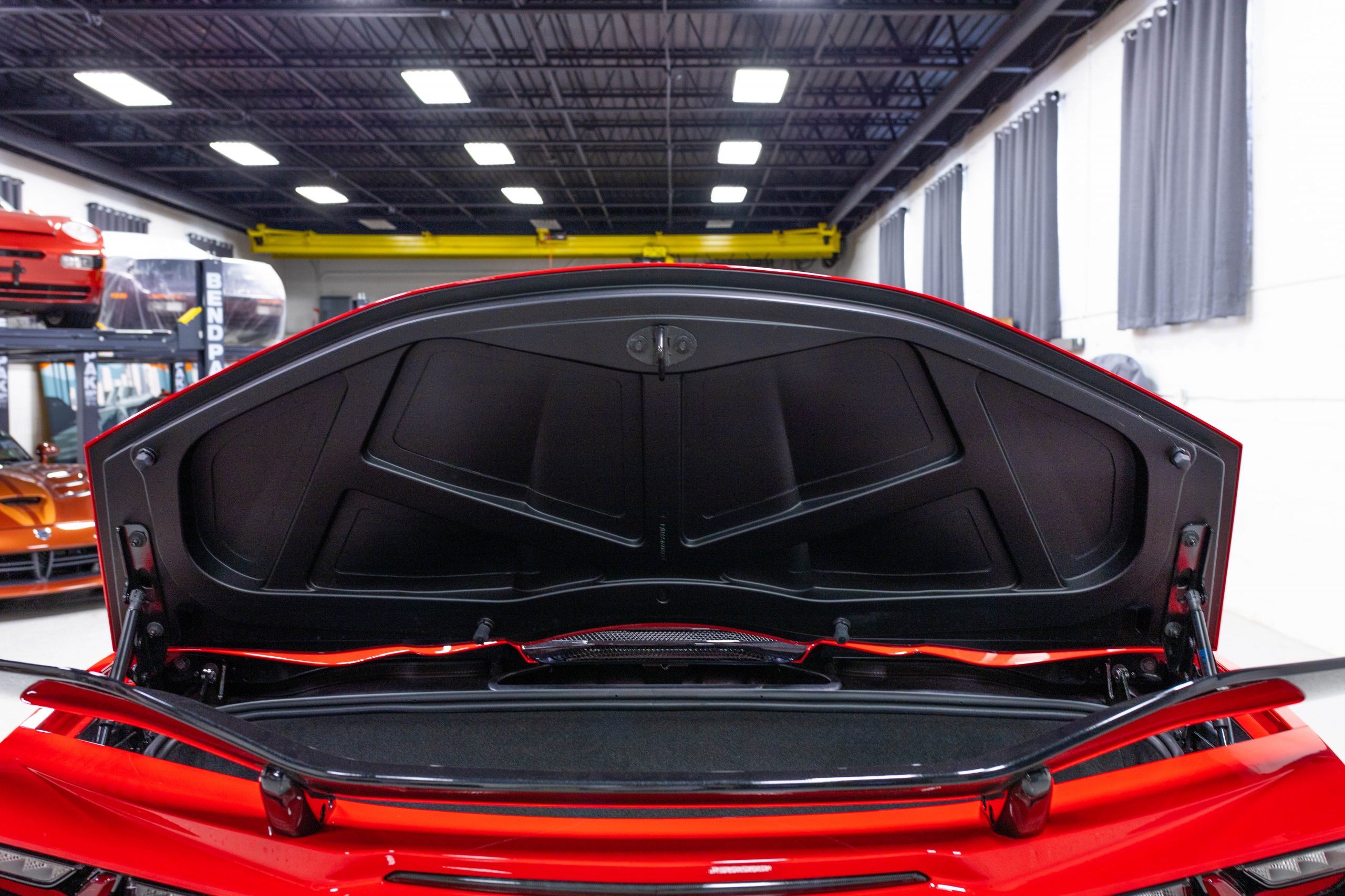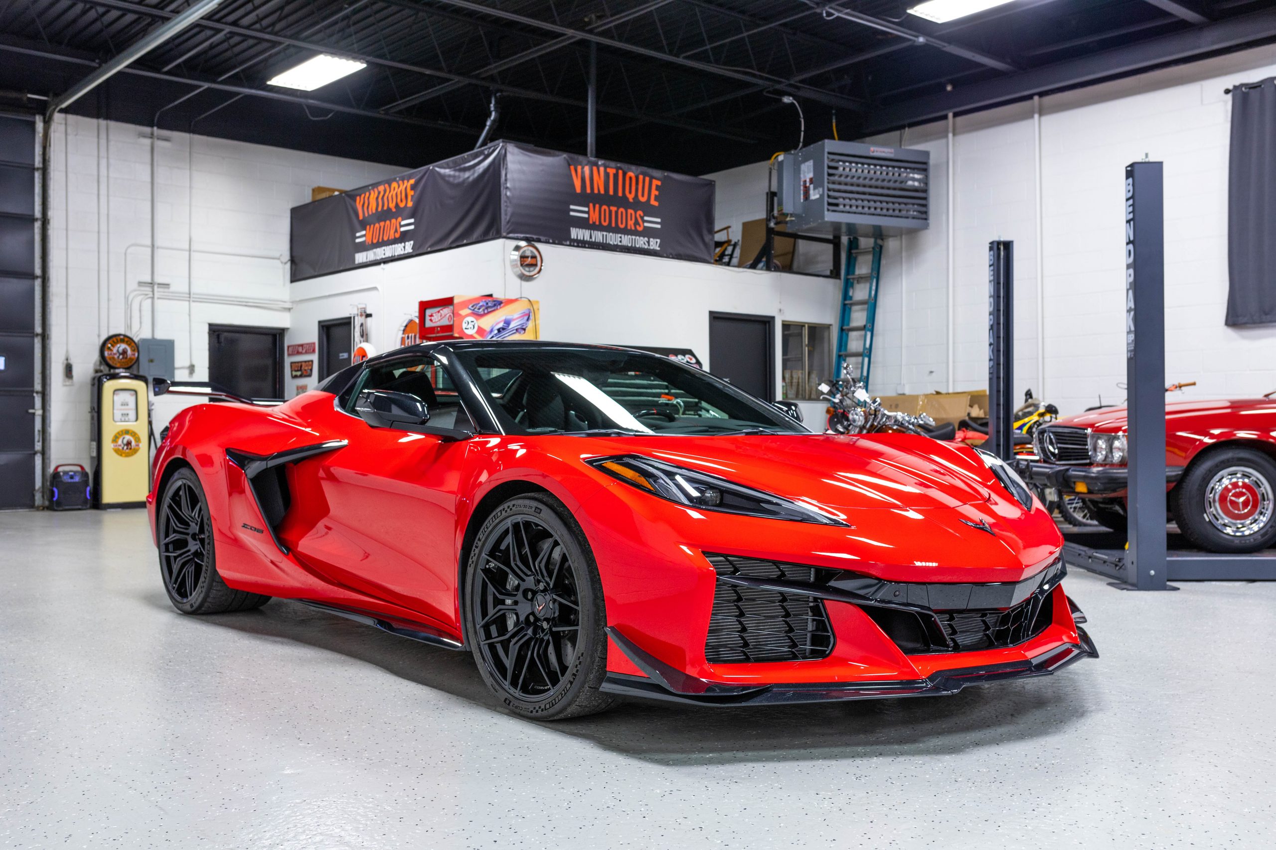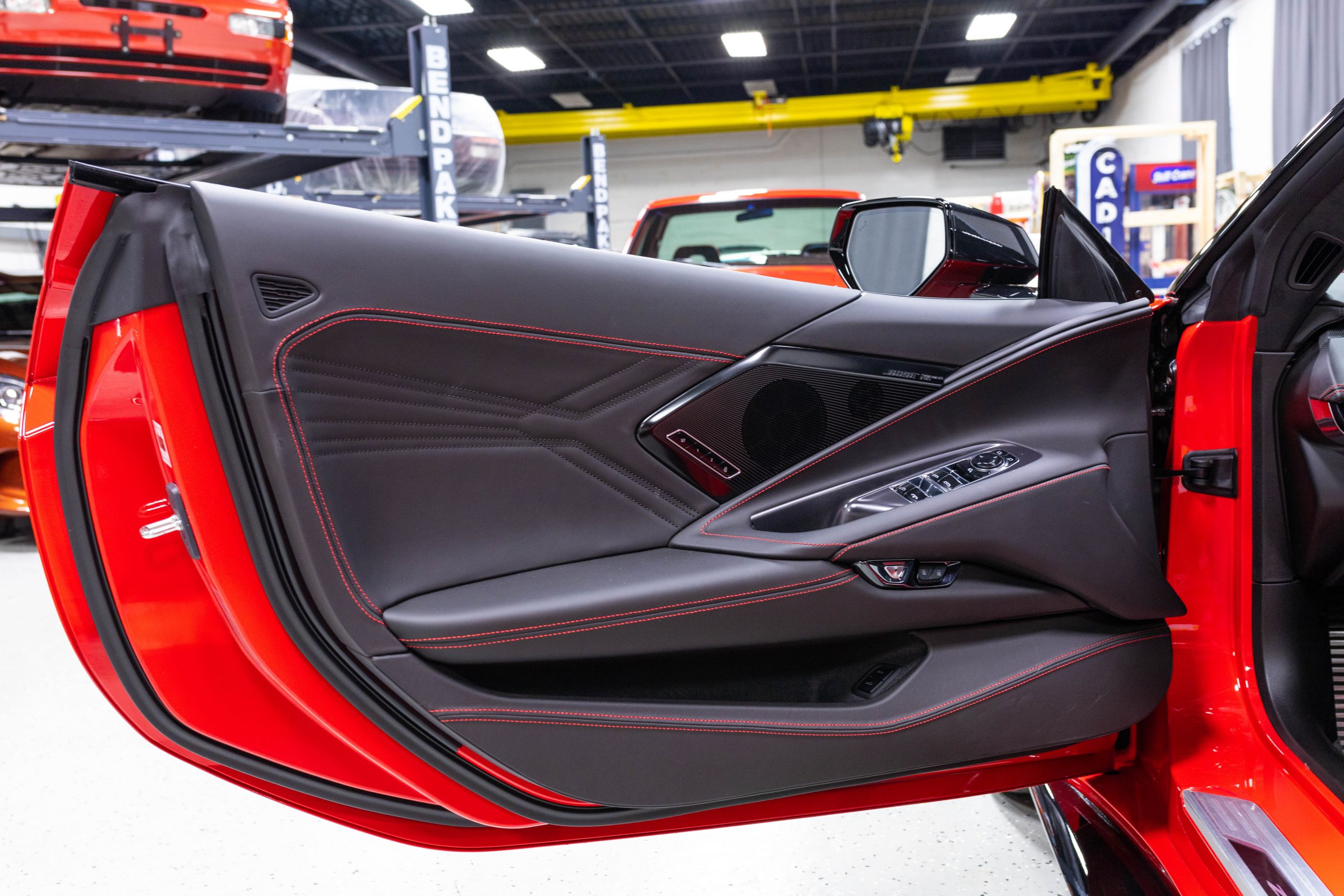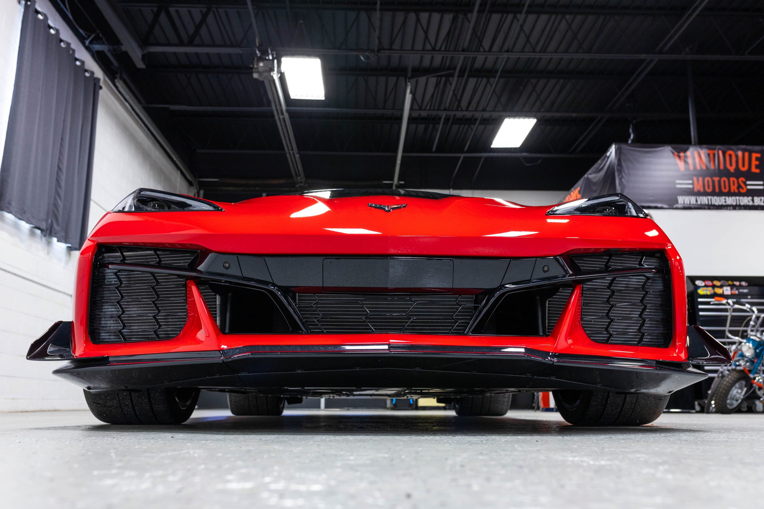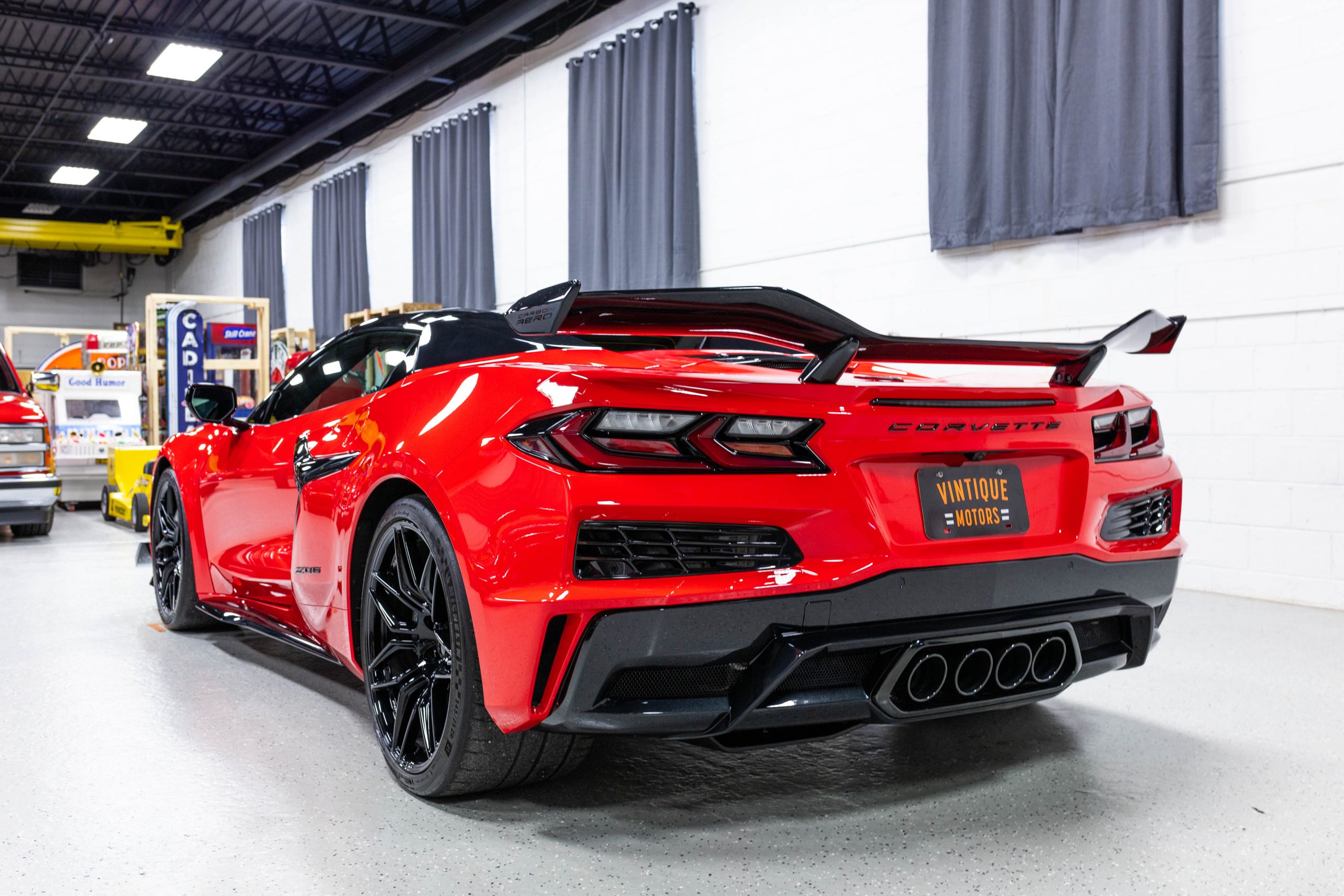 Most notably, it is equipped with the $8,995 Z06 Ultimate Performance Package which afforded the Z07 suspension and Brembo ceramic brakes, the $8,495 Carbon Aero Package, and the $2,595 Front Axle Lift Suspension. Additional optional equipment includes black painted spider design aluminum wheels, red seat belts, red seat stitching, and carbon flash painted exterior accents.