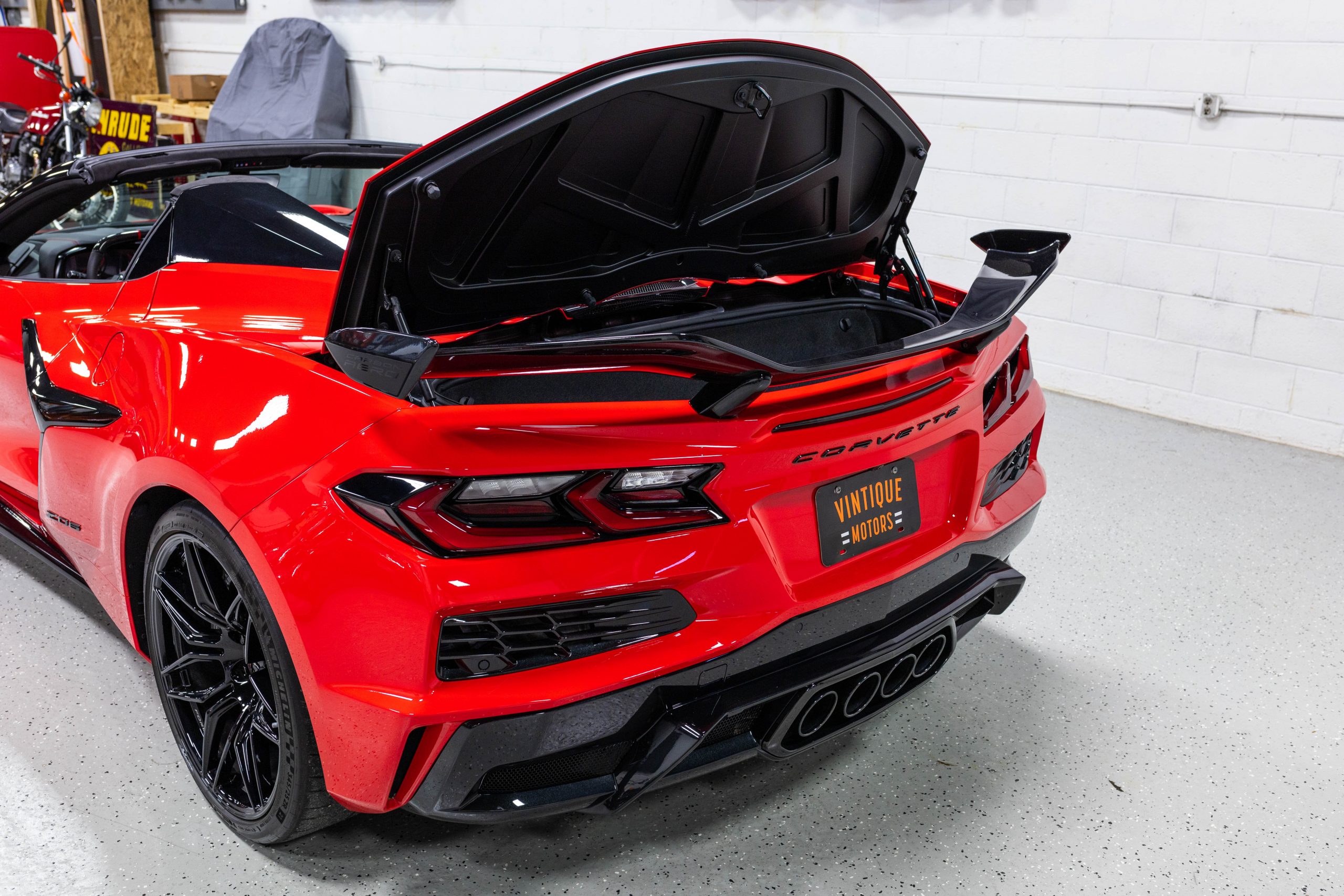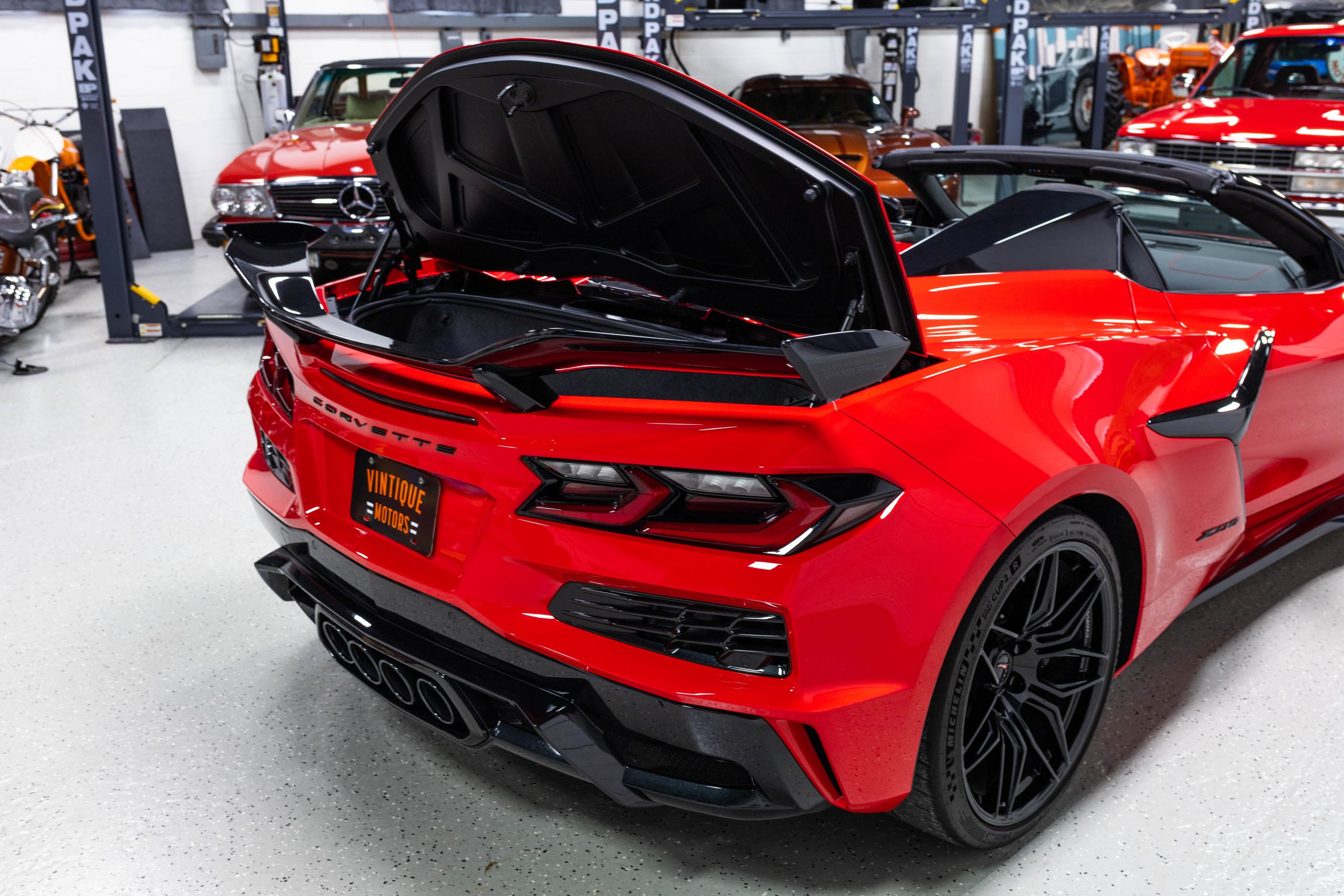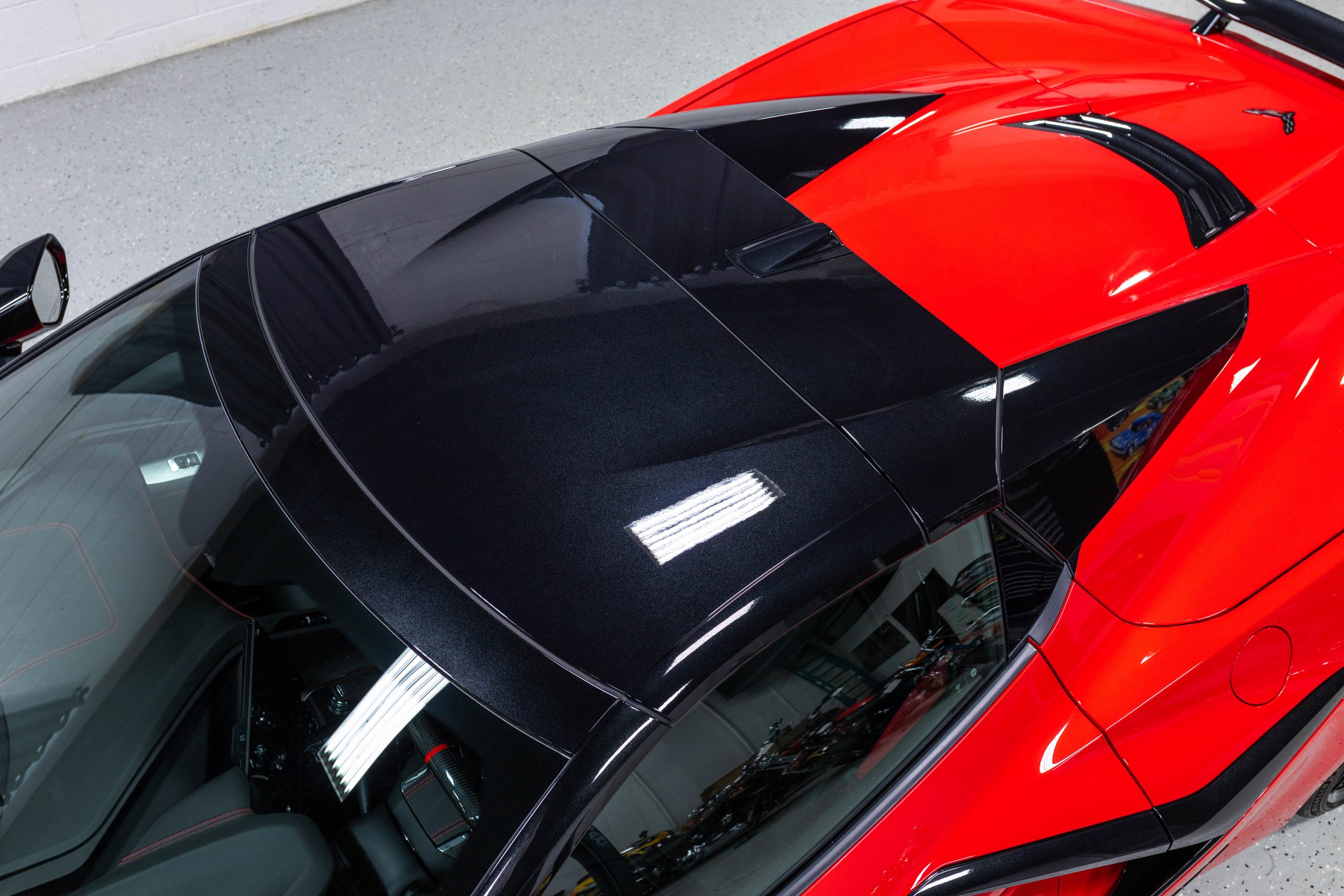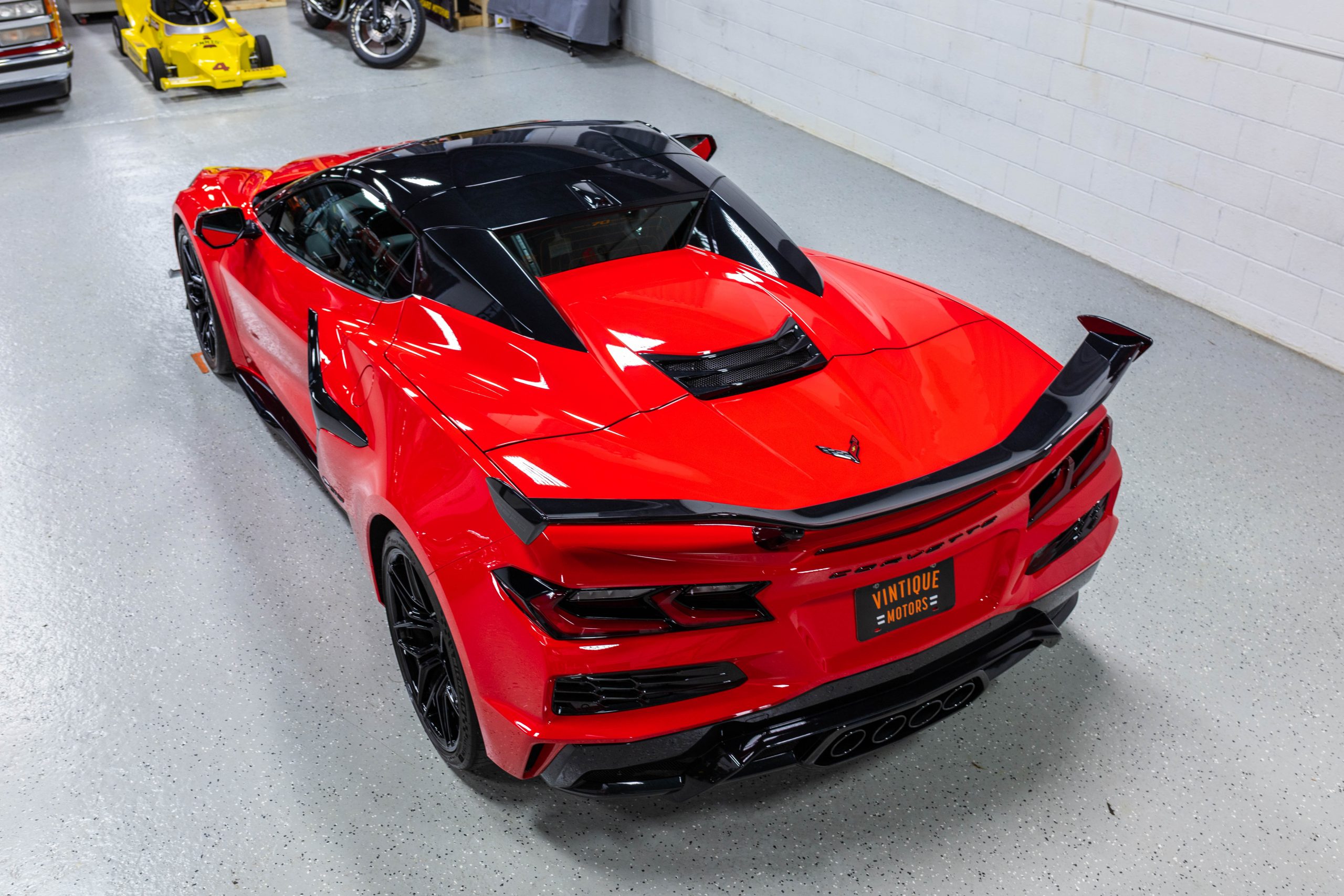 The mid-mounted 5.5-liter LT6 V8 is equipped with a flat-plane crankshaft and was factory rated at 670 horsepower and 460 lb-ft of torque mated to a 8-speed dual-clutch automatic with paddle shifters. It is also factory equipped with a performance exhaust system with driver-selectable modes. Other equipment includes a power-retractable hardtop, stealth interior trim package, a Bose 14-speaker sound system, and a Performance Data Recorder.