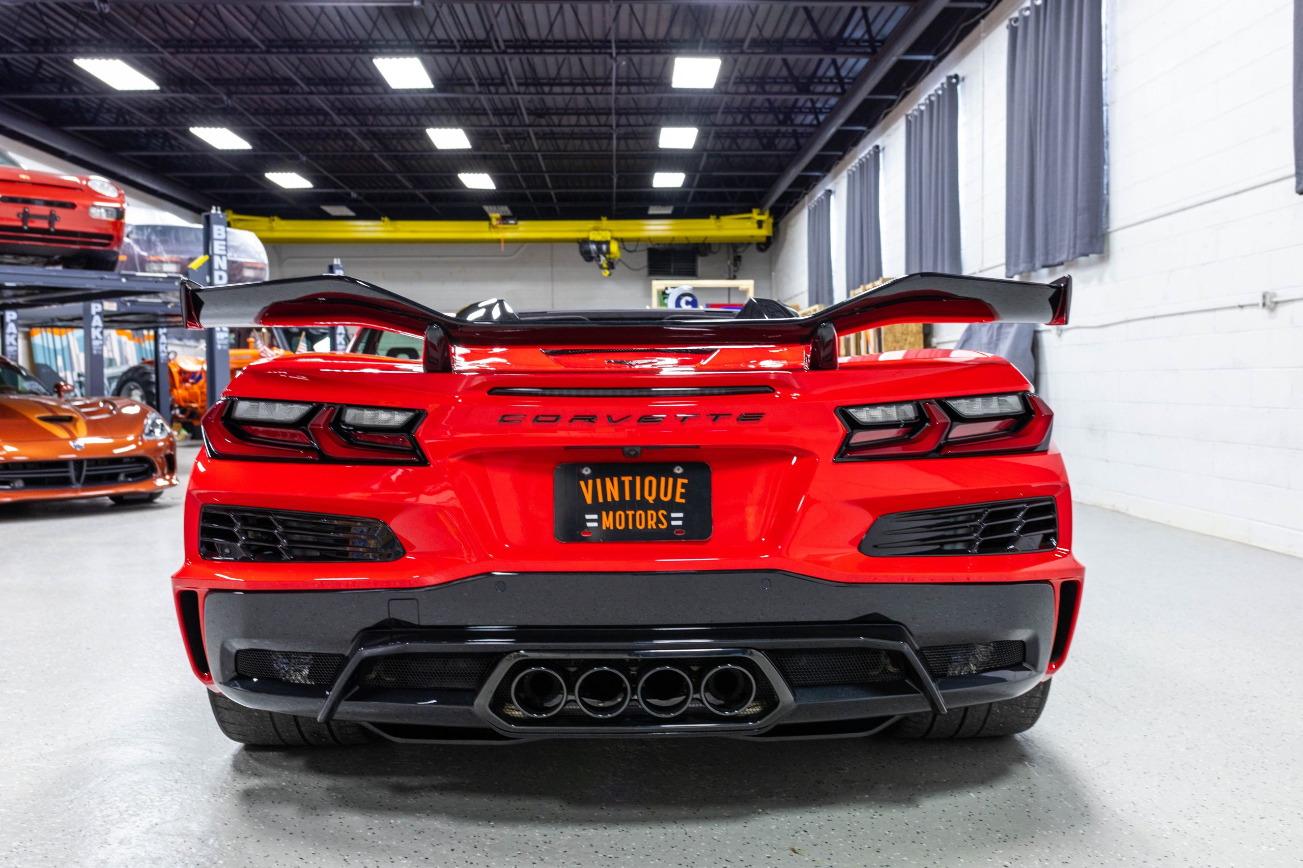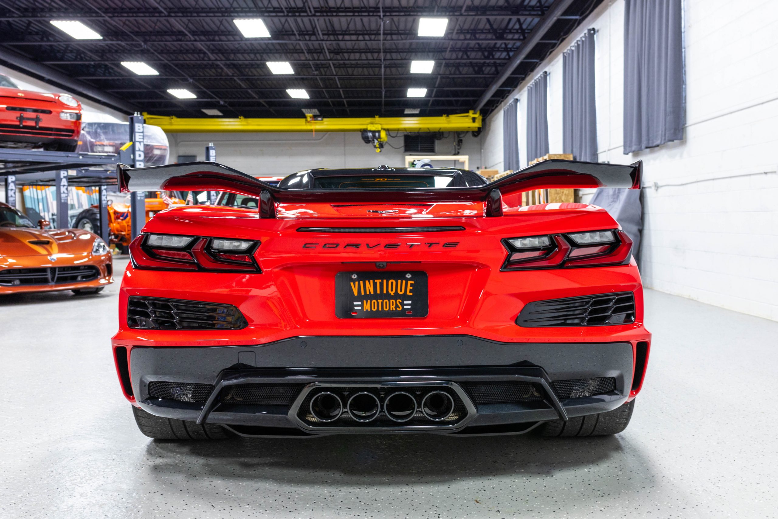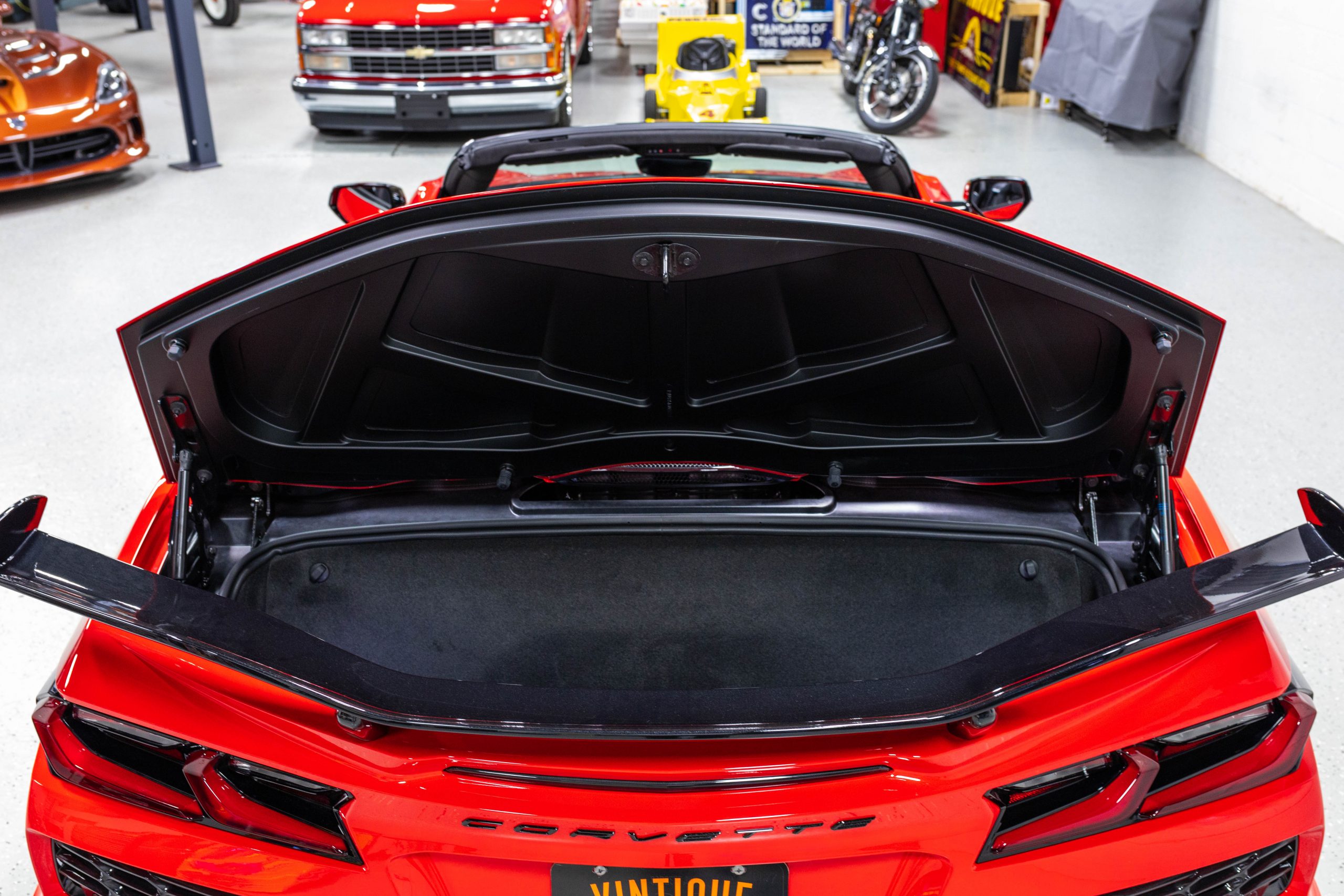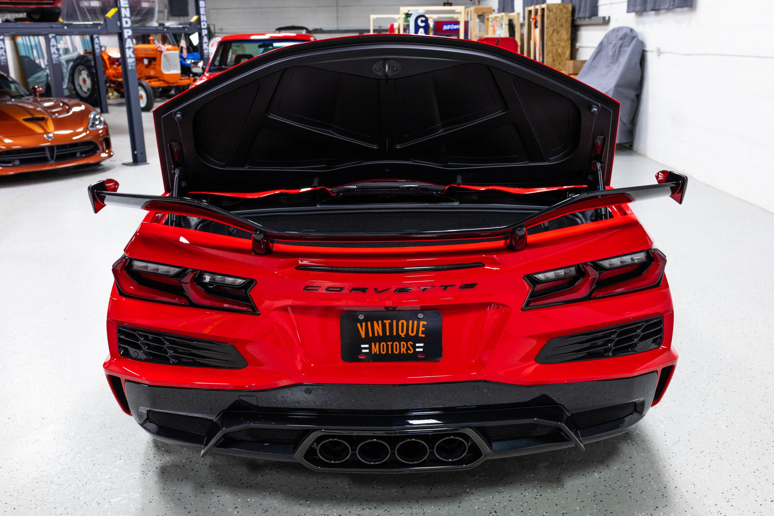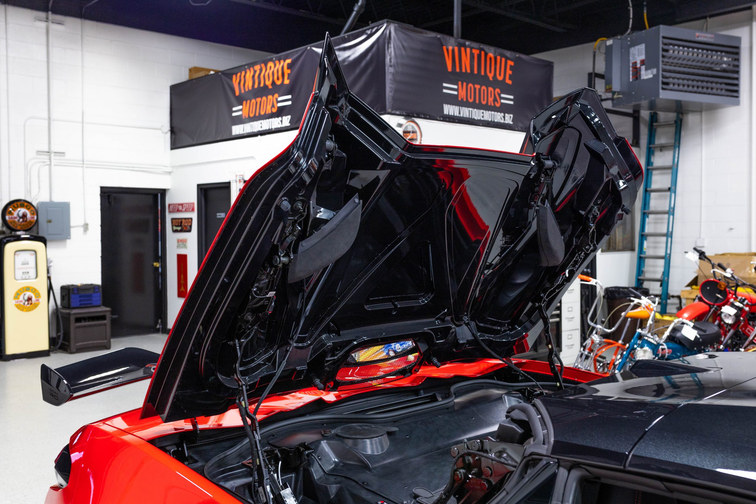 The mid-mounted 5.5-liter LT6 V8 is equipped with a flat-plane crankshaft and was factory rated at 670 horsepower and 460 lb-ft of torque mated to a 8-speed dual-clutch automatic with paddle shifters. It is also factory equipped with a performance exhaust system with driver-selectable modes. Other equipment includes a power-retractable hardtop, stealth interior trim package, a Bose 14-speaker sound system, and a Performance Data Recorder.